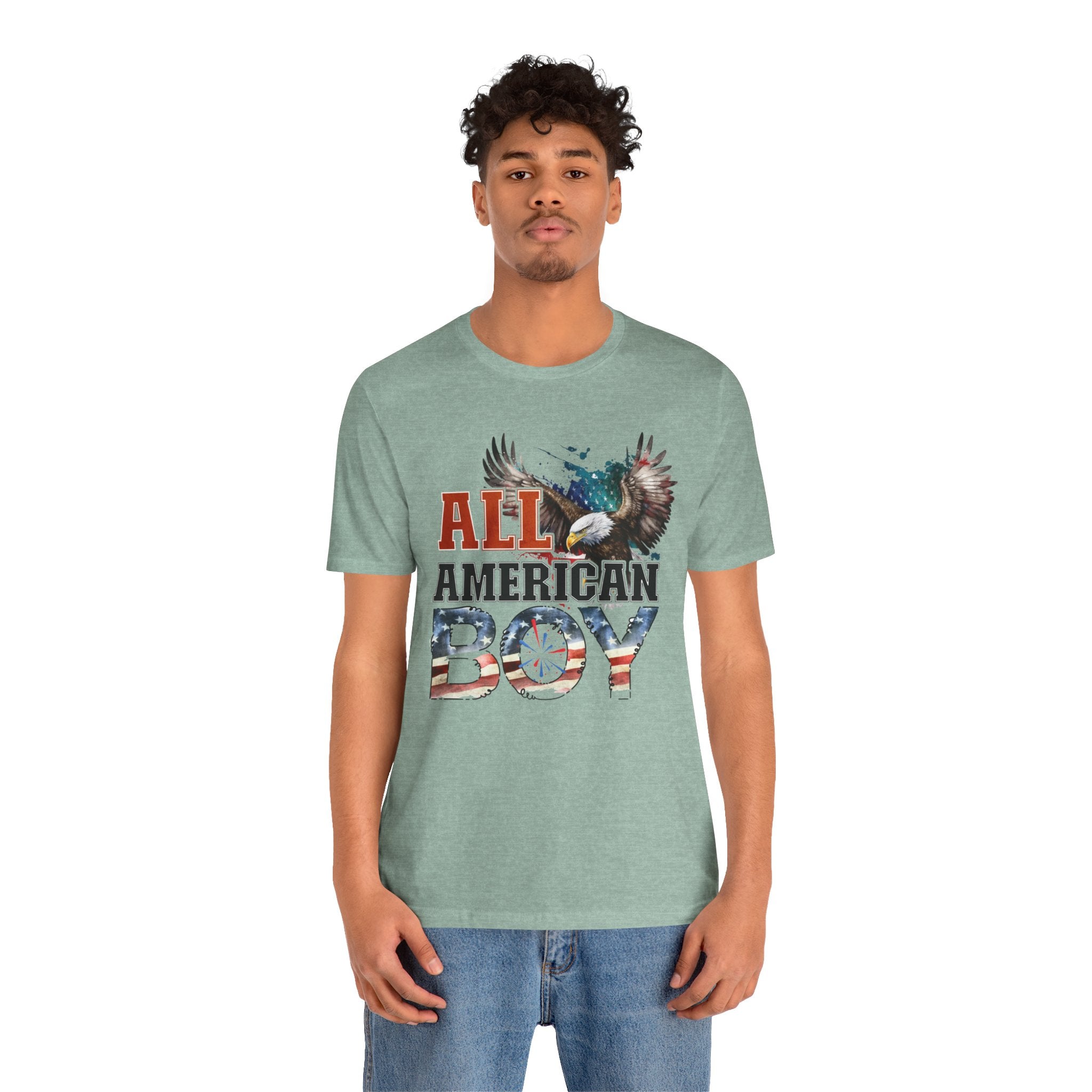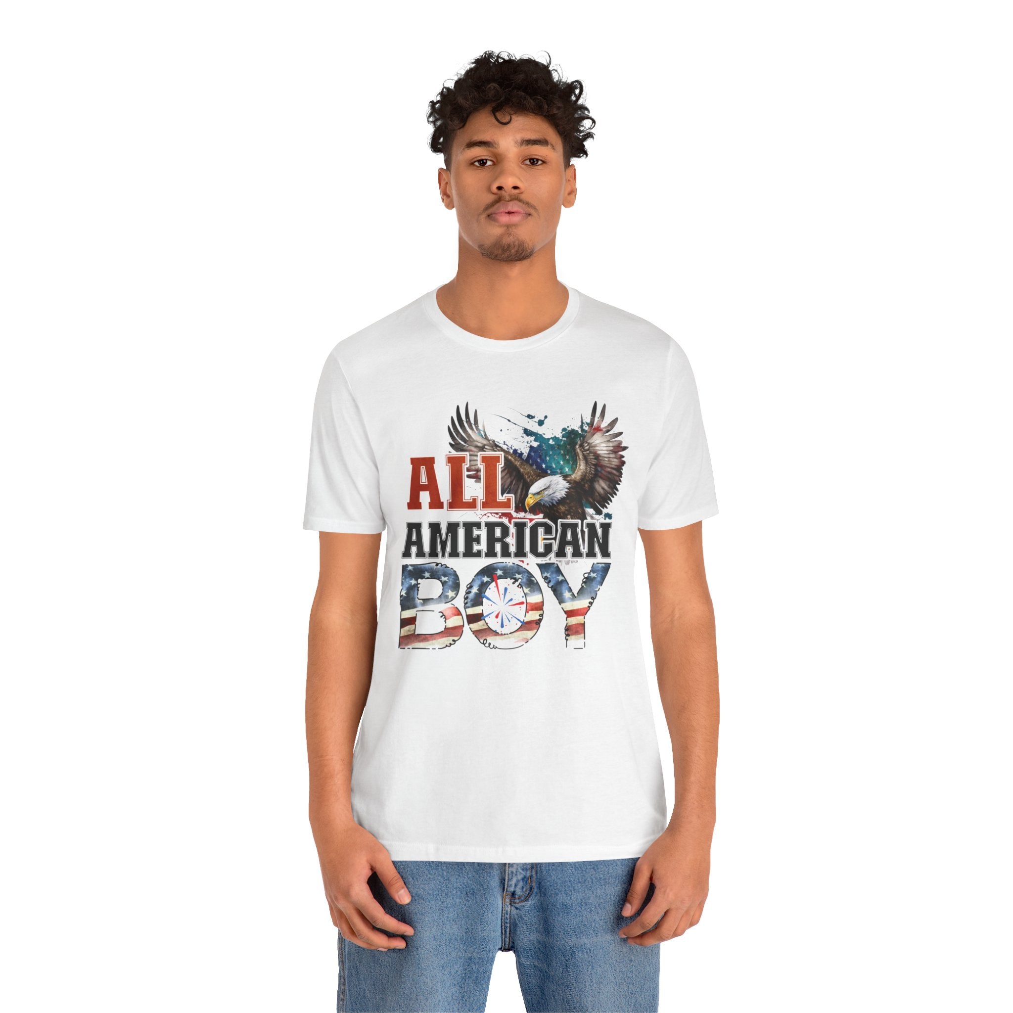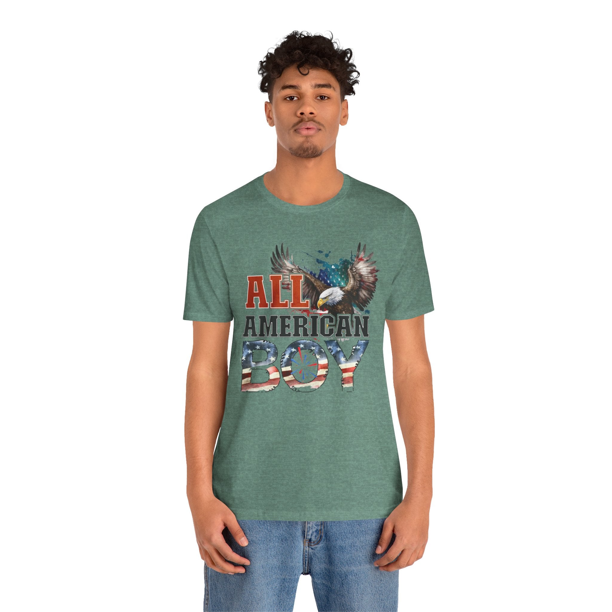 All American Boy With Eagle Graphic, Unisex Jersey Short Sleeve Tee