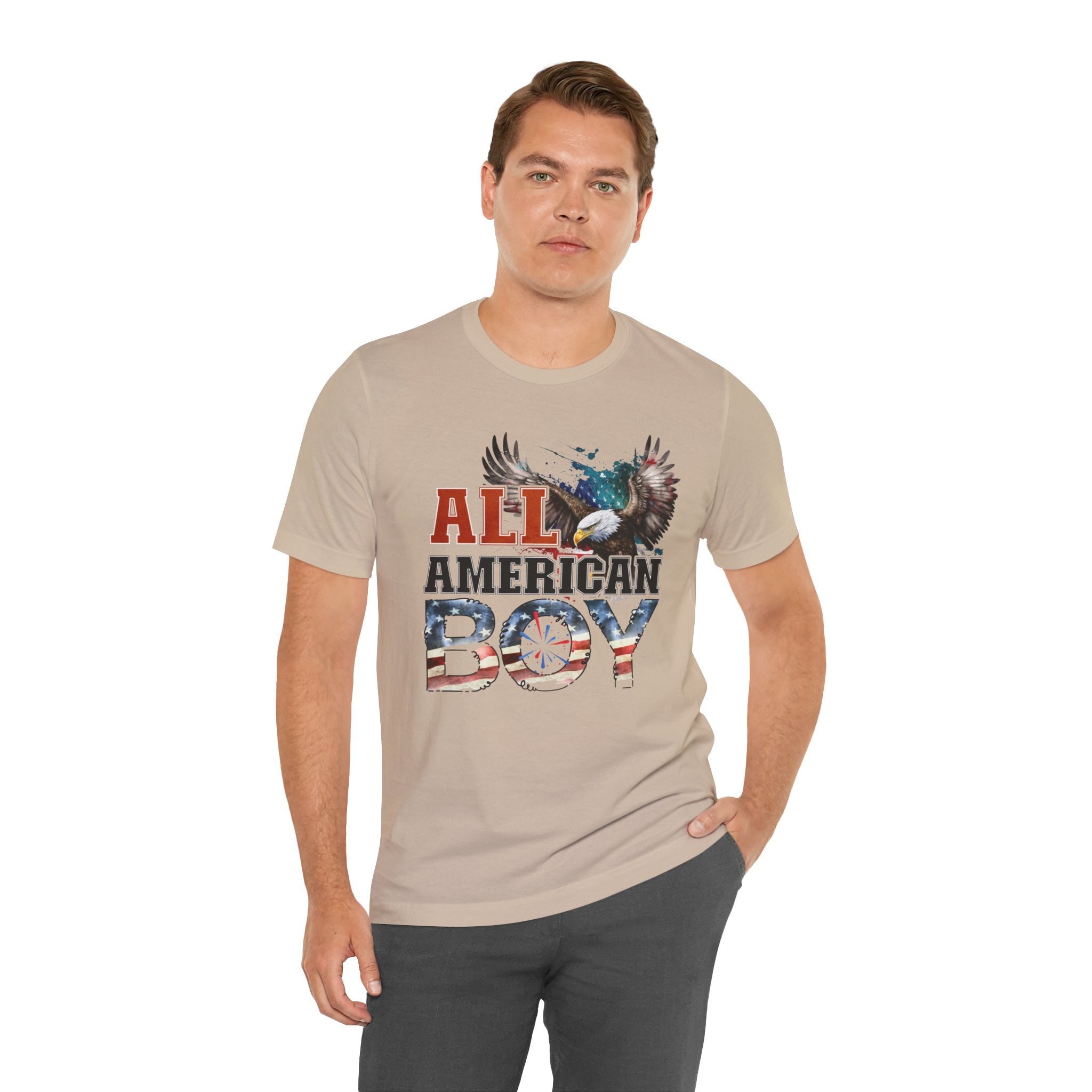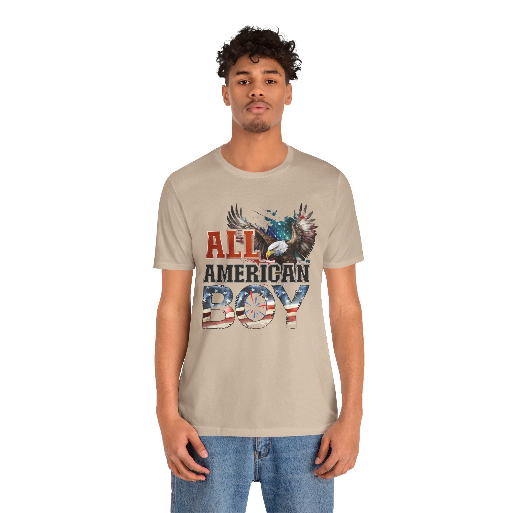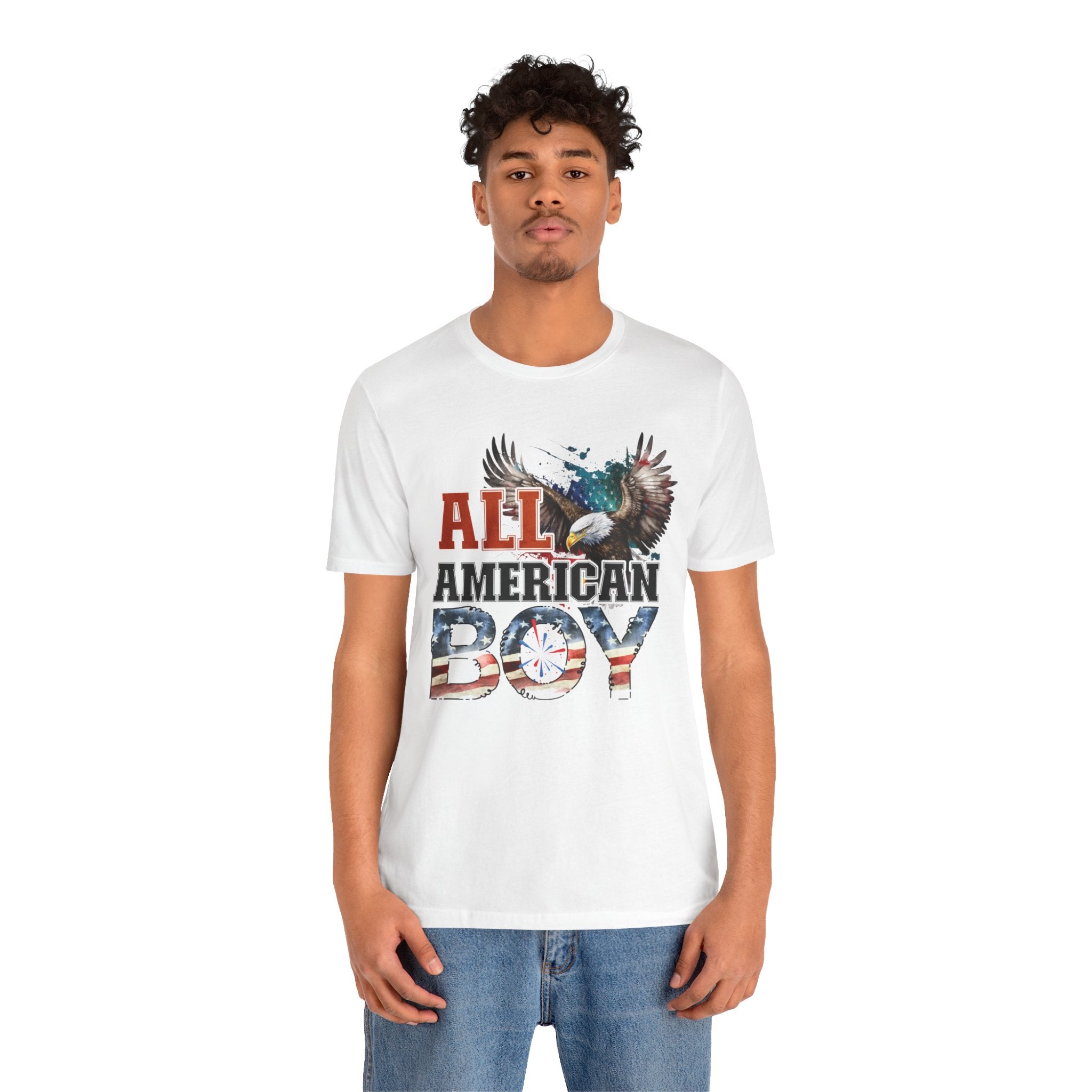 All American Boy With Eagle Graphic, Unisex Jersey Short Sleeve Tee