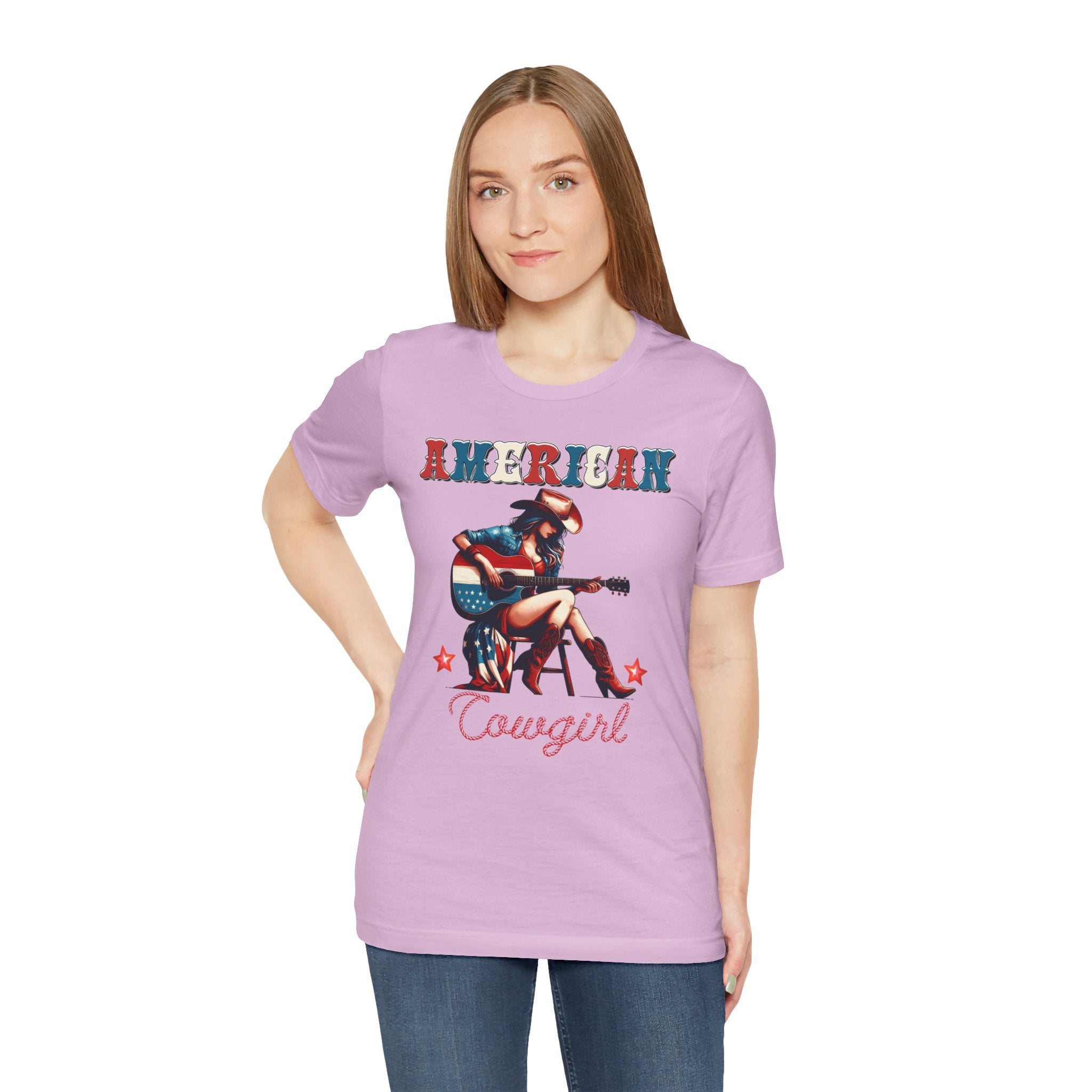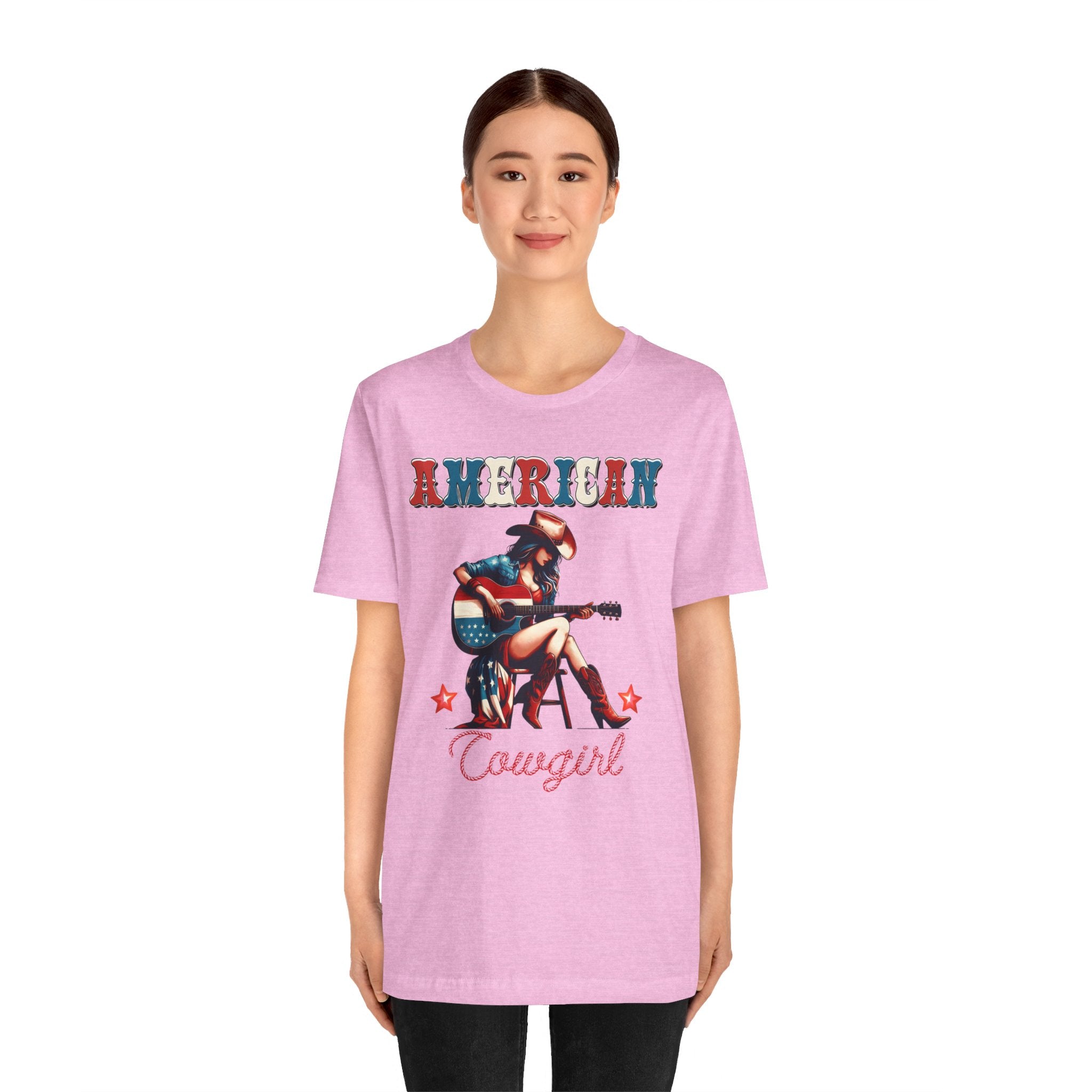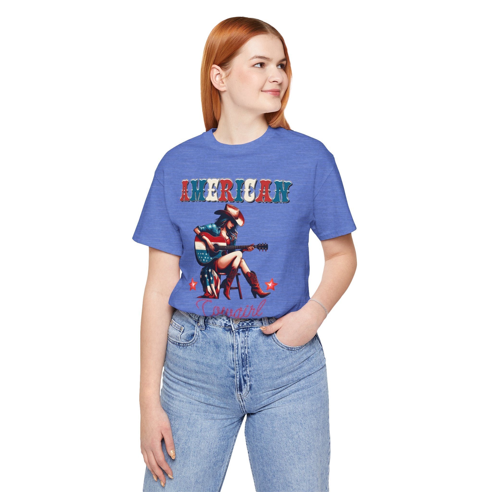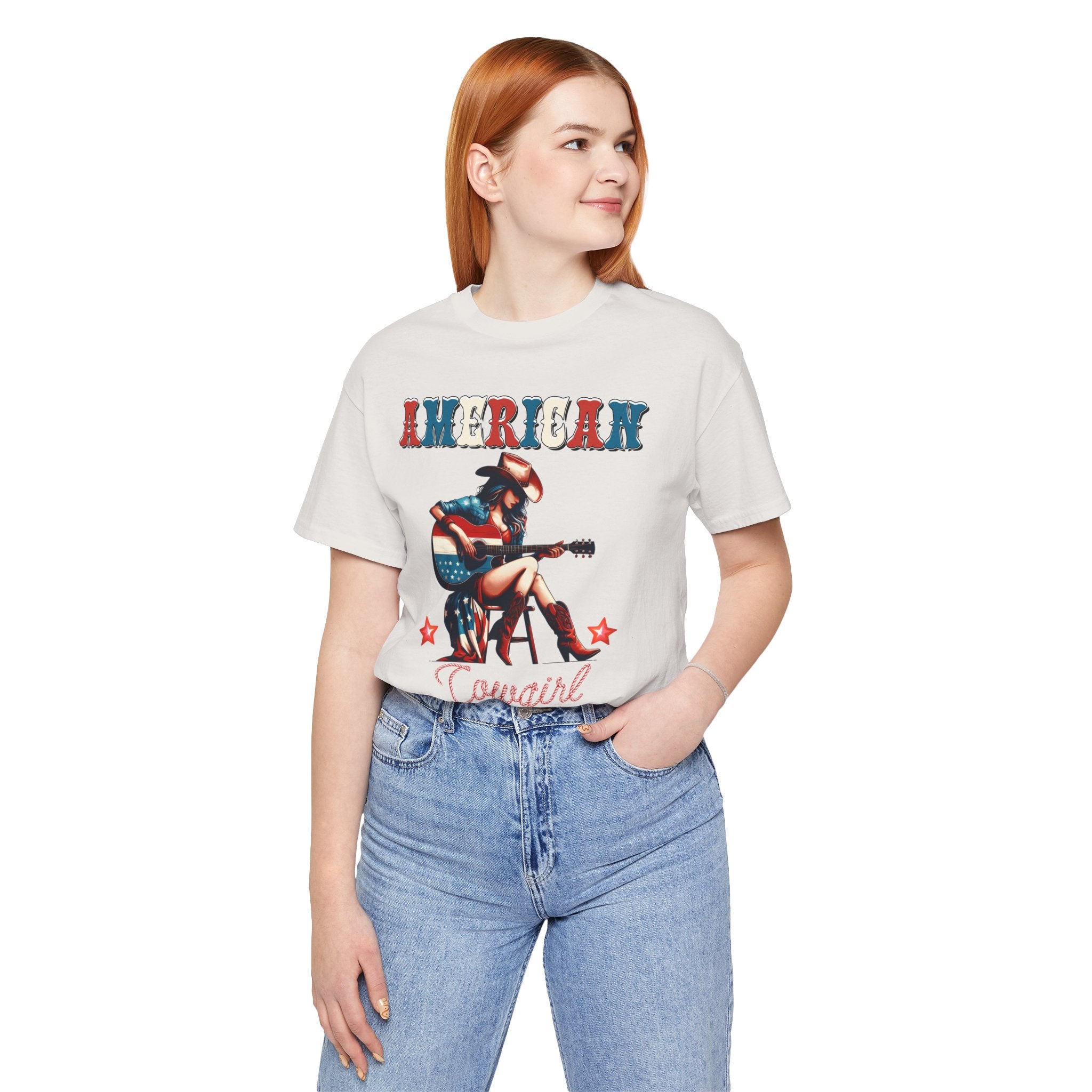 American Cowgirl, Playing Guitar Graphic, Unisex Jersey Short Sleeve Tee
