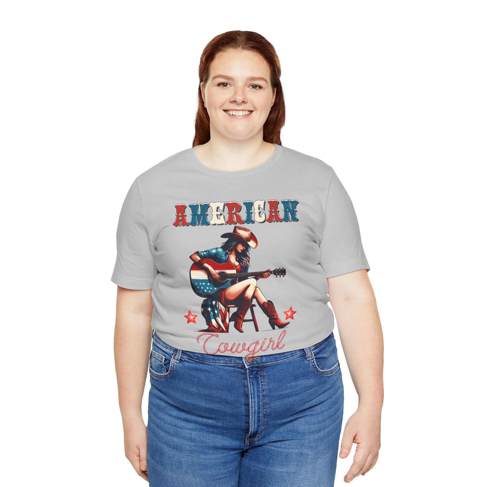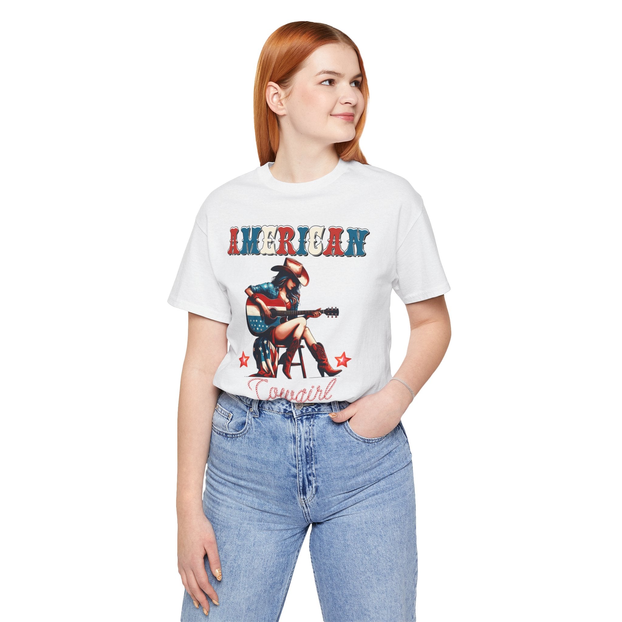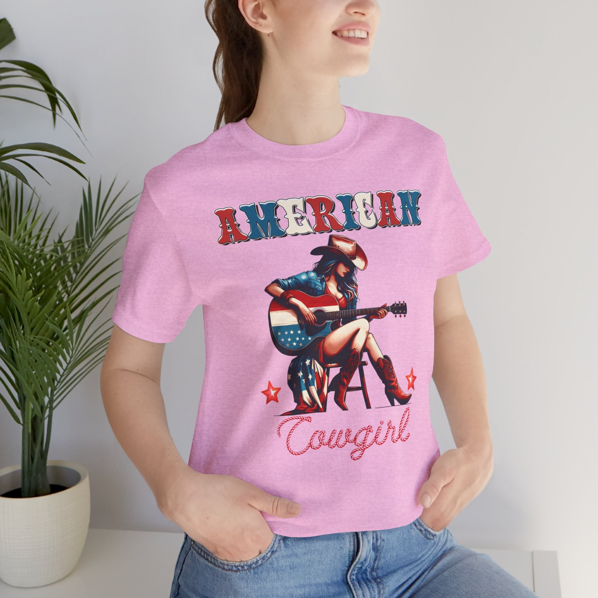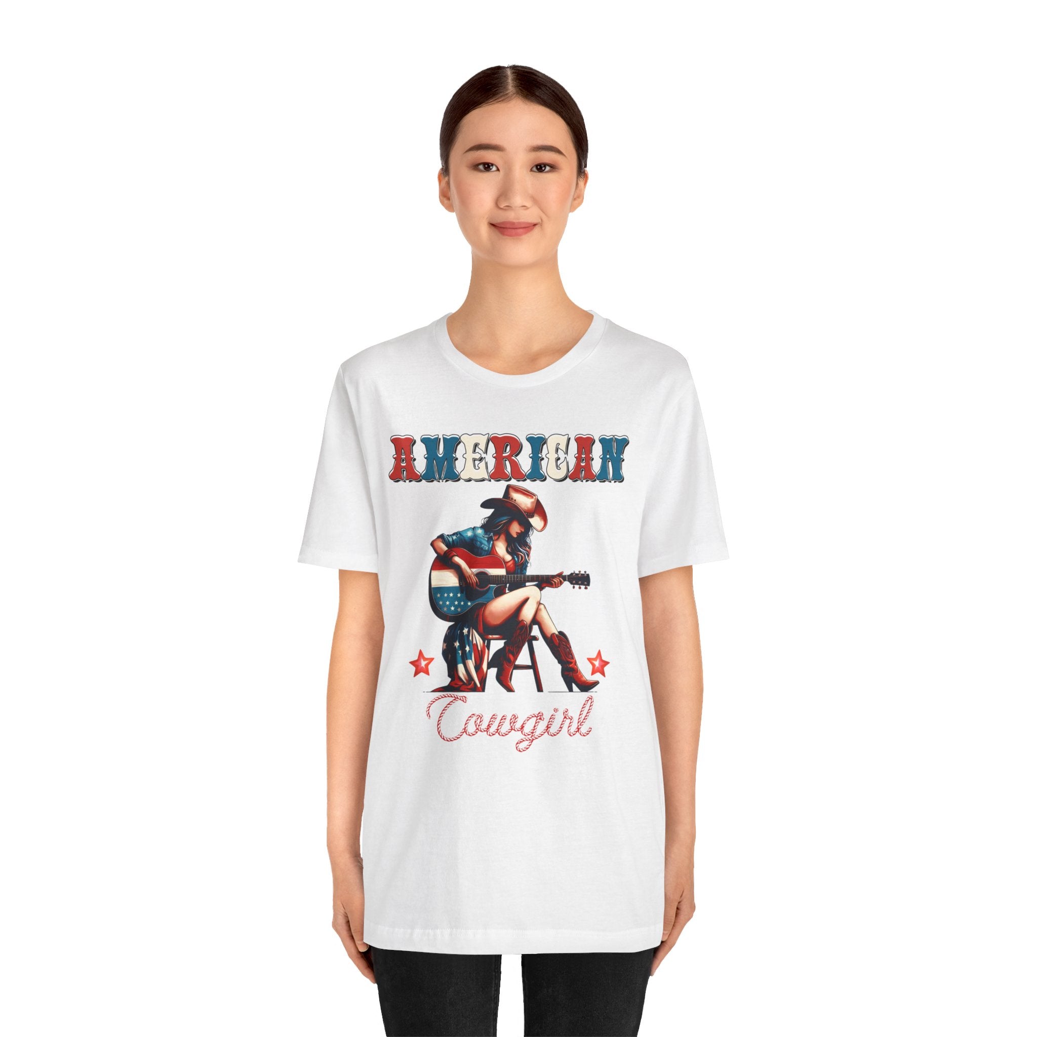 American Cowgirl, Playing Guitar Graphic, Unisex Jersey Short Sleeve Tee