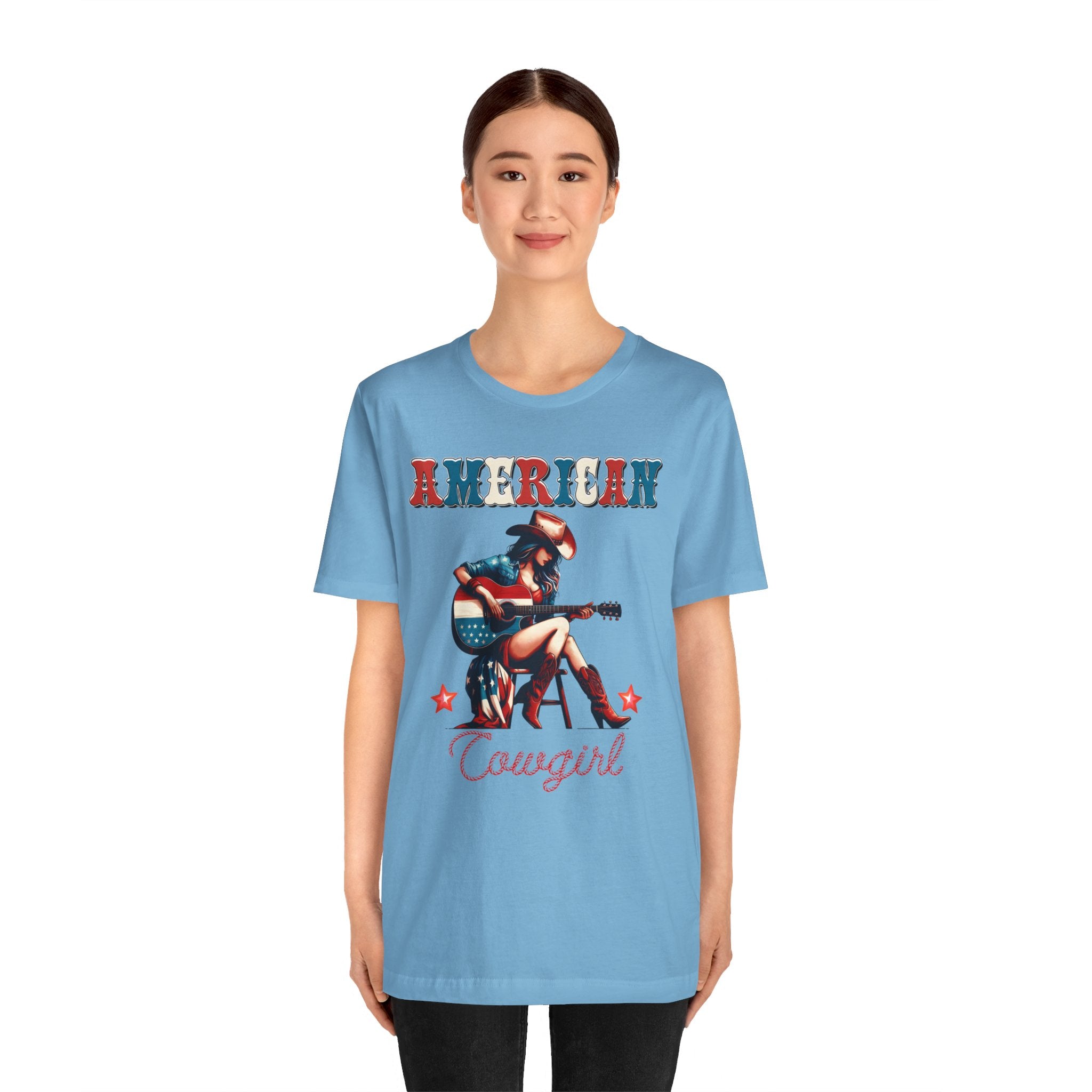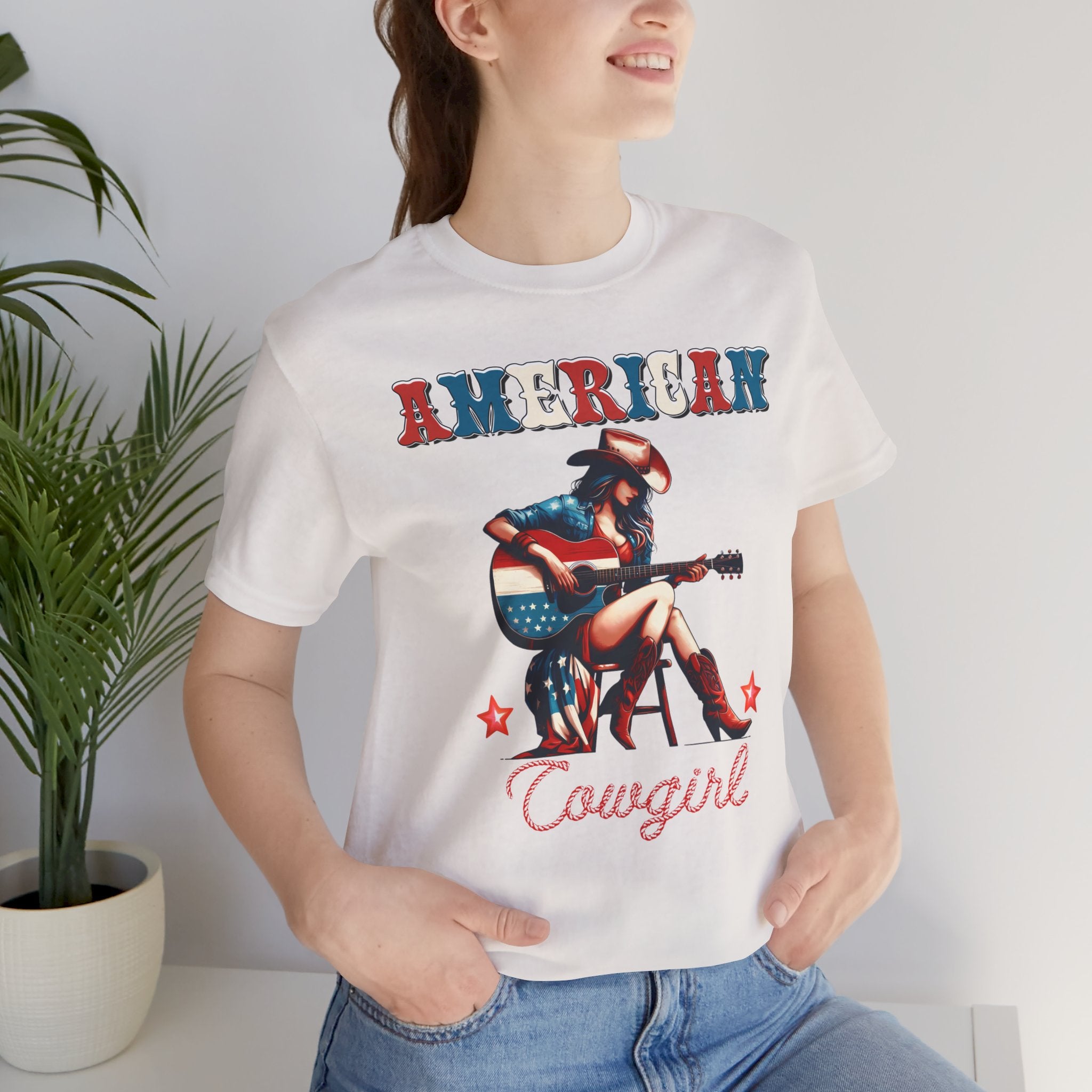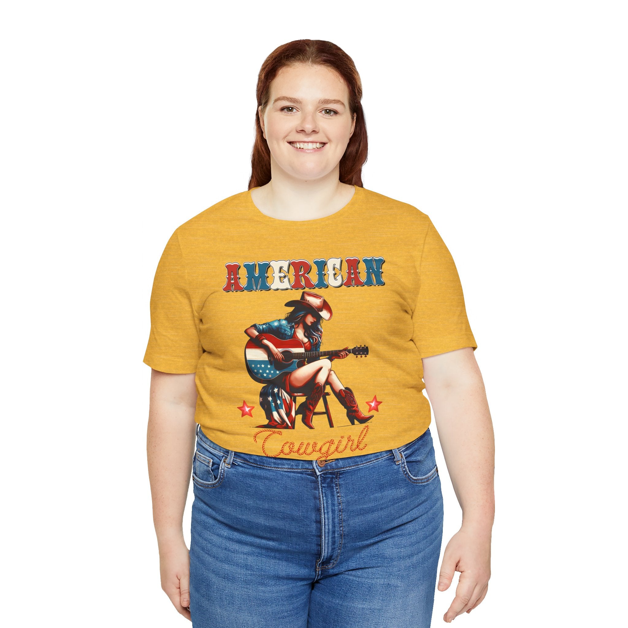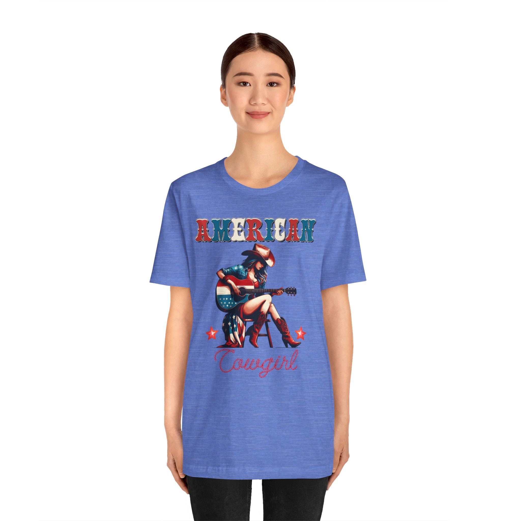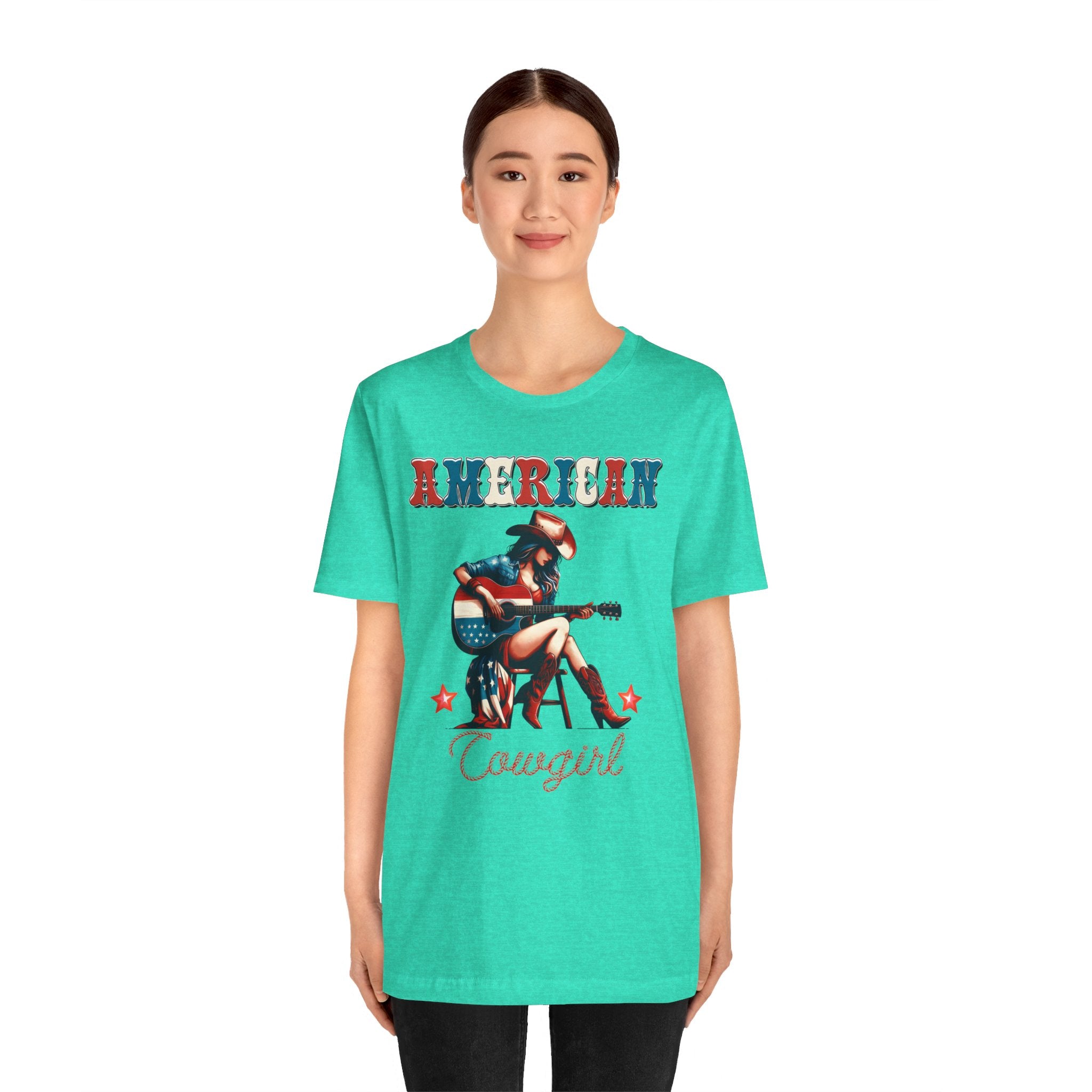 American Cowgirl, Playing Guitar Graphic, Unisex Jersey Short Sleeve Tee