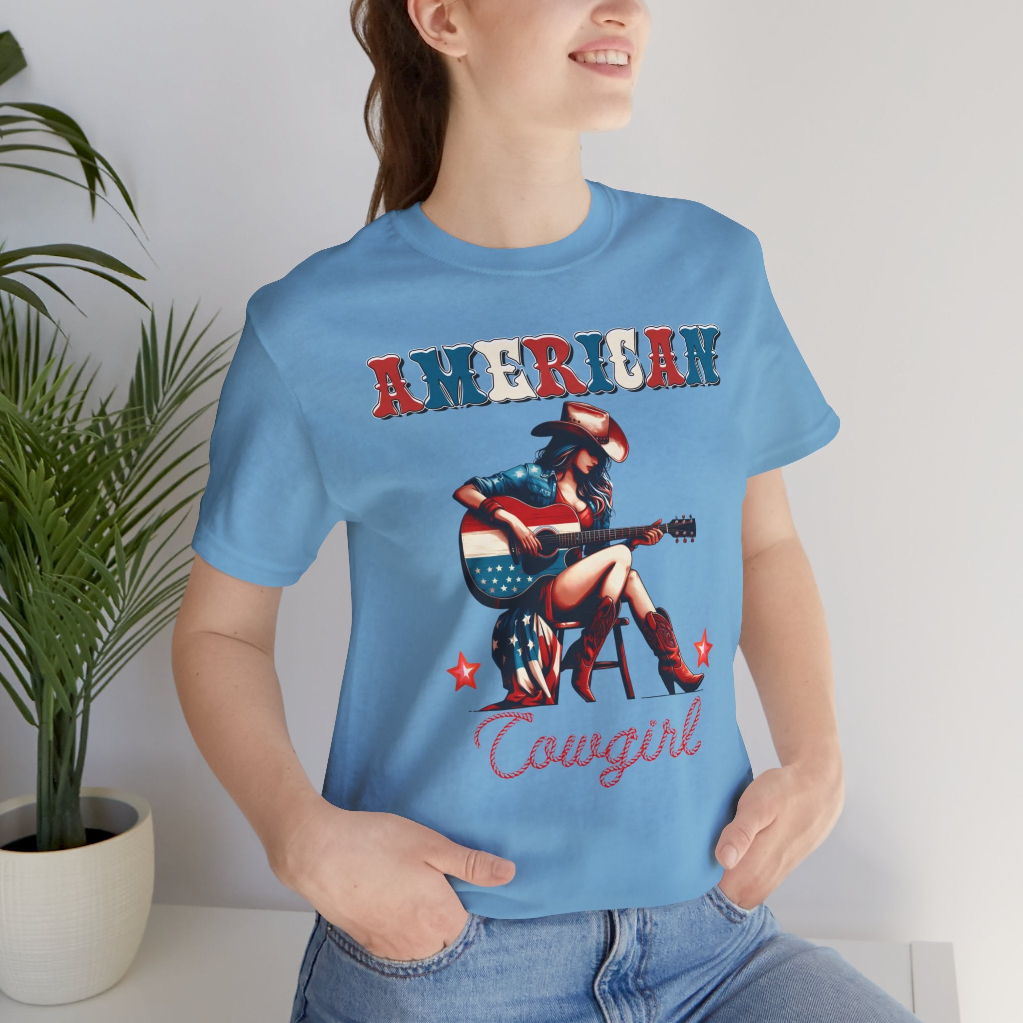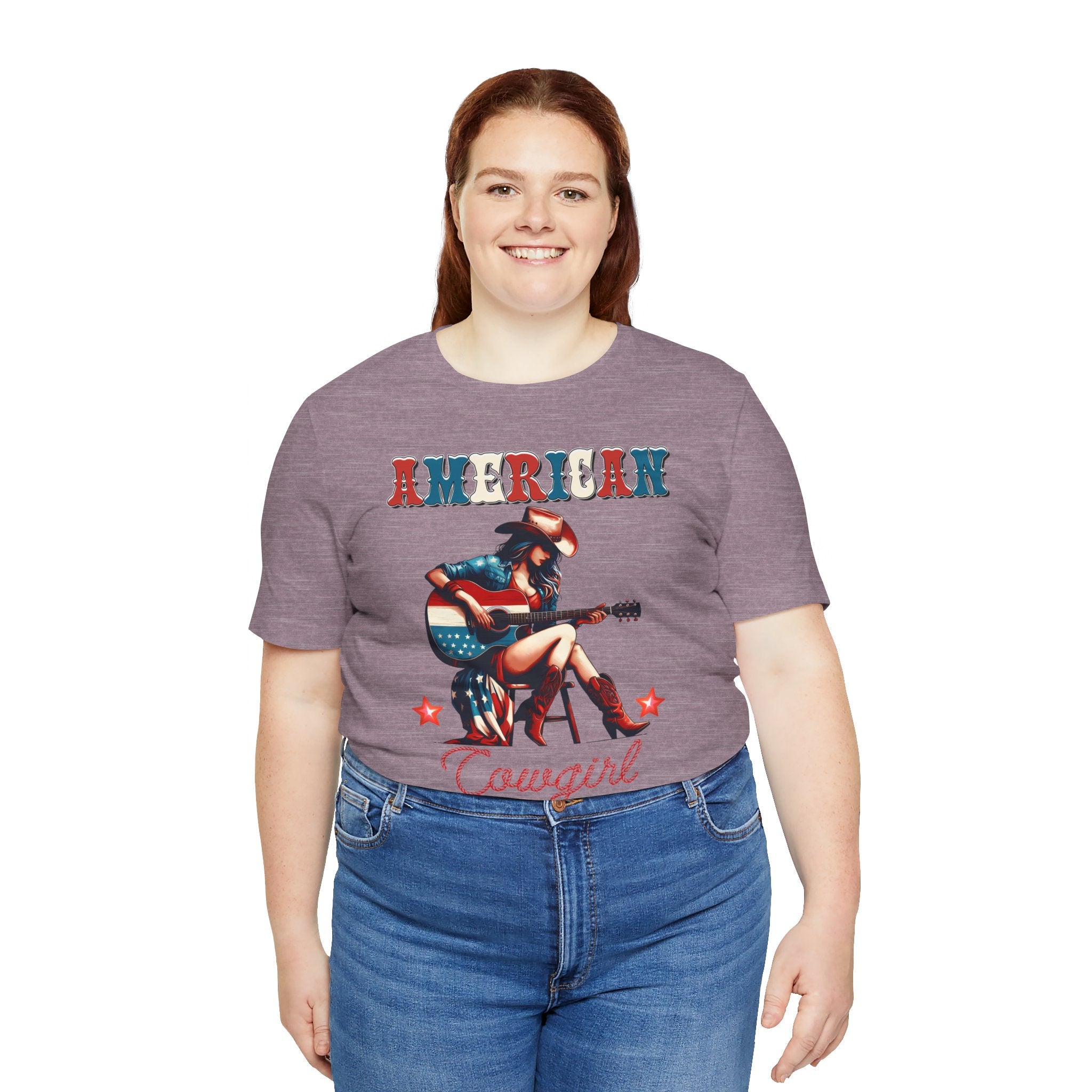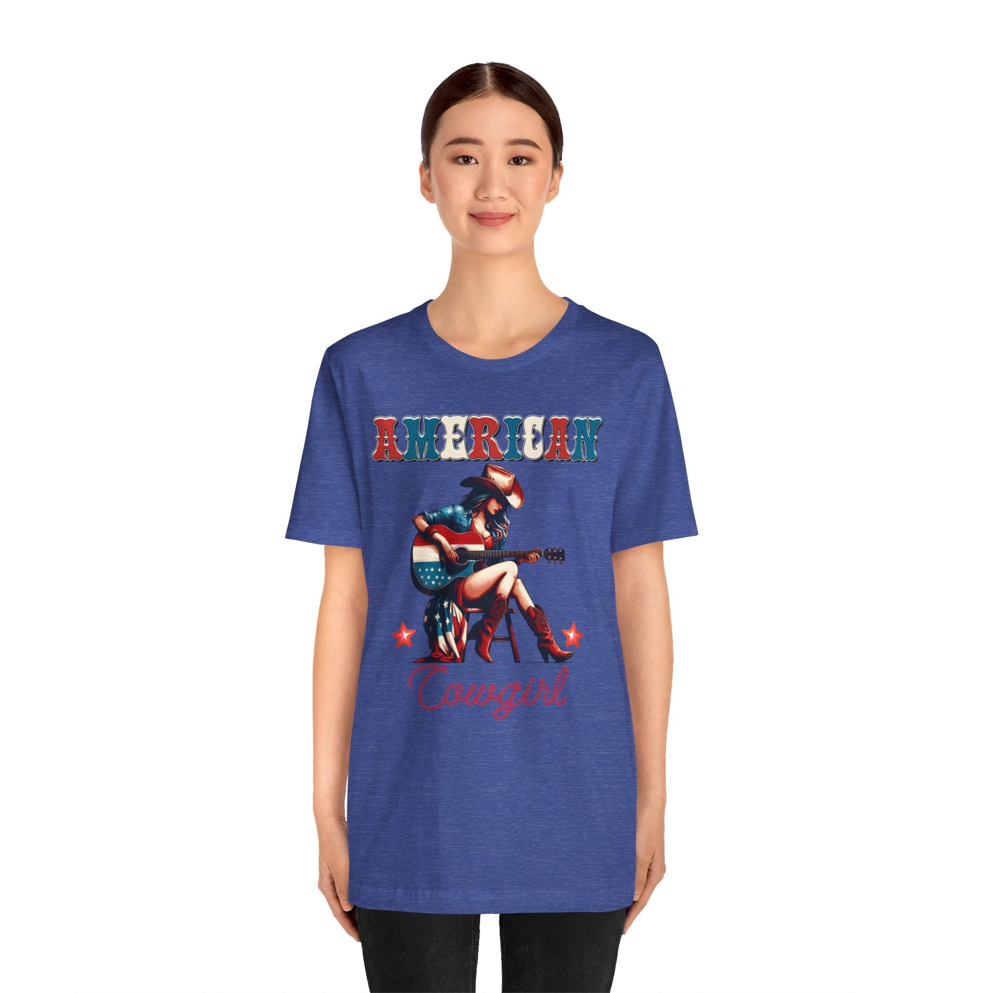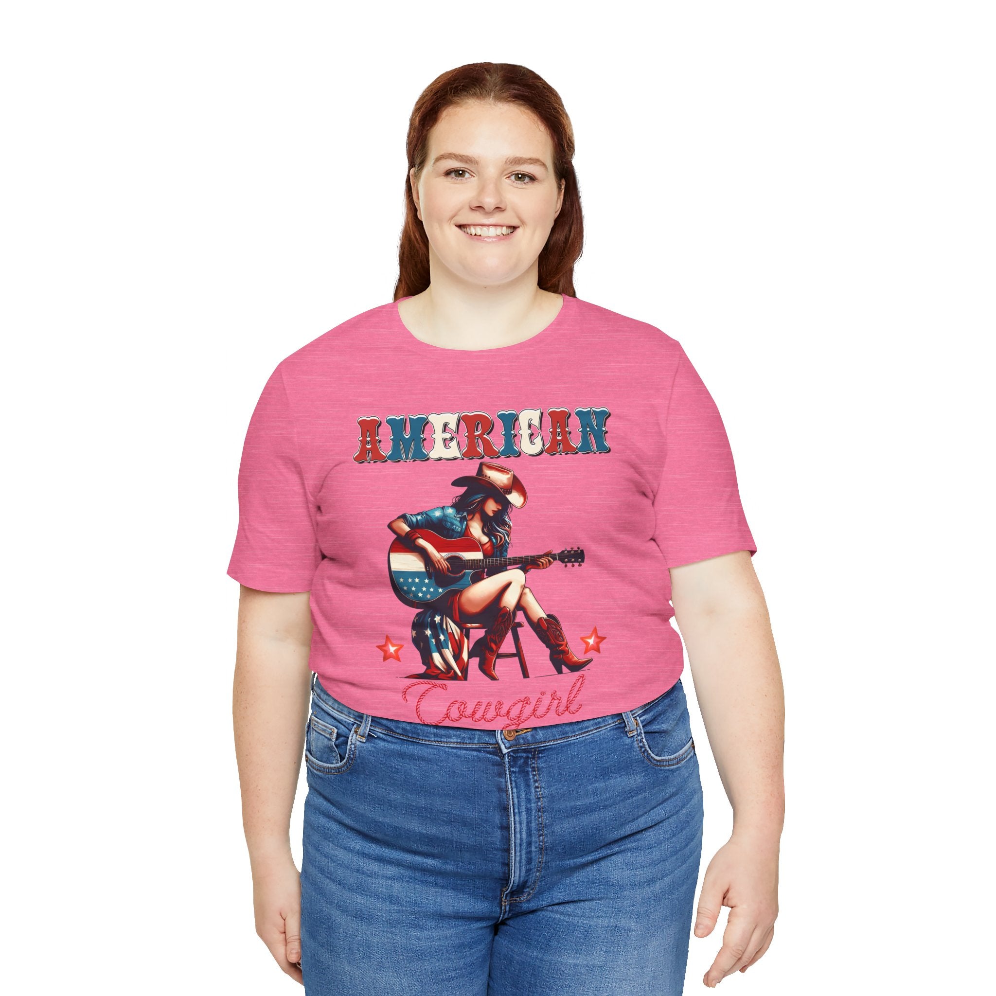 American Cowgirl, Playing Guitar Graphic, Unisex Jersey Short Sleeve Tee