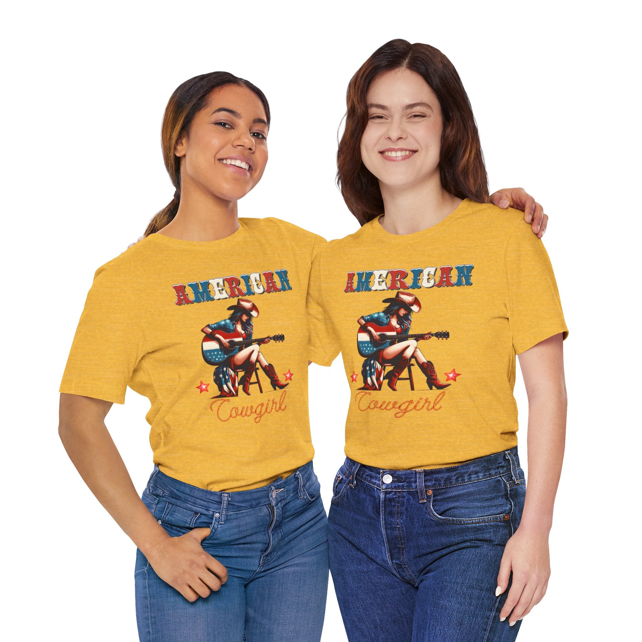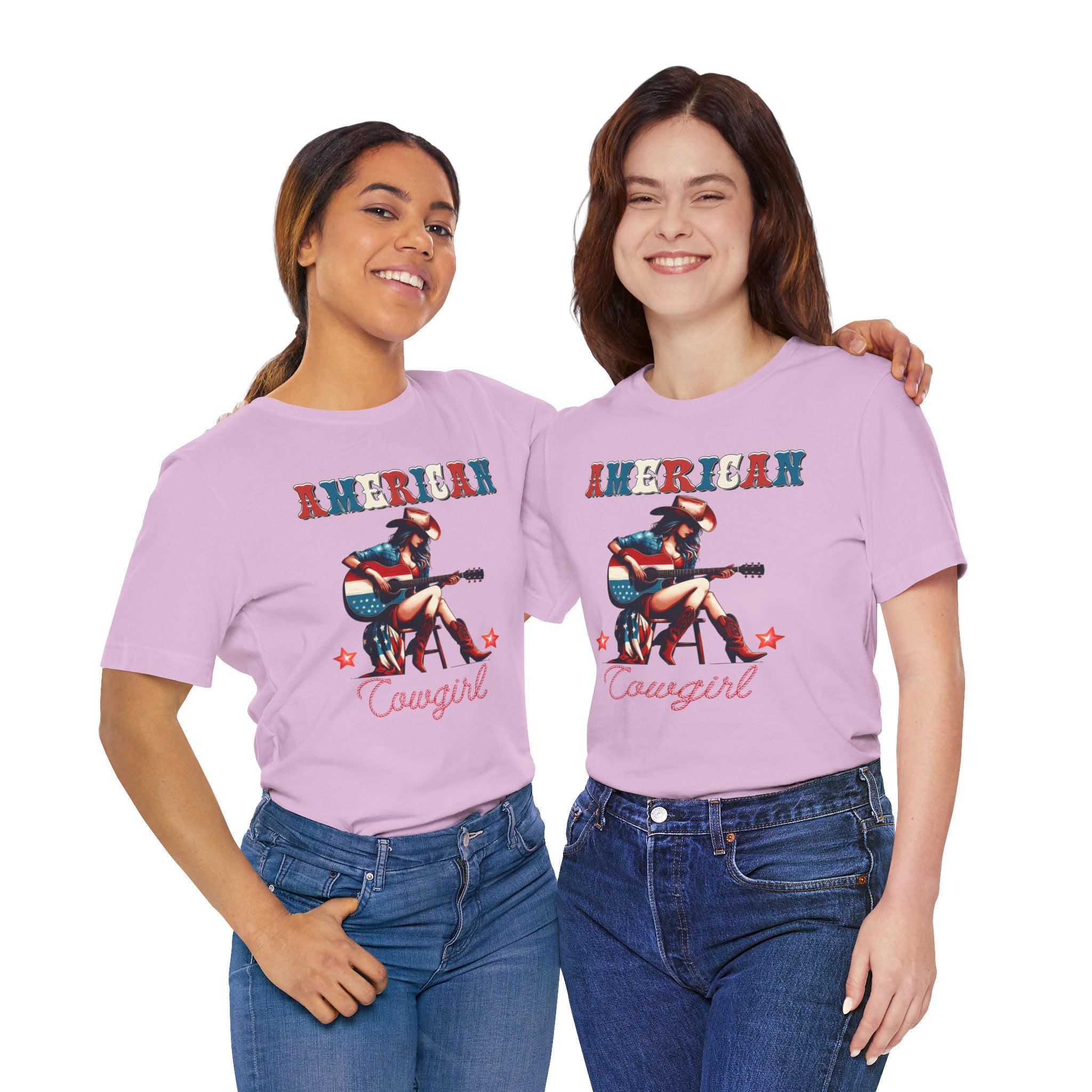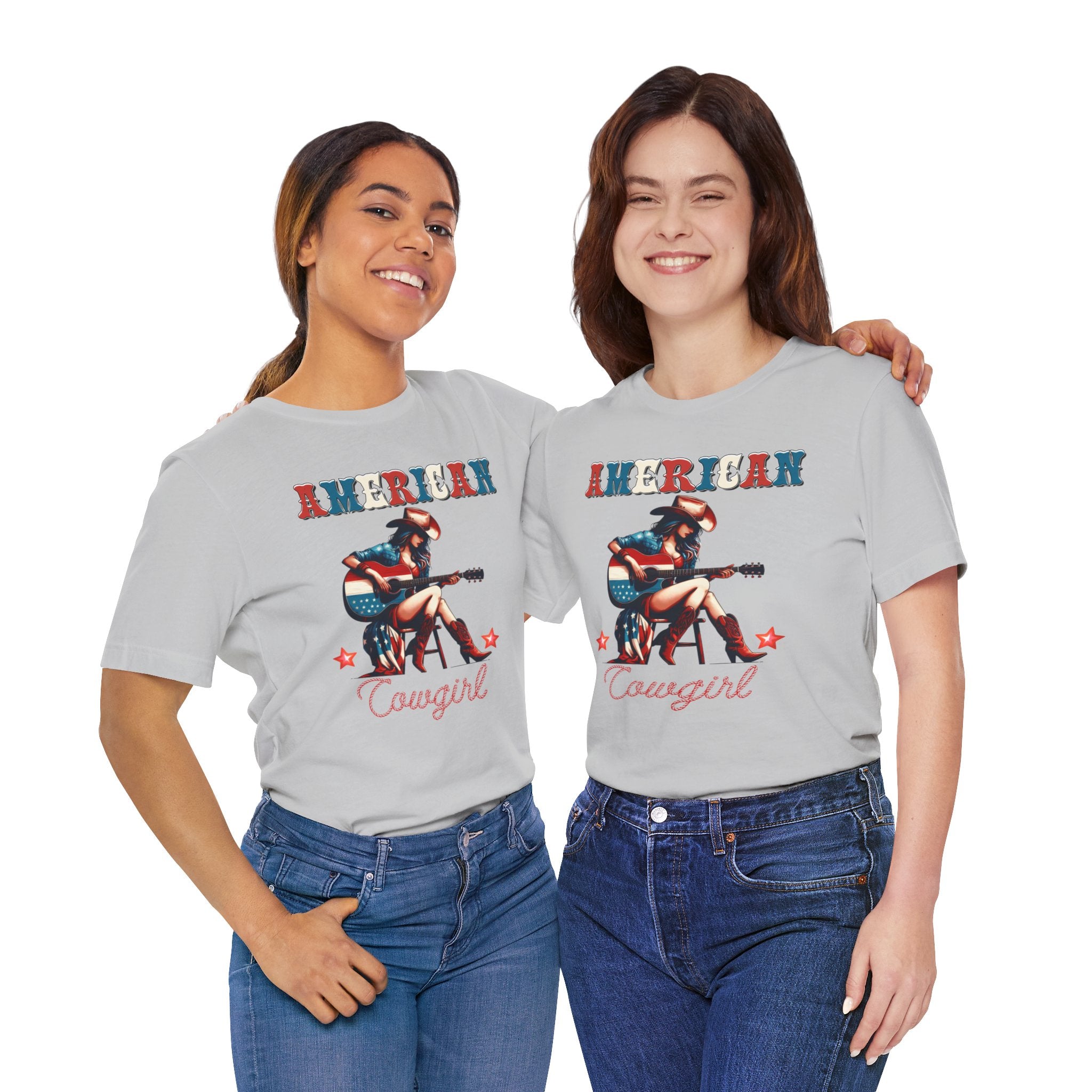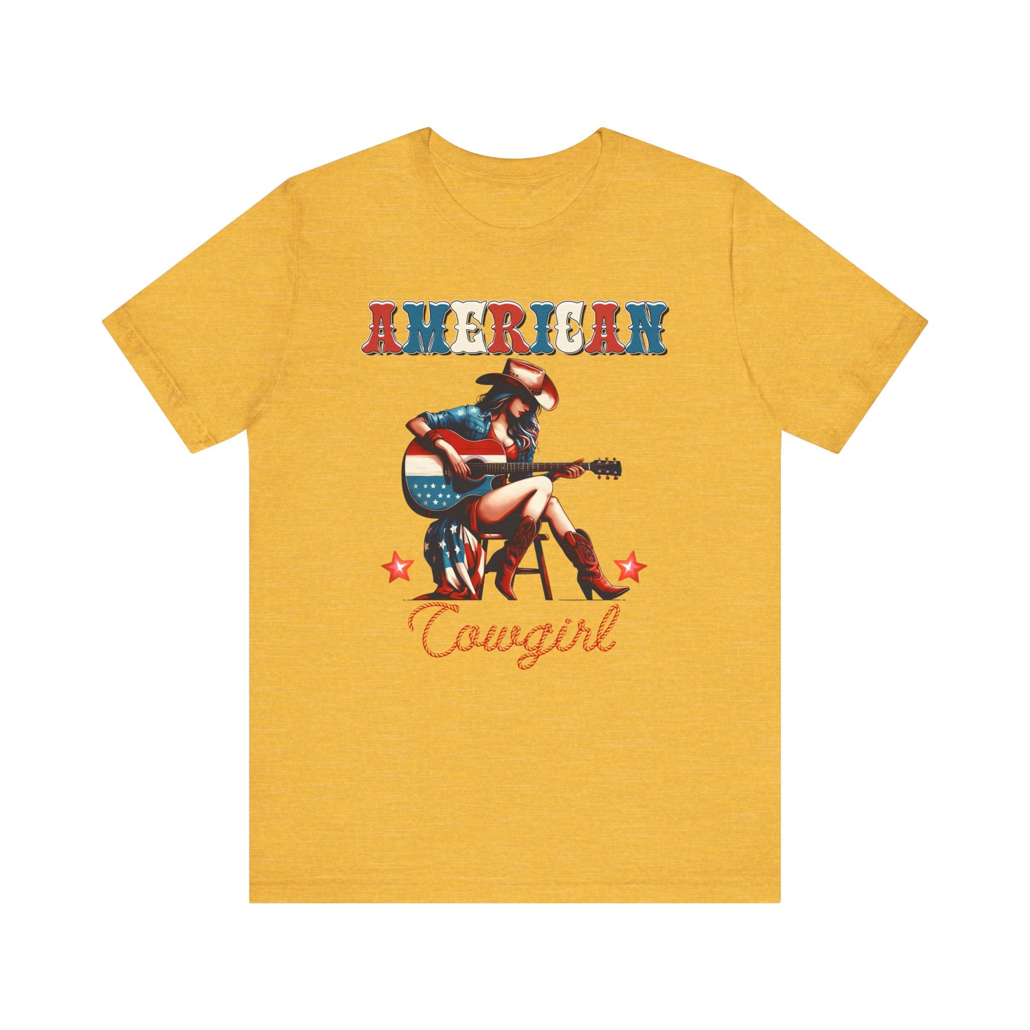 American Cowgirl, Playing Guitar Graphic, Unisex Jersey Short Sleeve Tee