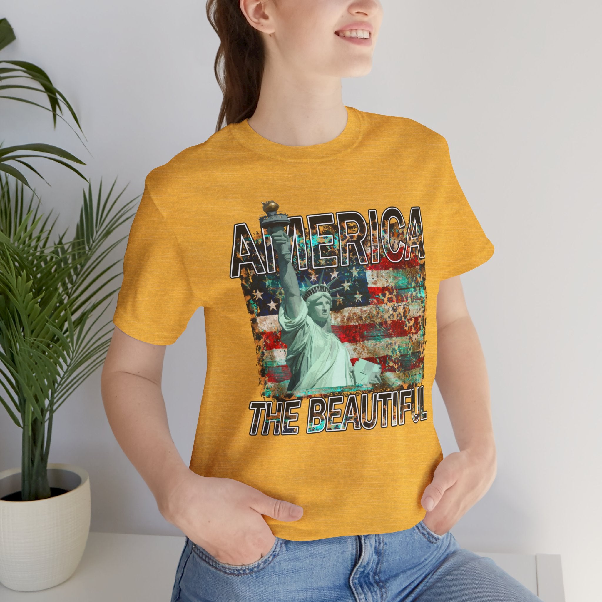 Statue Of Liberty, America The Beautiful, Unisex Jersey Short Sleeve Tee