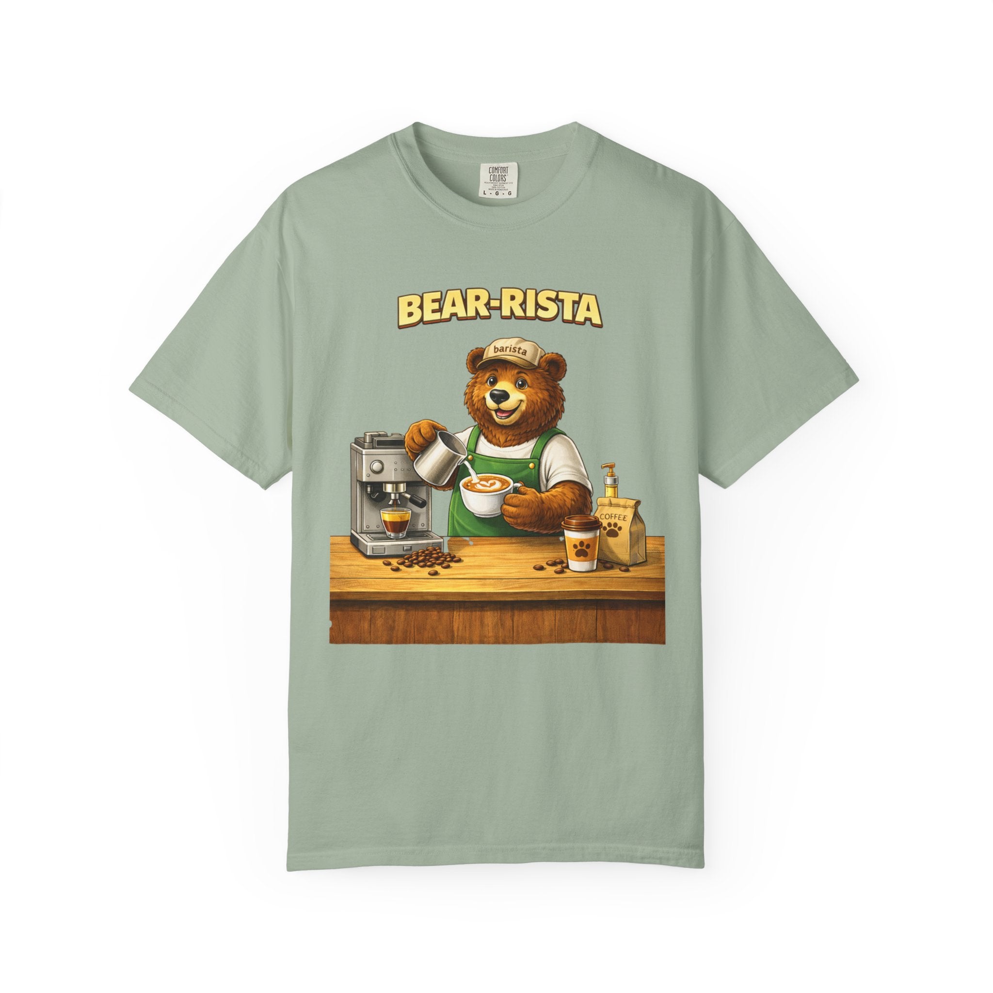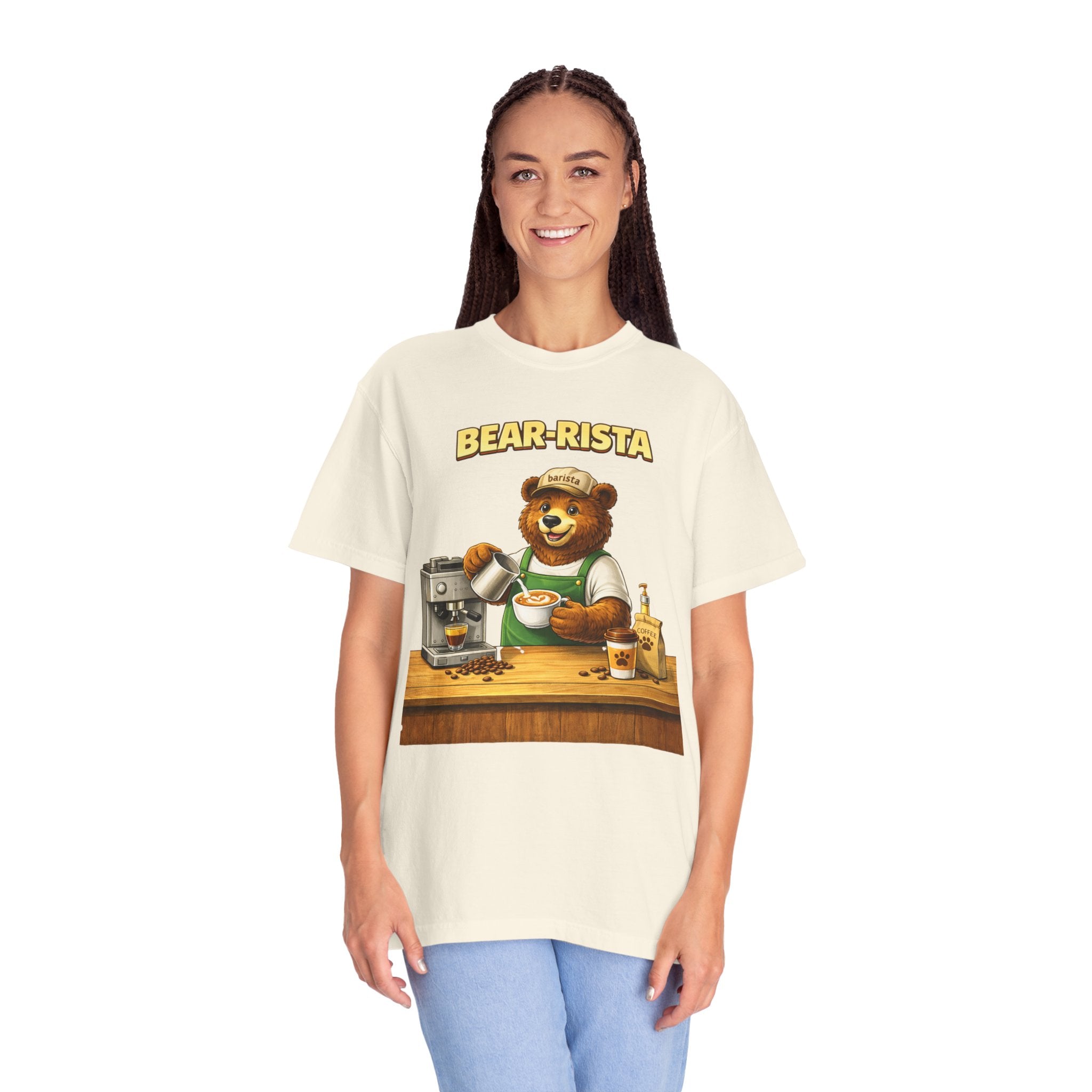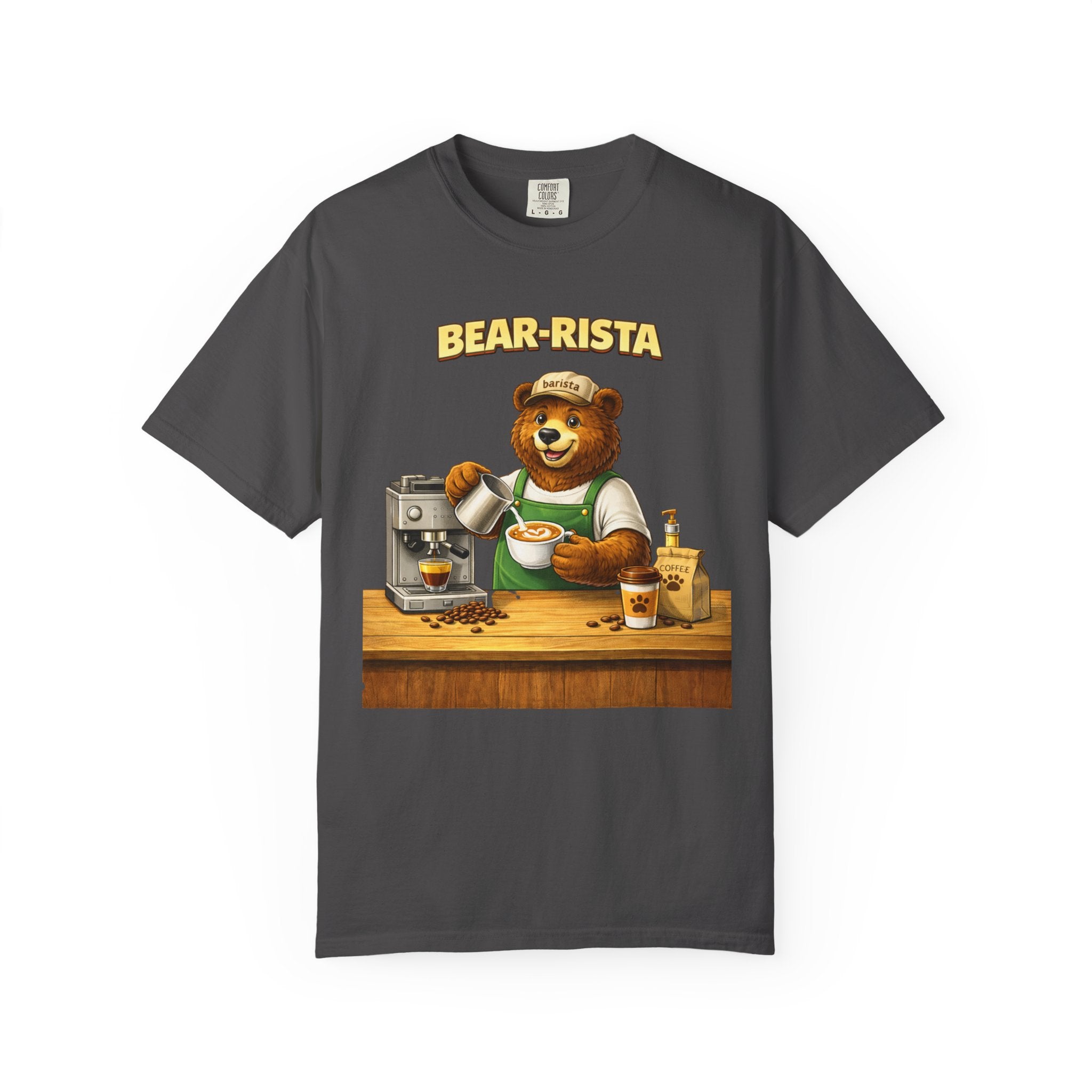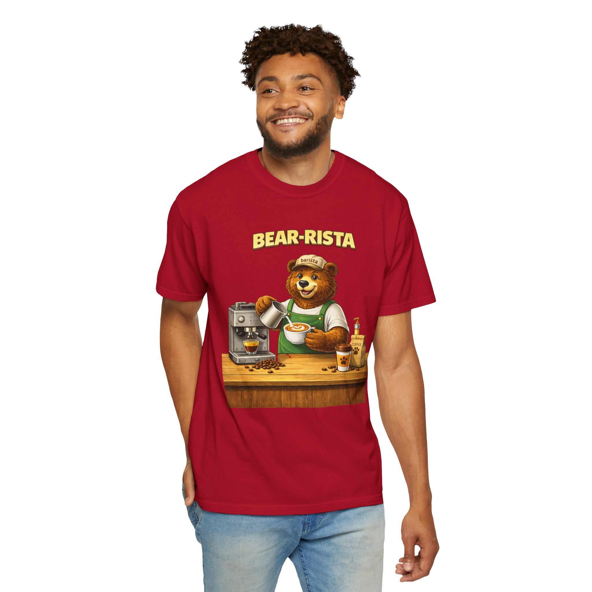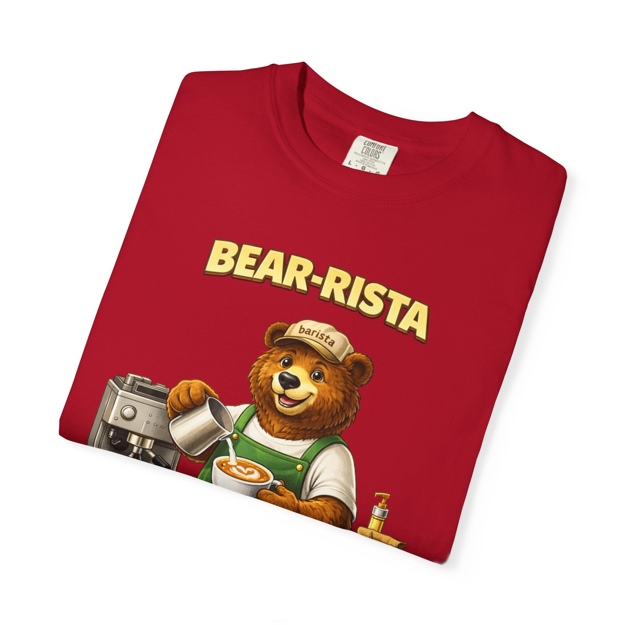 Imagine slipping into a soft, slightly lived-in tee that feels like your favorite café sweater. This Bear-Rista Coffee T-Shirt features a warm, whimsical barista bear graphic that brings a quiet smile to mornings and slow afternoons alike. The garment-dyed cotton has a muted, vintage wash and a weighty, comforting hand that holds its shape while draping easily. It sits relaxed across the shoulders and breathes well during a busy shift or a cozy coffee date. Whether you’re steaming milk, scribbling orders on a notepad, or settling into a corner table with a to-go cup, the tee carries a gentle, approachable vibe — playful but grounded. The design speaks to people who love small coffee rituals, neighborhood cafés, and cozy workwear with character. It layers effortlessly under an apron, flannel, or an open jacket for market mornings, slow Sundays, or casual meetups at the roastery.