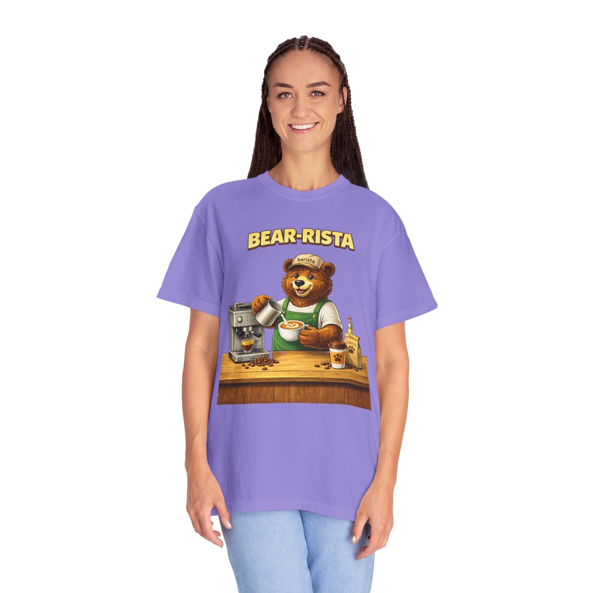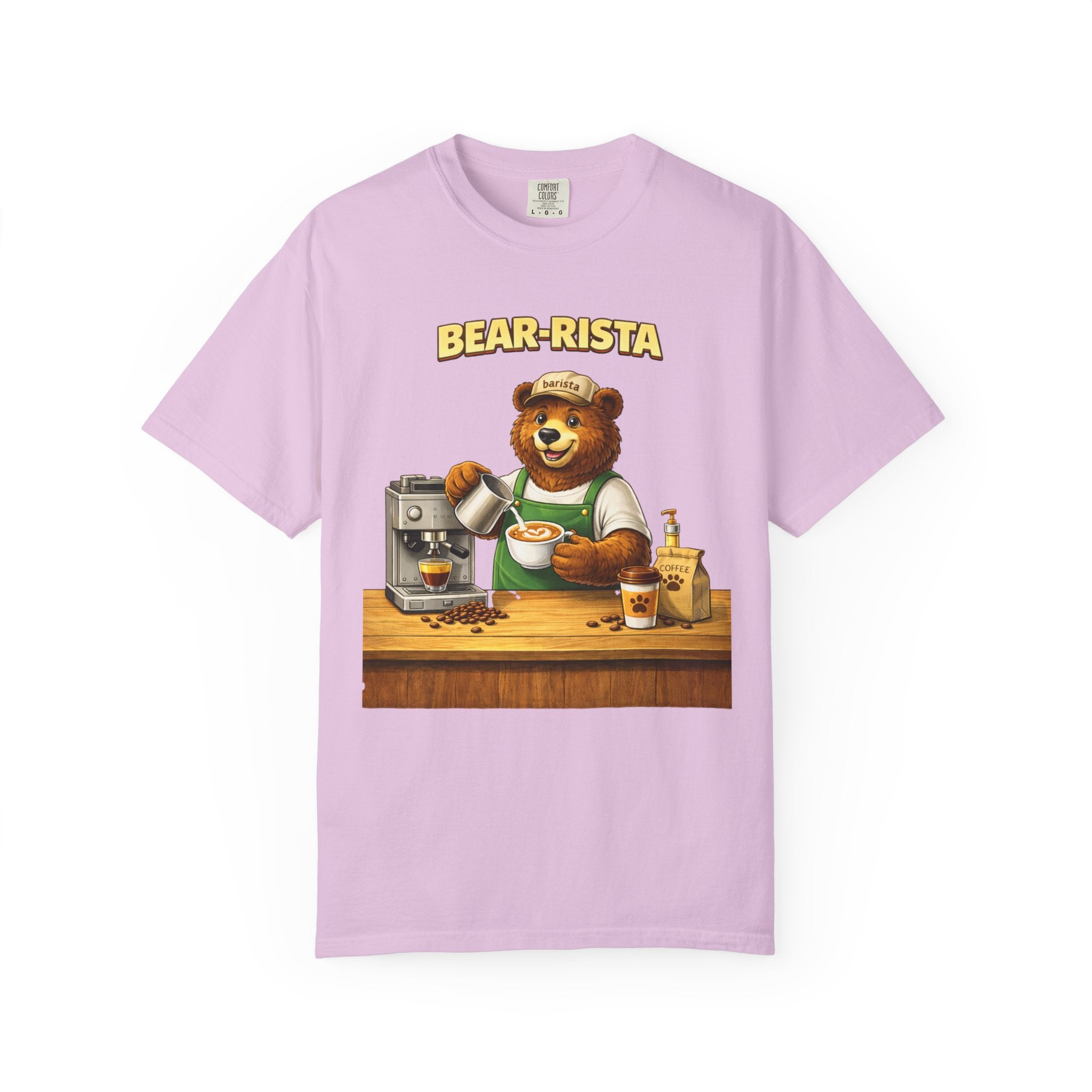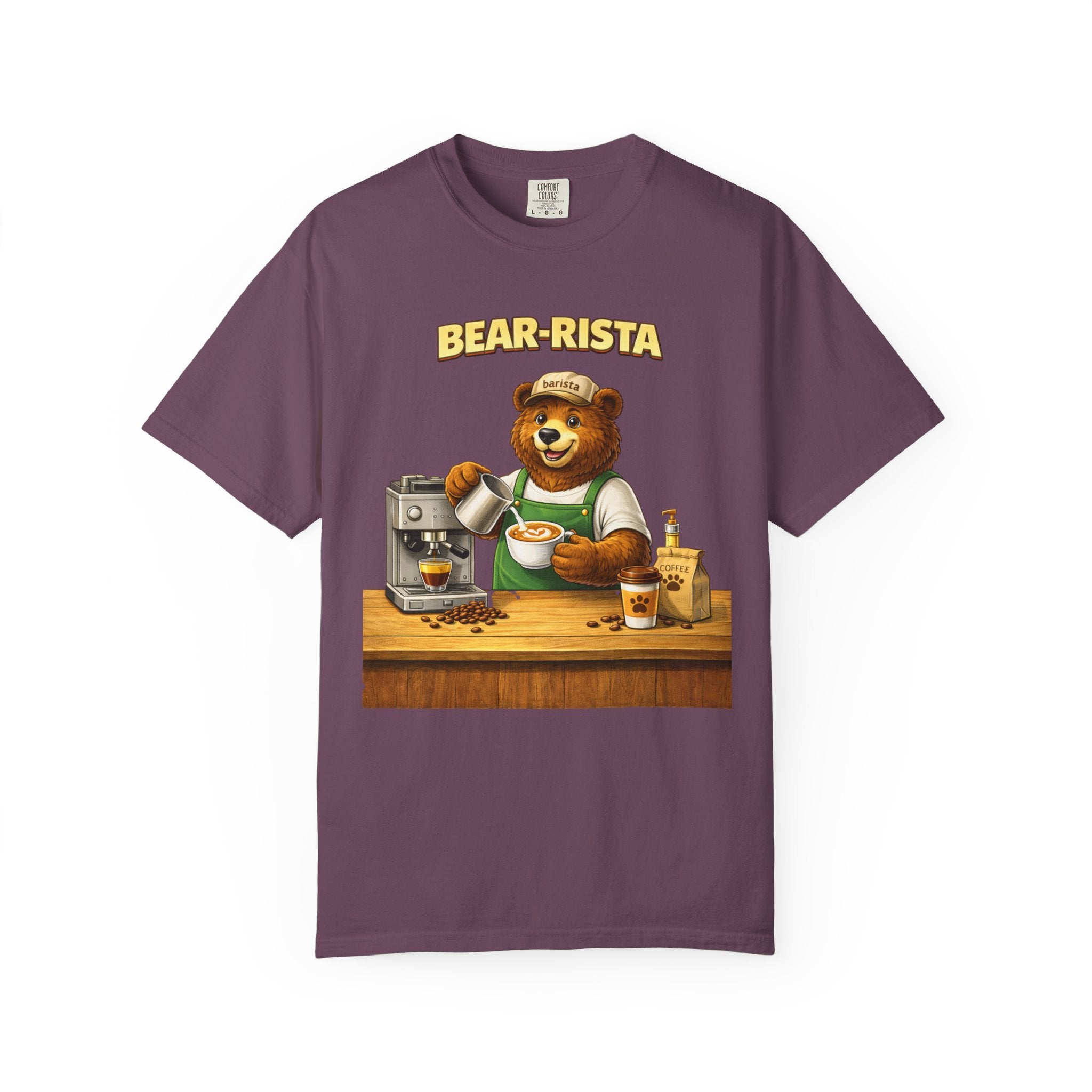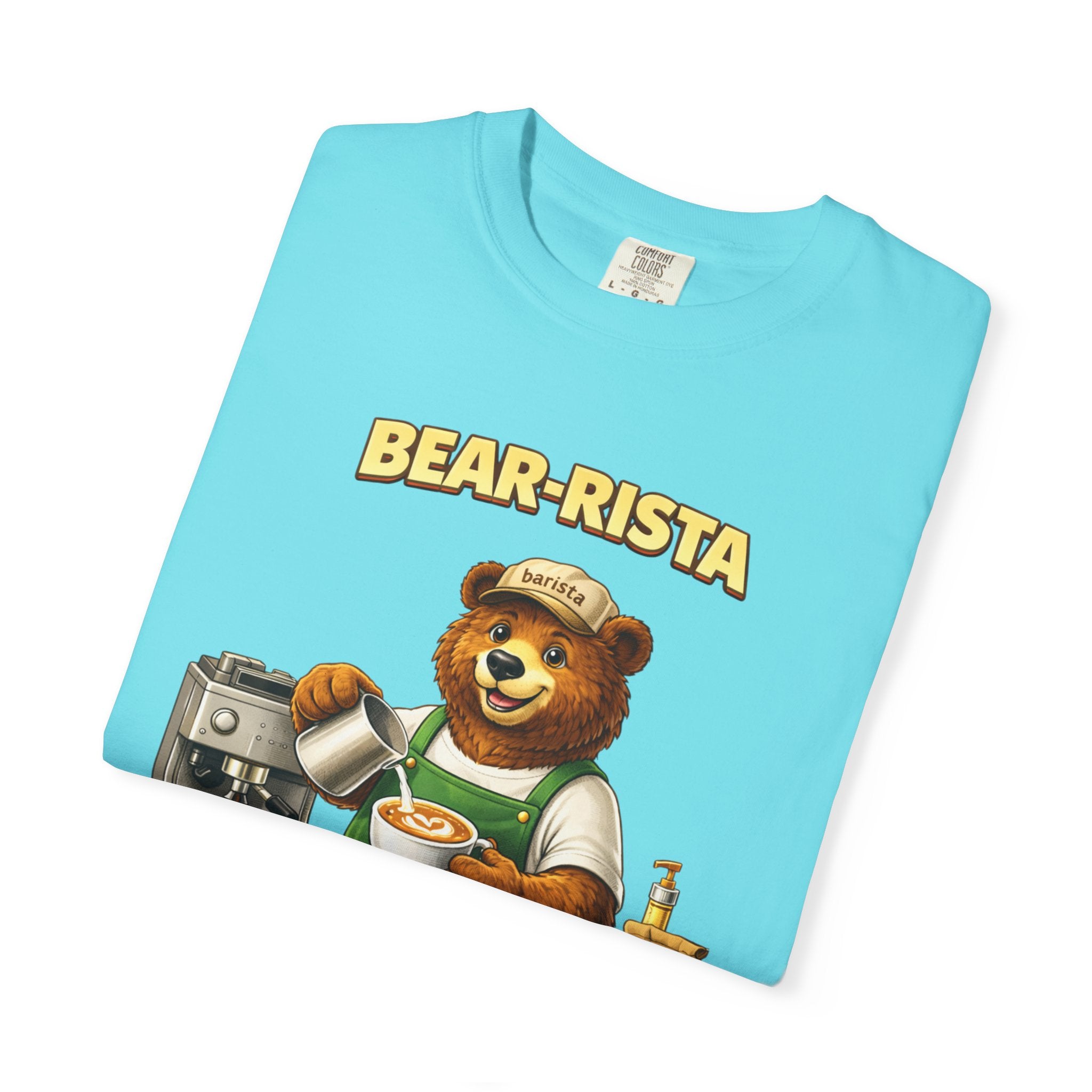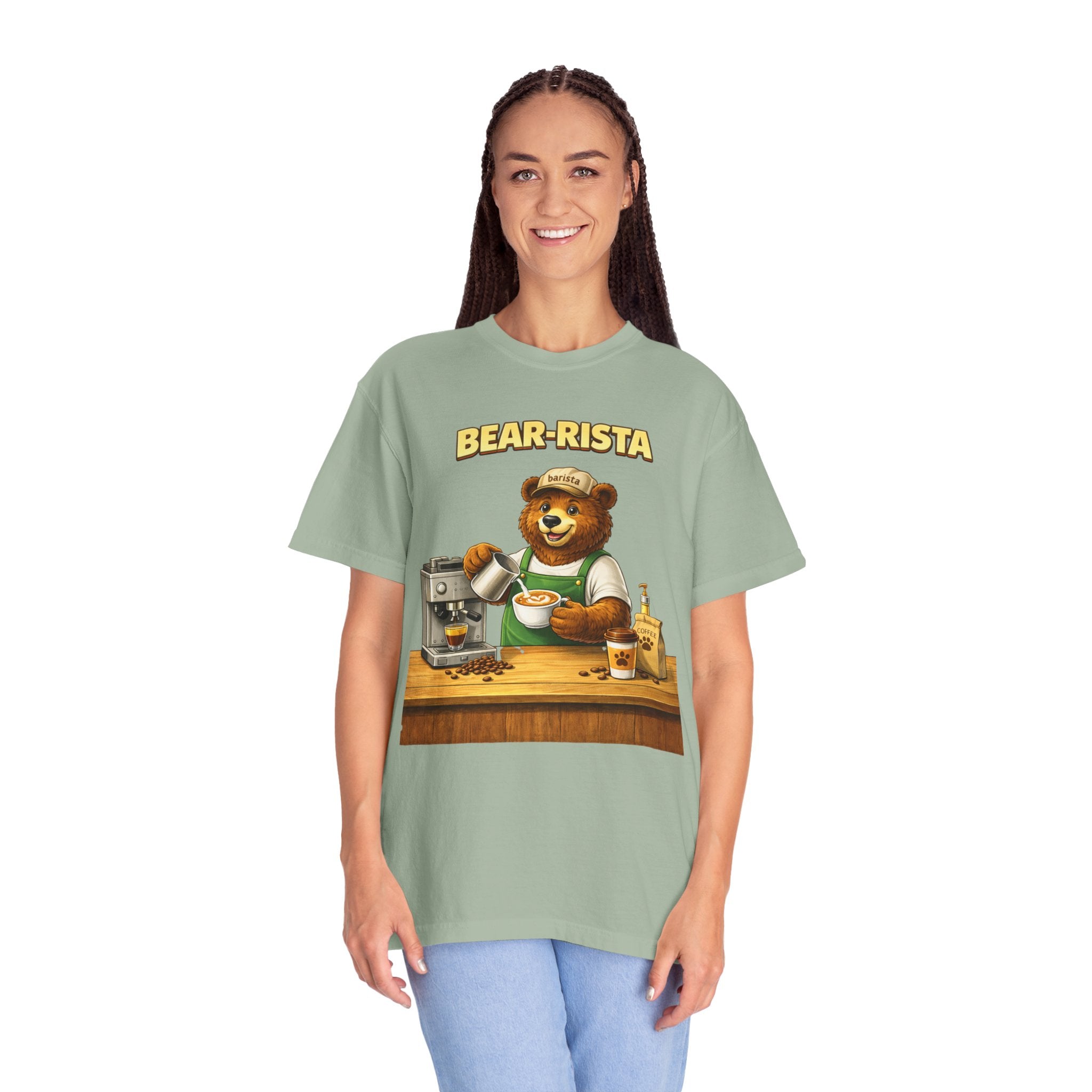 Imagine slipping into a soft, slightly lived-in tee that feels like your favorite café sweater. This Bear-Rista Coffee T-Shirt features a warm, whimsical barista bear graphic that brings a quiet smile to mornings and slow afternoons alike. The garment-dyed cotton has a muted, vintage wash and a weighty, comforting hand that holds its shape while draping easily. It sits relaxed across the shoulders and breathes well during a busy shift or a cozy coffee date. Whether you’re steaming milk, scribbling orders on a notepad, or settling into a corner table with a to-go cup, the tee carries a gentle, approachable vibe — playful but grounded. The design speaks to people who love small coffee rituals, neighborhood cafés, and cozy workwear with character. It layers effortlessly under an apron, flannel, or an open jacket for market mornings, slow Sundays, or casual meetups at the roastery.