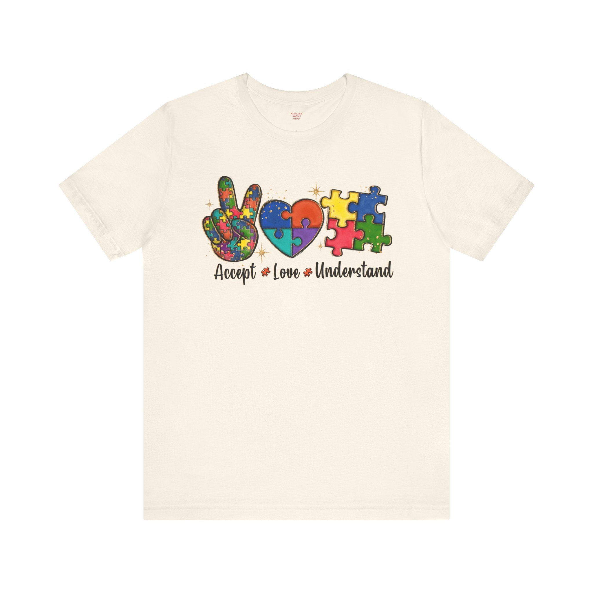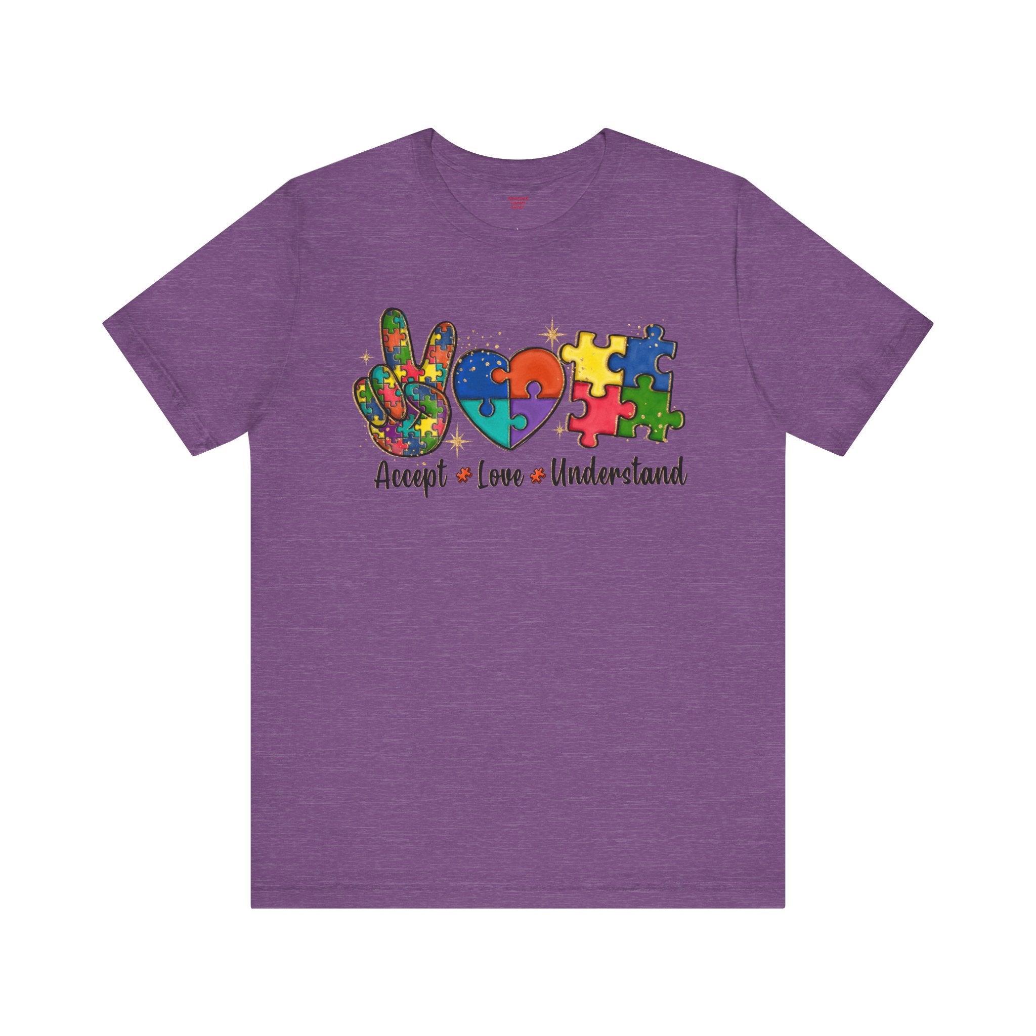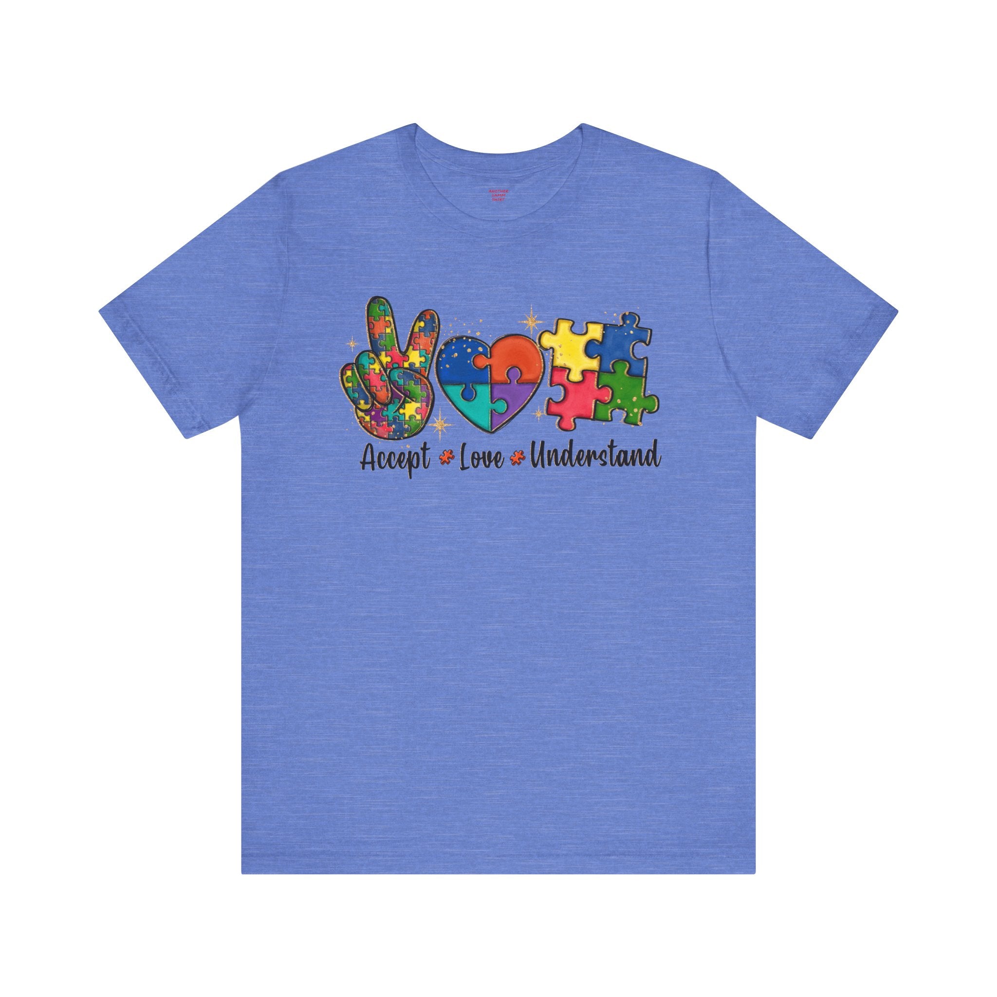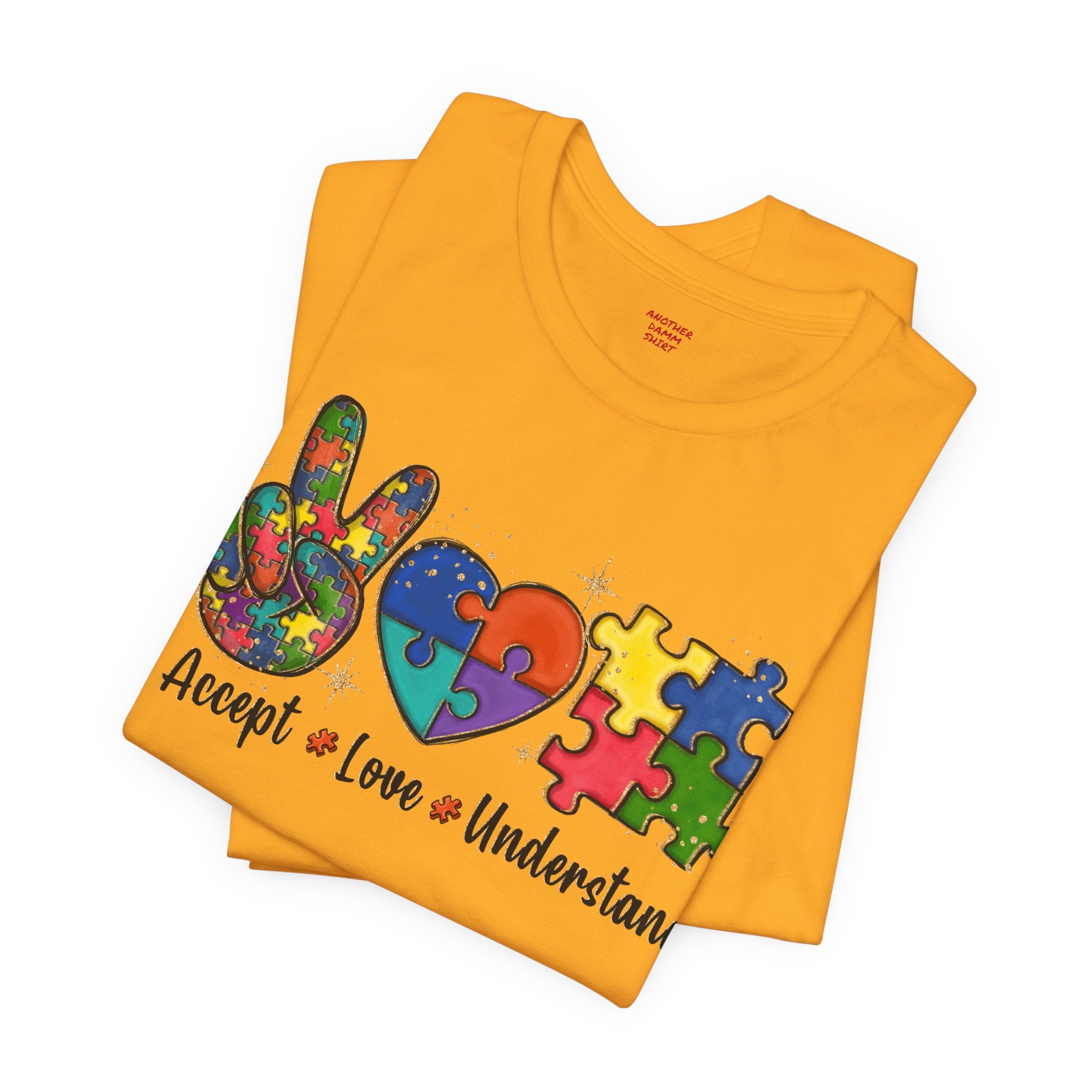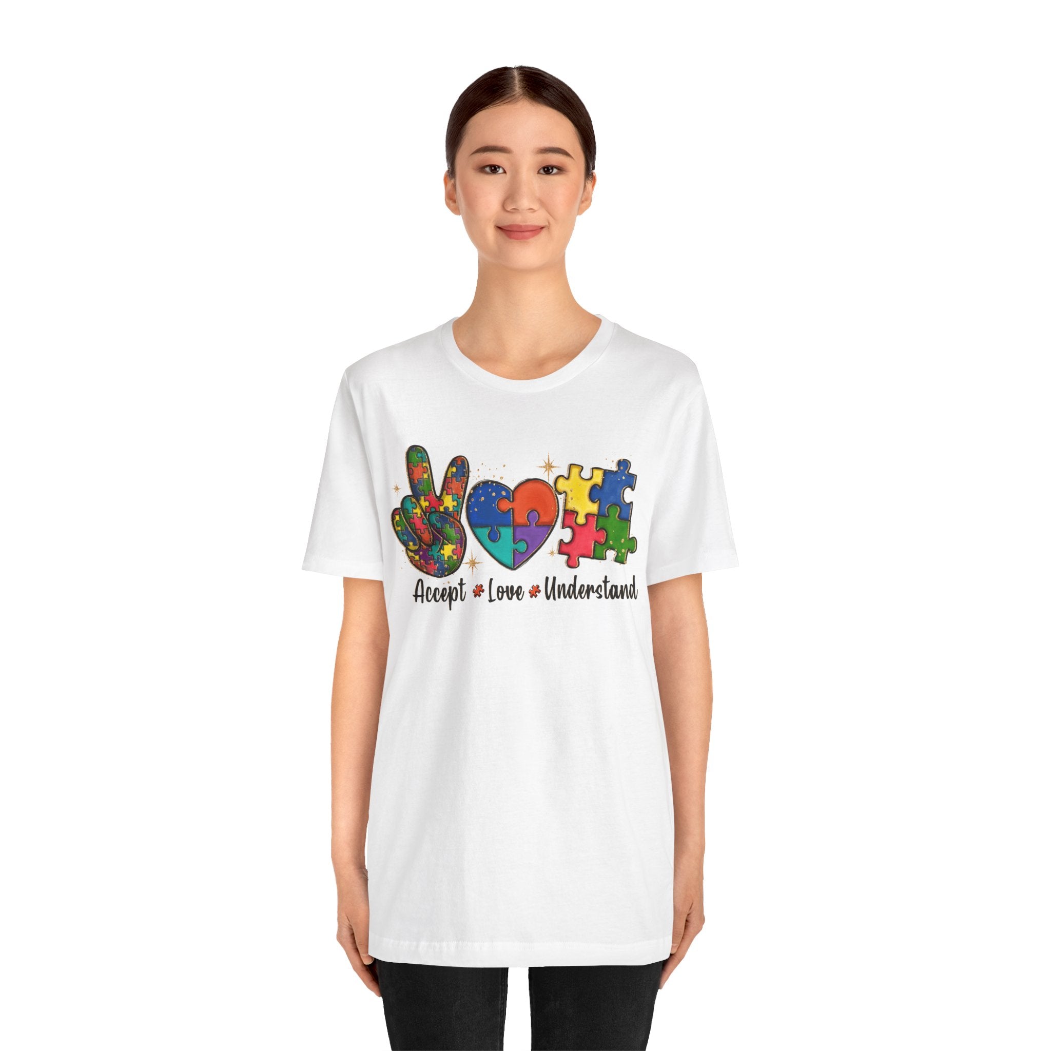 Autism Awareness Unisex T-Shirt - Colorful Accept, Love, Understand Design