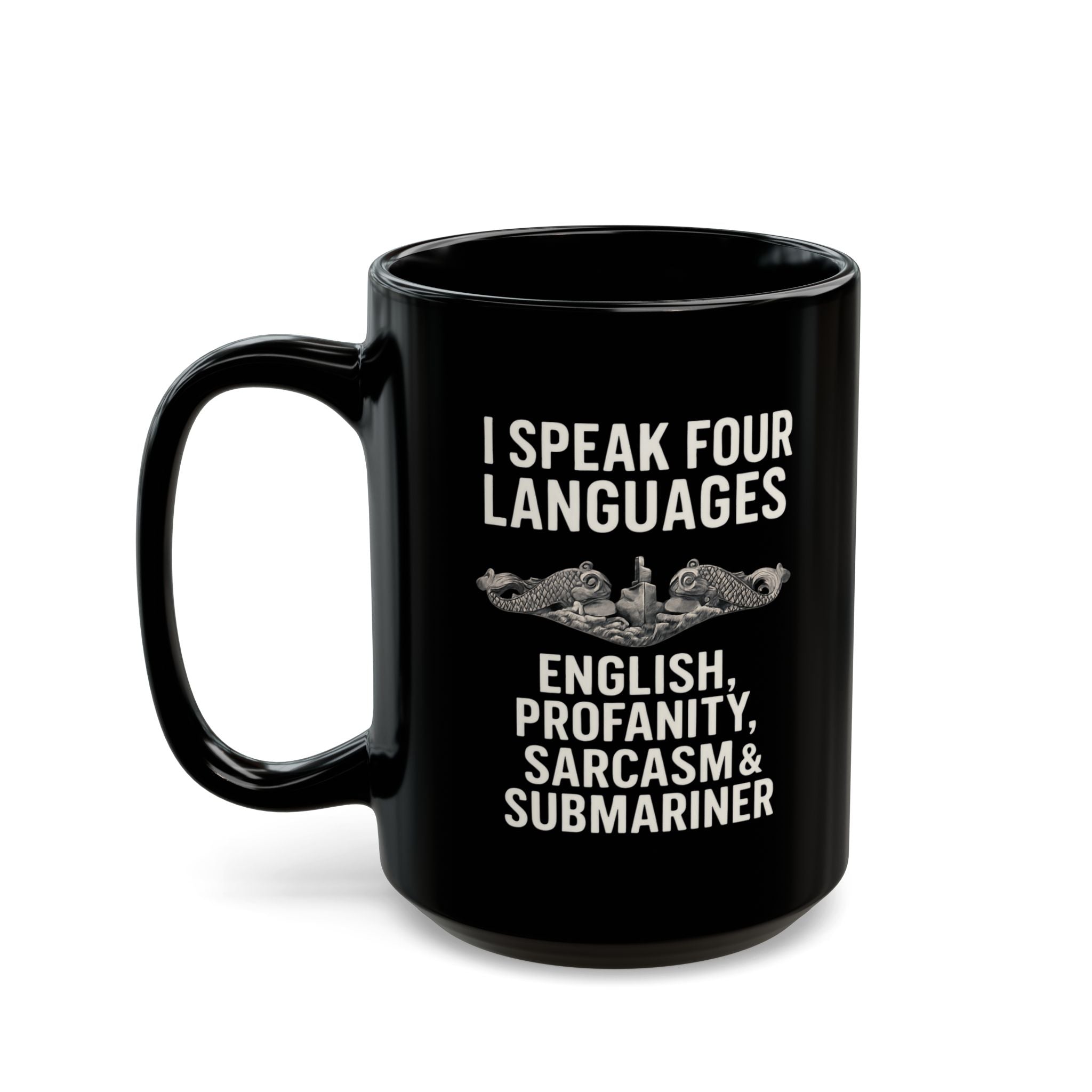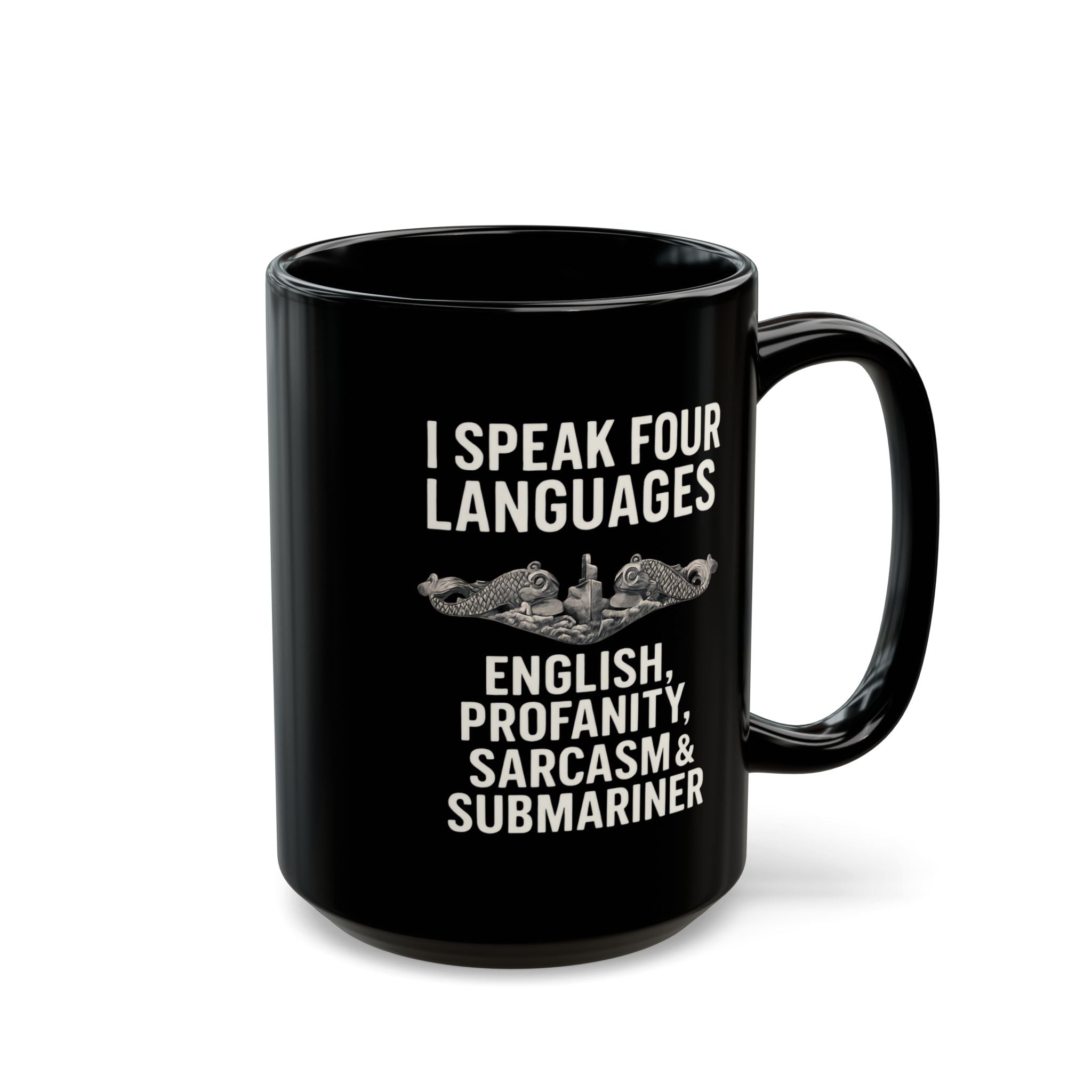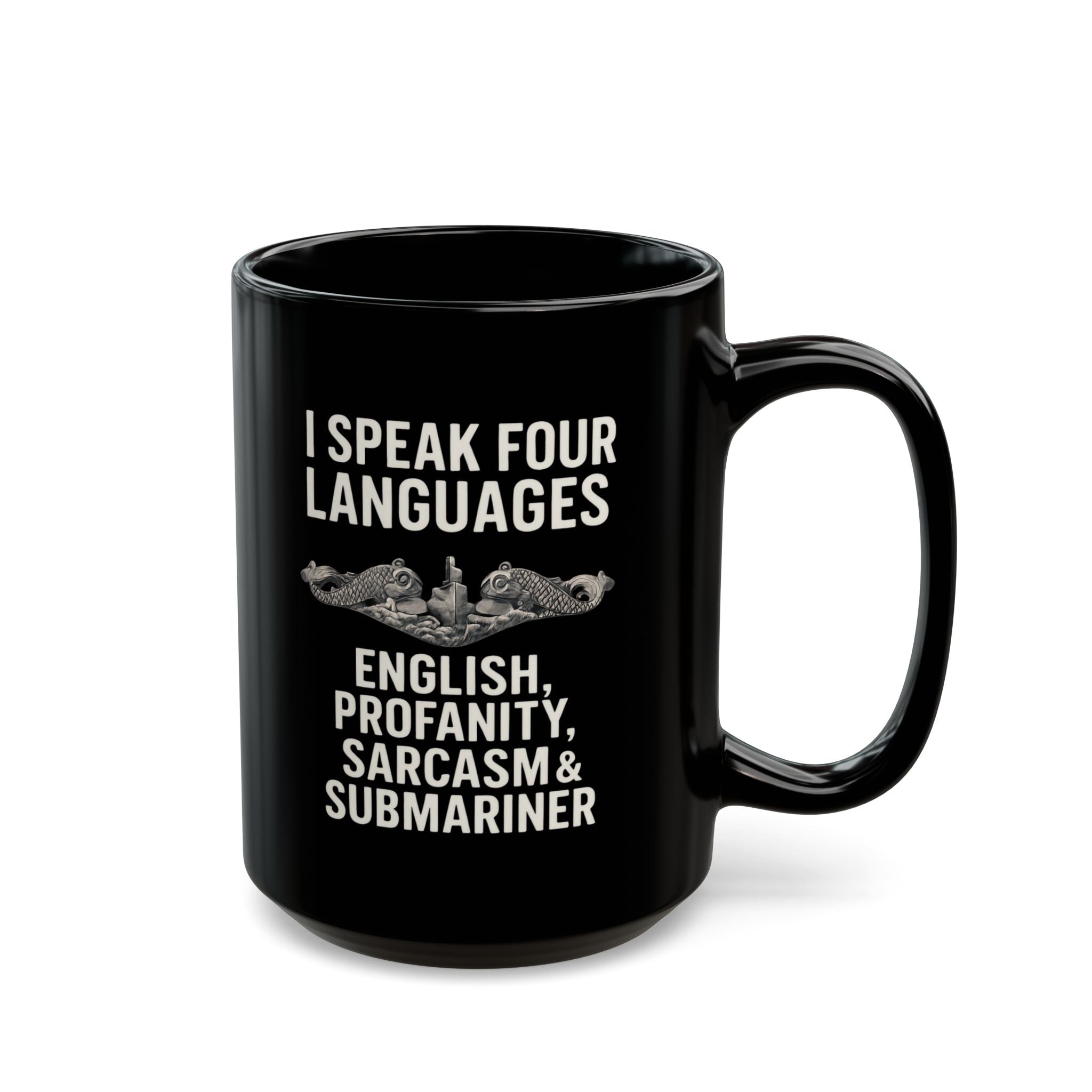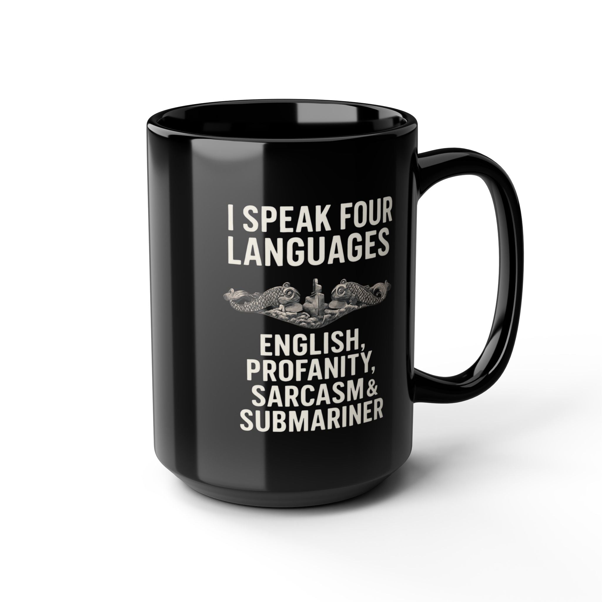 Funny Submarine Language Black Mug - Humor Gift for Coffee Lovers, Sarcasm, Birthday, Home Office, Travel, Language Enthusiasts