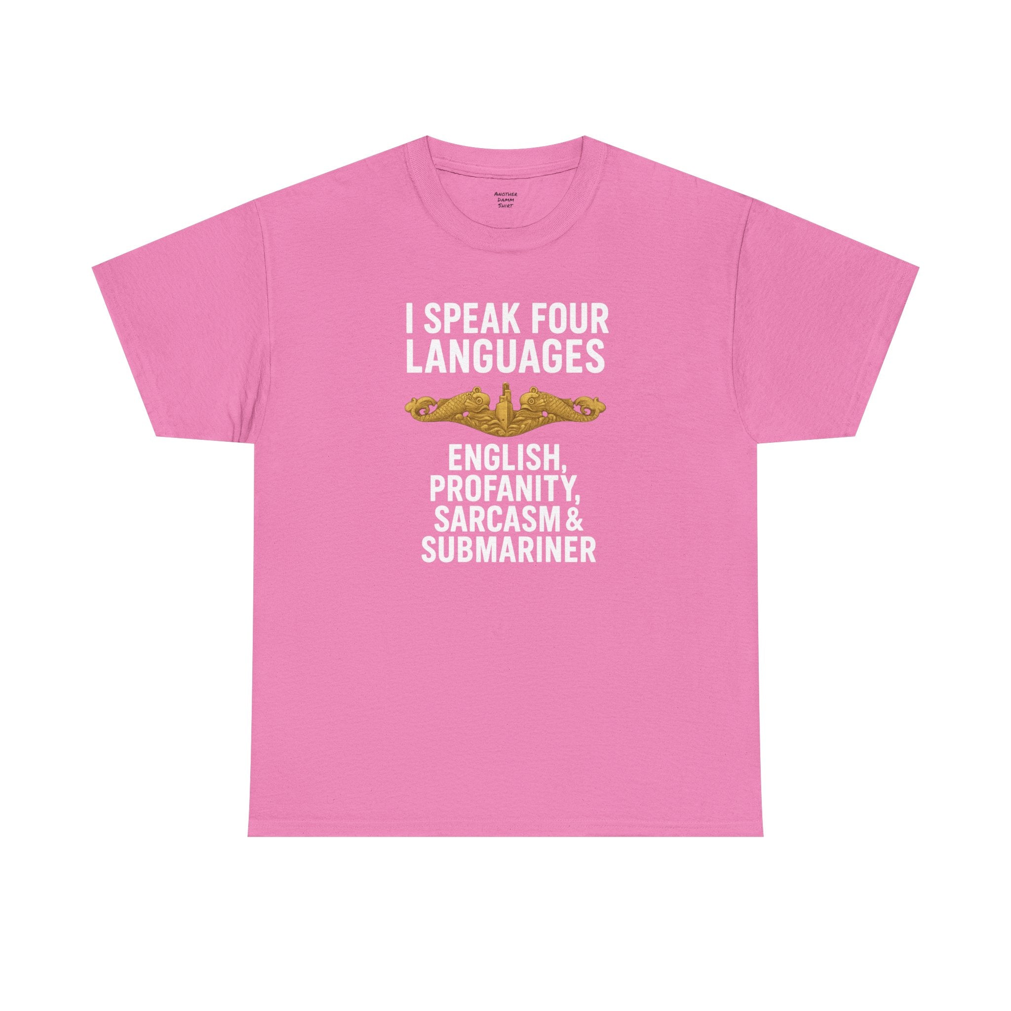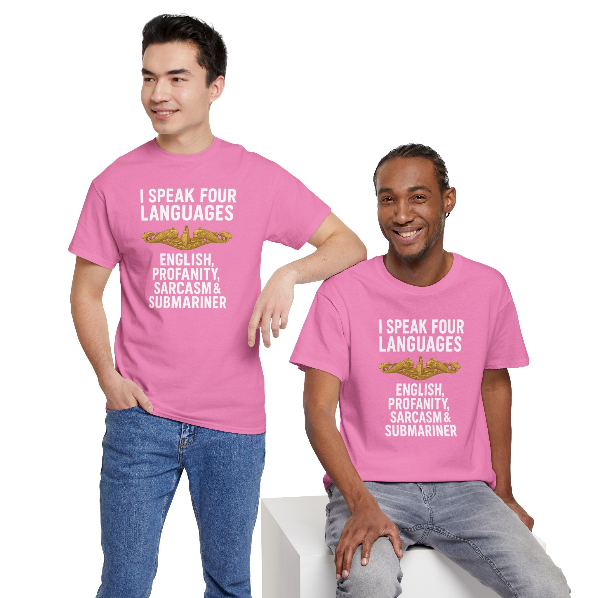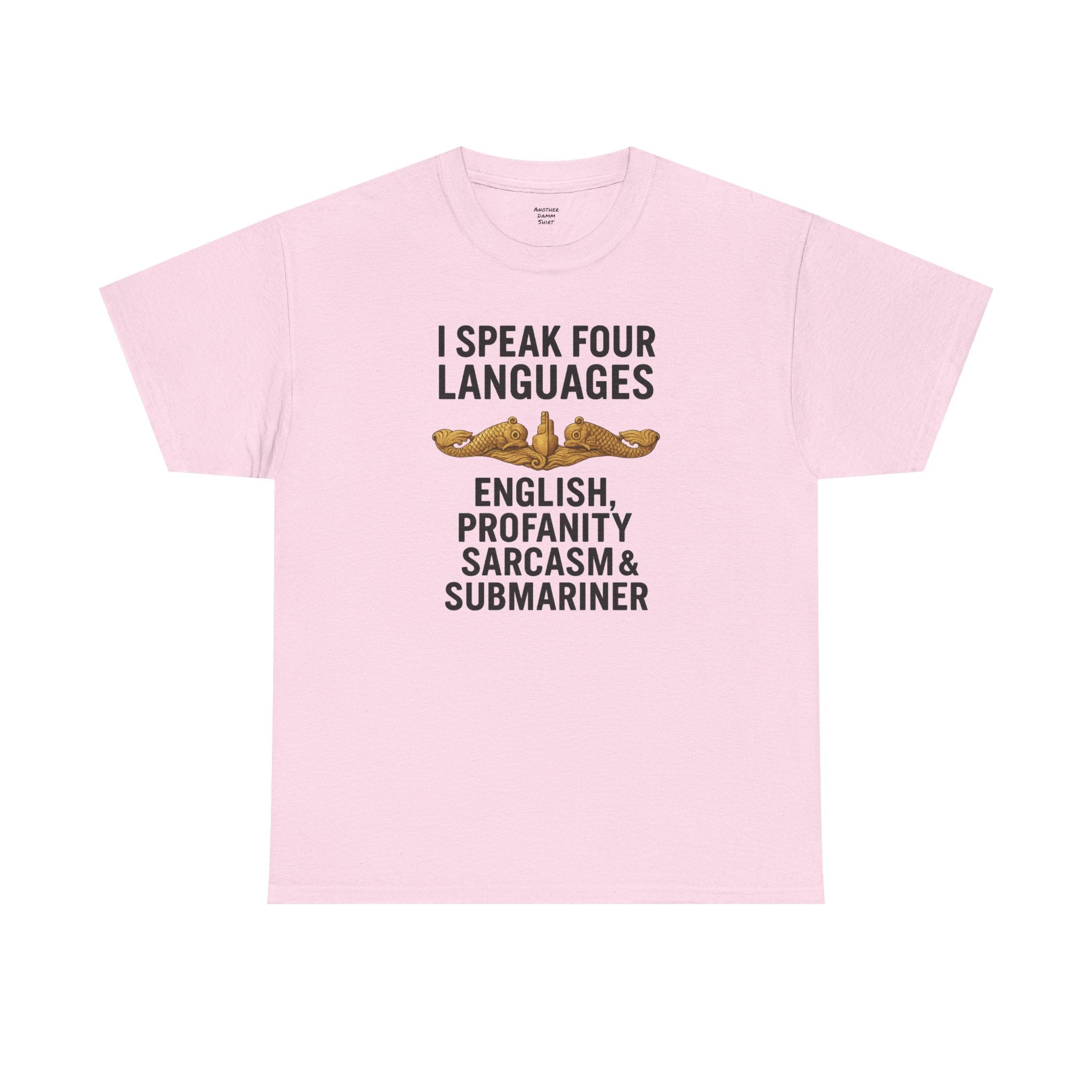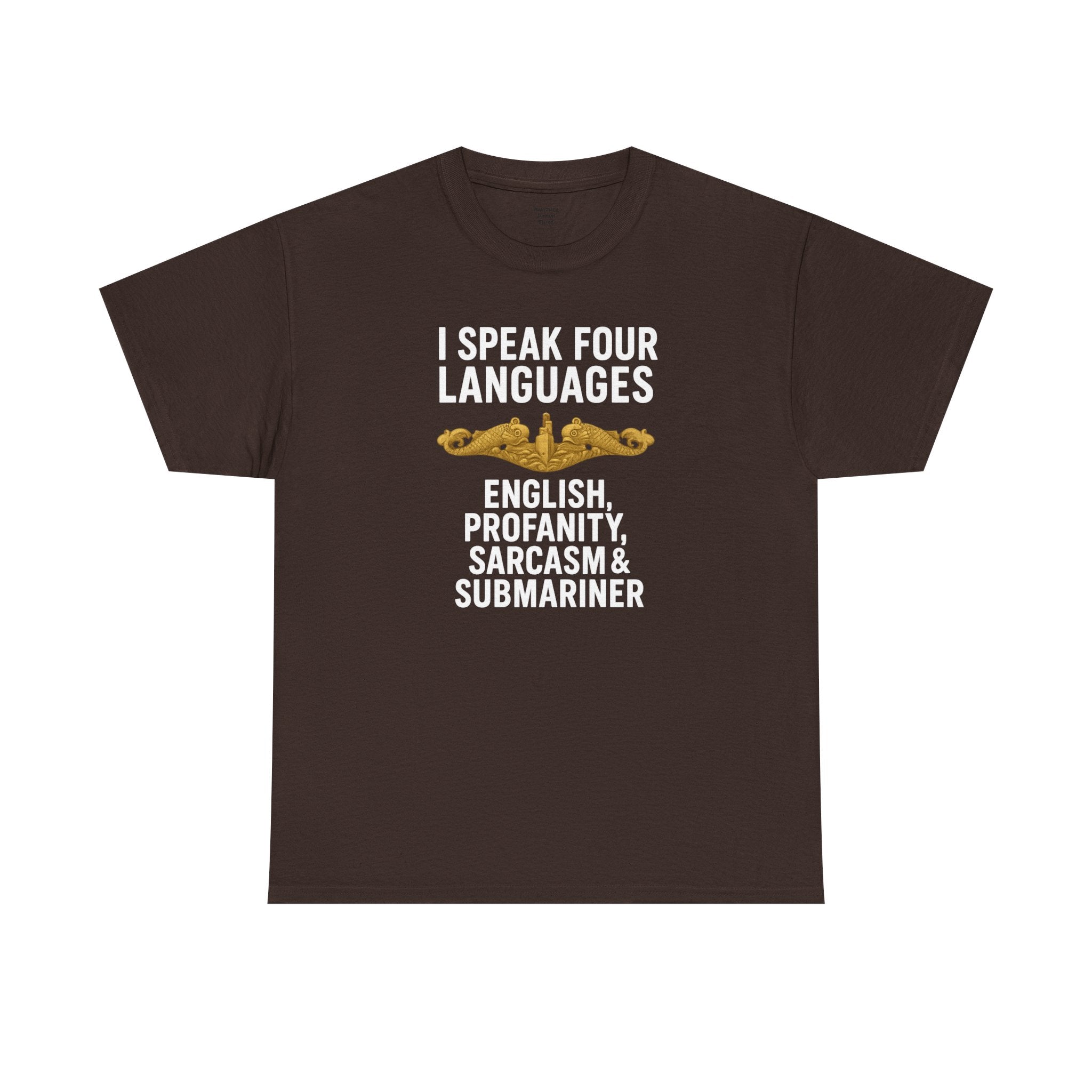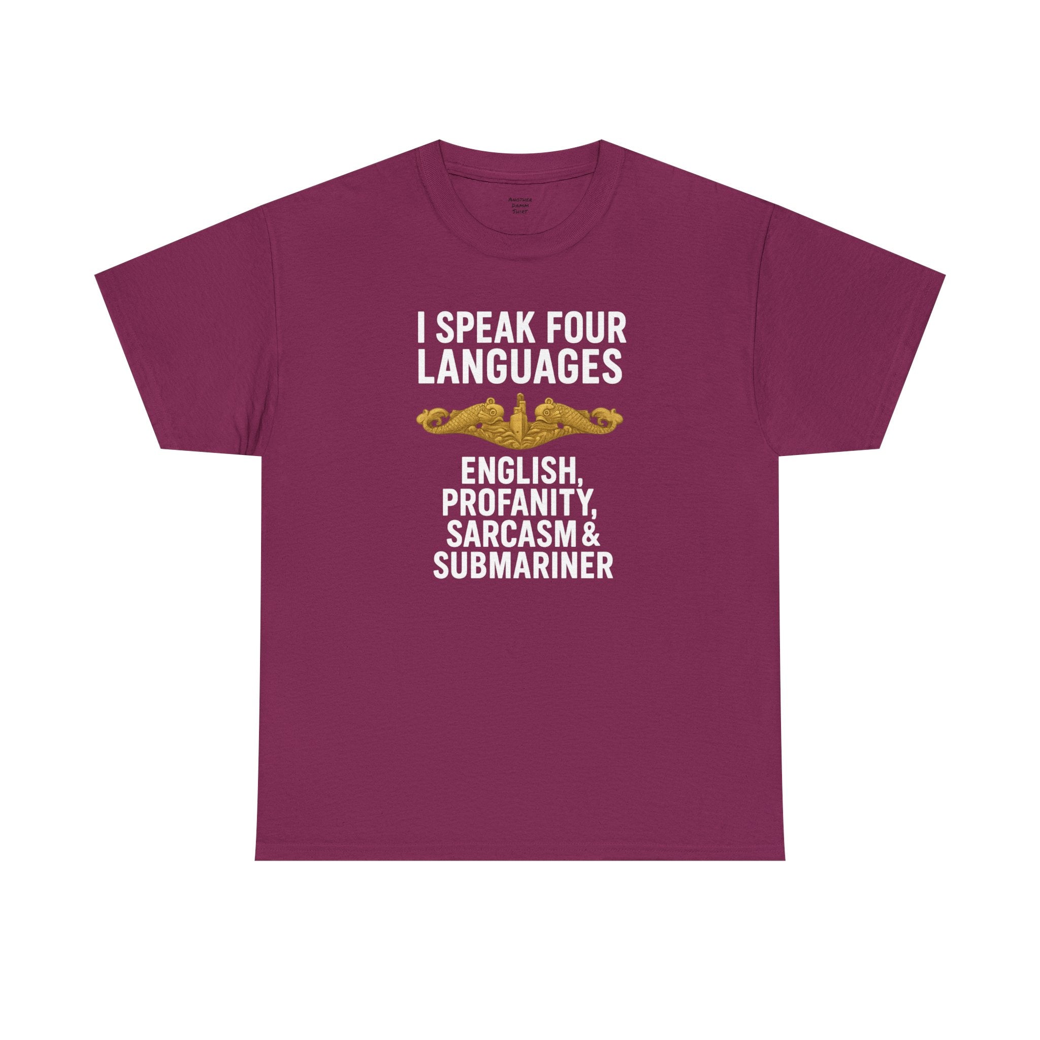 This United States Submarines Funny Multilingual T-Shirt is a perfect gift for language lovers with its humor and sarcastic design. Ideal for birthdays and casual wear, this tee is made from strong and smooth fabric, featuring shoulder tape, ribbed knit collar, and no side seams for a comfortable fit. Suitable for adults and made with medium fabric, this tee offers year-round comfort and sustainability.