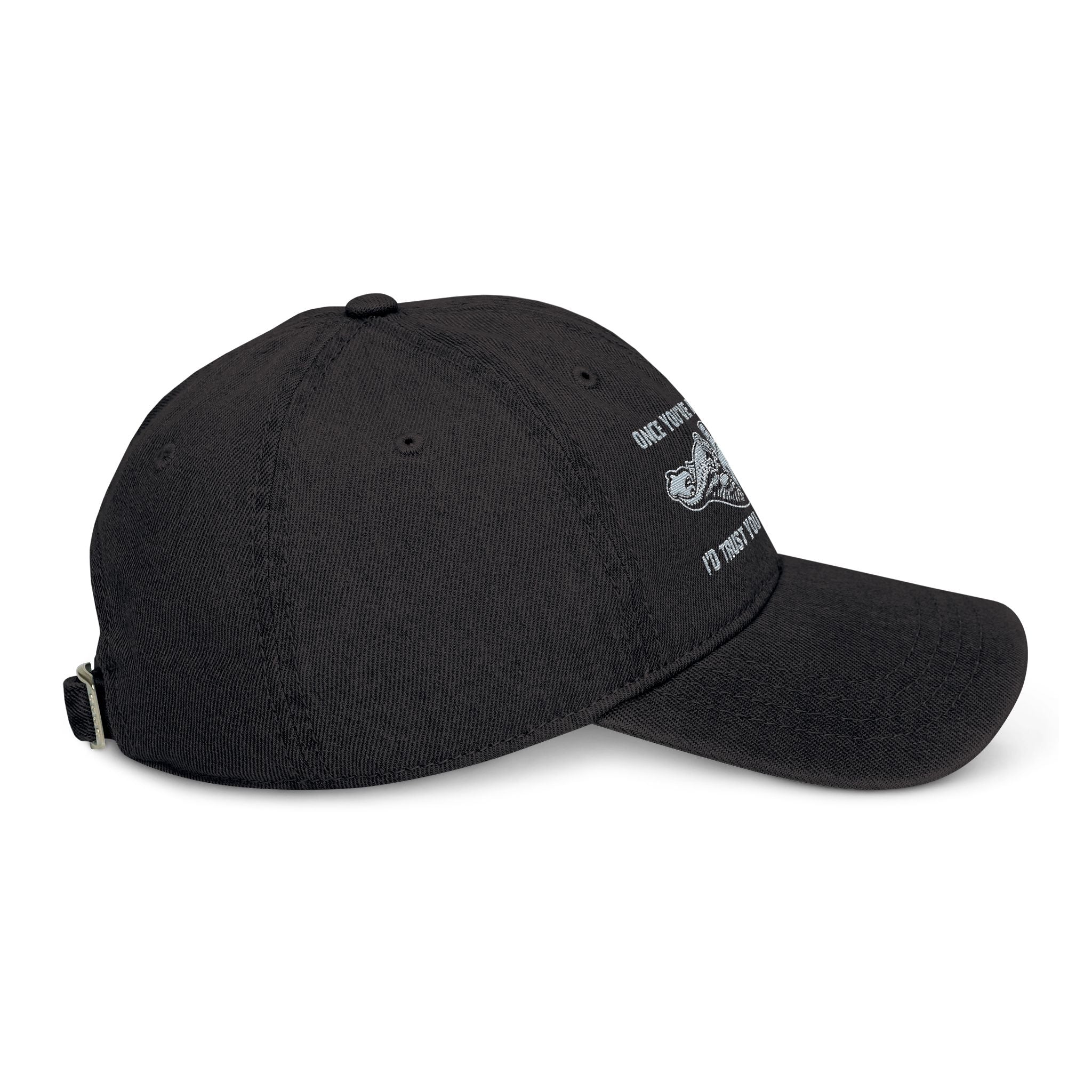 Stylish denim hat with United States Navy Submarine Breast Insignia Cap and Submarine Dolphins embroidery. Perfect for everyday fashion and a great gift for friends. This casual cap exudes a sense of trust and loyalty, making it a meaningful accessory for birthdays and celebrations.