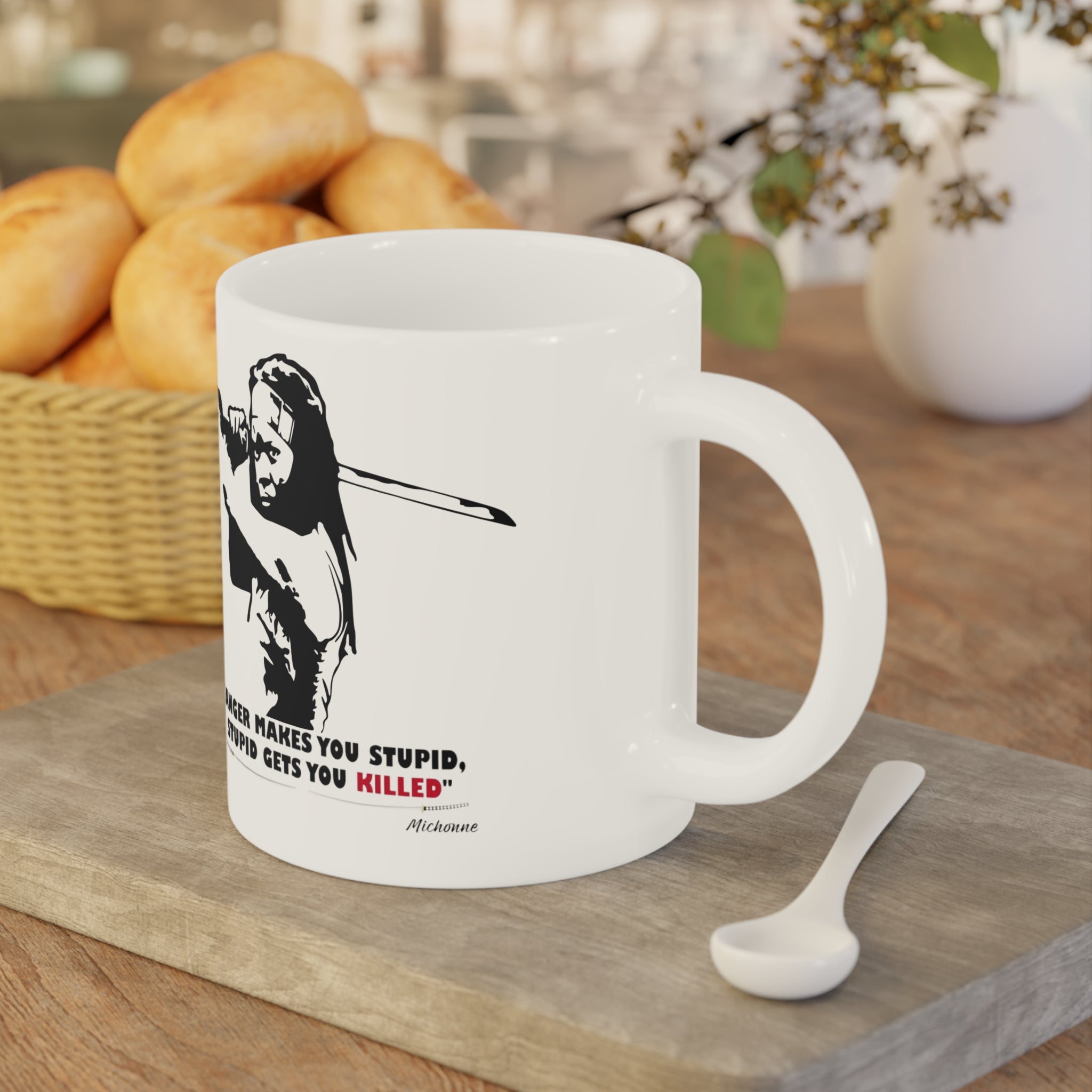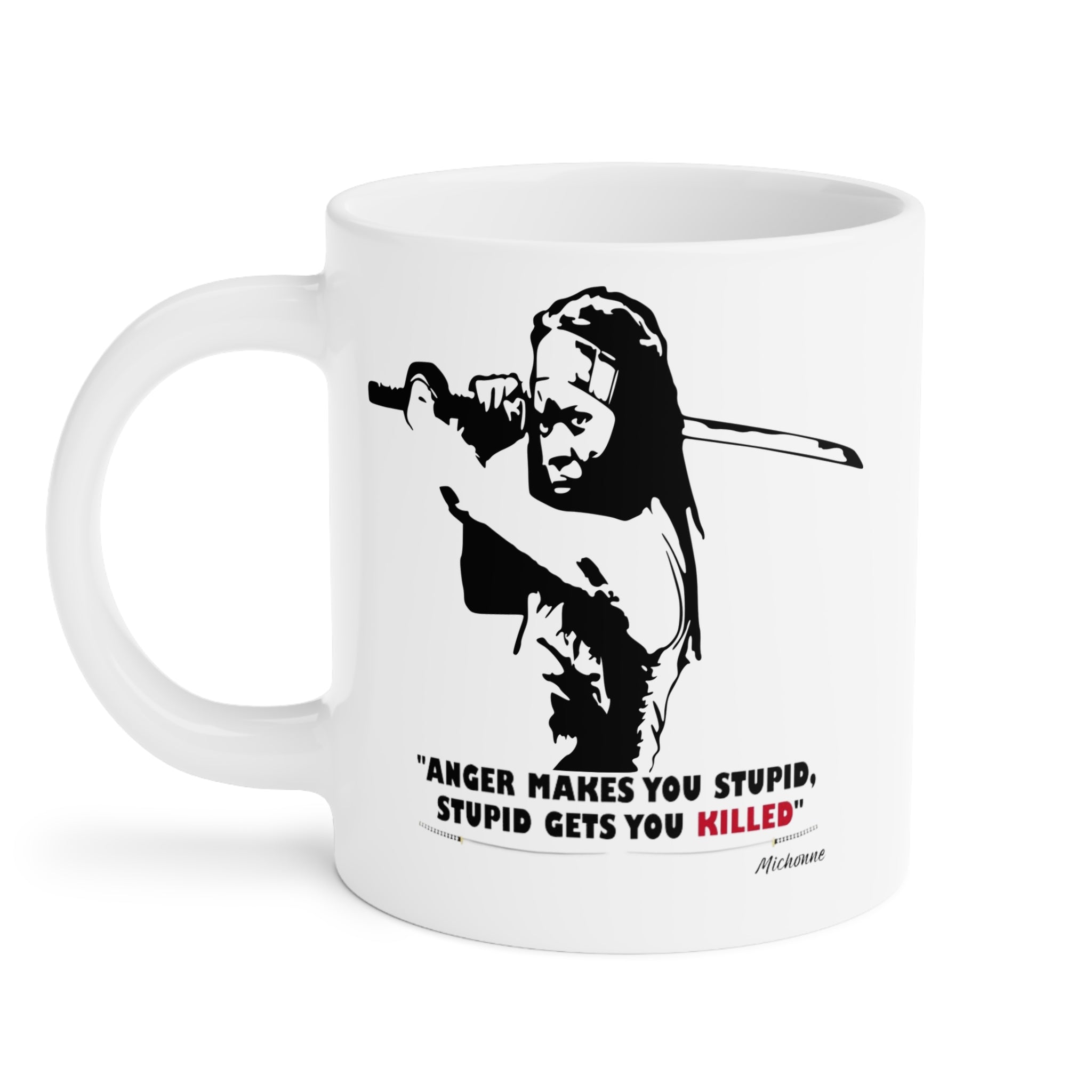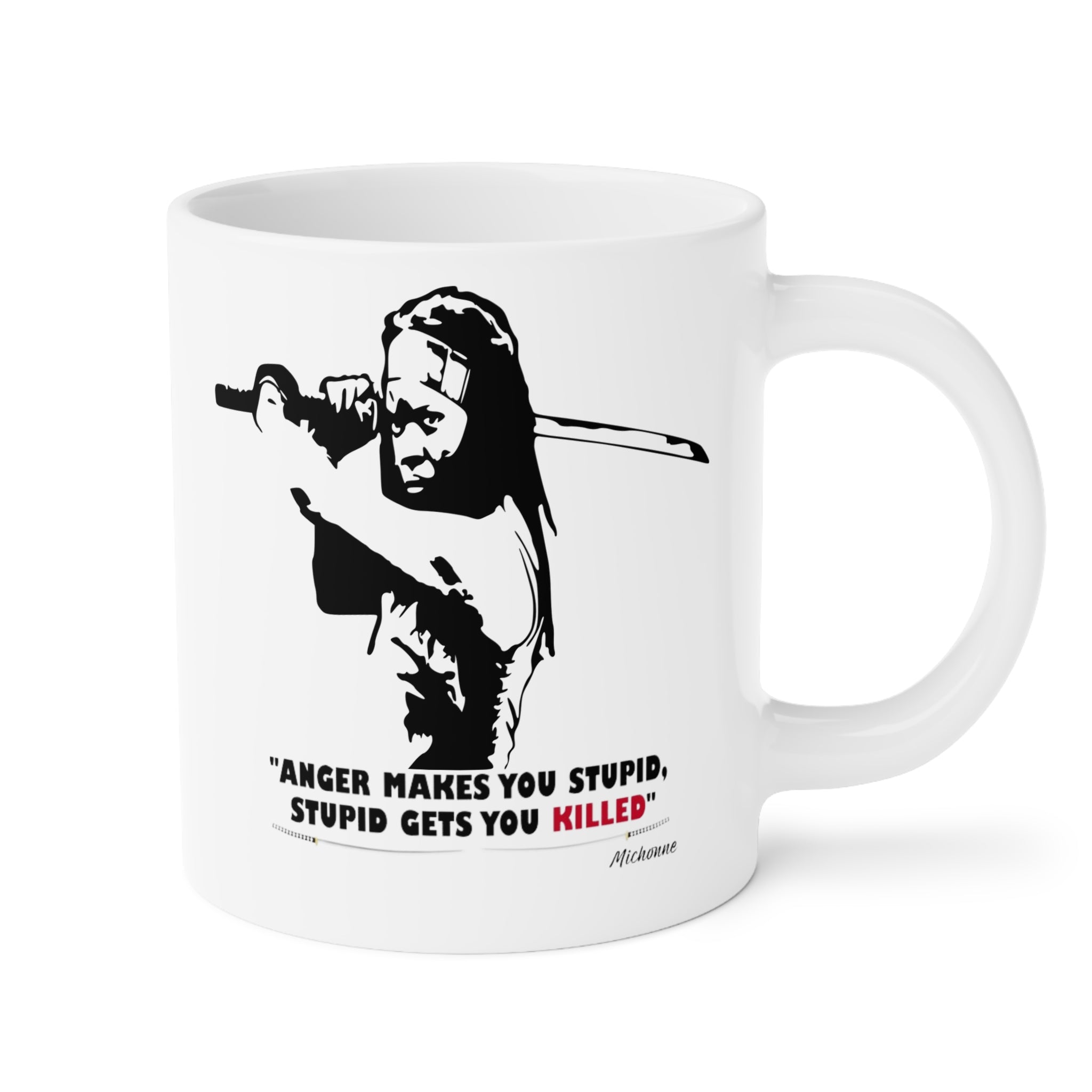 Sip from a mug that carries grit and grace. This ceramic mug celebrates Michonne — steady, fierce, and unbowed — with bold artwork that nods to her katana and quiet strength. Warm coffee or tea becomes a small ritual: a steady hand around the large C-handle, steam rising as you remember a heroic scene or start the day ready to face whatever comes. Fans of The Walking Dead and pop-culture collectors will recognize the homage; those who admire strong Black women will feel seen each morning. The scratch-resistant finish keeps the image sharp, and vibrant inks hold up through daily use. Bring it out for a solo morning, a late-night watch party, or when you want a little extra courage in your cup.