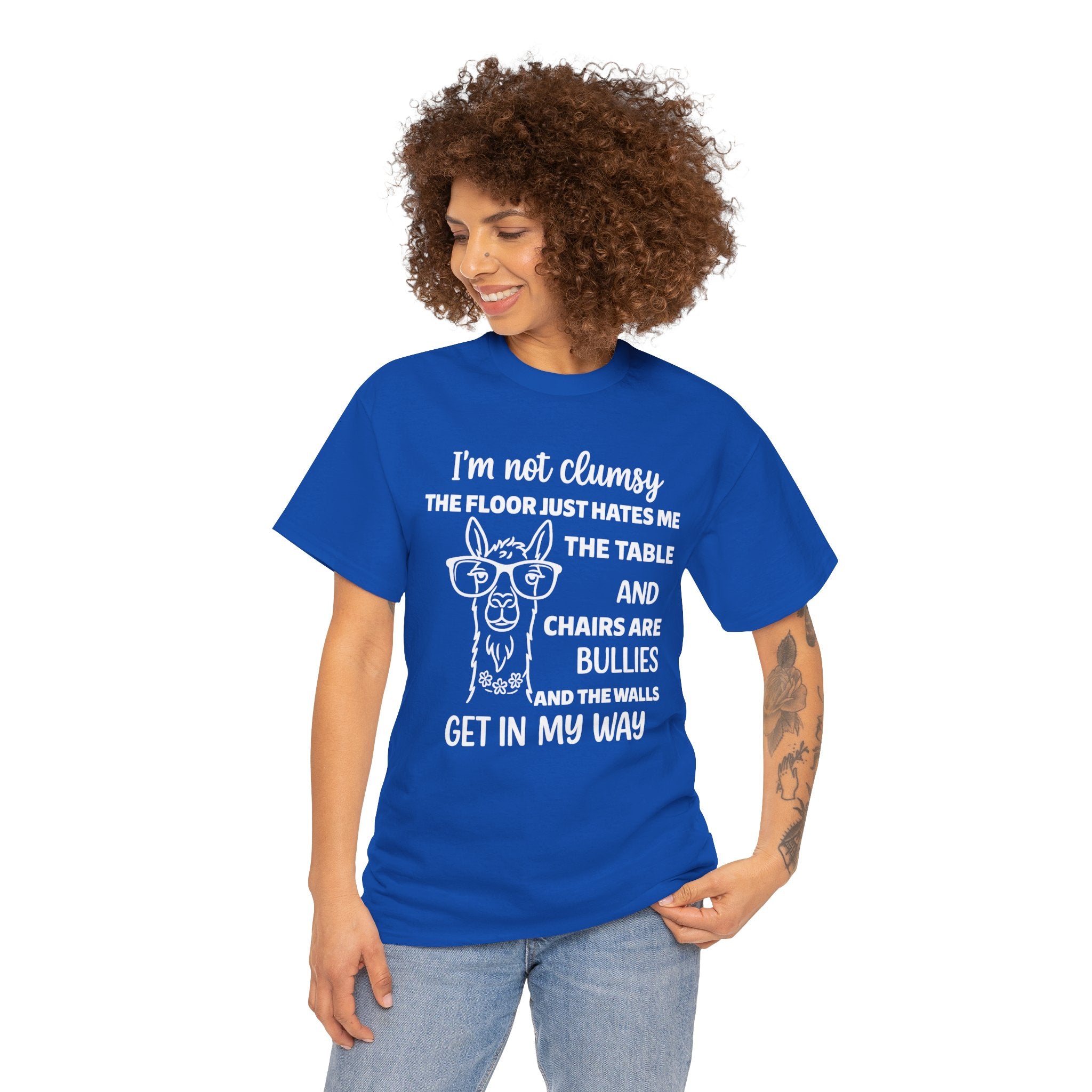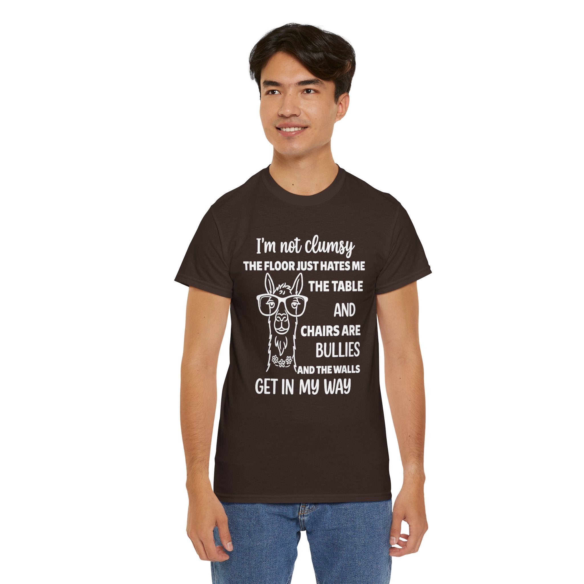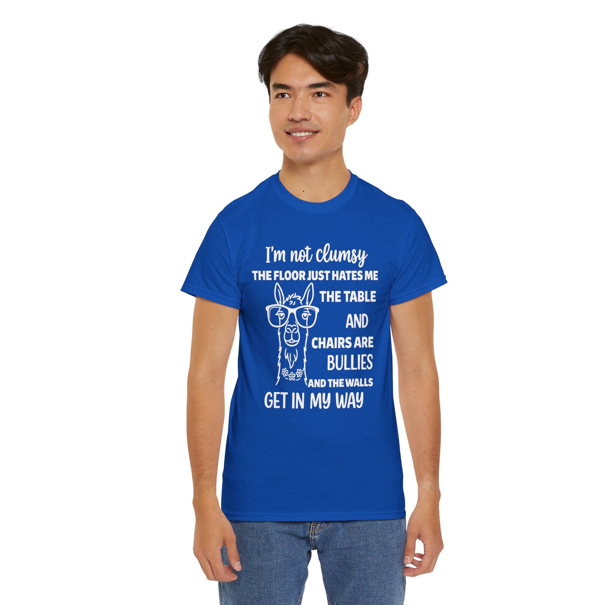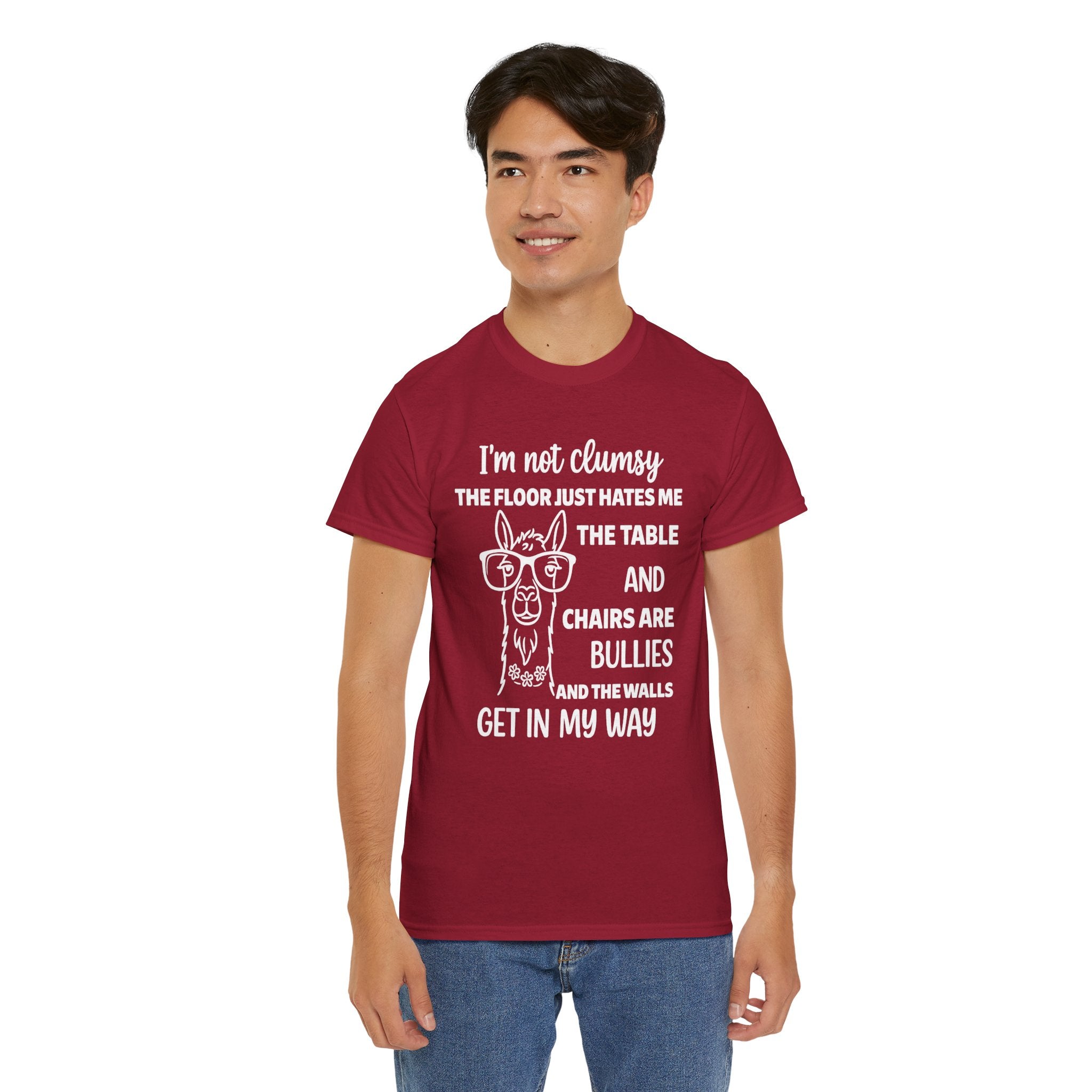 Clumsy Funny Llama Graphic Tee | Unisex Heavy Cotton Tee | Great Gift for Animal Lovers, Birthdays, Casual Wear, Humorous Gifts, Everyday Style