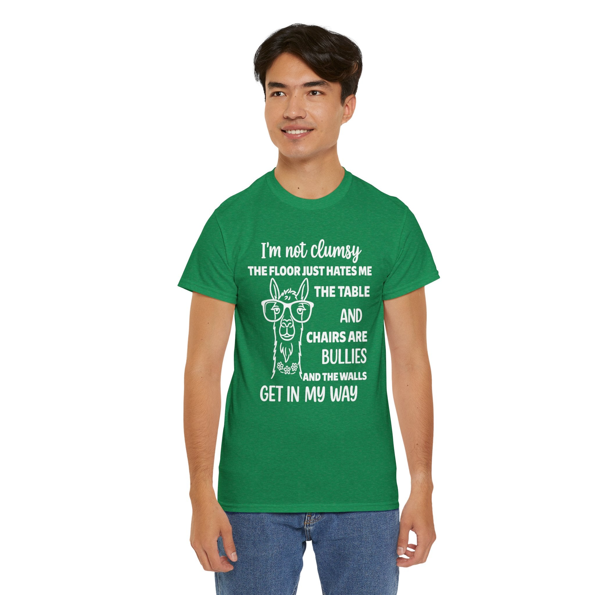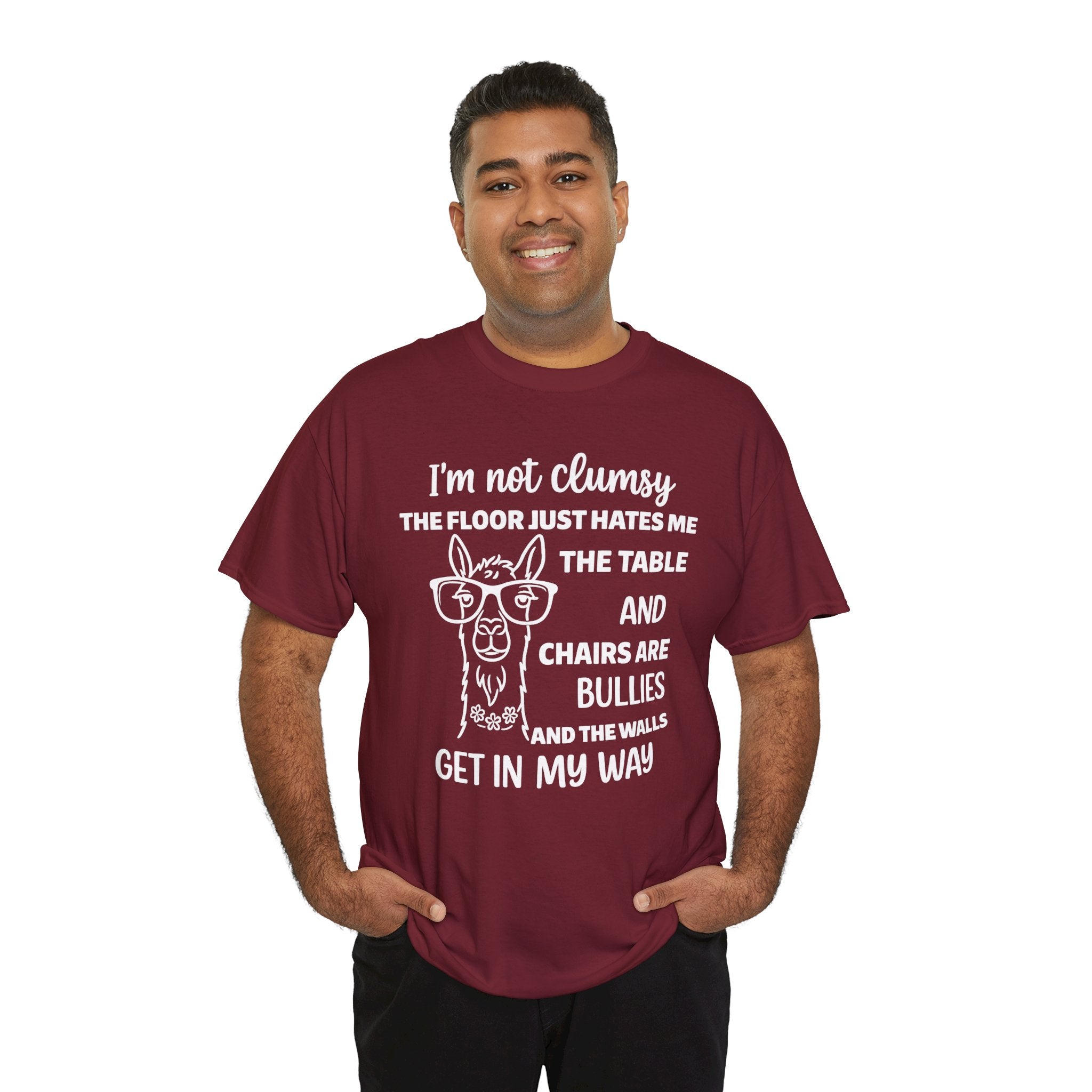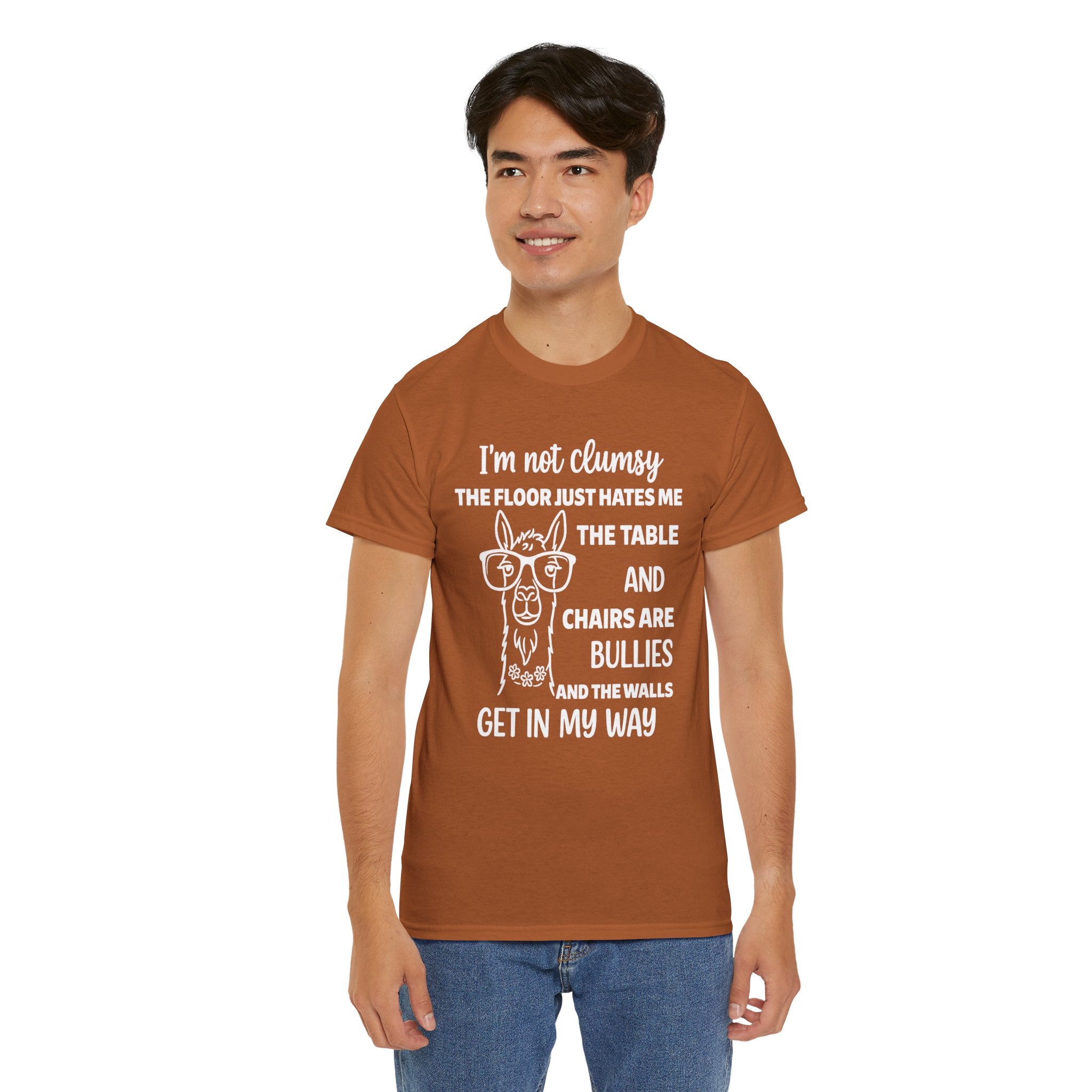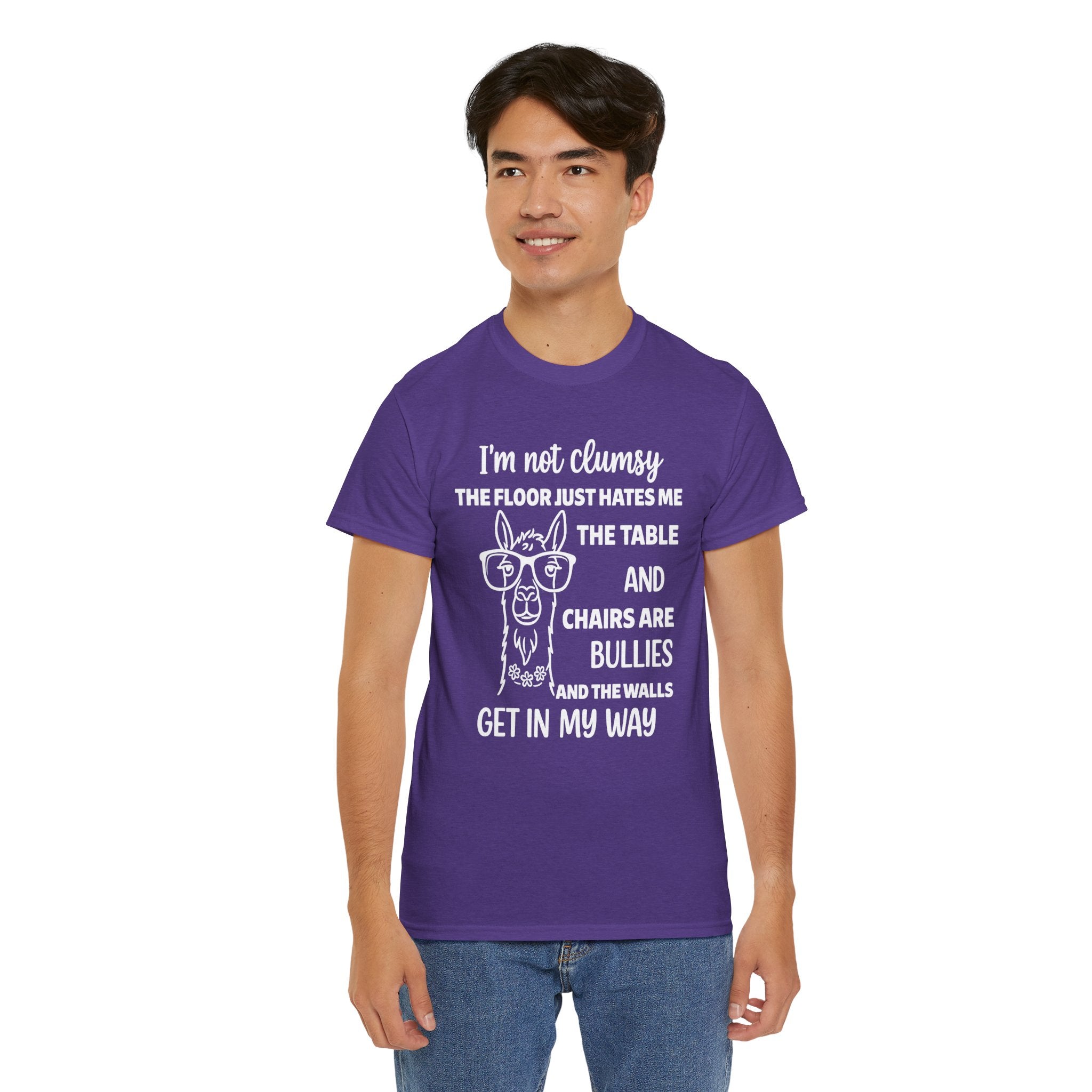 Clumsy Funny Llama Graphic Tee | Unisex Heavy Cotton Tee | Great Gift for Animal Lovers, Birthdays, Casual Wear, Humorous Gifts, Everyday Style
