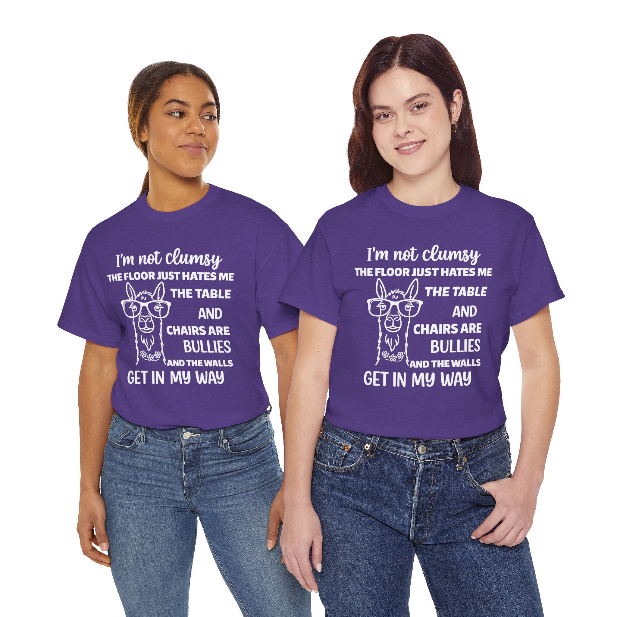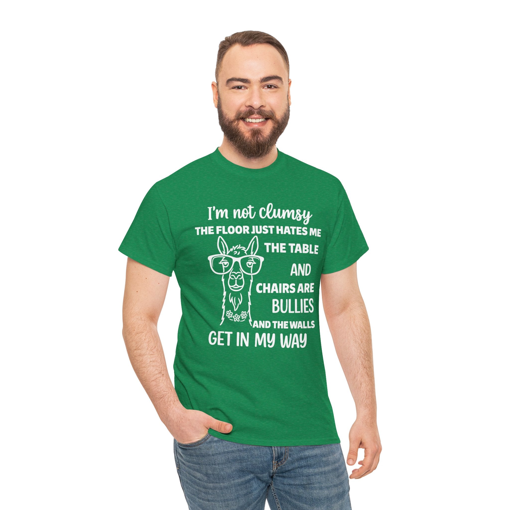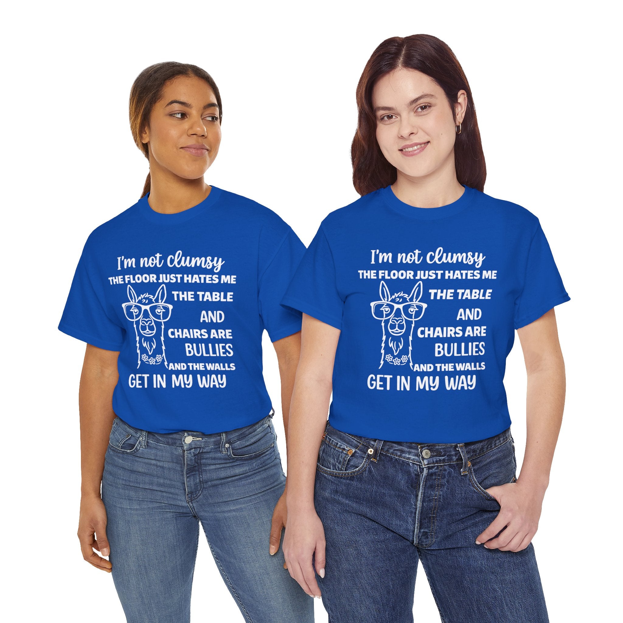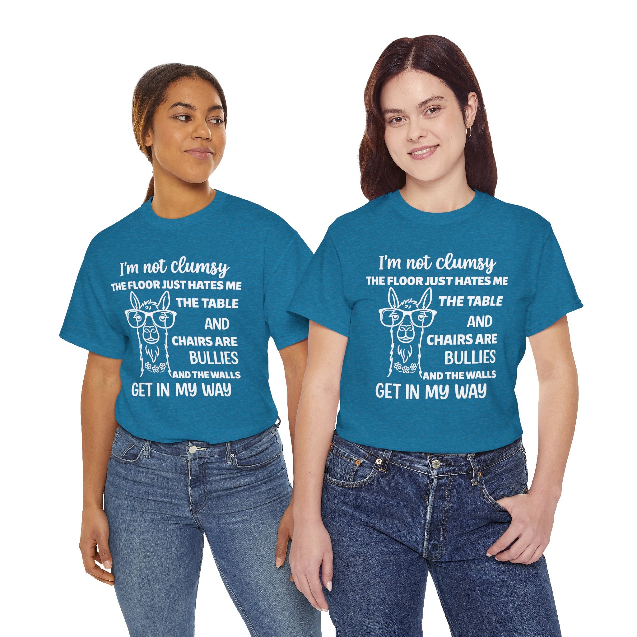 Clumsy Funny Llama Graphic Tee | Unisex Heavy Cotton Tee | Great Gift for Animal Lovers, Birthdays, Casual Wear, Humorous Gifts, Everyday Style