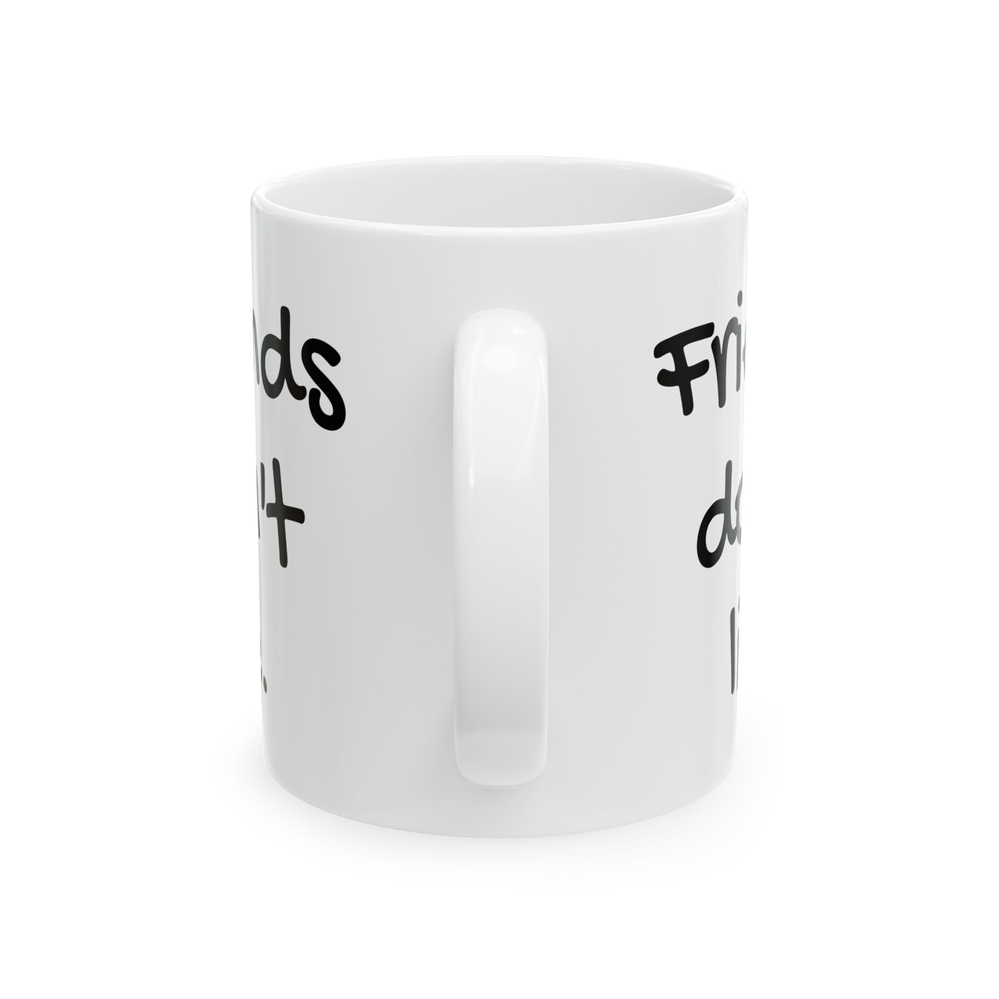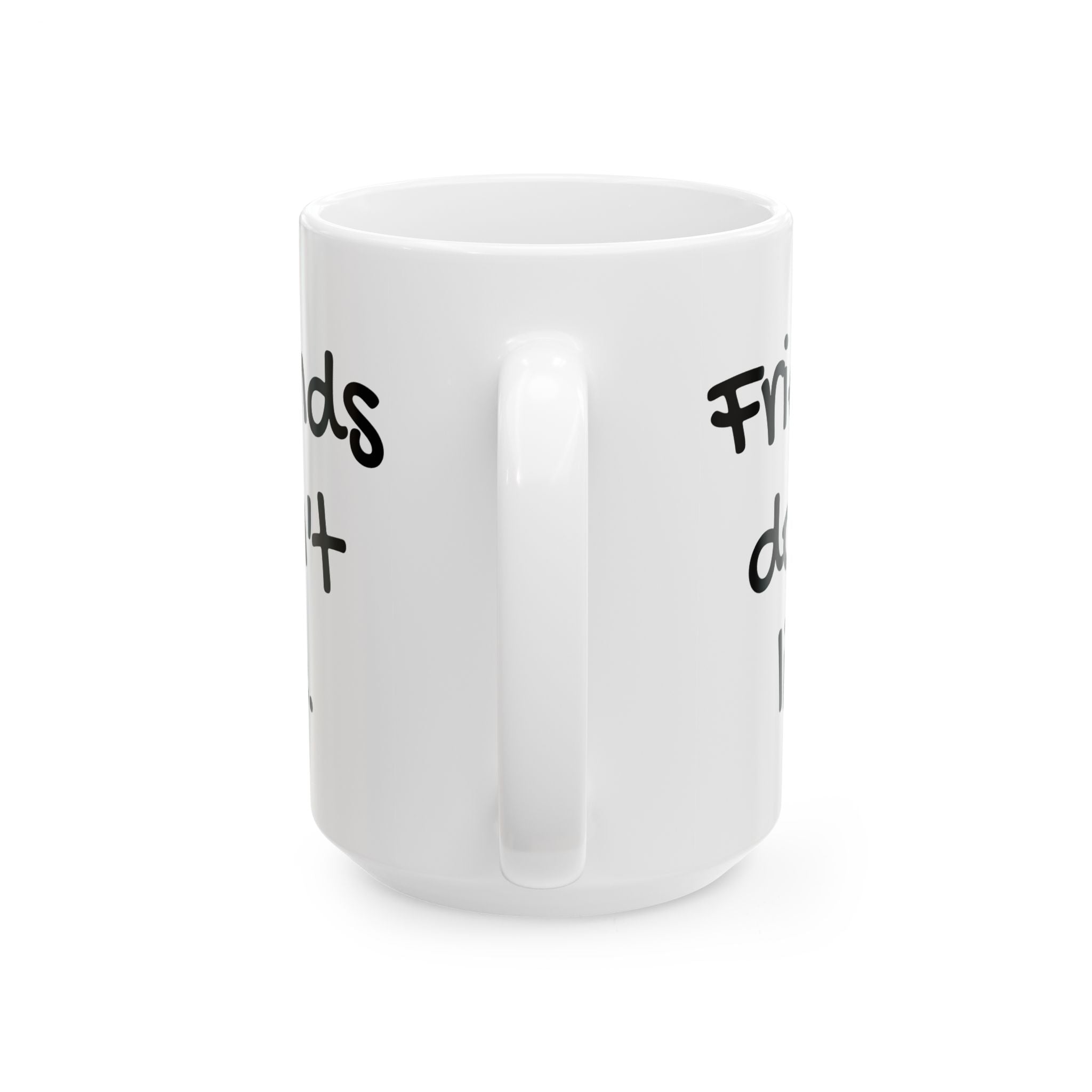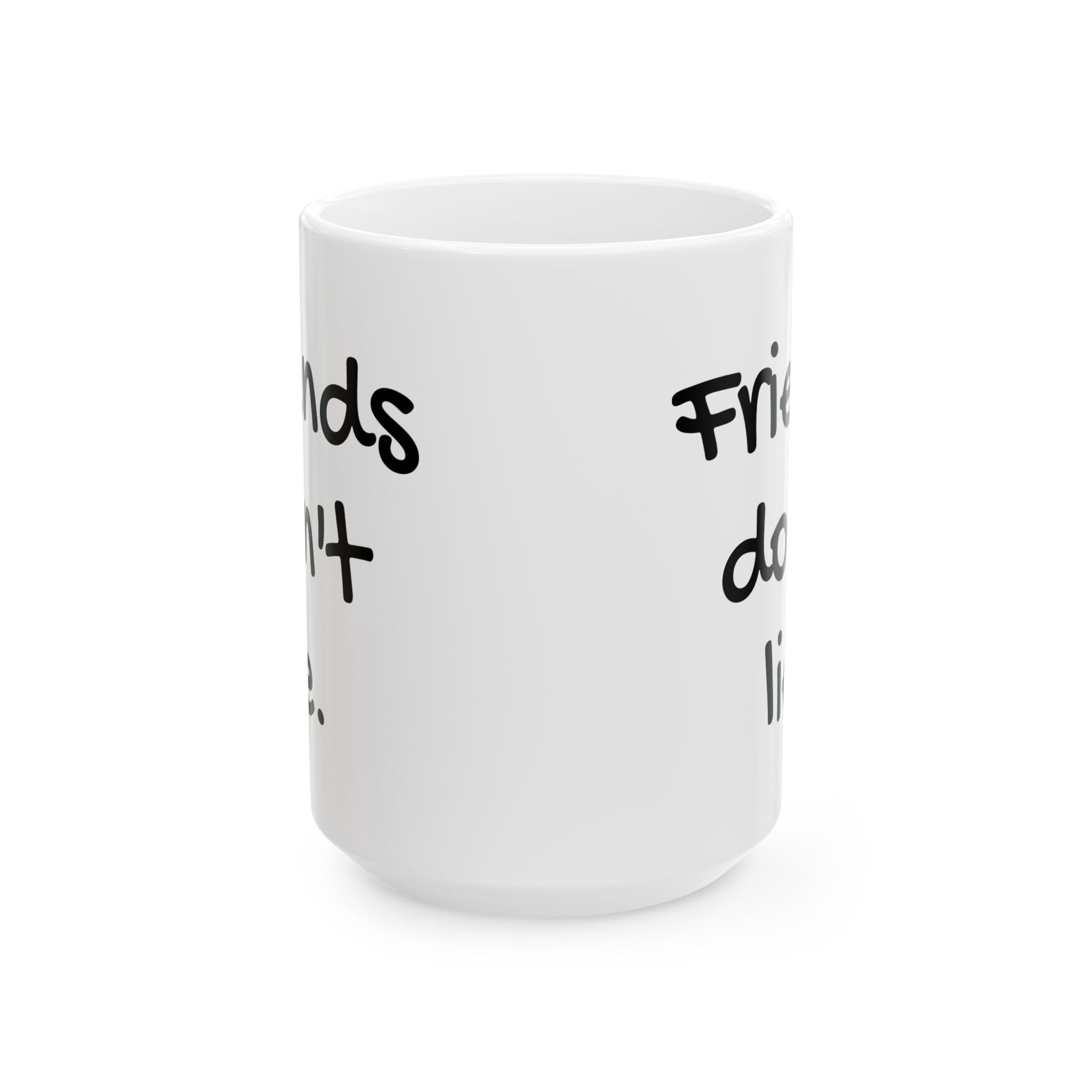 Retro 1980s themed 15oz ceramic mug featuring the quote 'Friends don't lie' from Stranger Things. Perfect for fans of the show or anyone who enjoys movie humor and nostalgia. Great gift for birthdays, holidays, or any special occasion.