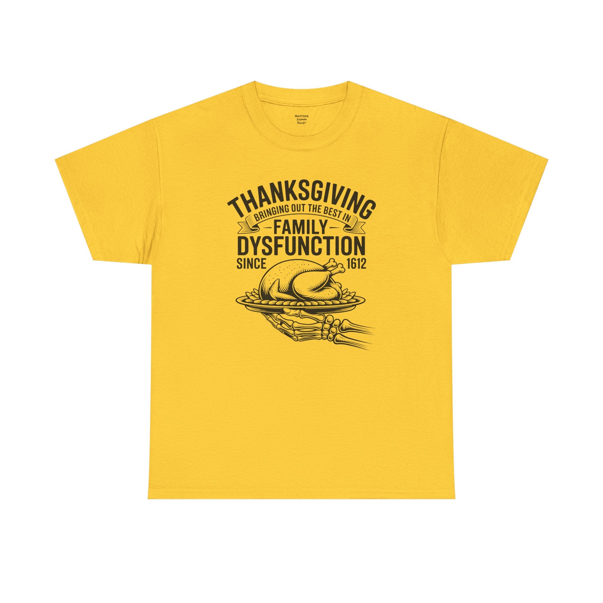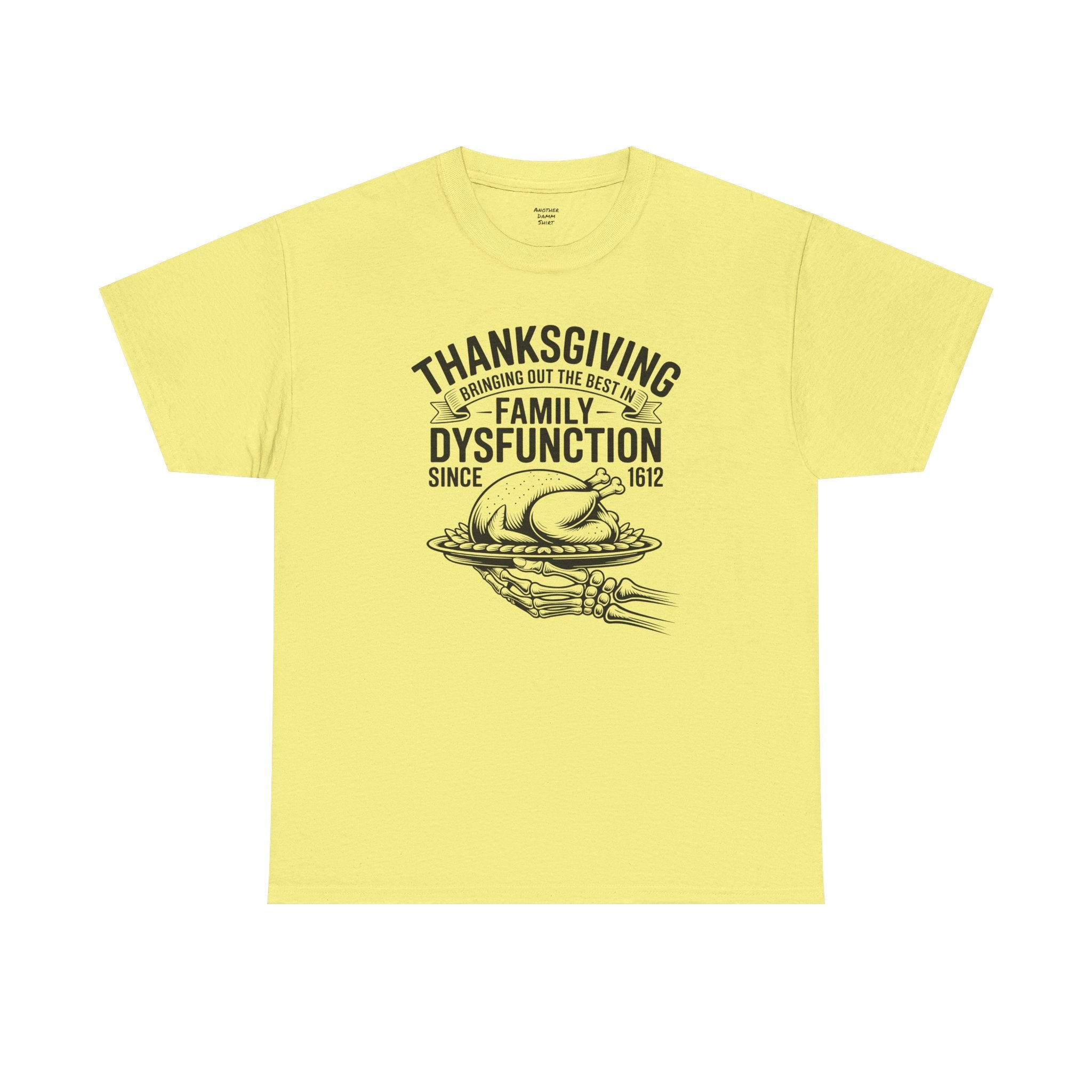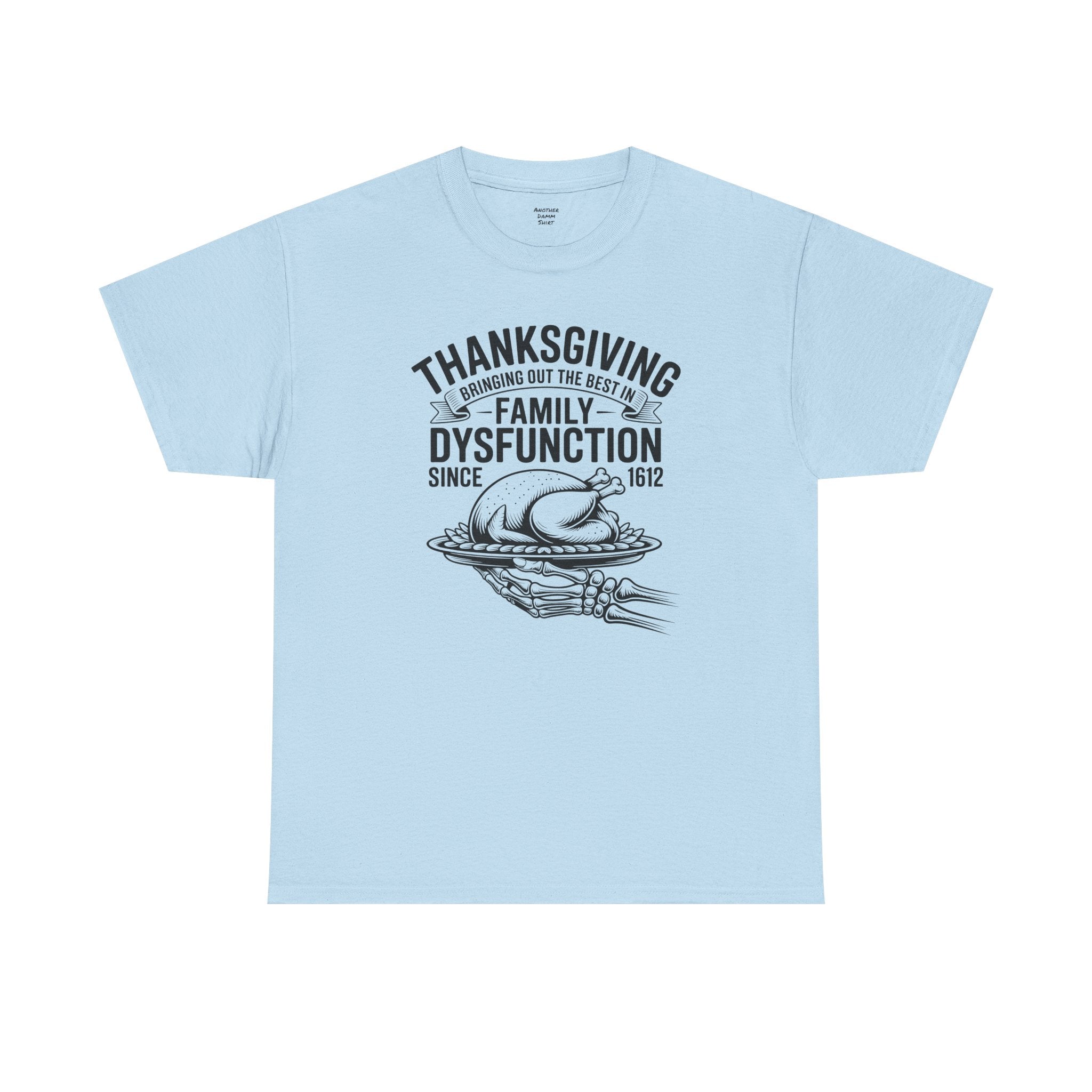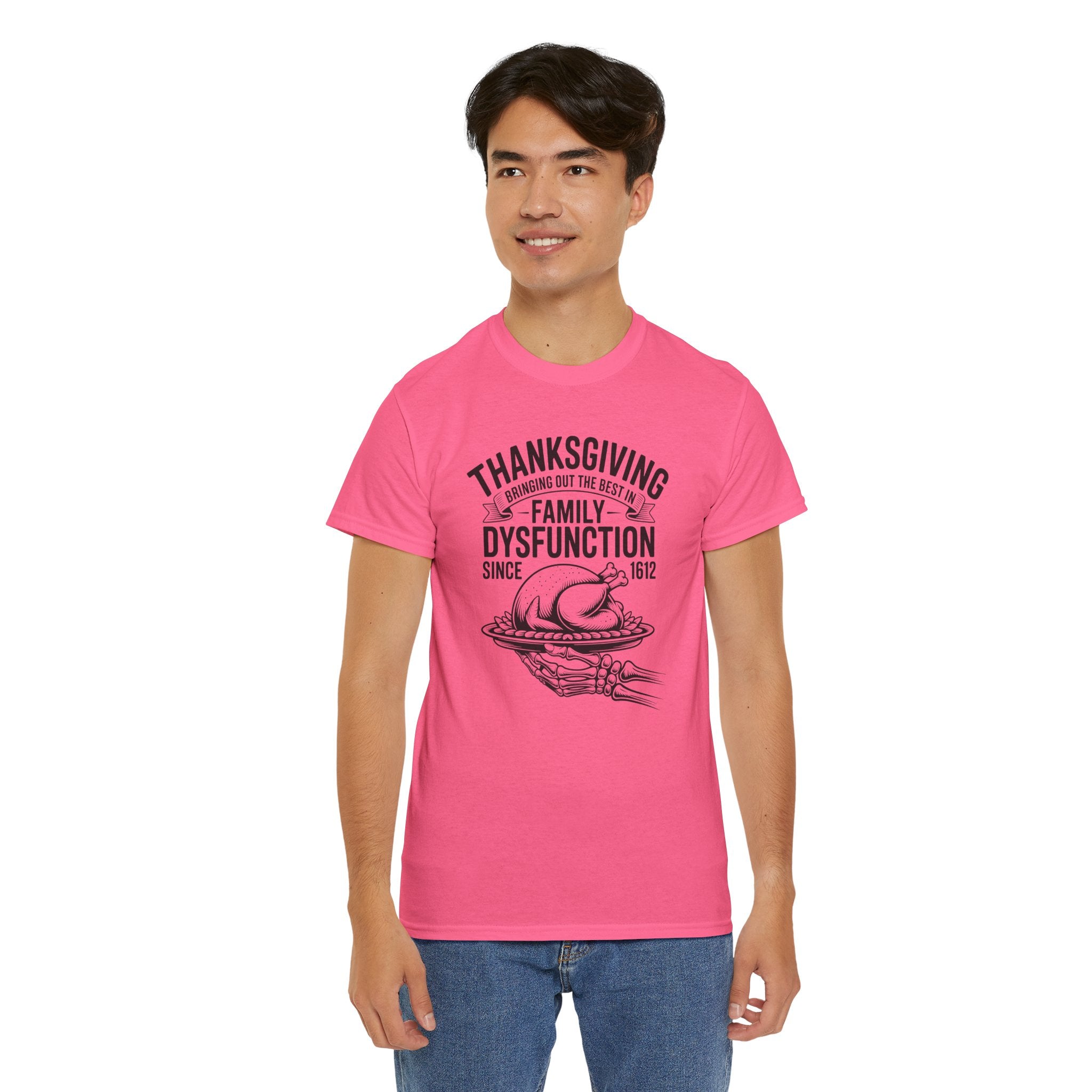 Introducing the perfect unisex heavy cotton tee—a staple for anyone who values comfort and style! This tee radiates a laid-back vibe, effortlessly blending into both casual outings and semi-formal gatherings. Ideal for family gatherings, holiday celebrations, or just relaxing at home, it’s a fantastic way to express yourself while staying comfortable. The shirt is especially relevant for Thanksgiving, making it a fun and humorous piece for the family table. This tee caters to adults looking for a classic style with a modern twist, adding personality to any wardrobe.