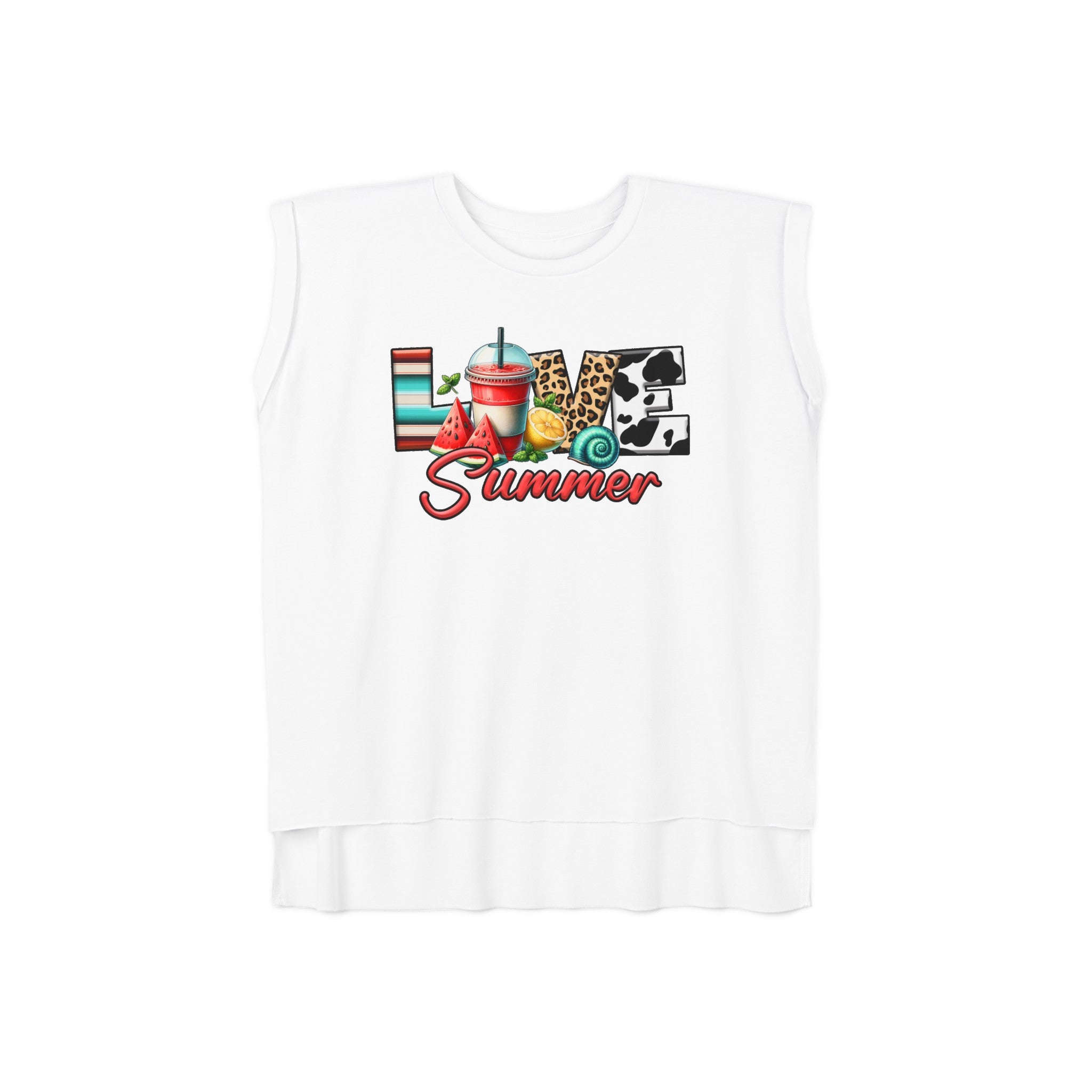 This women's muscle tee comes with a relaxed, drapey fit that is perfect for any athletic activity or a casual day out. Its rolled cuffs, hi-low raw bottom hem, and side seams add a sporty flair that is versatile and stylish. Each tee comes with a tear-away label to minimize scratching.
