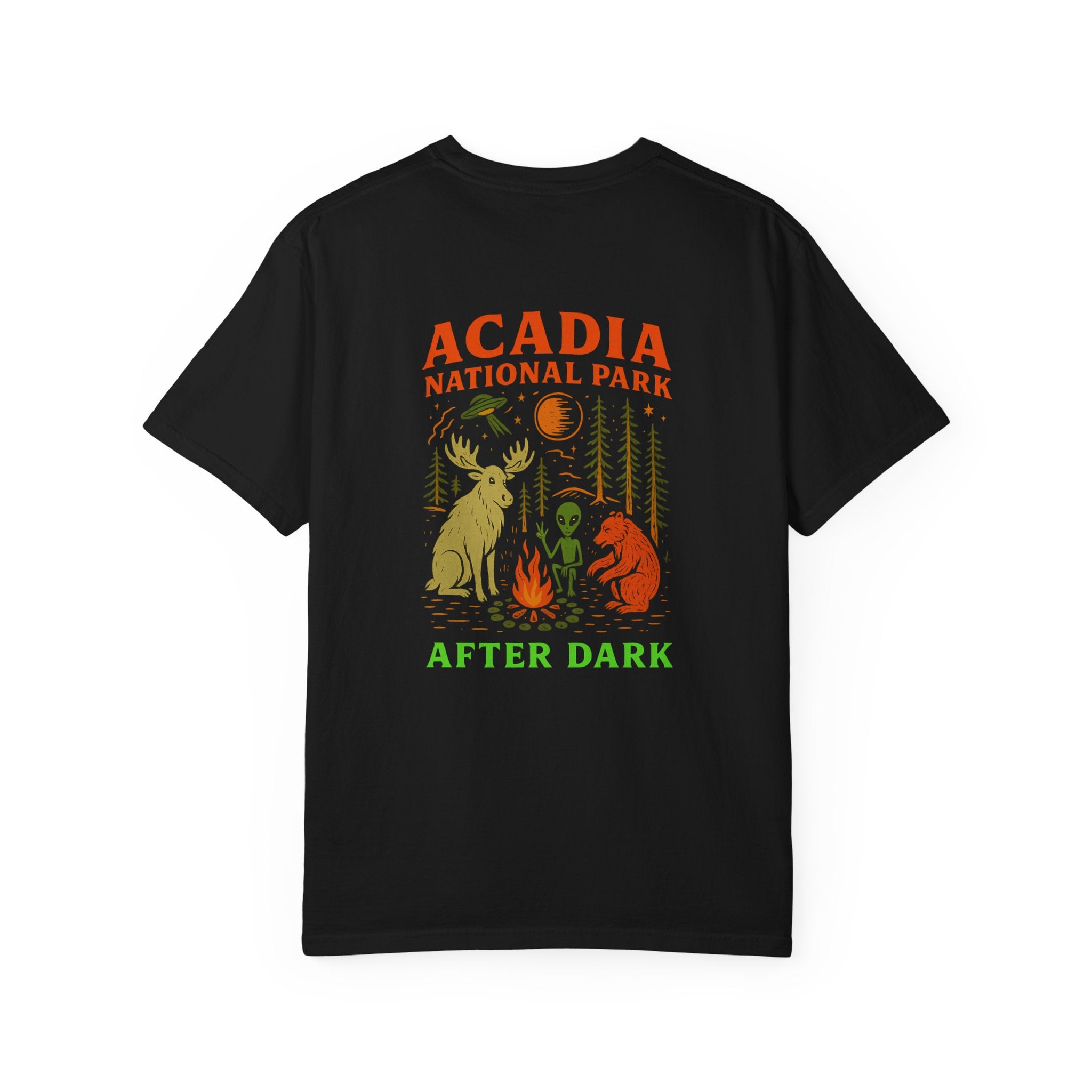 After Dark Collection Acadia National Park Unisex T-Shirt, Nature Lover Gift, Ghost Moose, Alien and Bear Camping