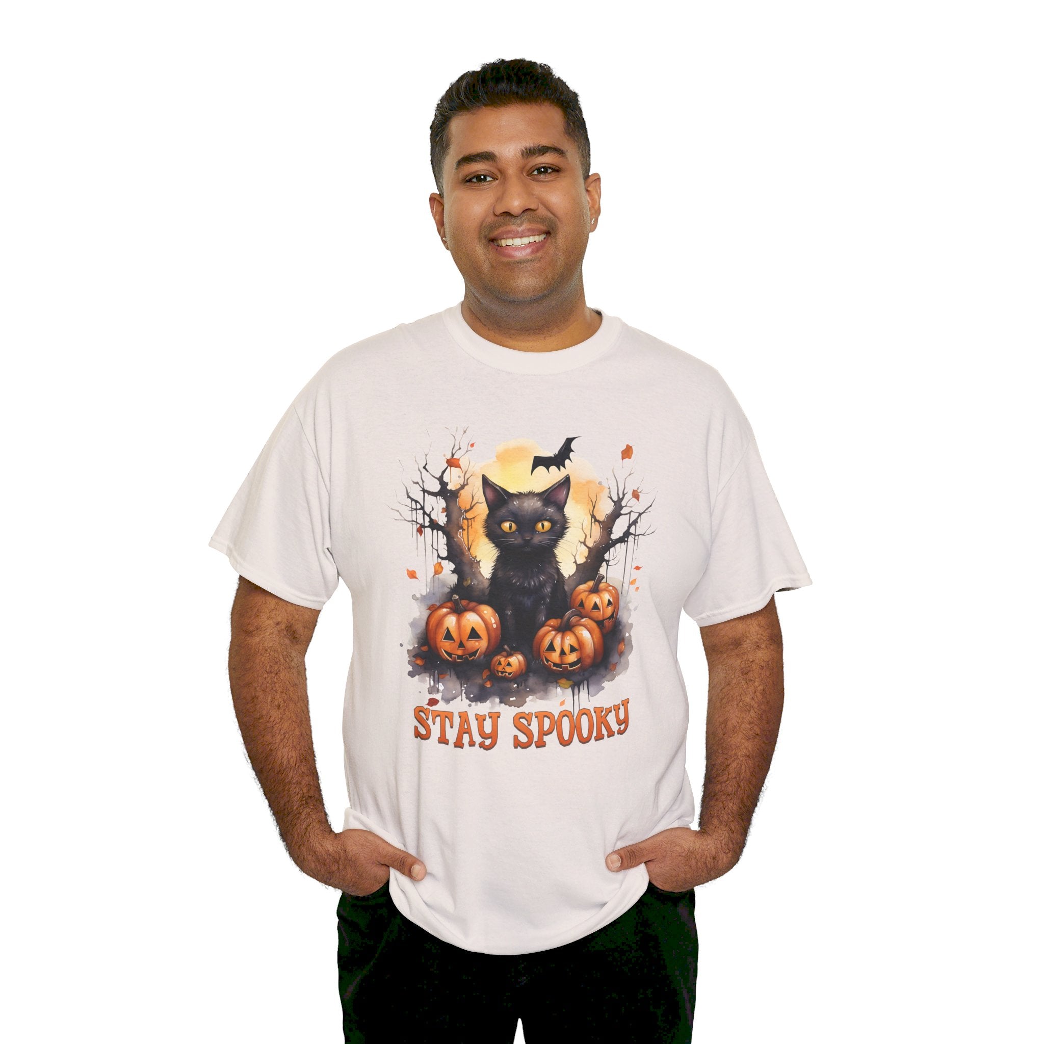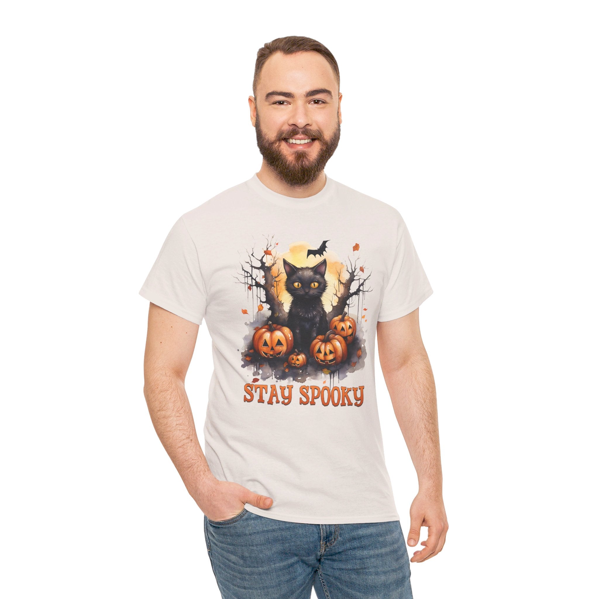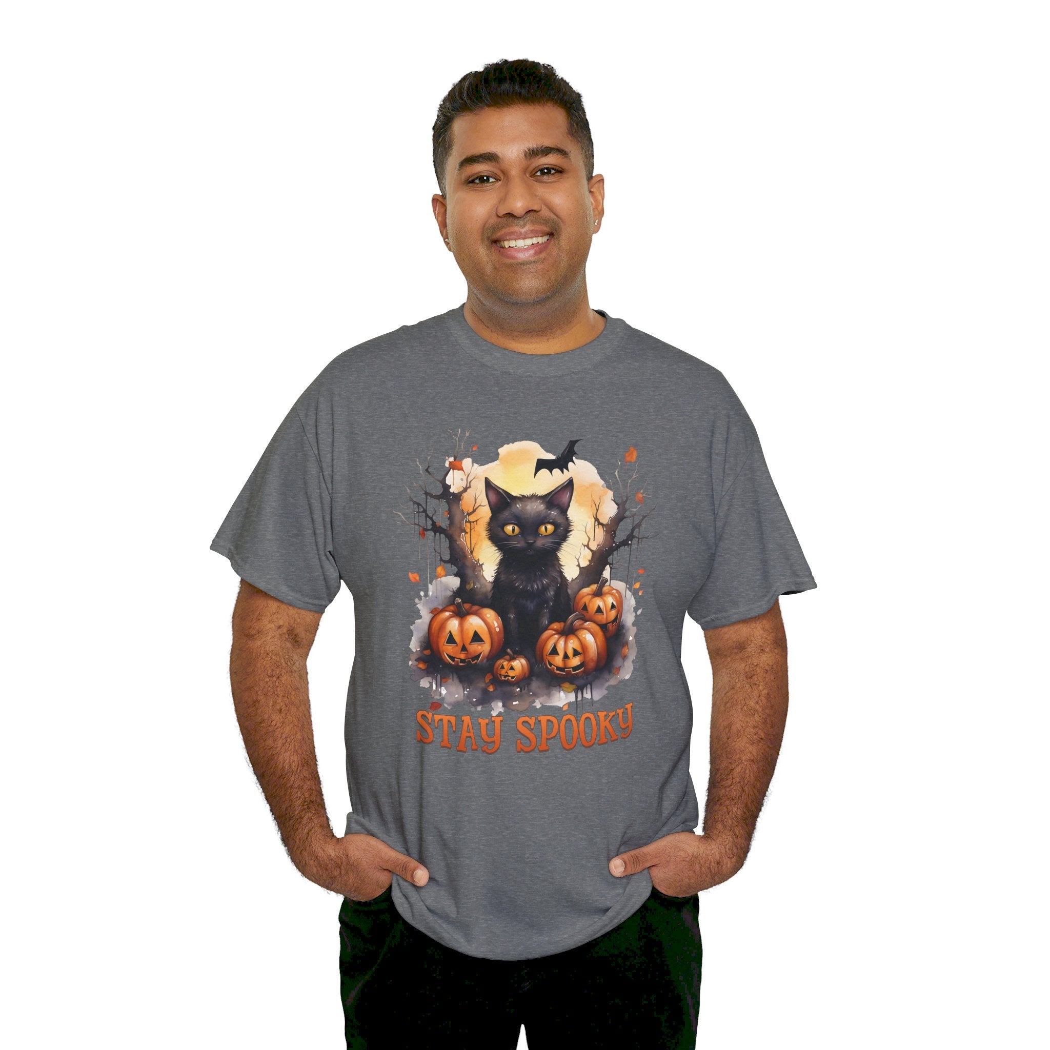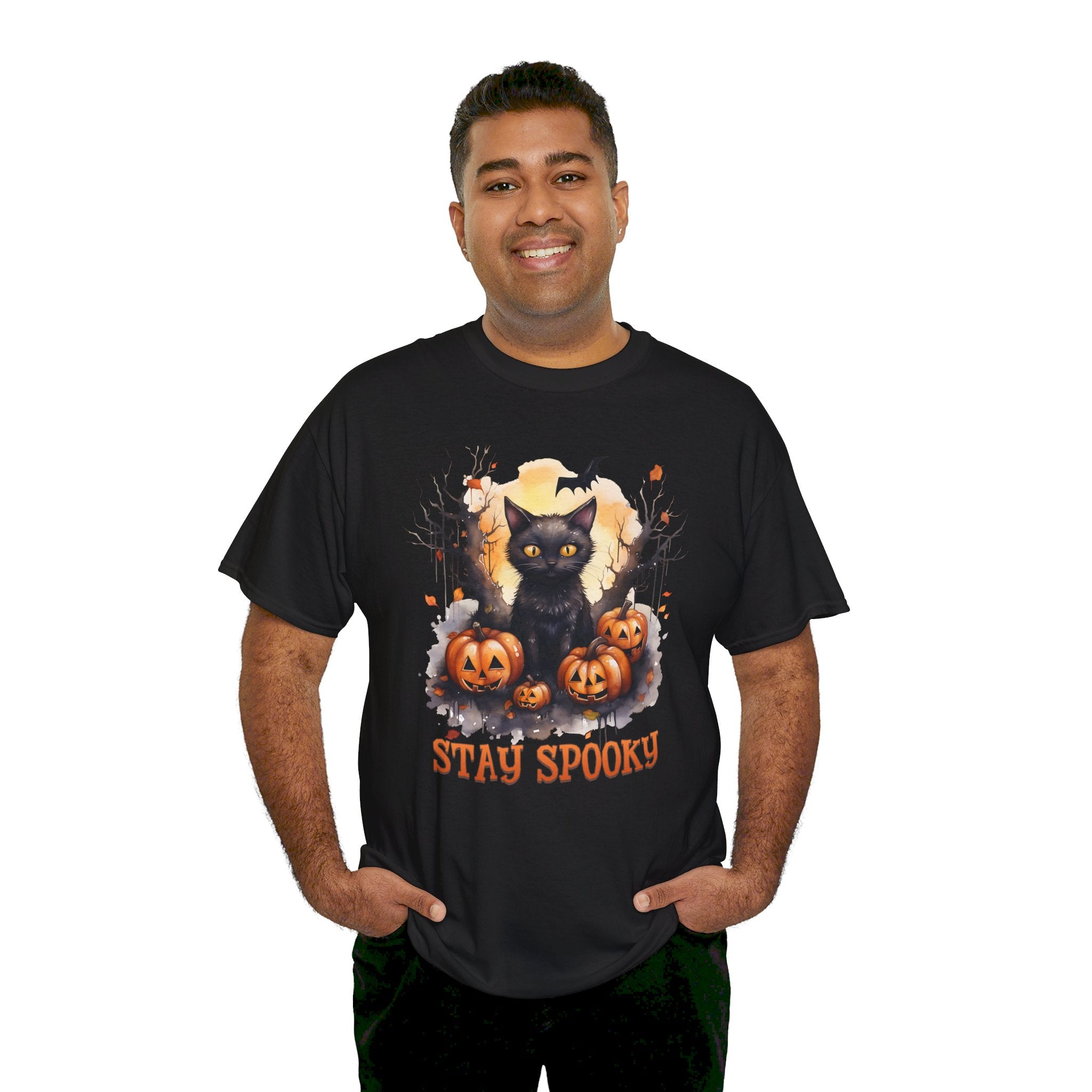 Black Cat And Pumpkin! Graphic Unisex Heavy Cotton Tee