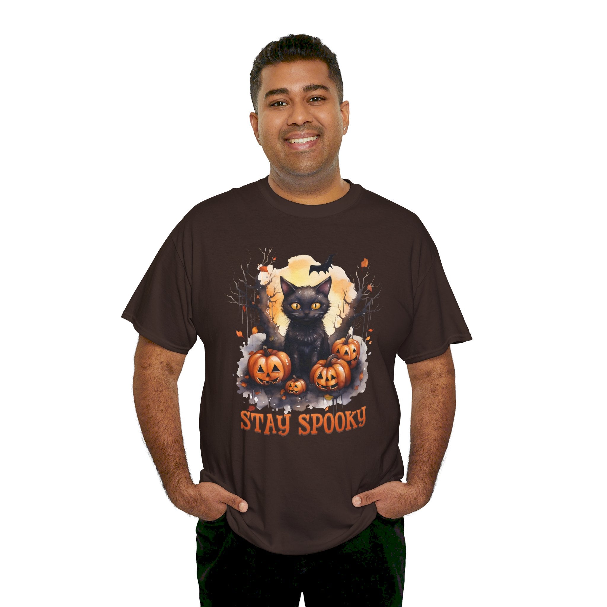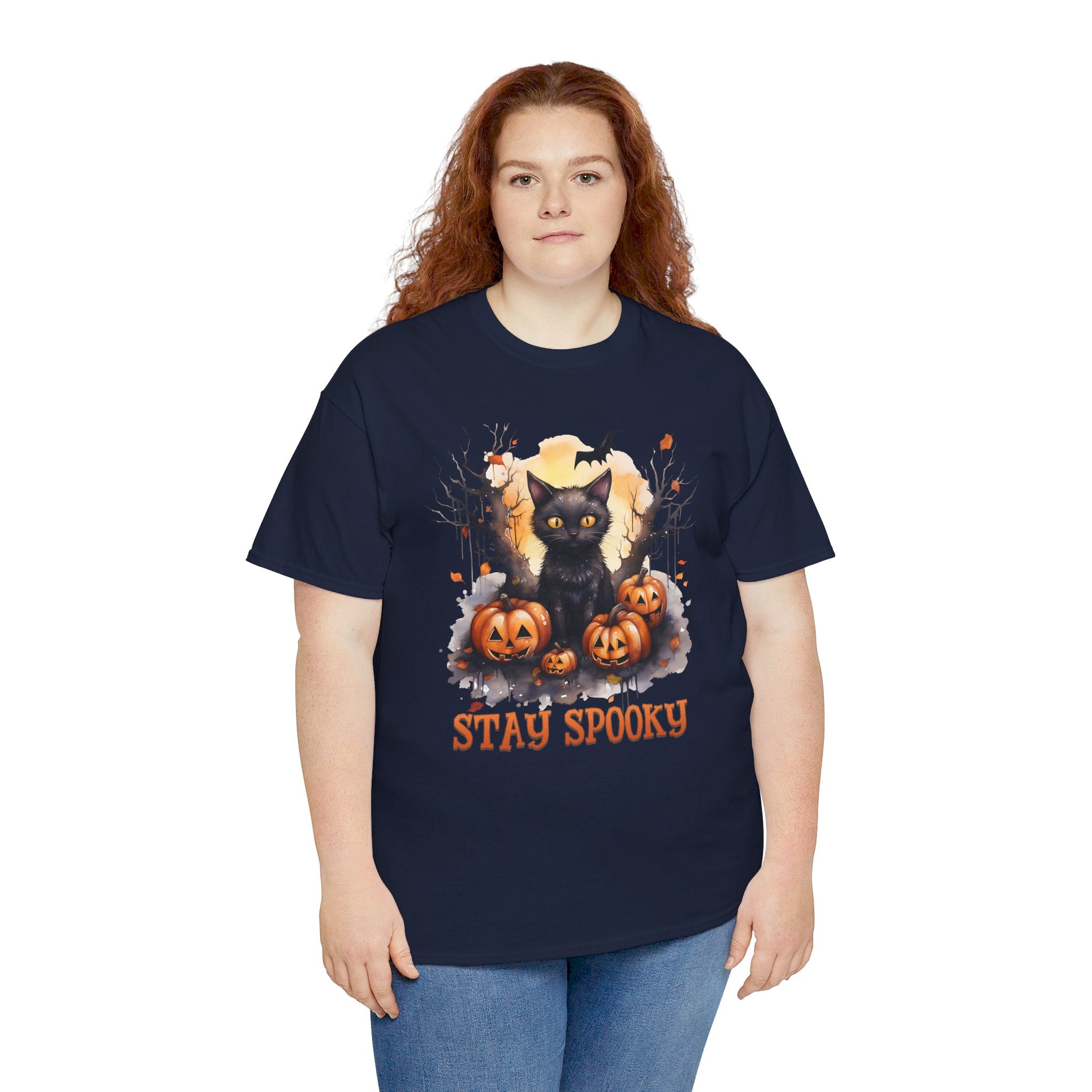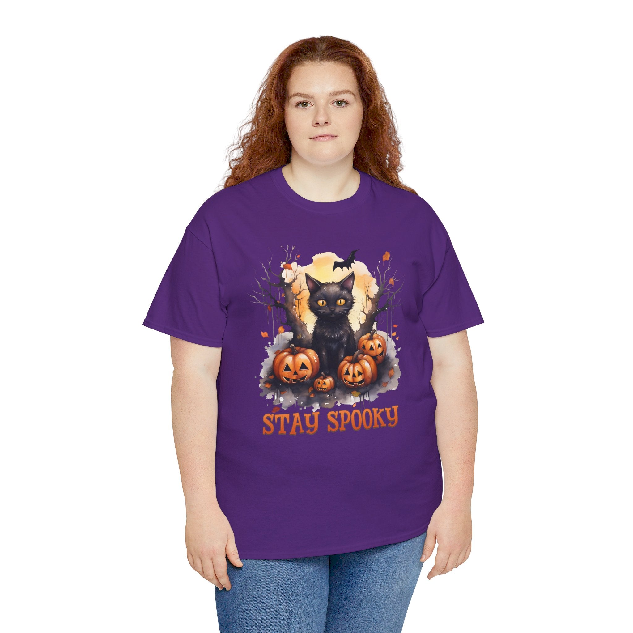 Black Cat And Pumpkin! Graphic Unisex Heavy Cotton Tee