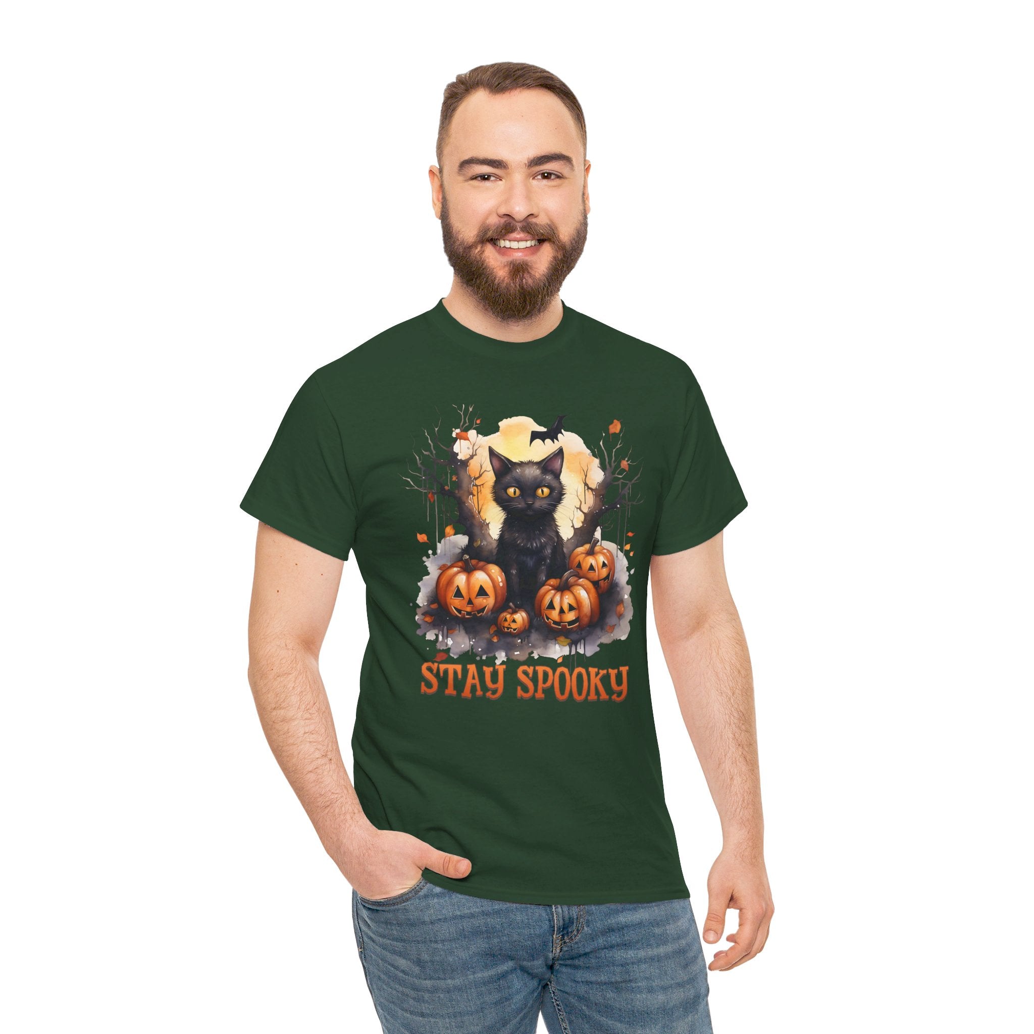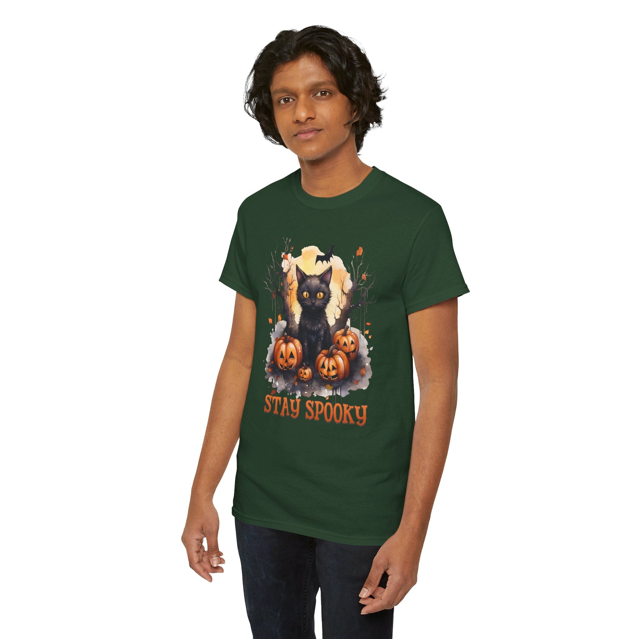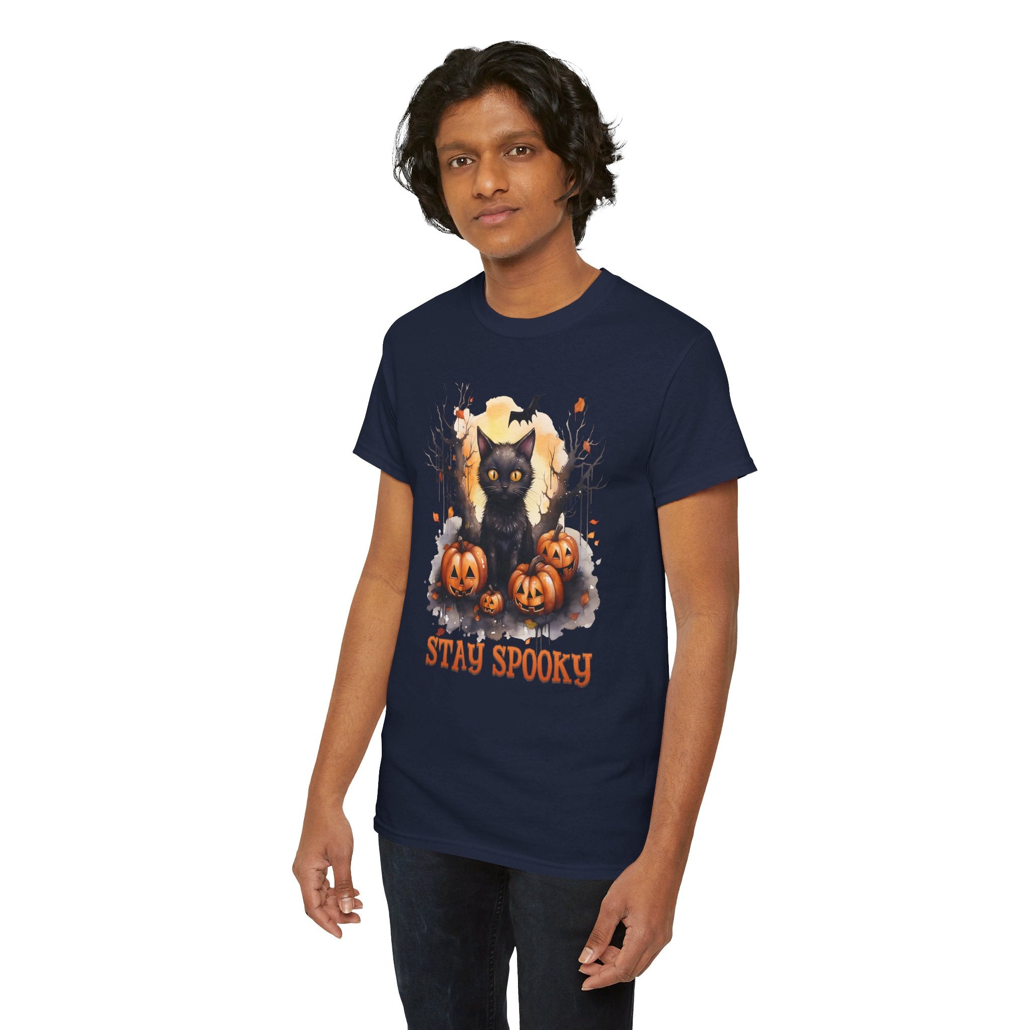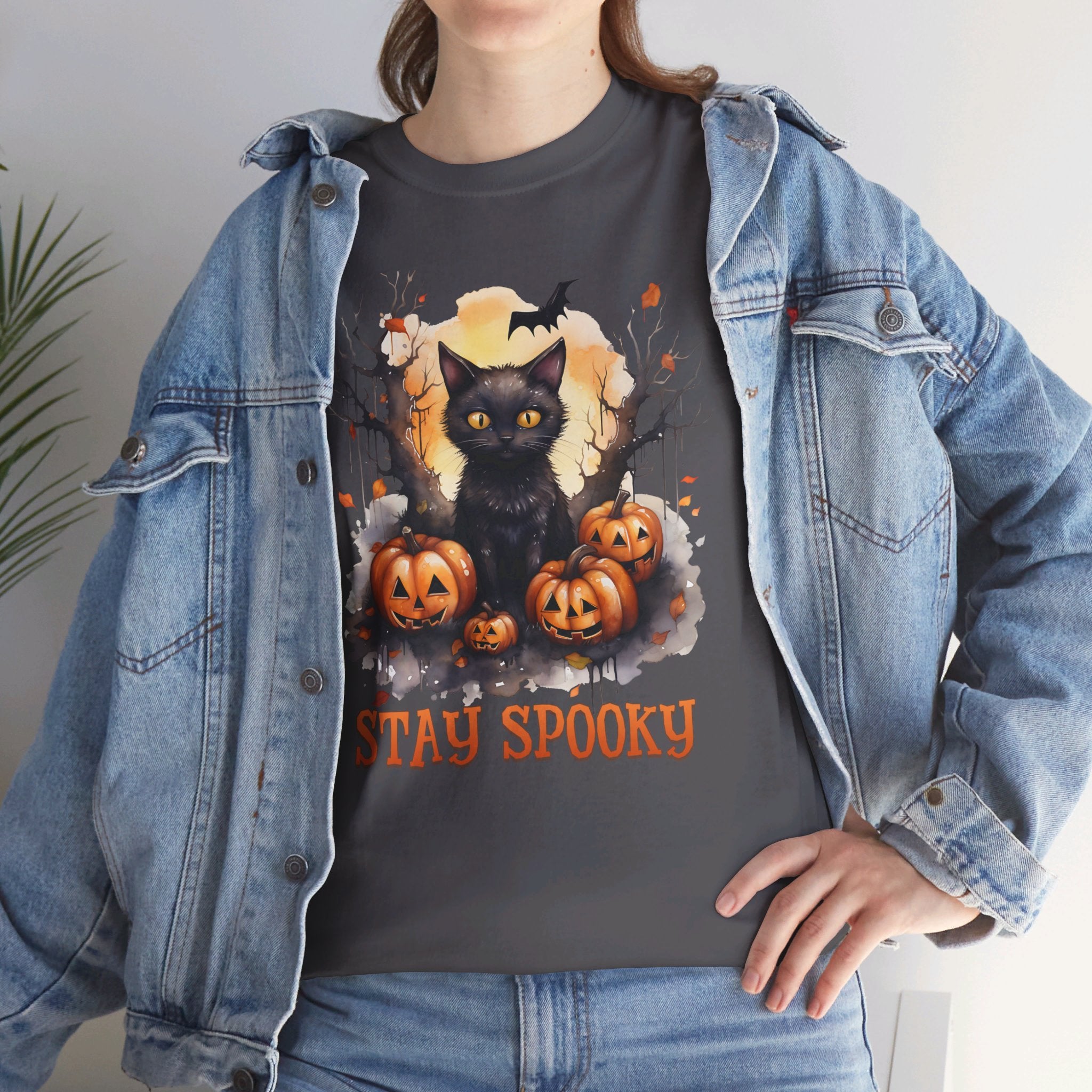 Black Cat And Pumpkin! Graphic Unisex Heavy Cotton Tee