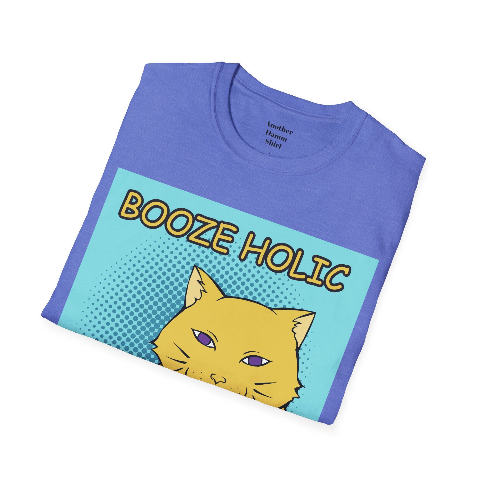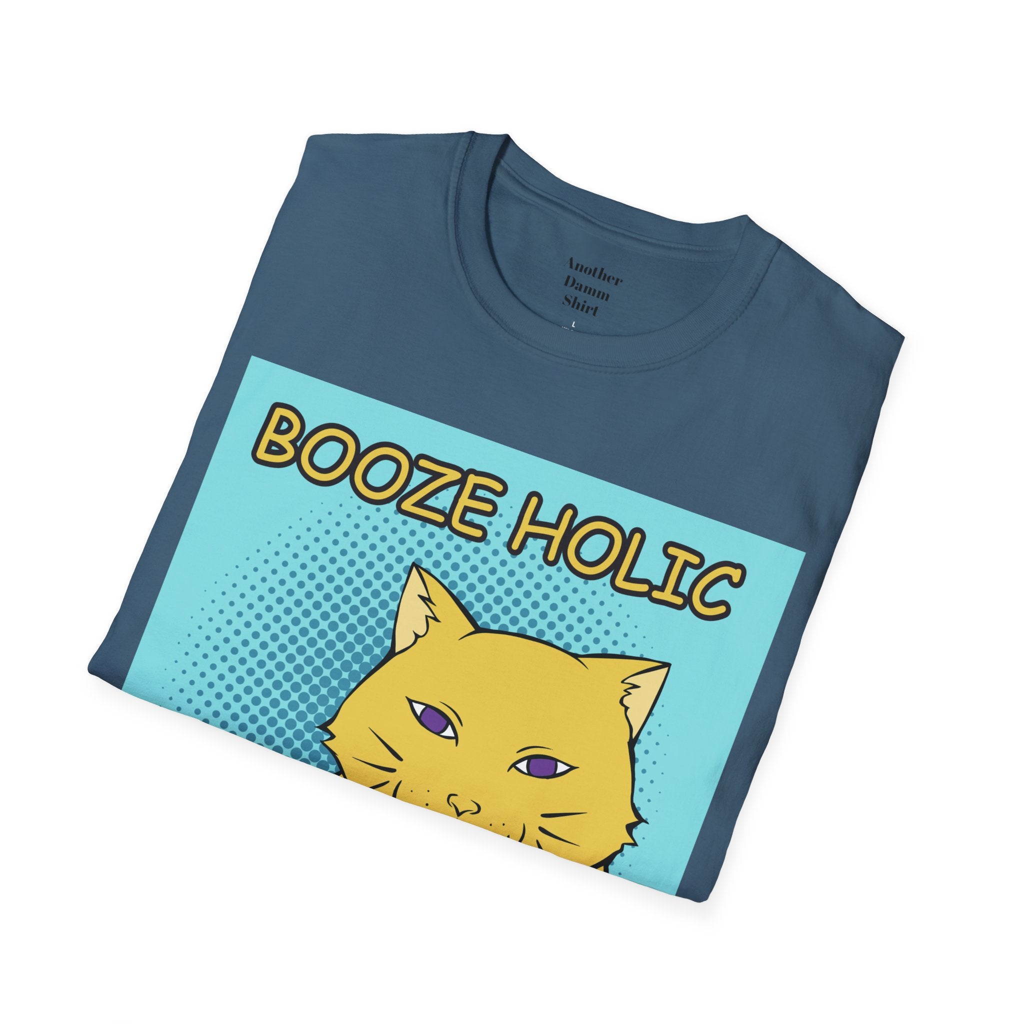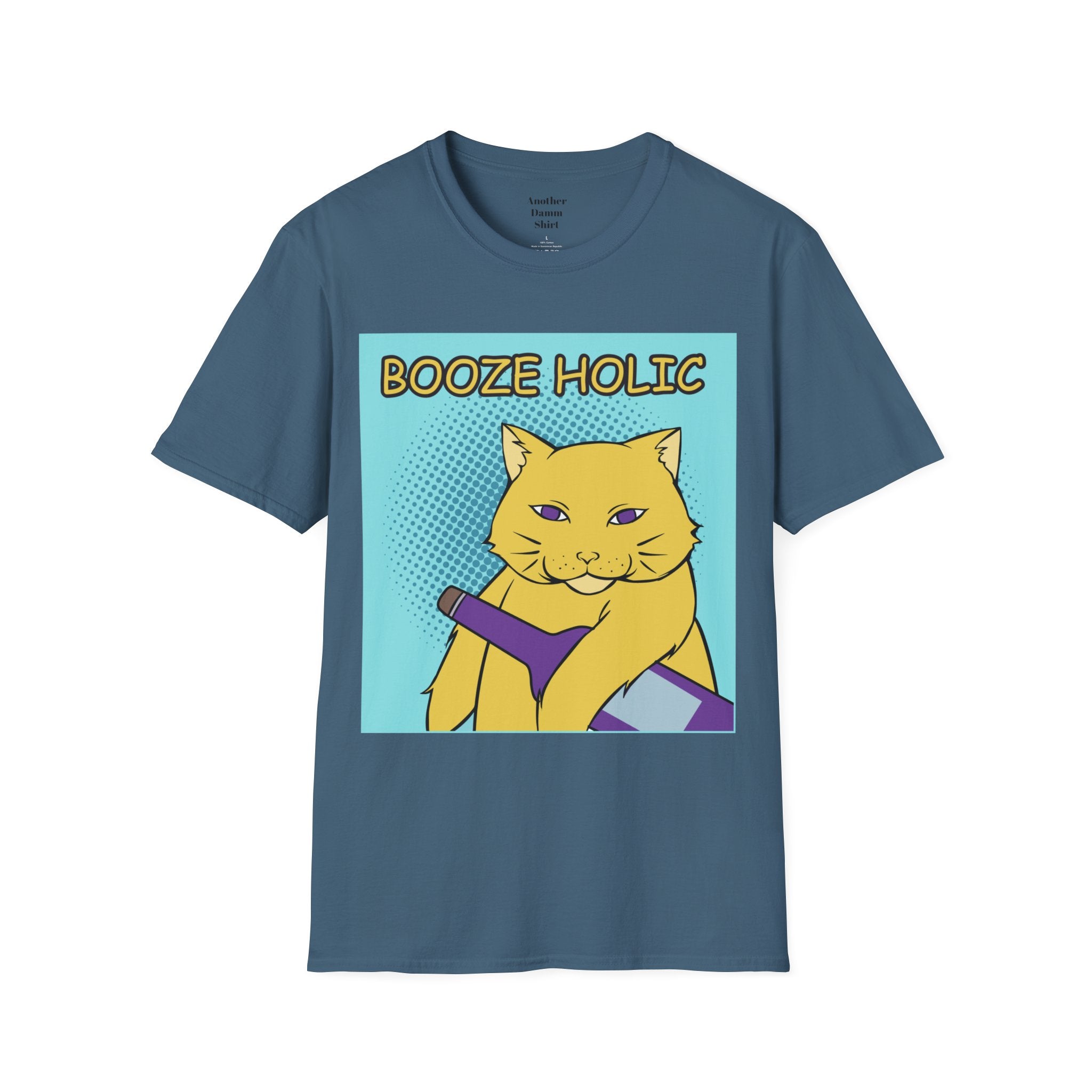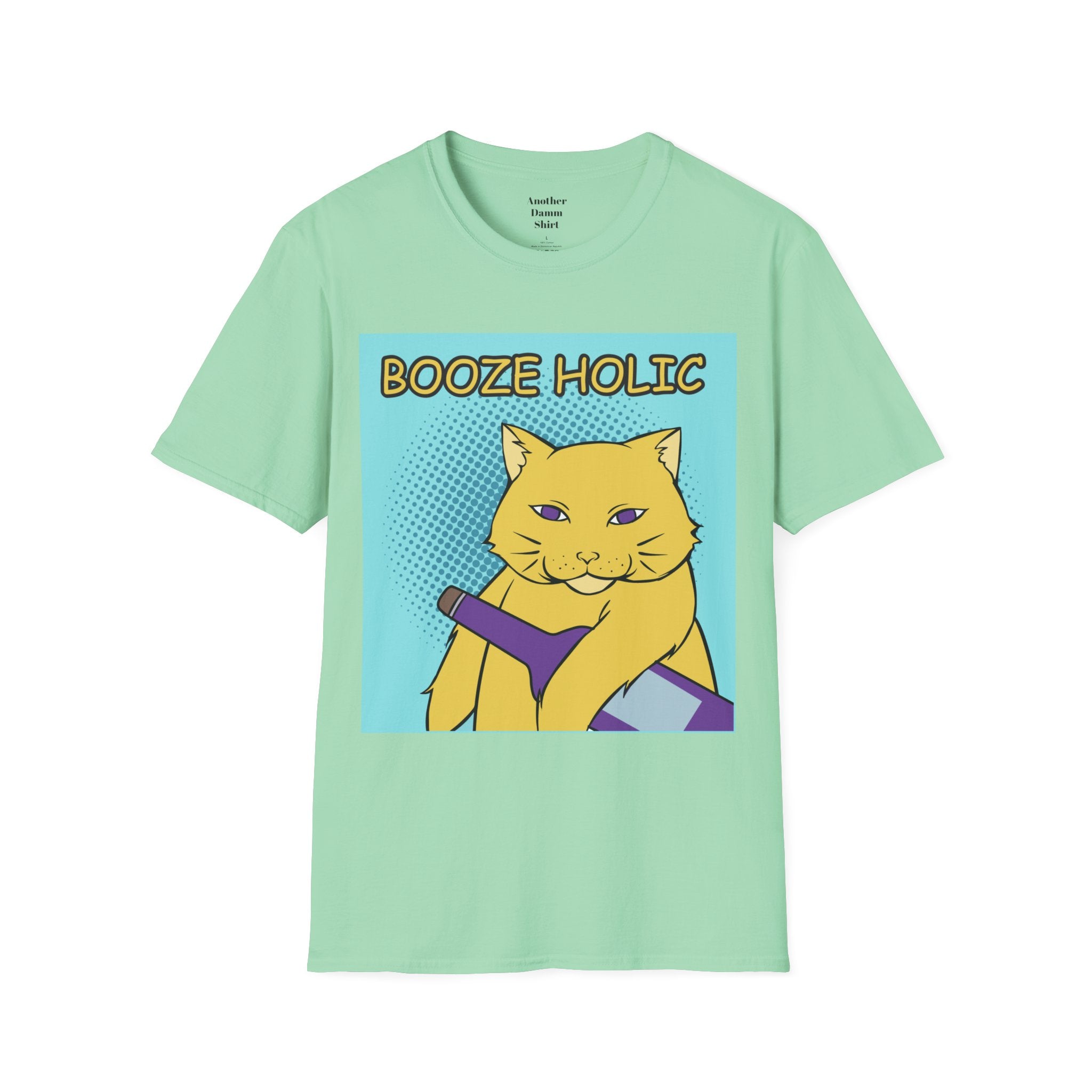 Booze Holic Cat with Bottle Unisex Softstyle T-Shirt  Pop Art Feline