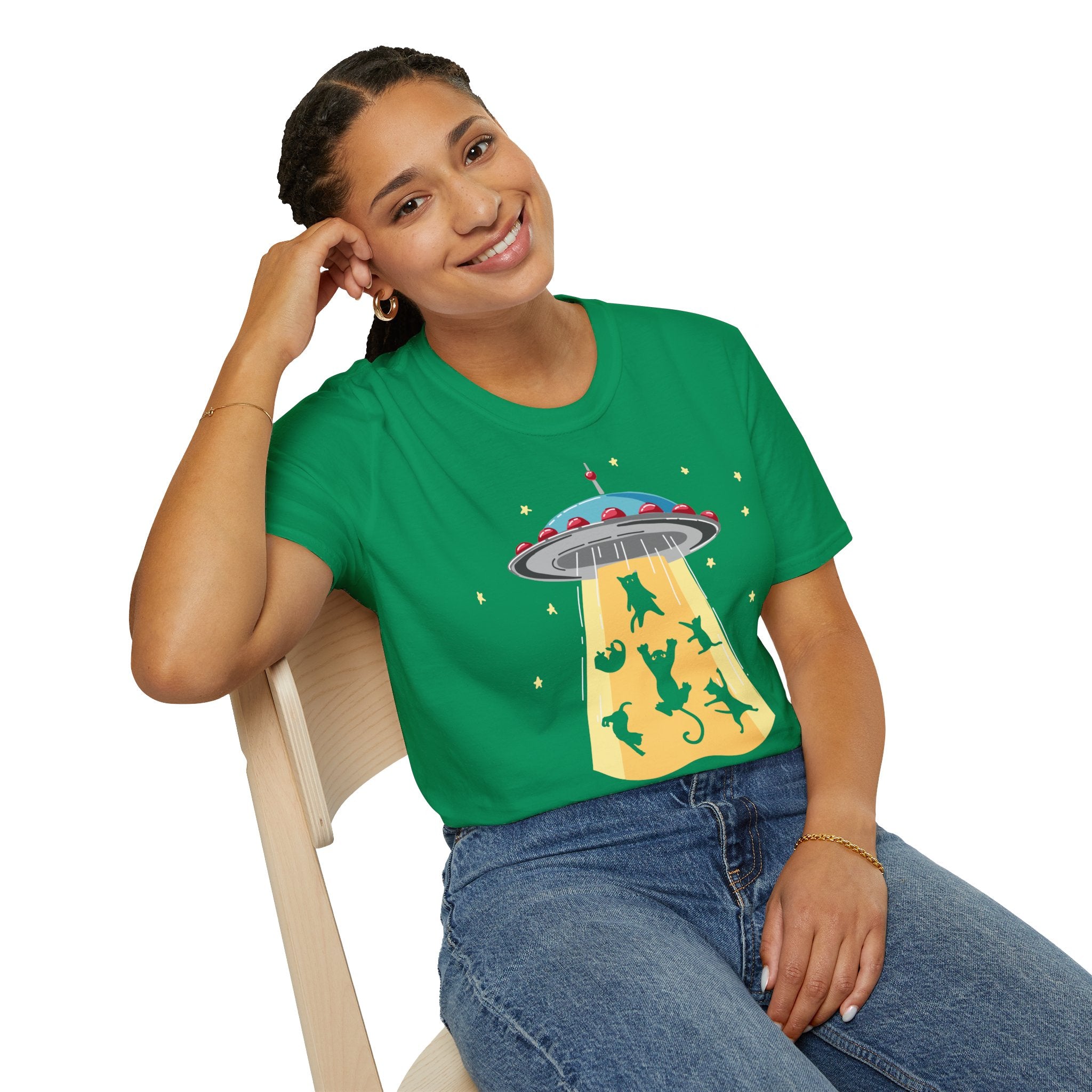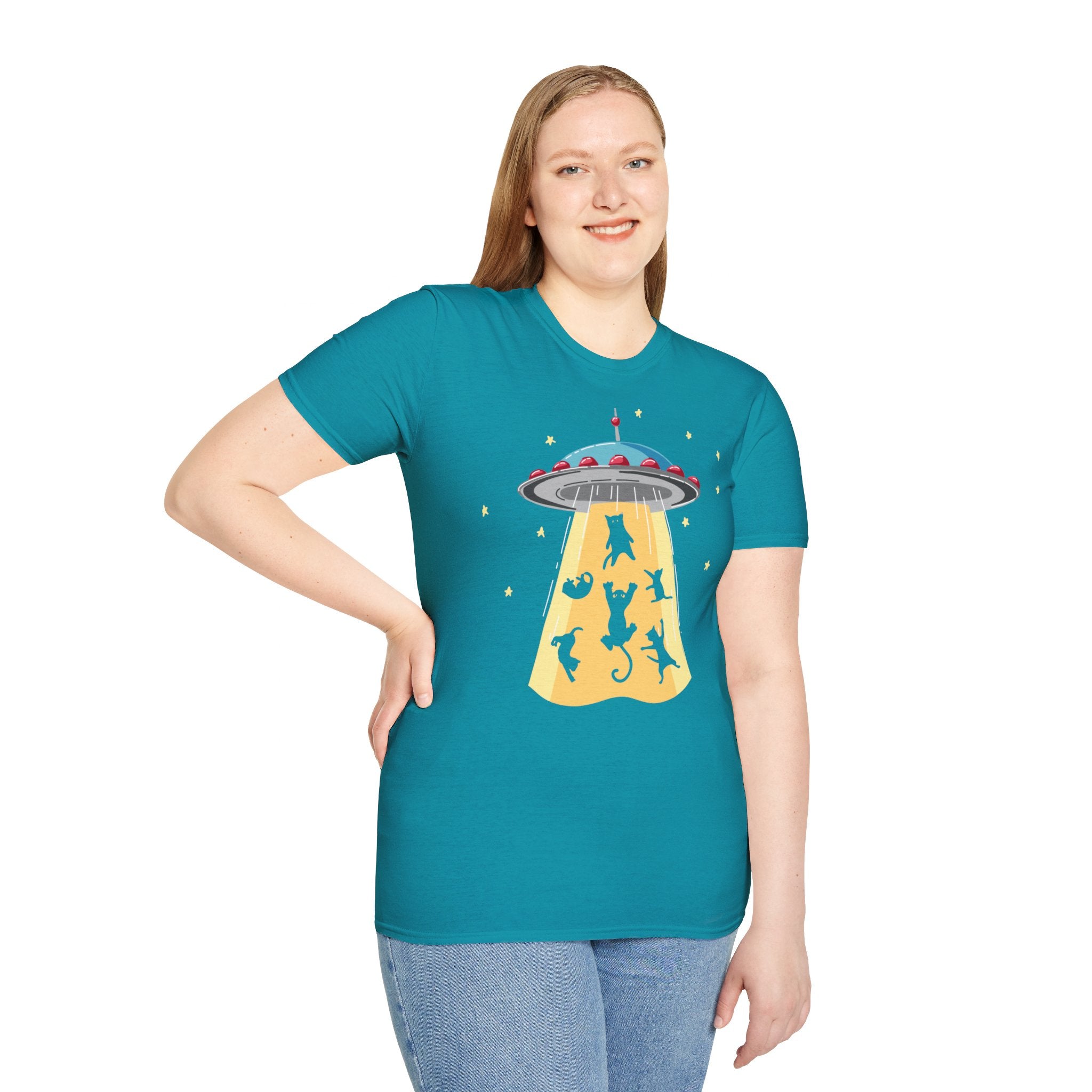 CAT ABDUCTION Is Real, Unisex Softstyle Graphic T-Shirt