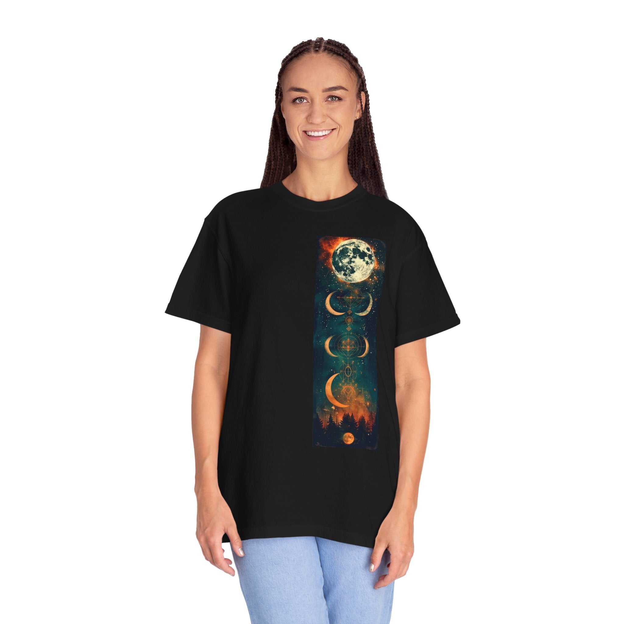 Celestial Vertical Guide T-shirt, perfect for those who love celestial themes and want to add a mystical touch to their wardrobe. Great for casual wear or for special occasions like stargazing parties or astrology events. Ideal for adults.