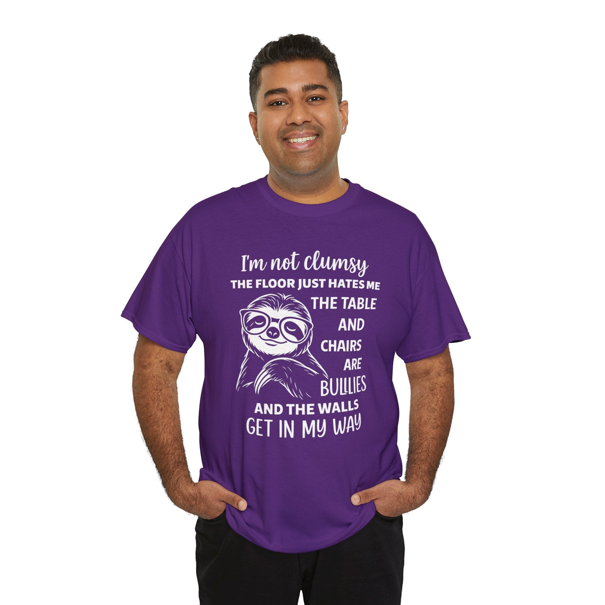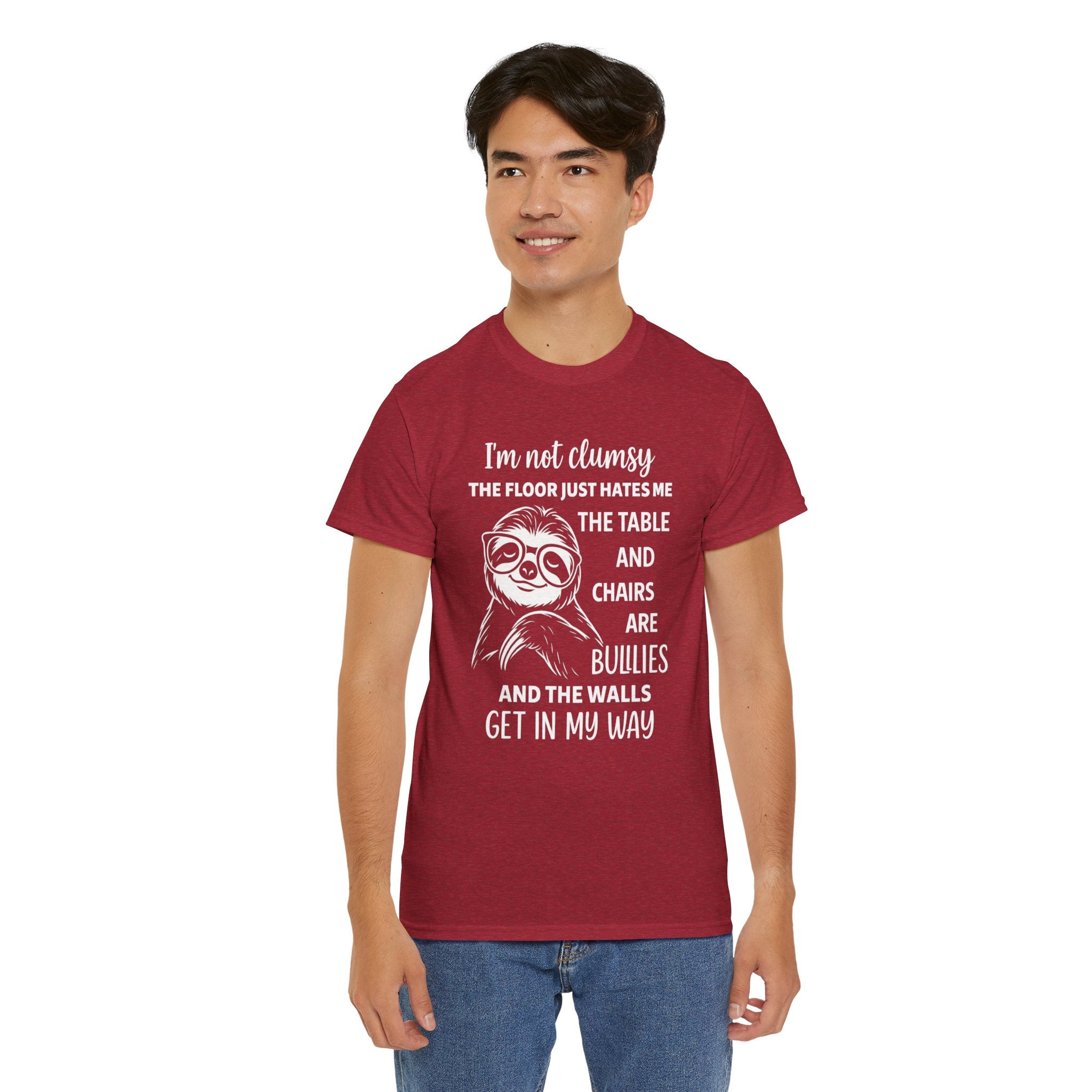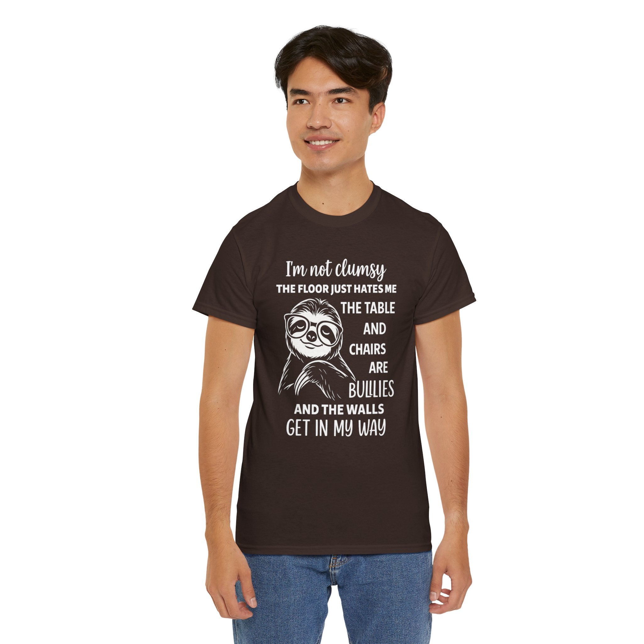 Clumsy Funny Sloth Graphic Tee | Unisex Heavy Cotton Tee | Great Gift for Animal Lovers, Birthdays, Casual Wear, Humorous Gifts, Everyday Style