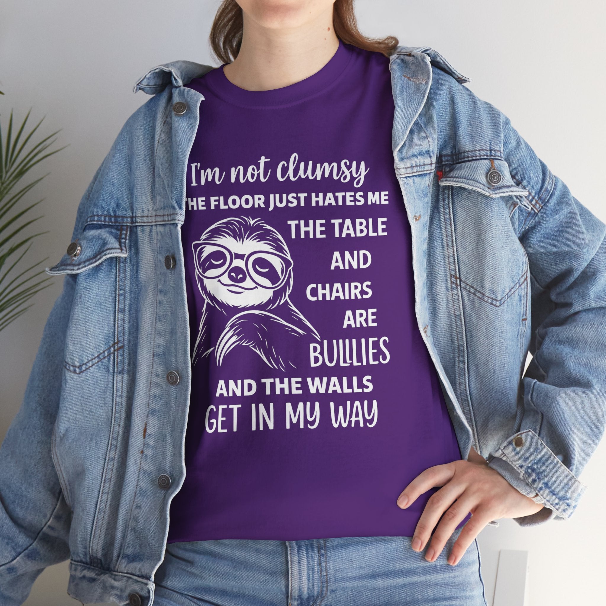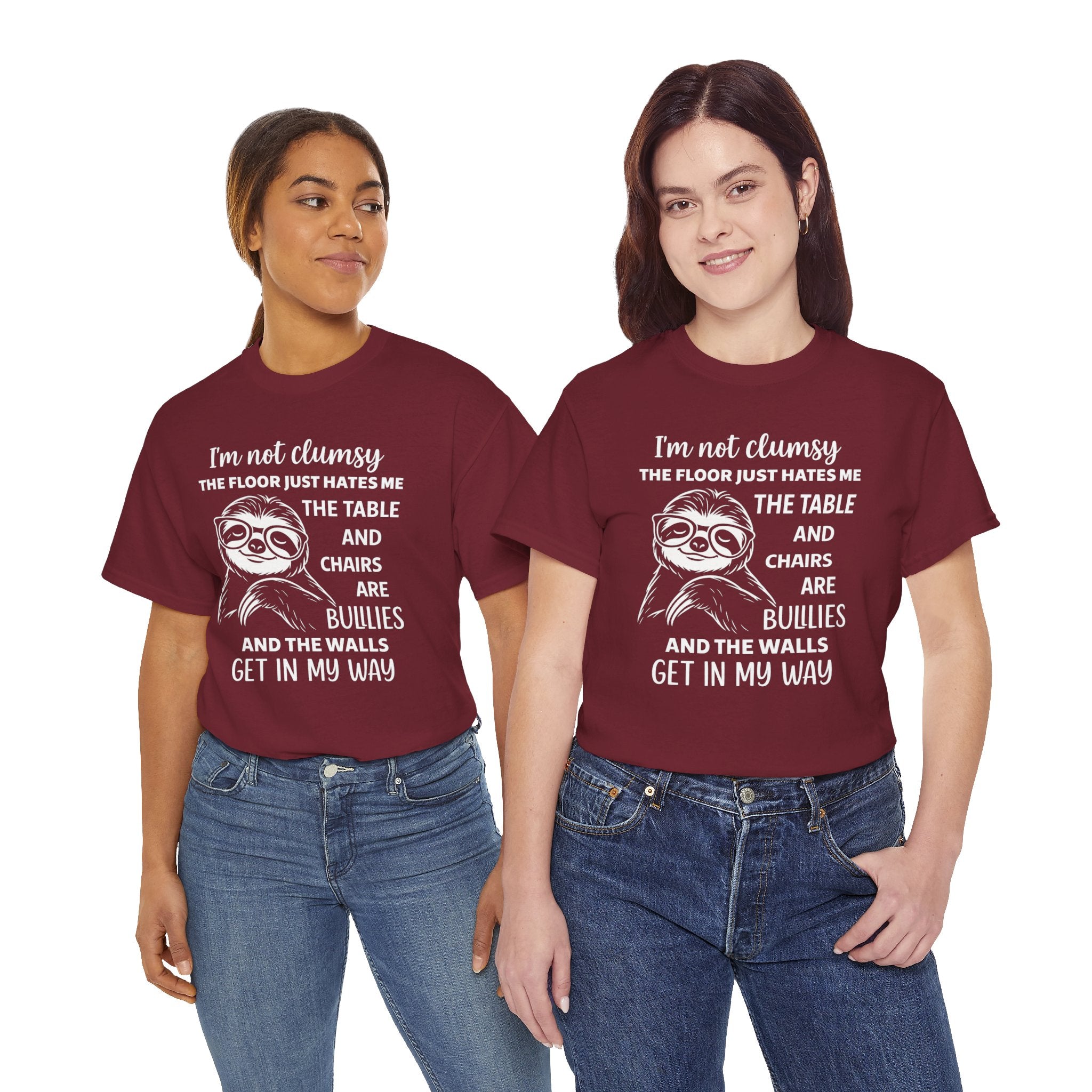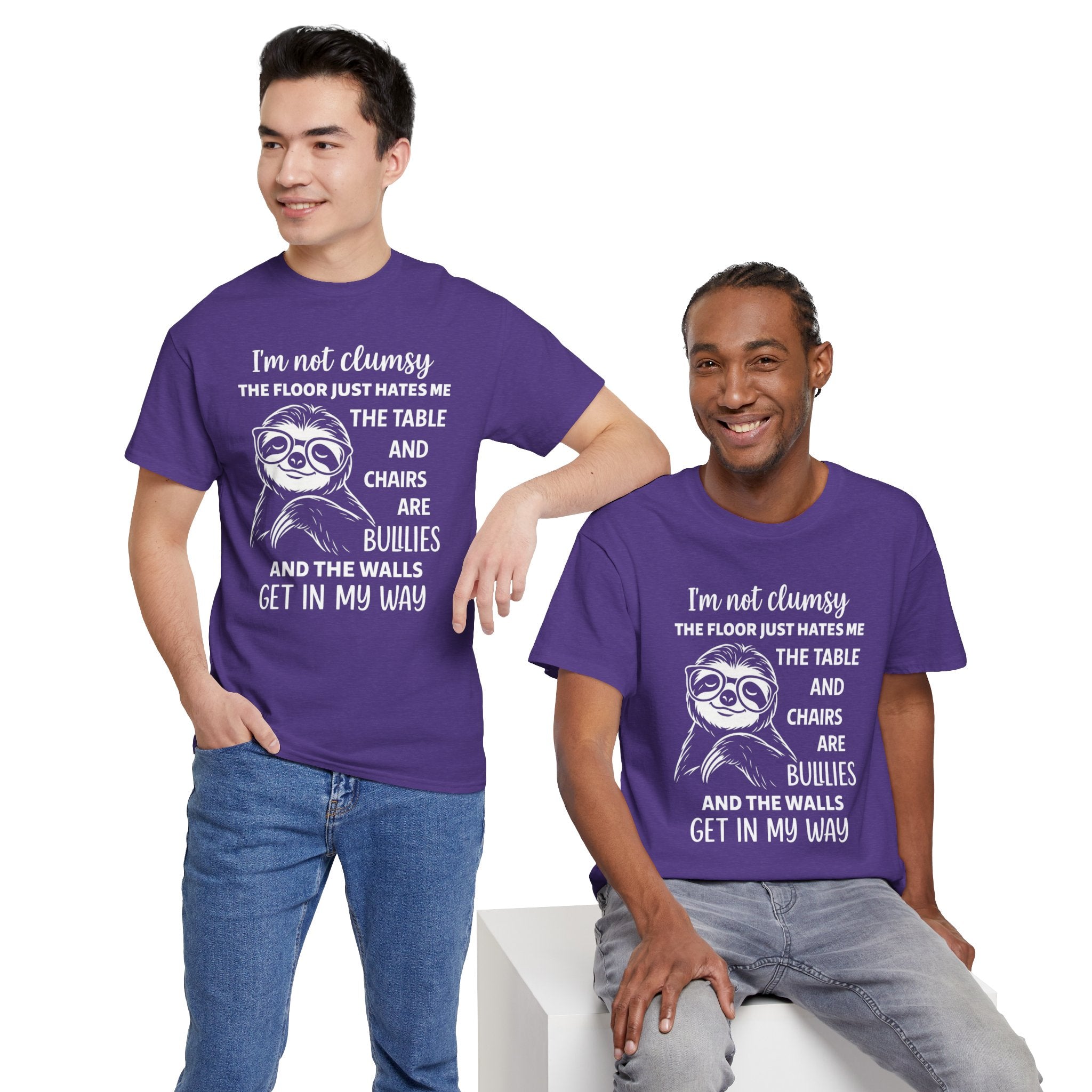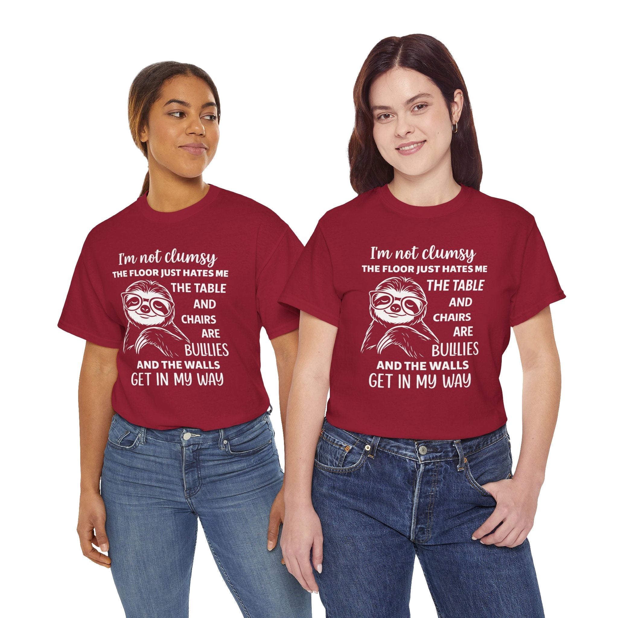 Clumsy Funny Sloth Graphic Tee | Unisex Heavy Cotton Tee | Great Gift for Animal Lovers, Birthdays, Casual Wear, Humorous Gifts, Everyday Style