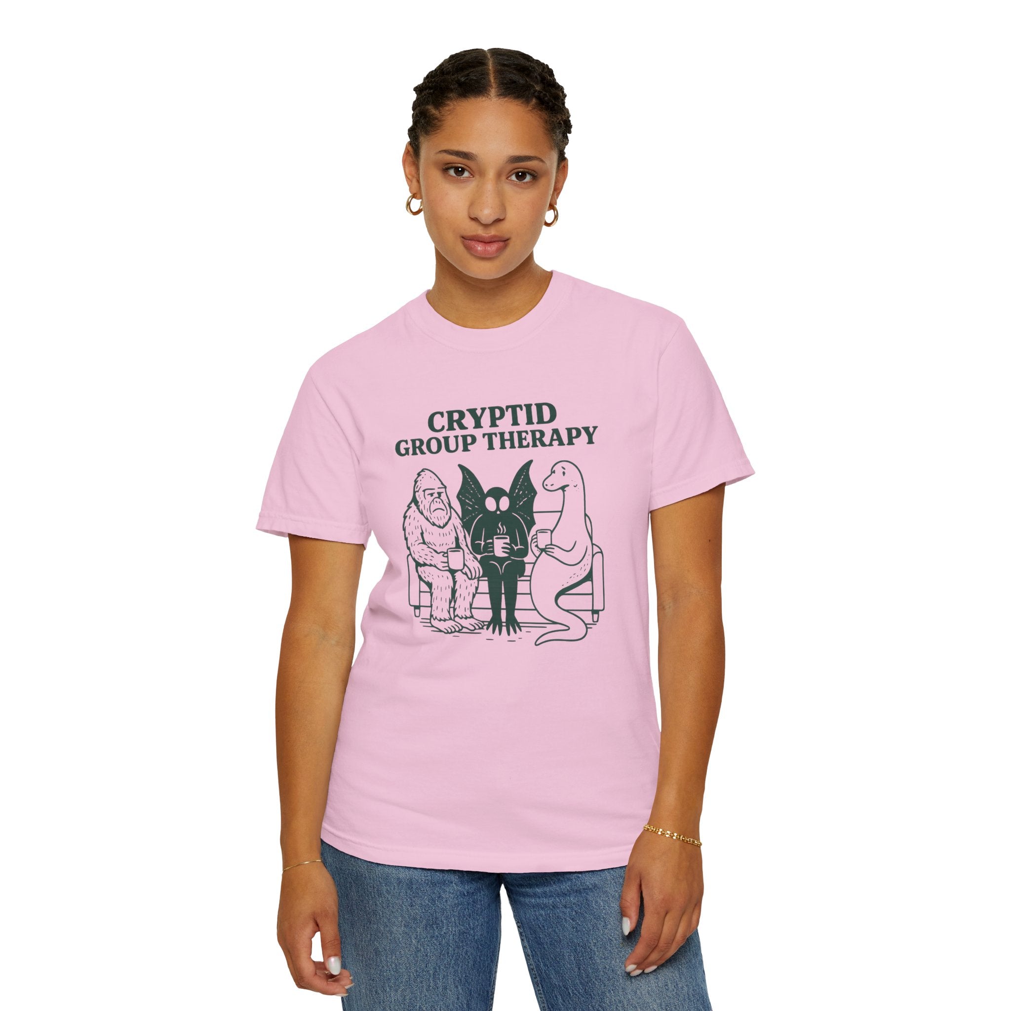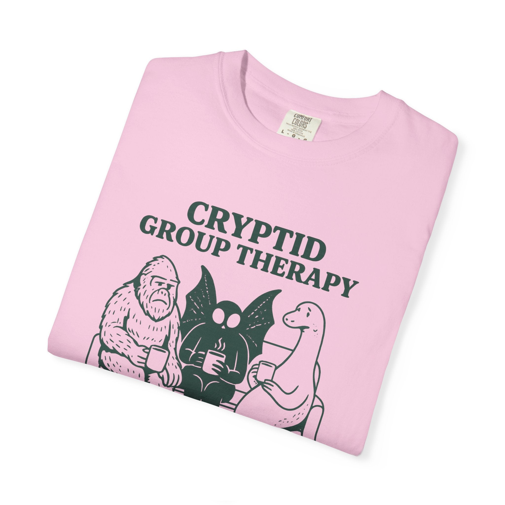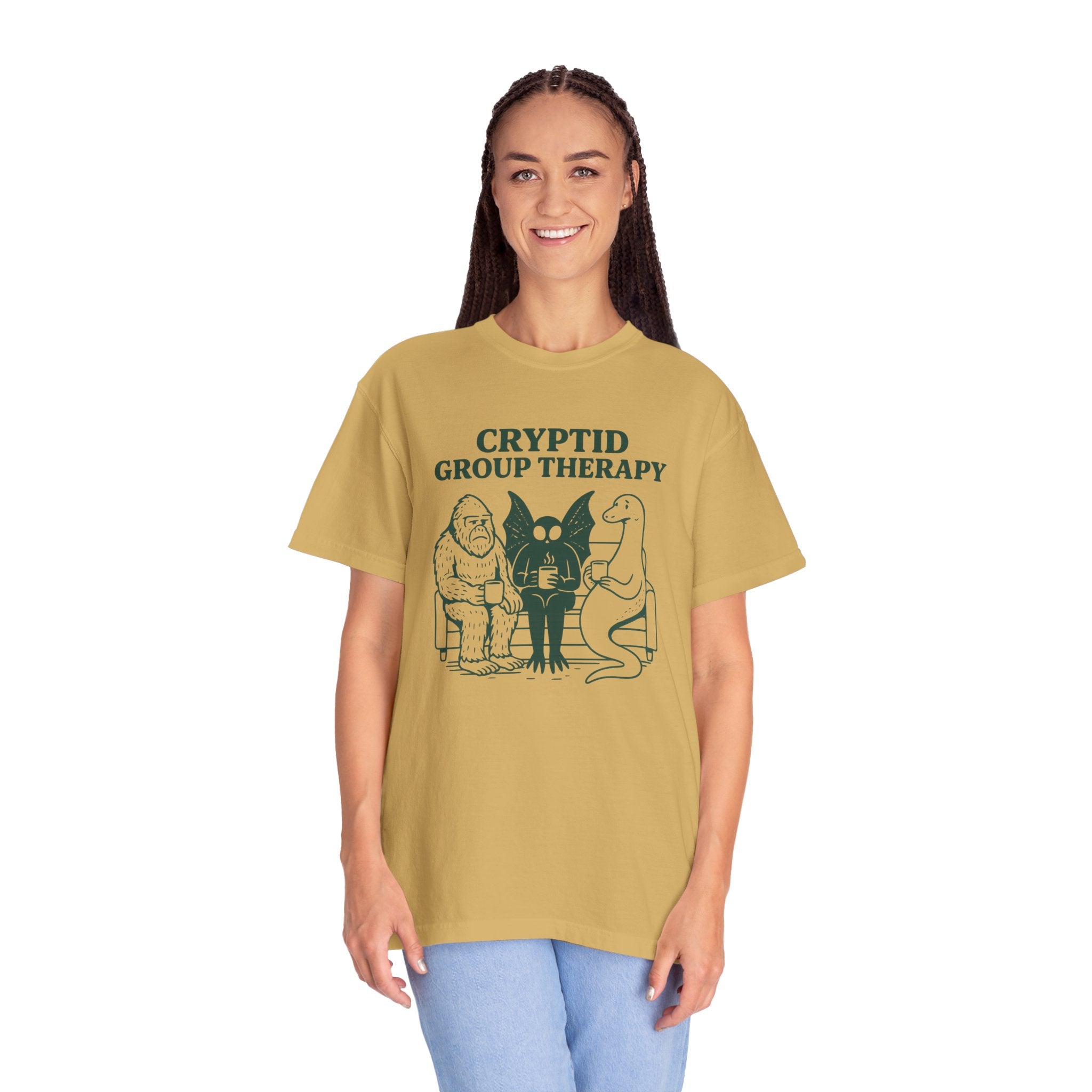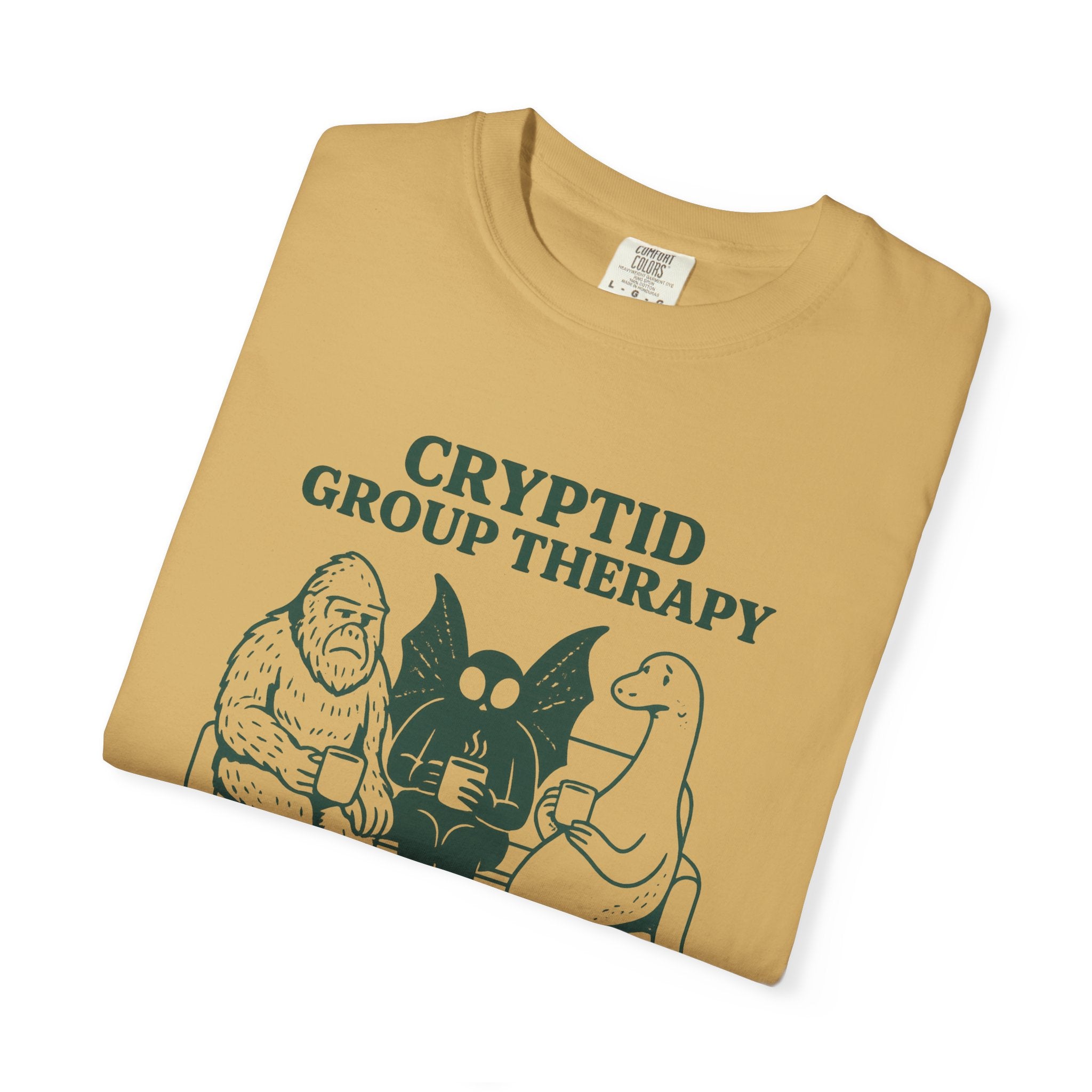 Cryptid Group Therapy Bigfoot, Mothman and Loch Nessie Unisex T-Shirt, Funny Graphic Tee, Gift for Cryptid Lovers, Quirky Casual Wear, Cool Humor Shirt