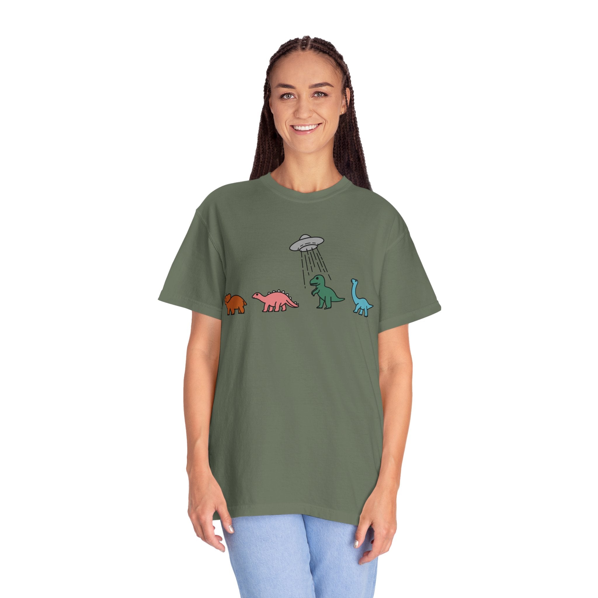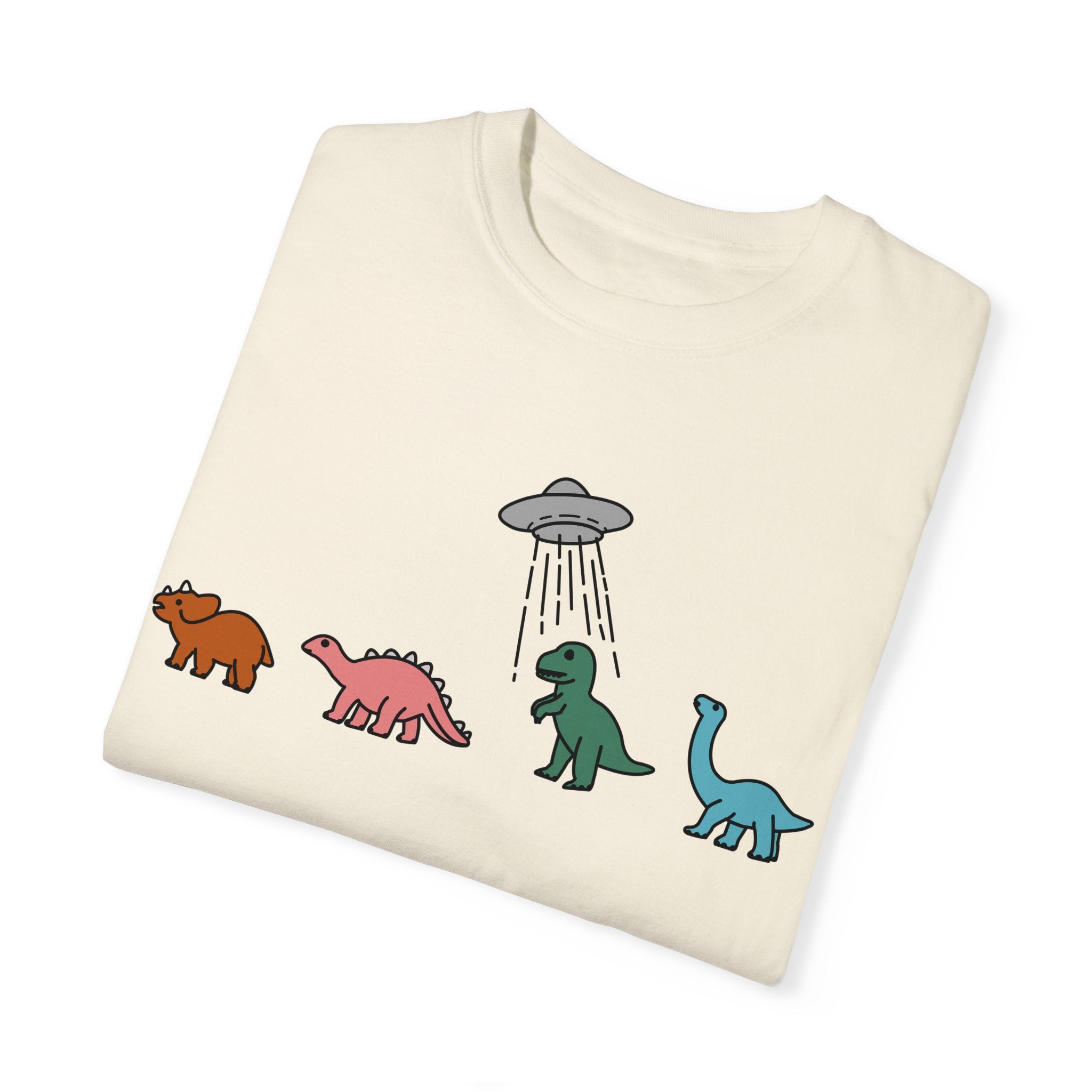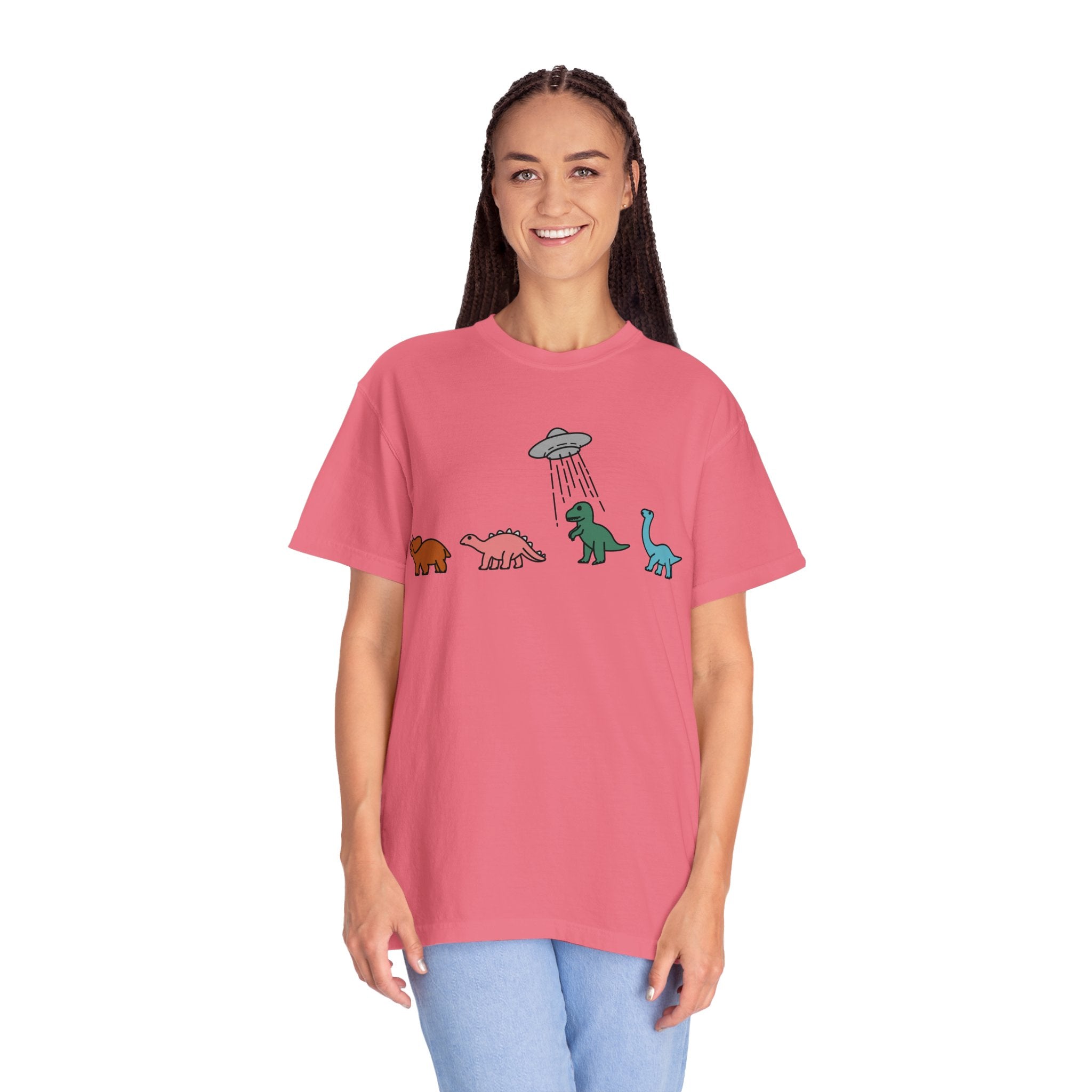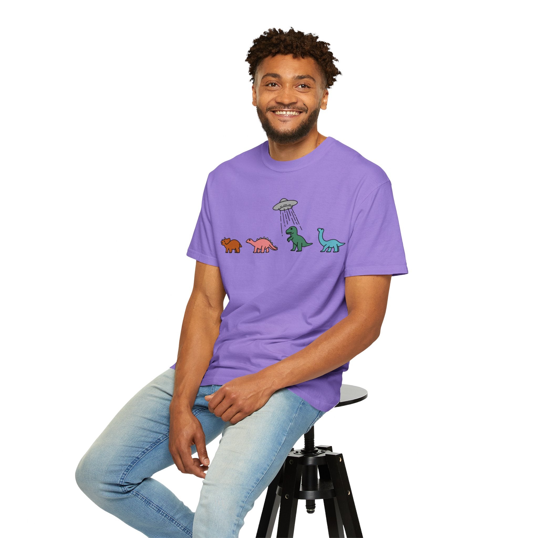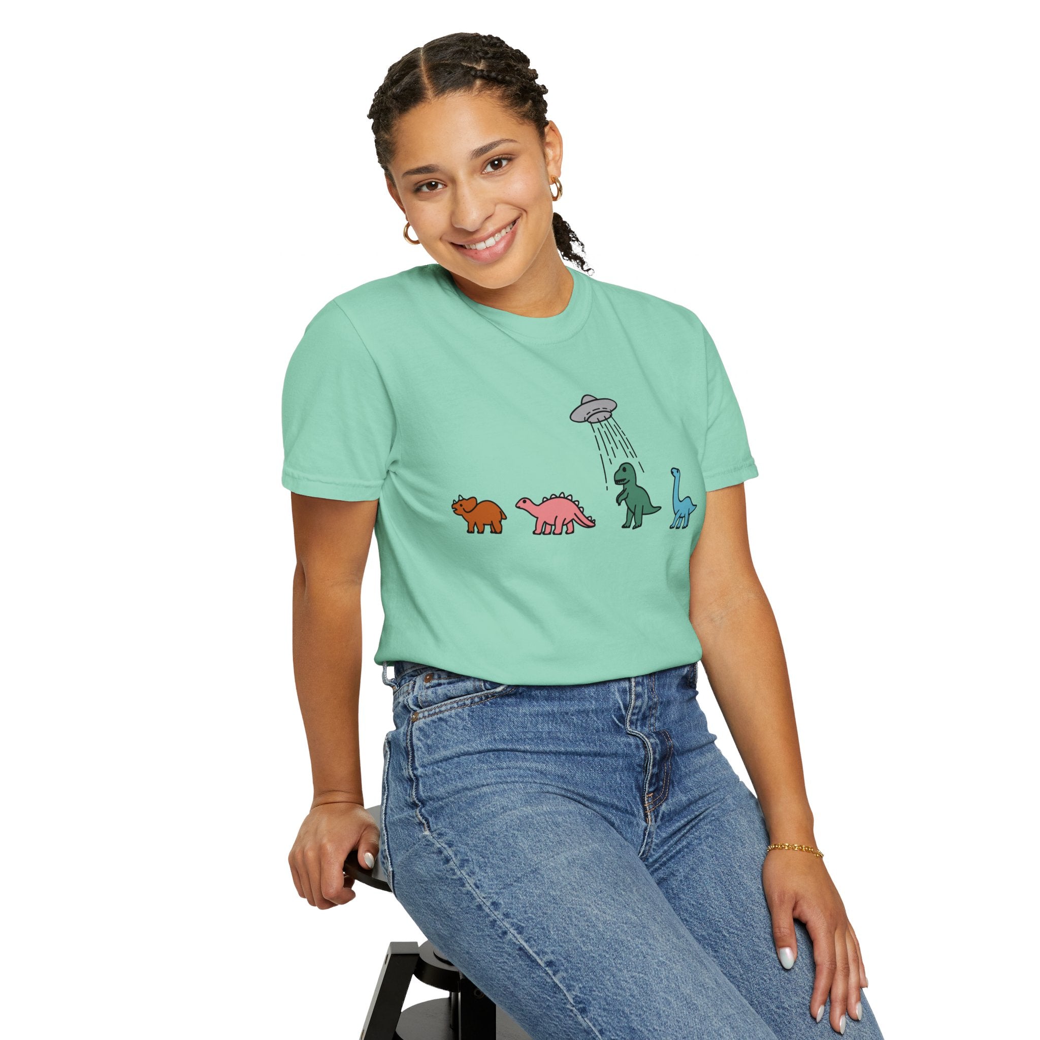 Dinosaur UFO Retro Unisex Garment-Dyed T-shirt