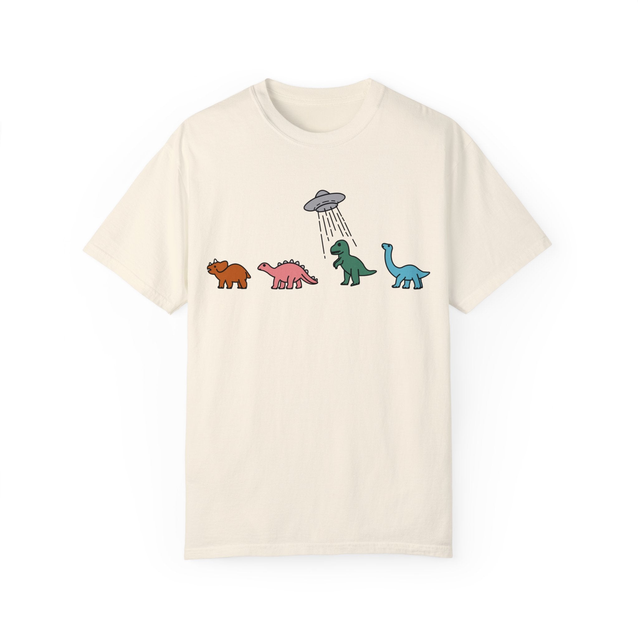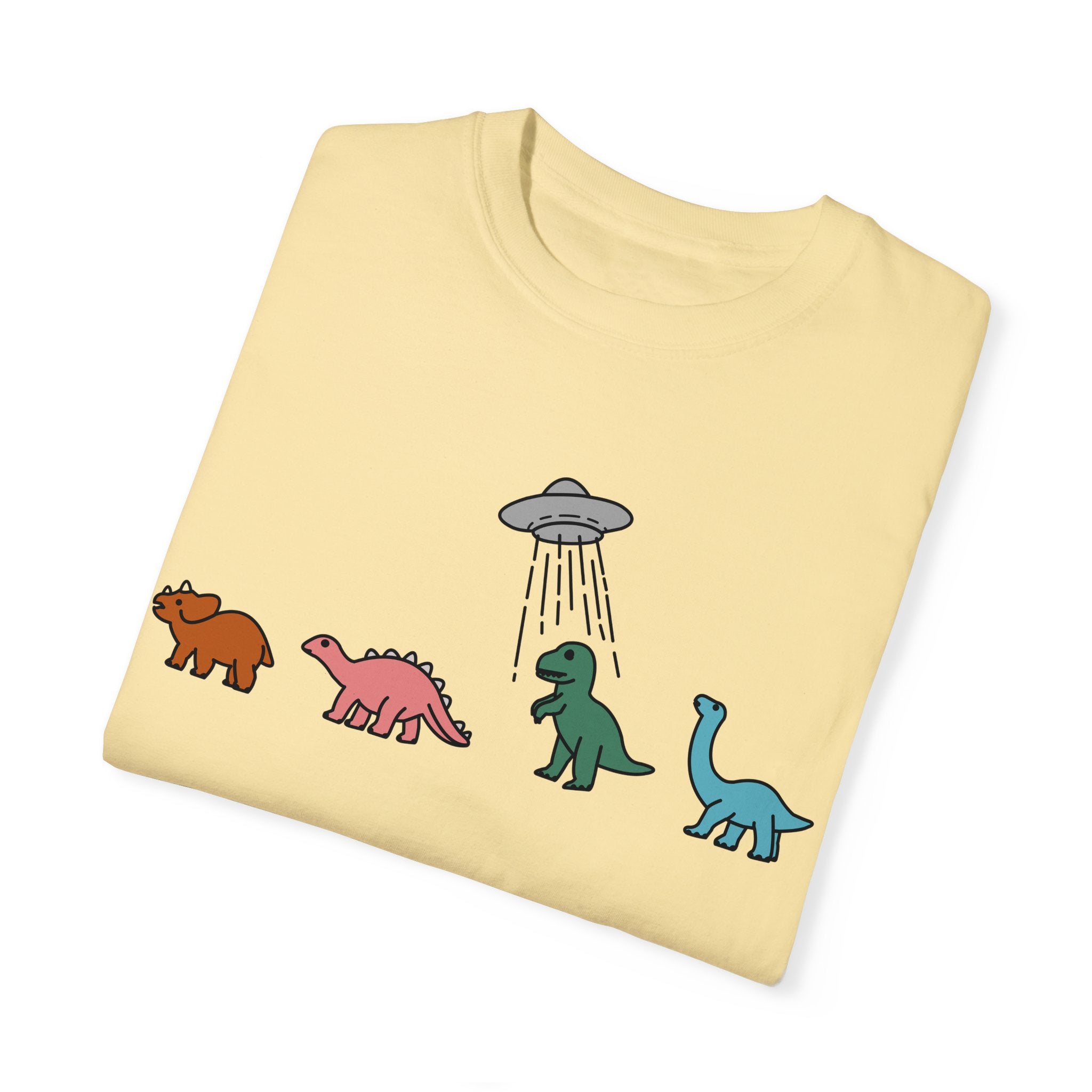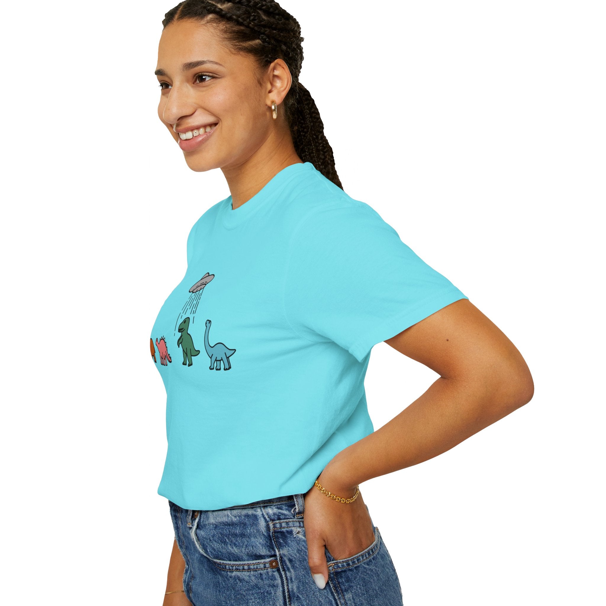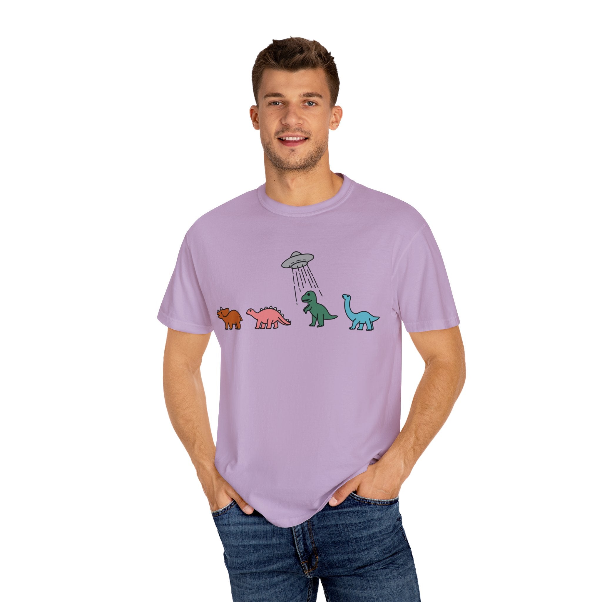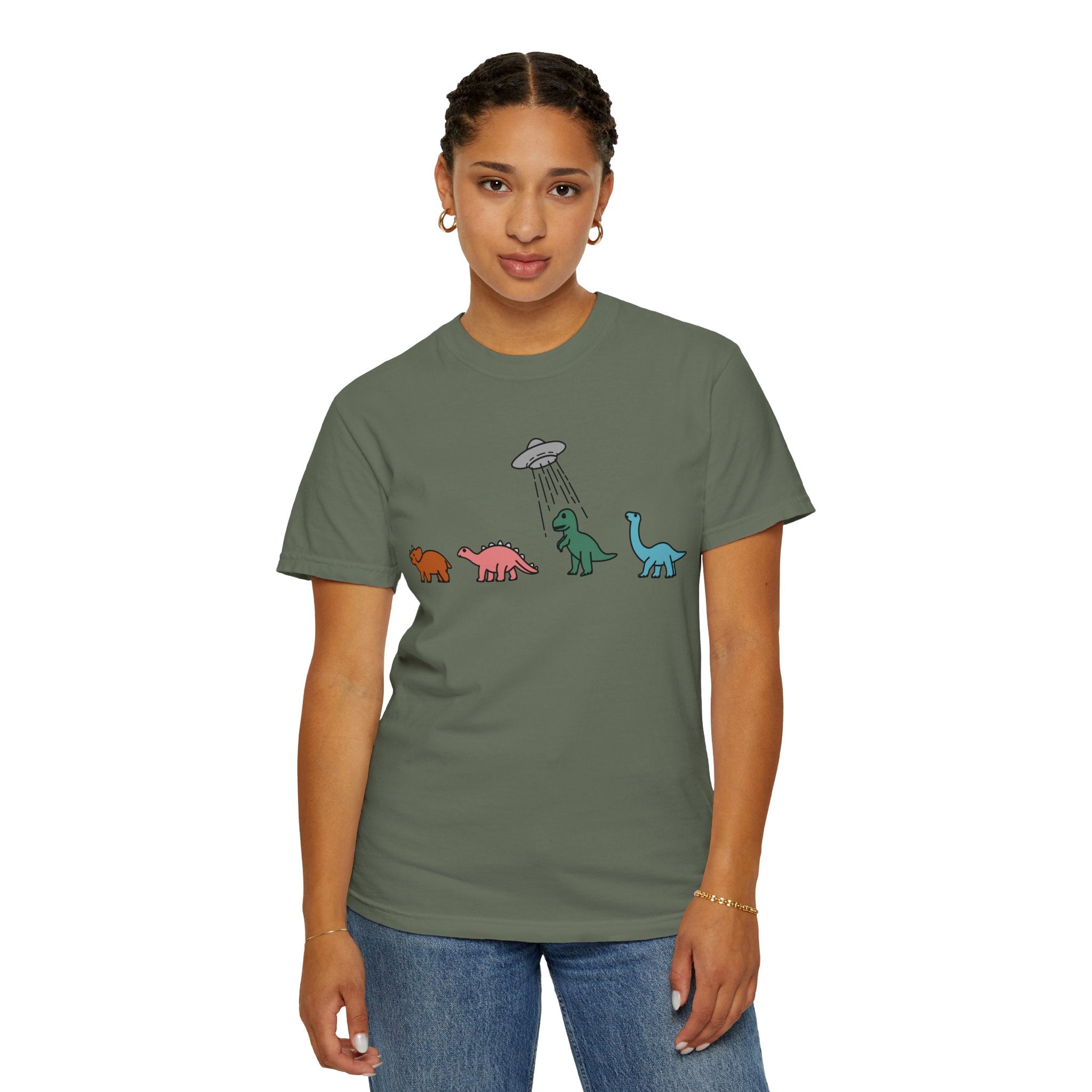 Dinosaur UFO Retro Unisex Garment-Dyed T-shirt