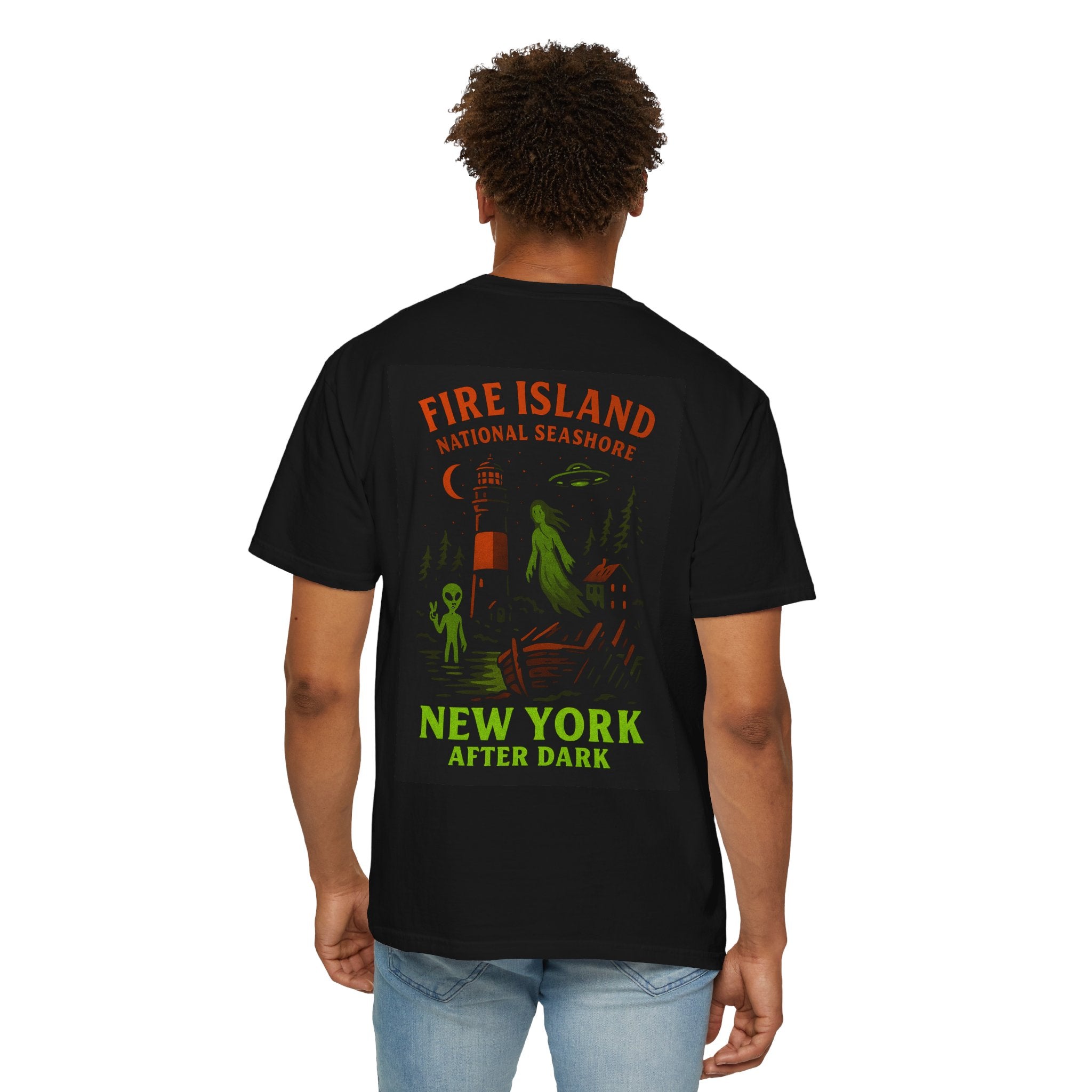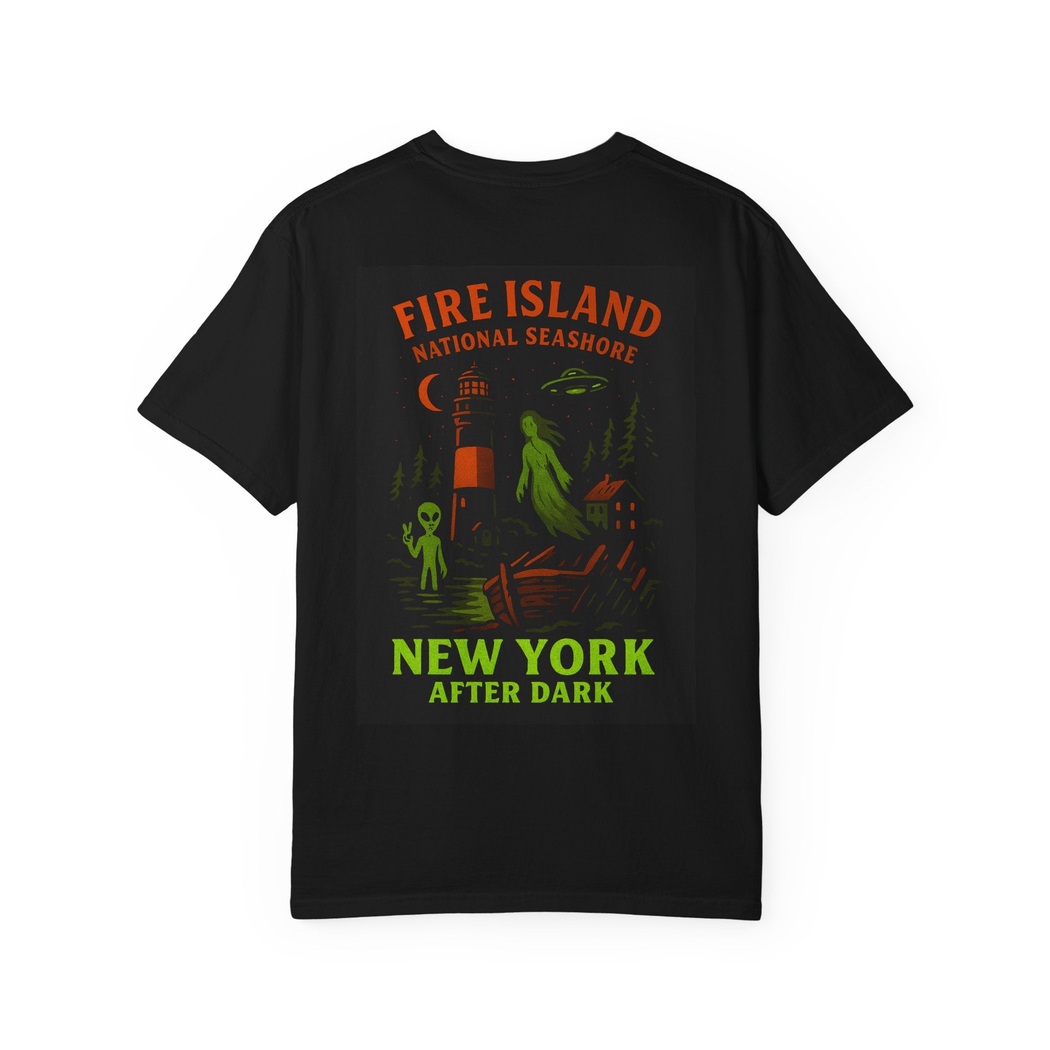 Fire Island National Seashore T-Shirt from the New York After Dark Collection. Perfect for adventure seekers and nature lovers, this retro tee is a unique gift. Ideal for those who love outdoor activities and exploring nature. Relevant for holidays like Earth Day and National Park Week.