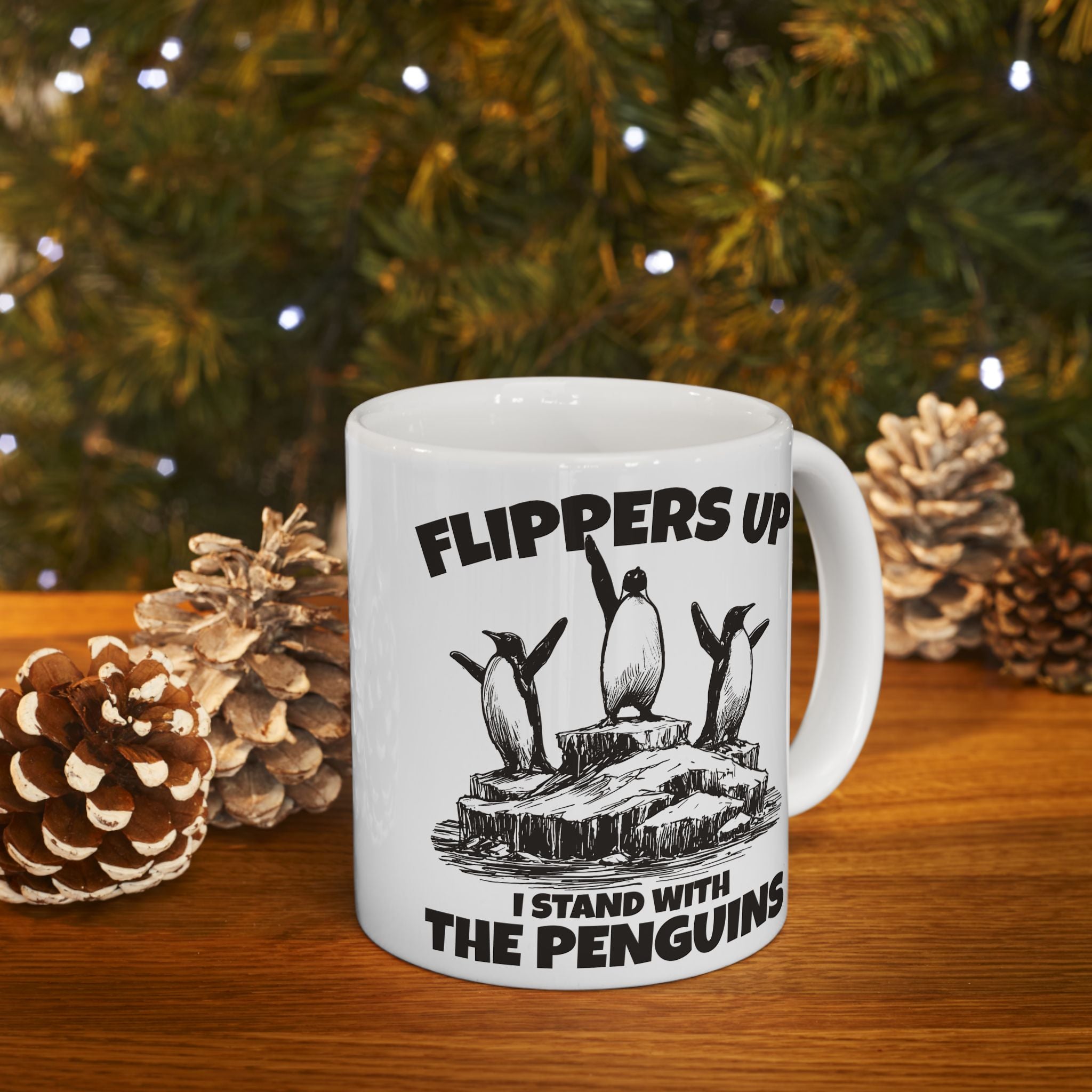 - Glossy white ceramic with a bright, eye-catching print