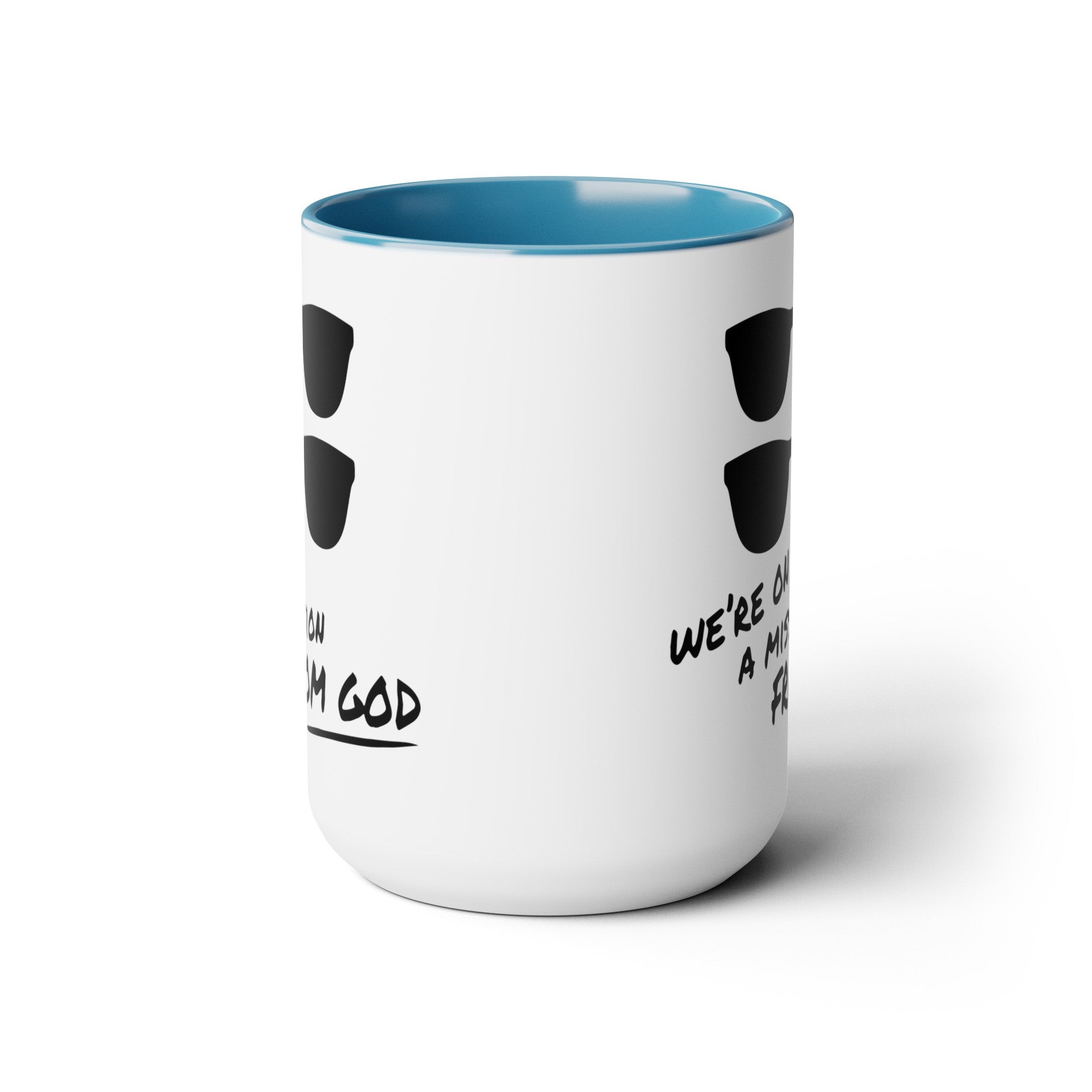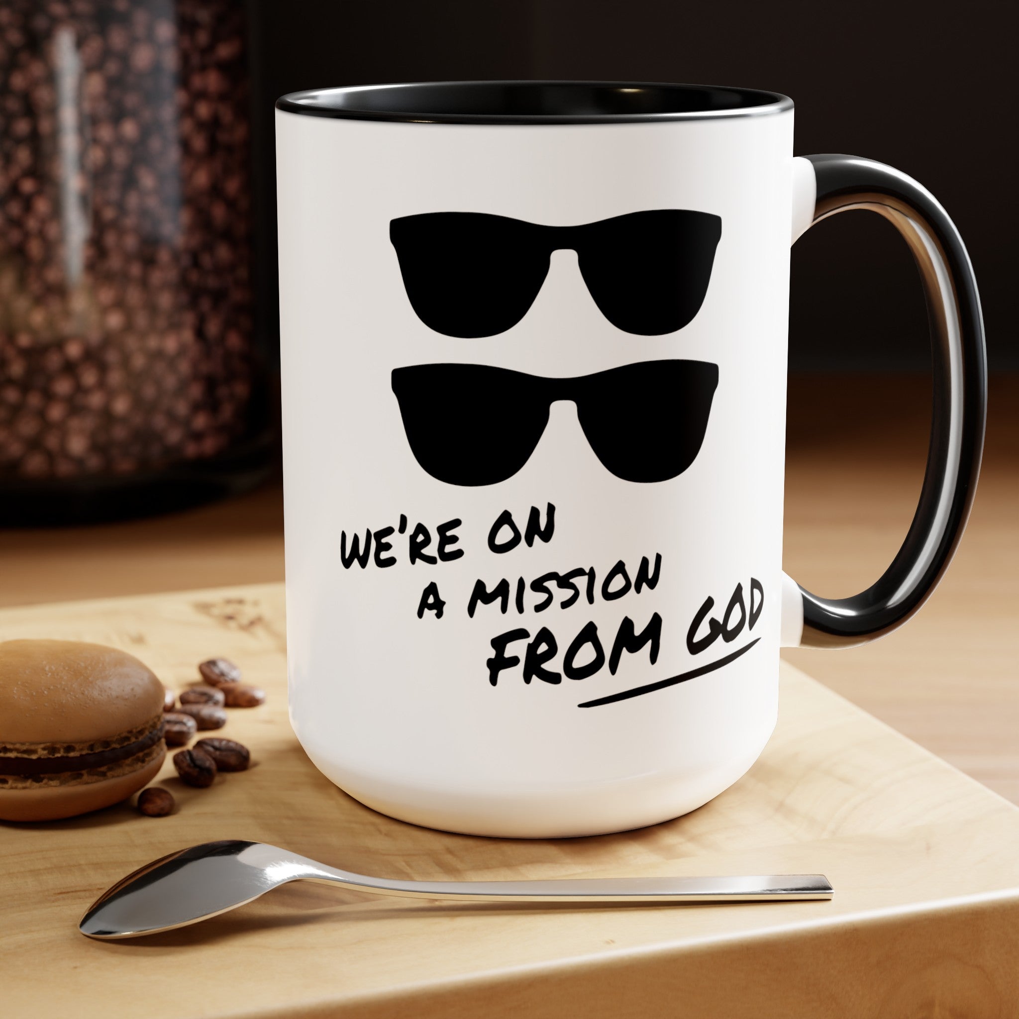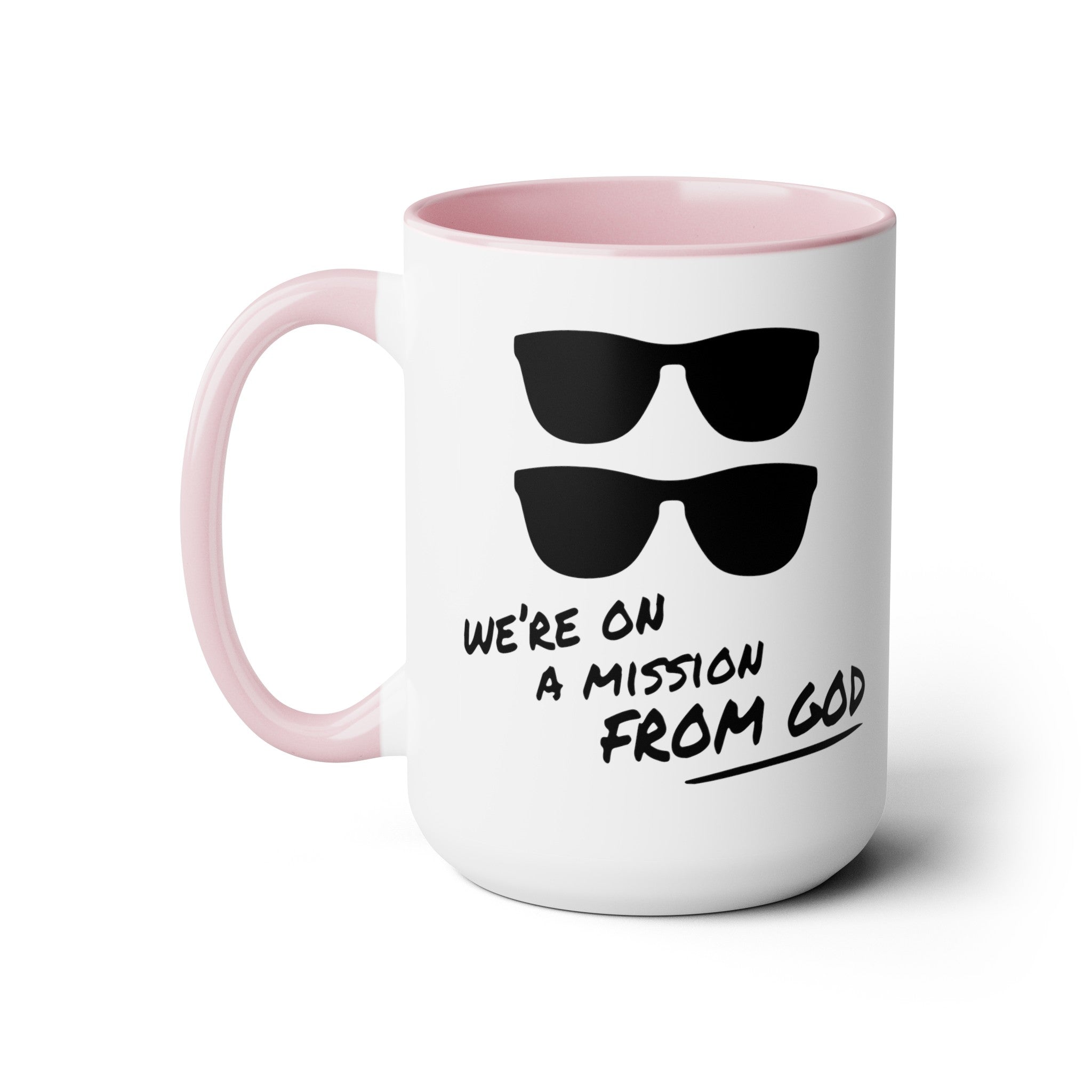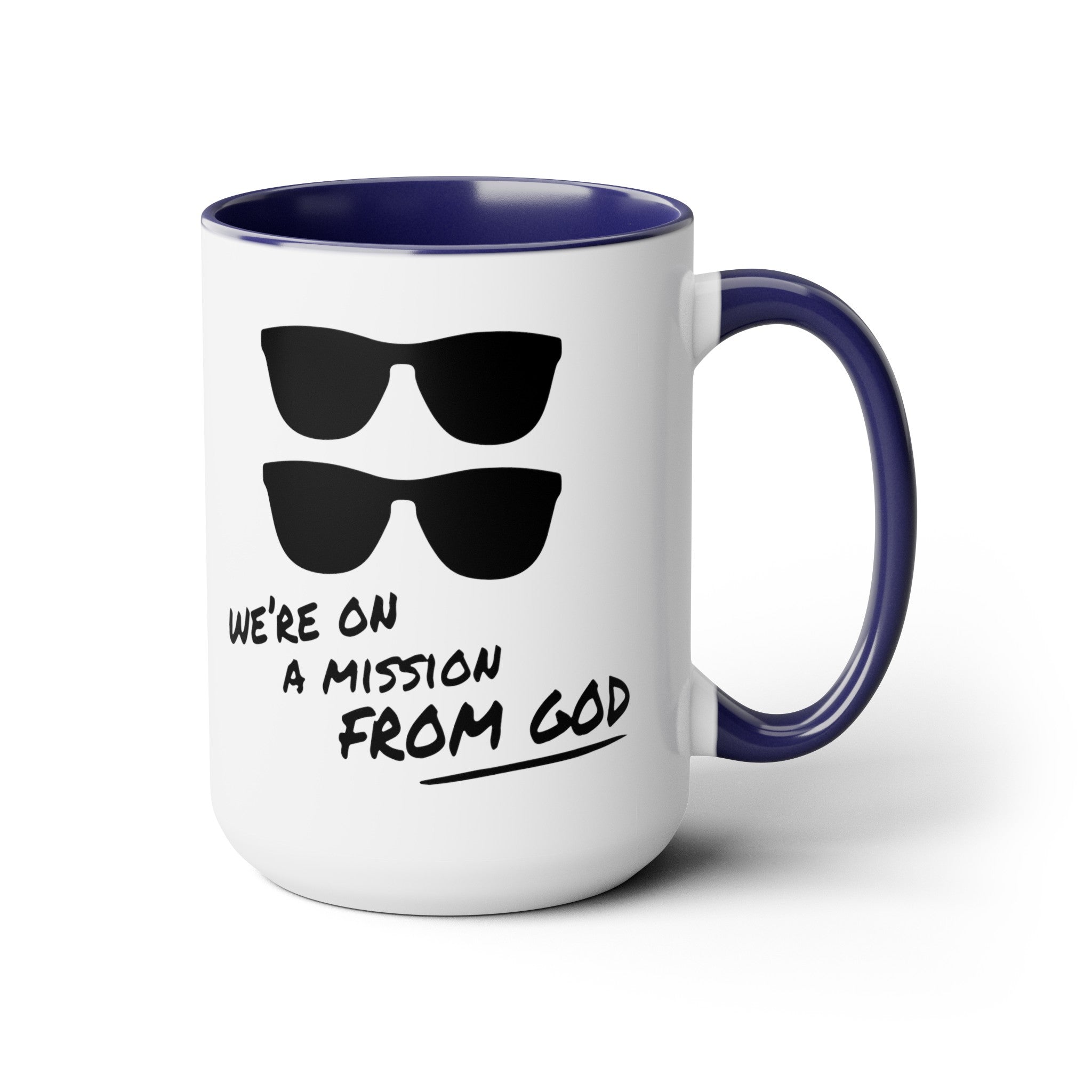 Funny Movie Quote Mug, We're On A Mission From God, Blues Brothers Movie, Cheap Sunglasses, Novelty Gift, 80s Movie Mug, Two Tone Mug 15 oz.