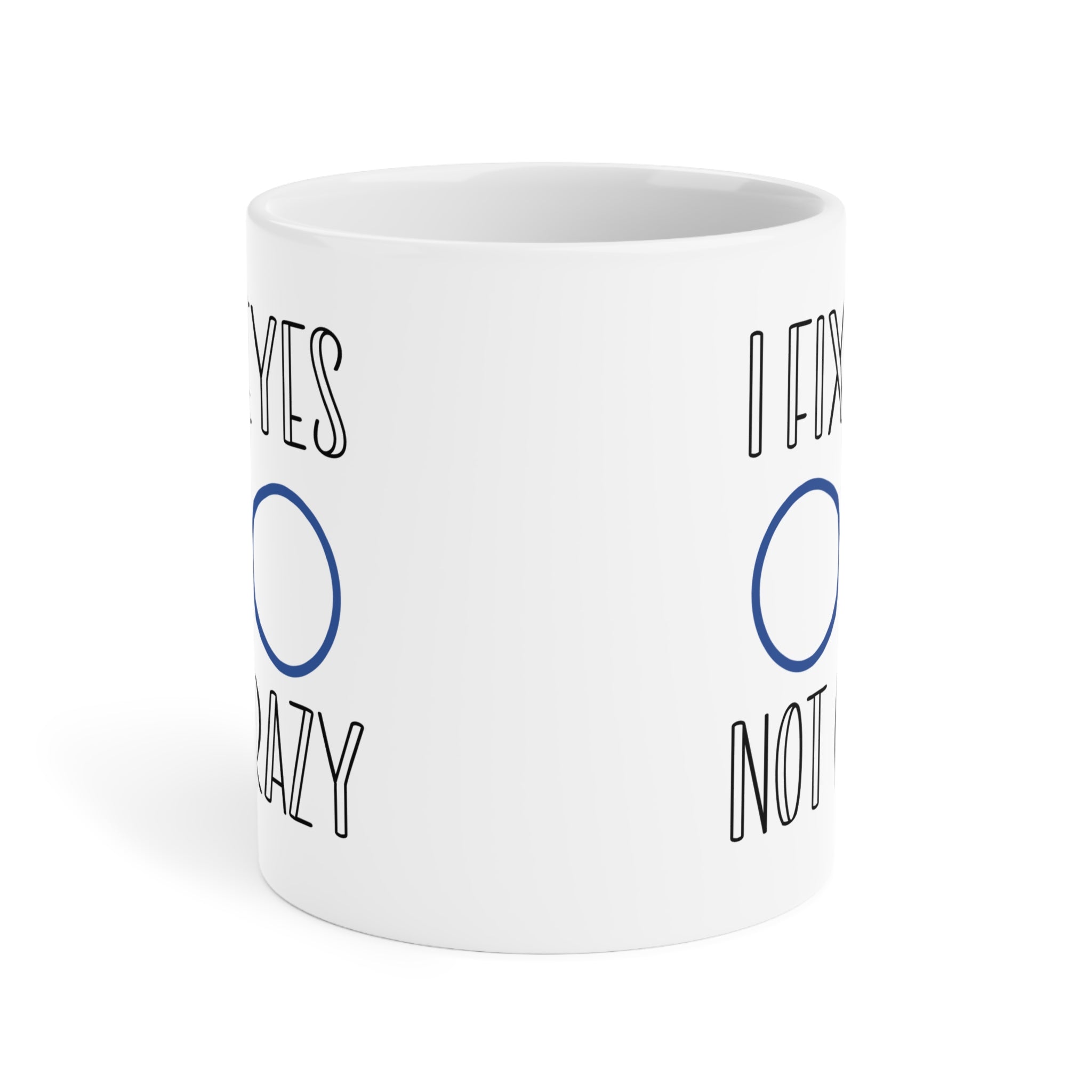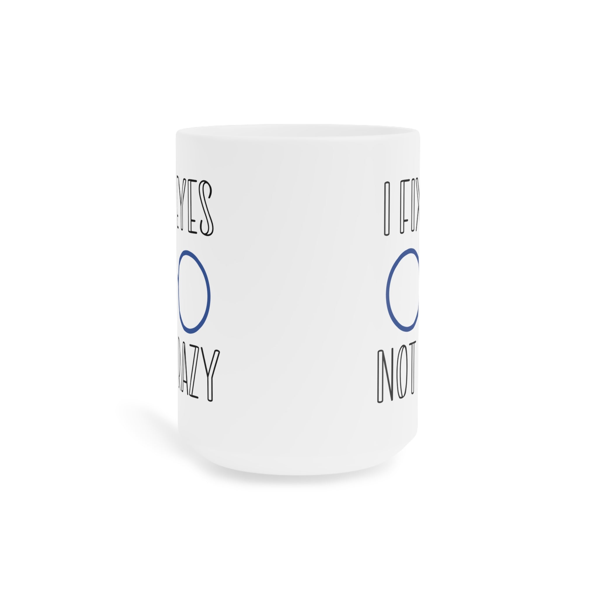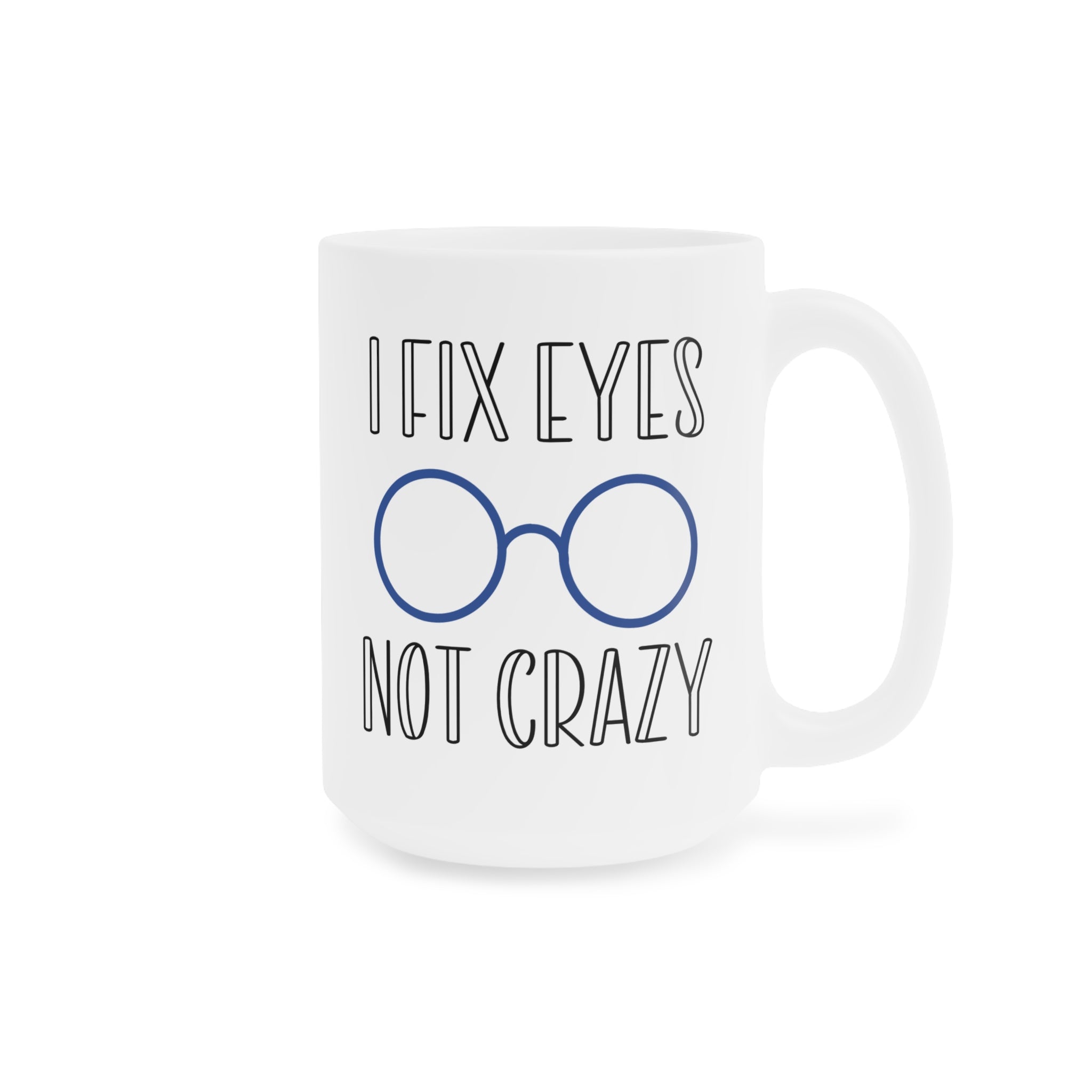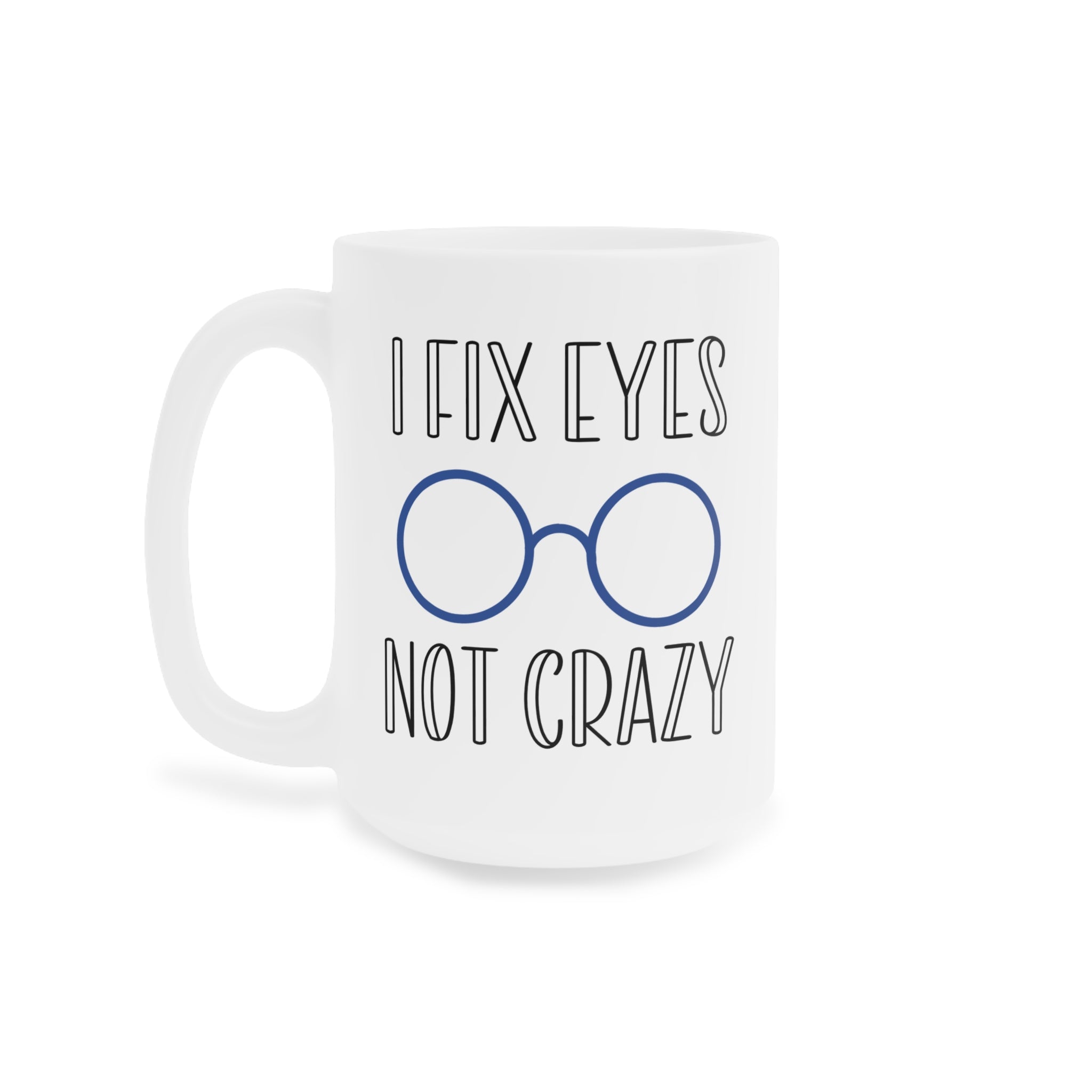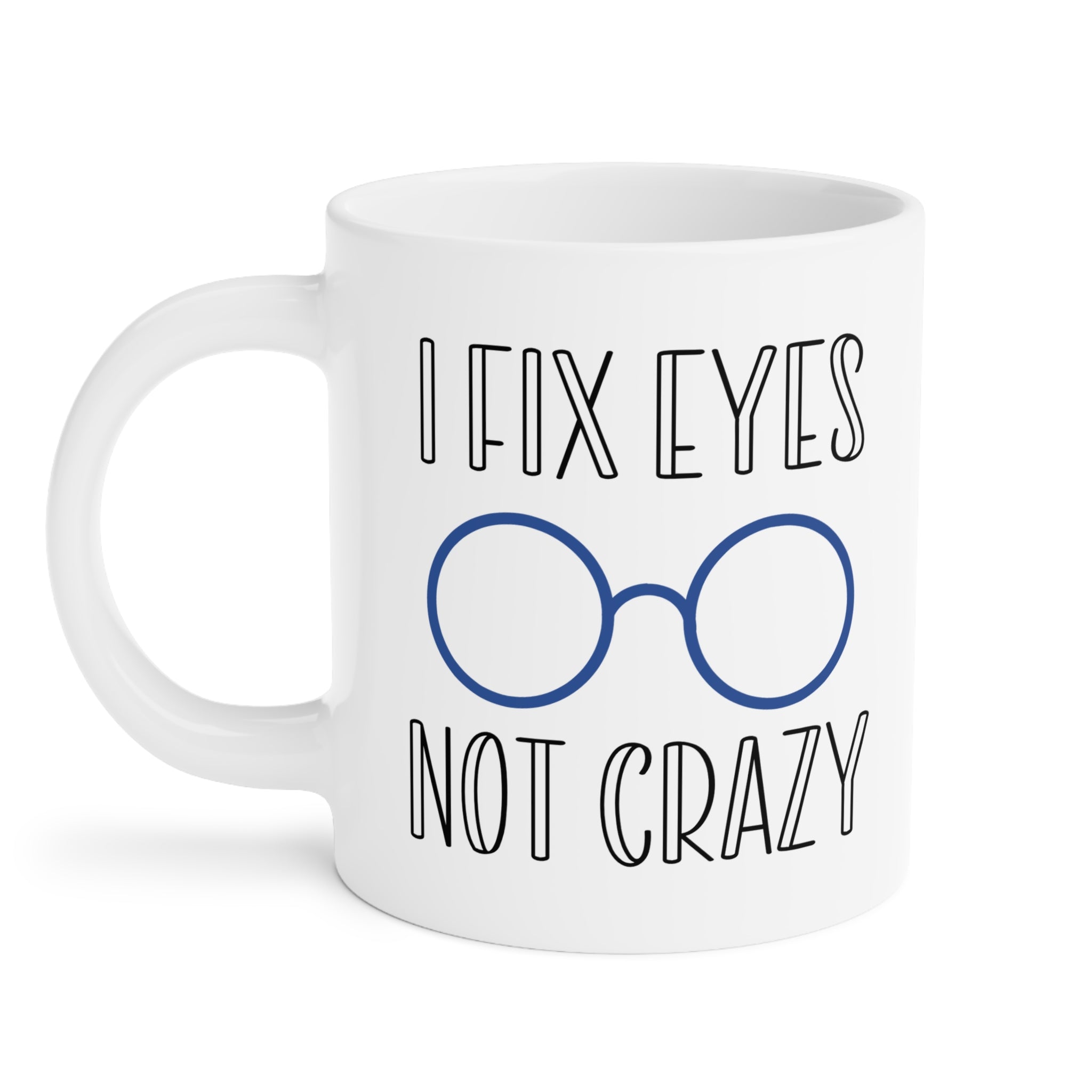 This personalized coffee mug adds some Eye Care mojo to your morning joe. Choose among our 11oz, 15oz, or 20oz sizes – all come with a scratch-resistant finish and are ideal for any beverage. The easy-grip handle makes for a smooth drinking experience, while the durable white ceramic body is the perfect canvas for this quote and art. .: Material: durable white ceramic .: Available in three sizes: 11oz (0.33 l), 15oz (0.44 l) and 20oz (0.6l) .: C-shaped easy-grip handle .: Scratch-resistant finish