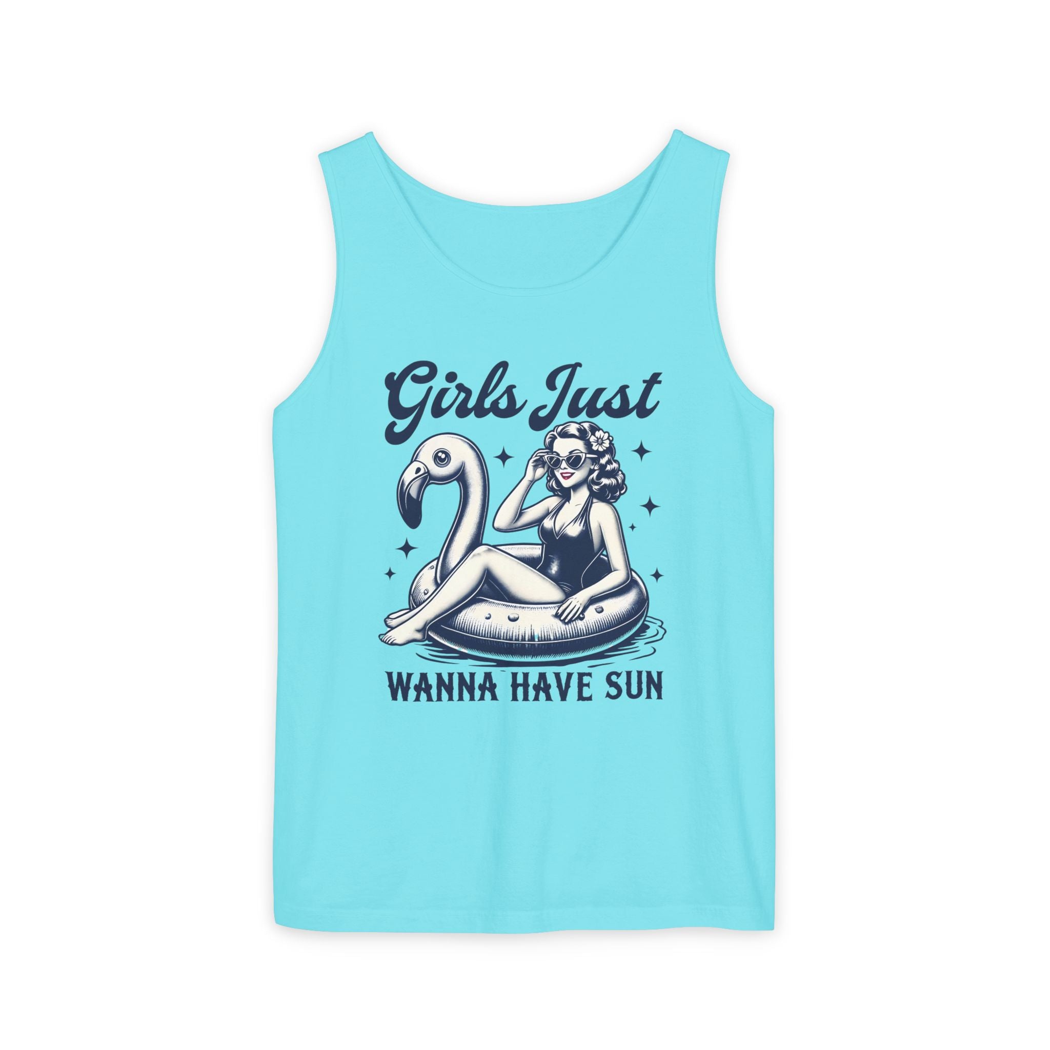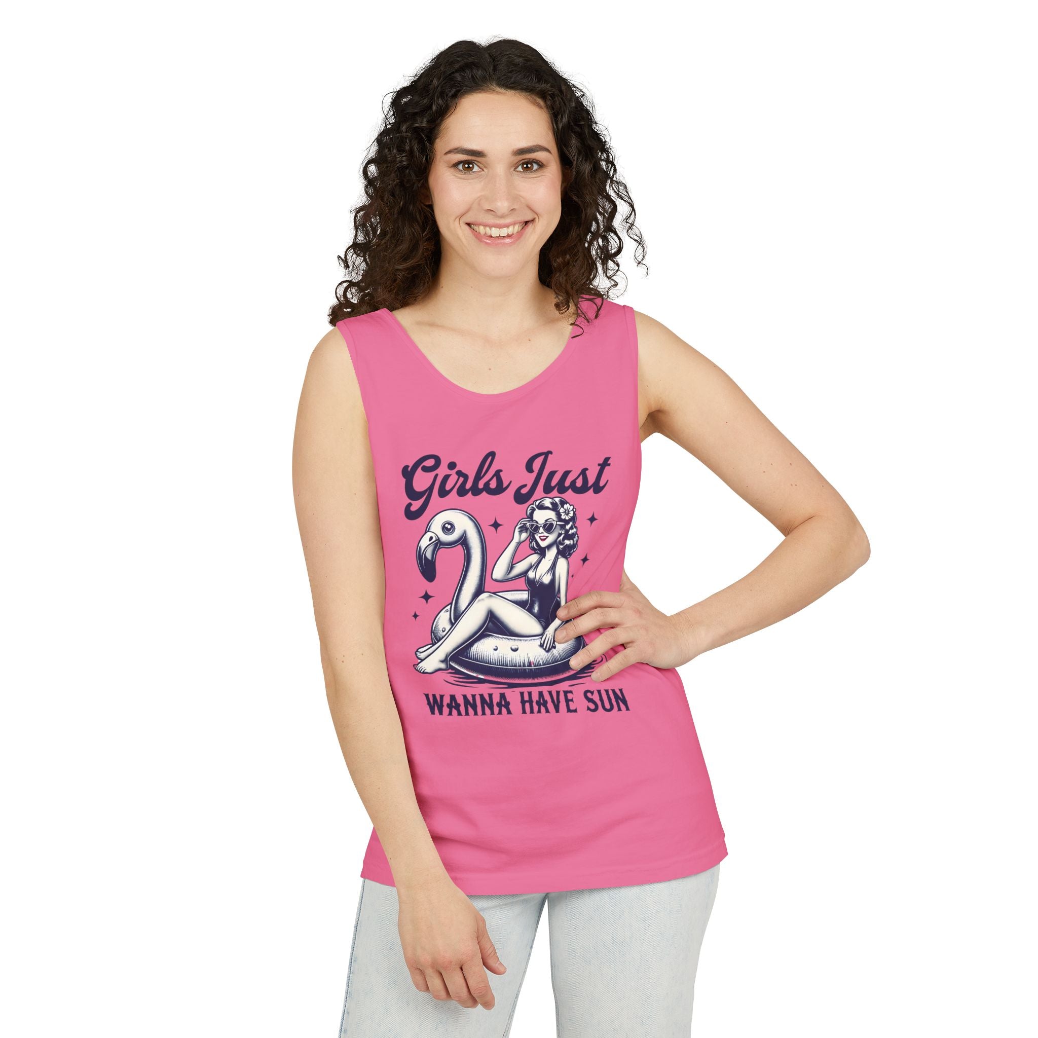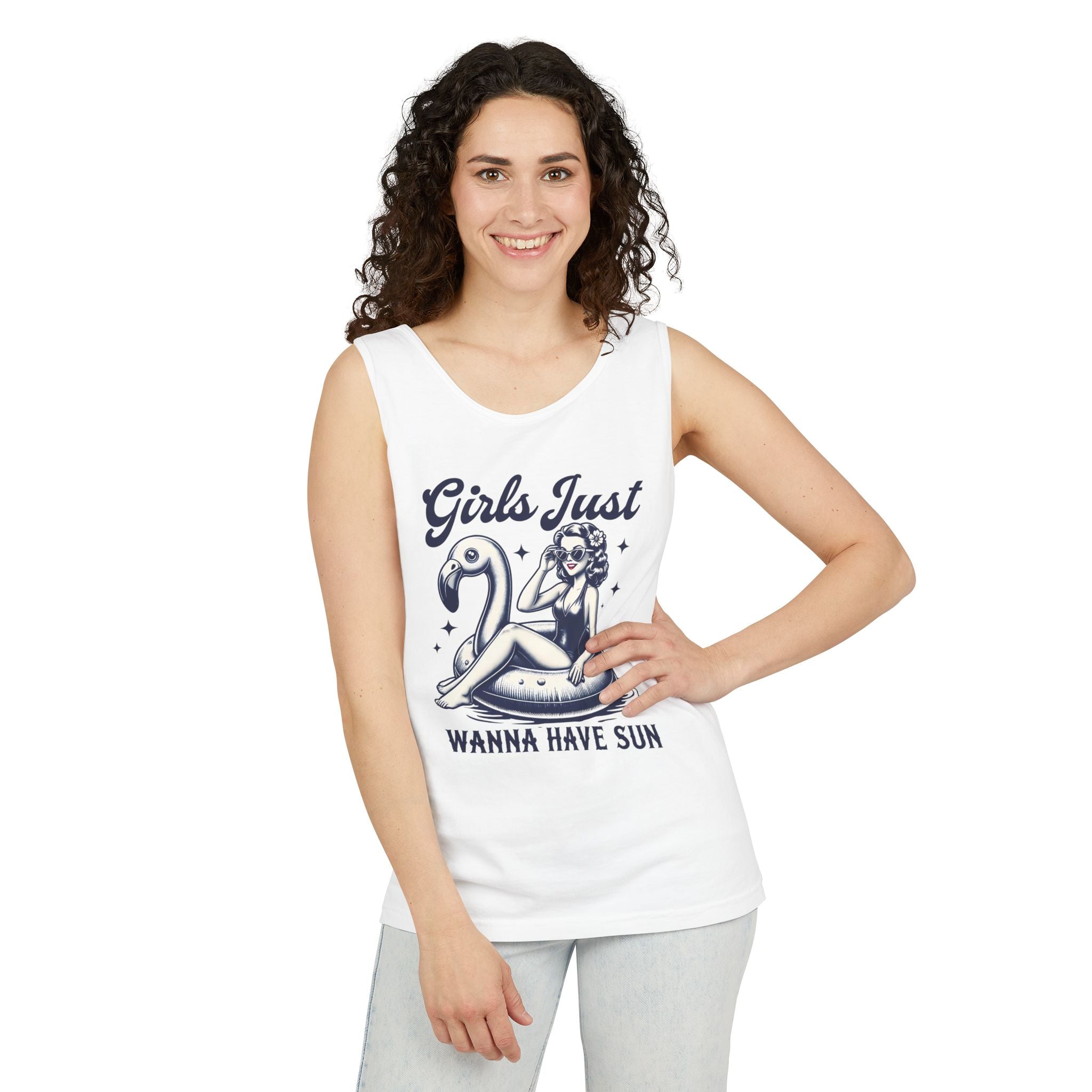 Embrace the laid-back vibes of summer with this stylish unisex tank top. Perfect for beach days or casual outings, this tank top combines comfort and aesthetic appeal in one essential wardrobe piece. The soft, garment-dyed fabric gives it a unique look and texture, making it perfect for those who love to express their personality through fashion. Ideal for beach enthusiasts, or anyone looking to keep cool while showcasing their passion for having fun. This tank top is a great gift for summer holidays, beach parties, and casual get-togethers, ensuring the perfect fit for all your warm-weather adventures!
