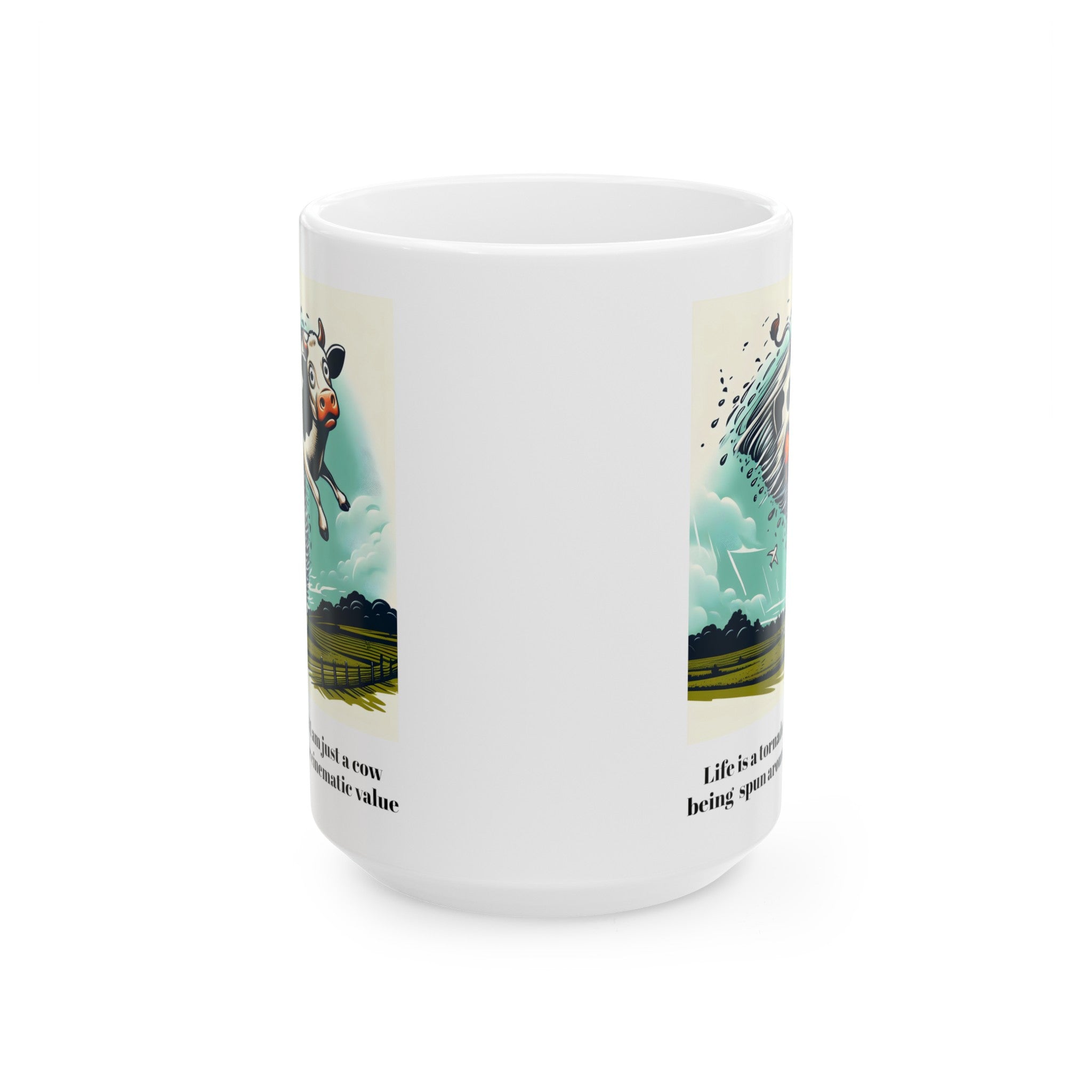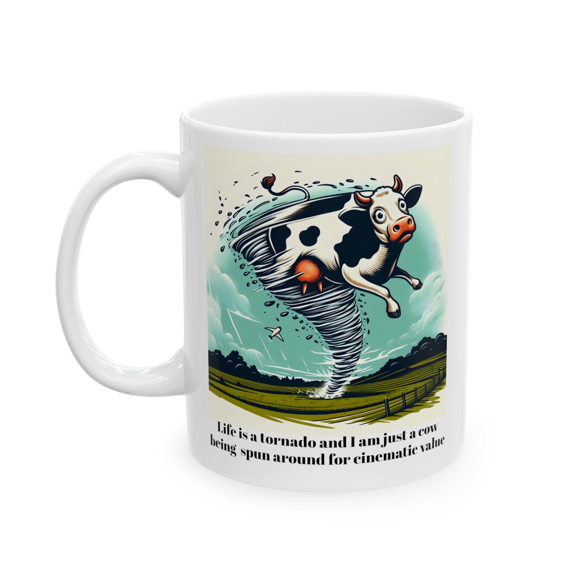 Item: Life Is A Tornado and I am Just A Cow Being Spun Around For Cinematic Value - Ceramic Mug 11oz / Humor / Farm Fun / Twister