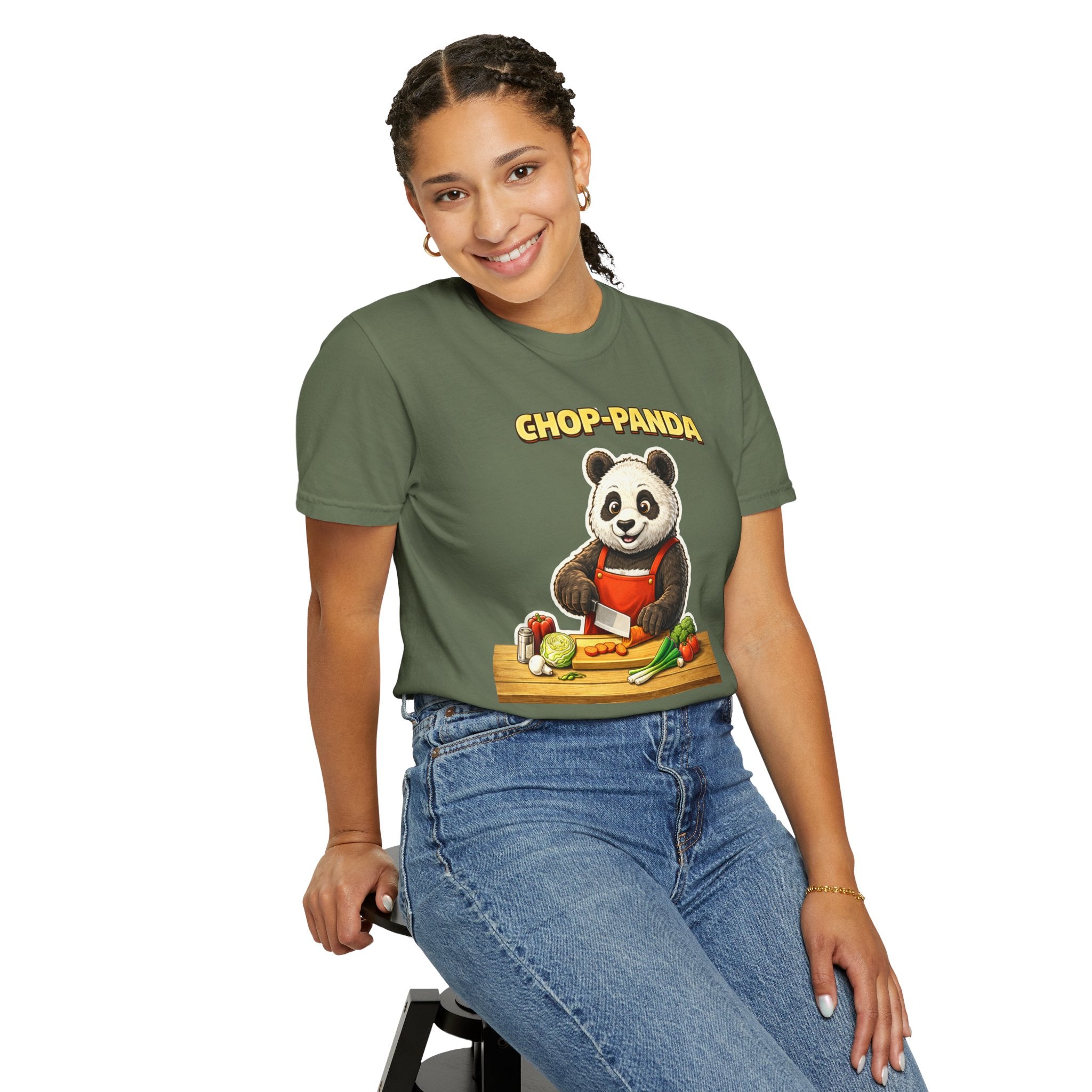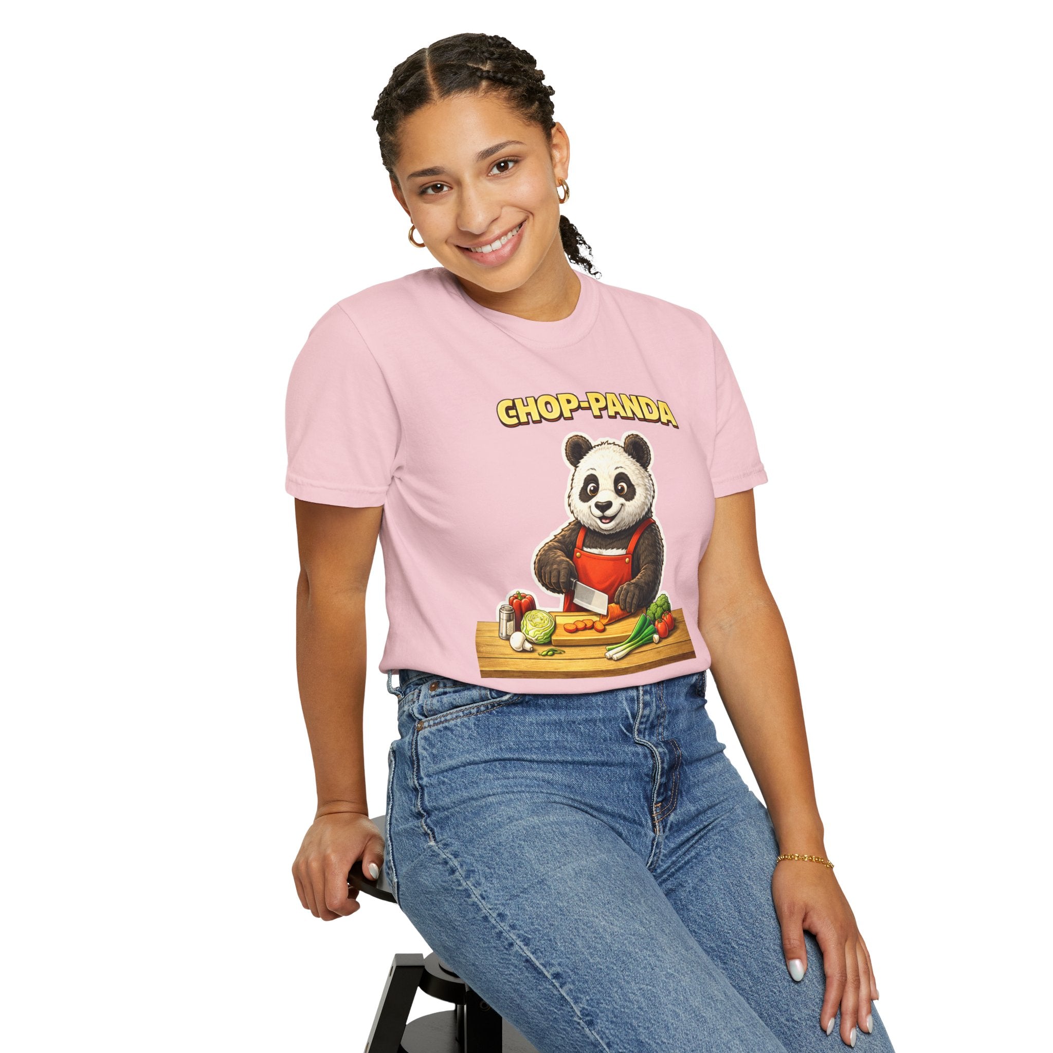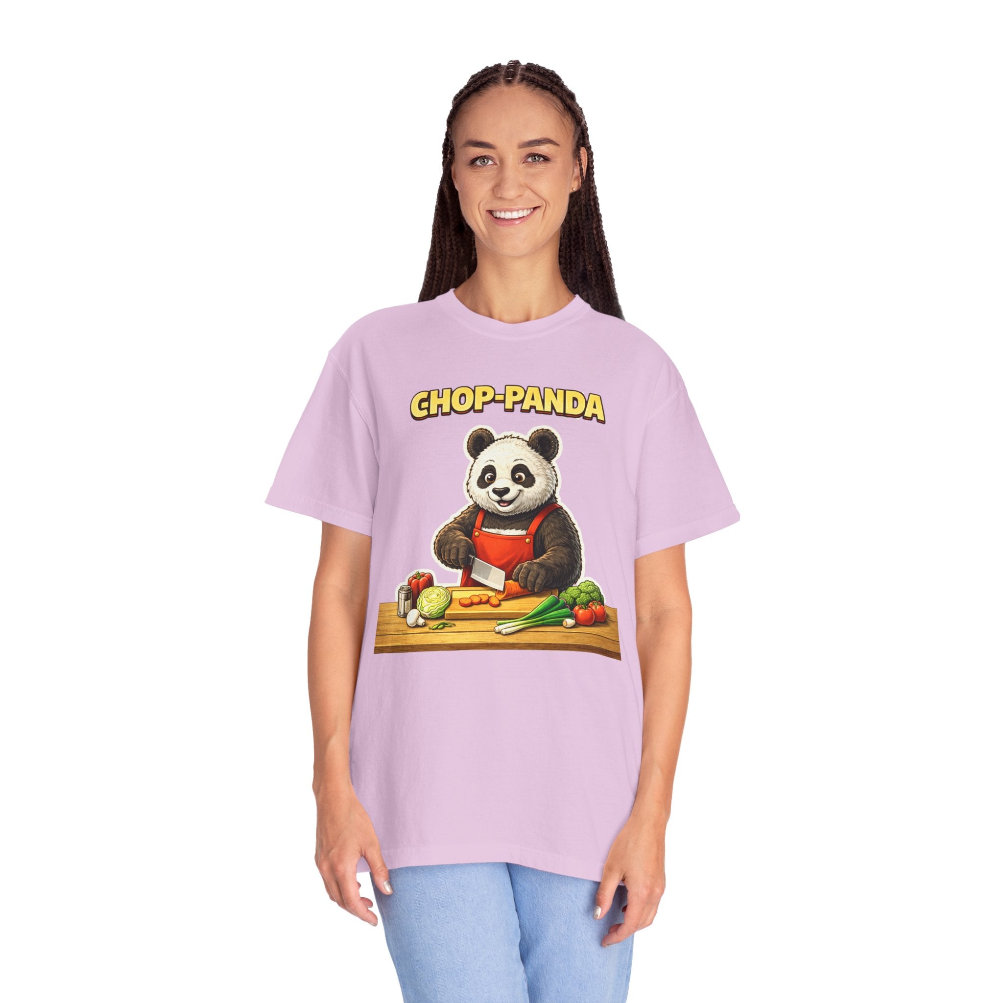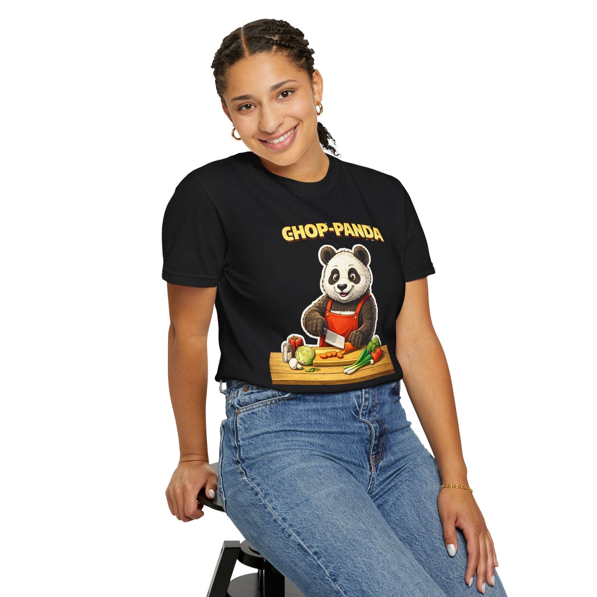 A soft, heavyweight cotton tee featuring an adorable “Chop-Panda” chef graphic that brings warmth and whimsy to everyday kitchen life. The garment-dyed fabric has a lived-in, muted color and pillowy texture that ages beautifully with washes. Short, confident sentences evoke a cozy scene: a panda at the stove, steam curling from a sizzling skillet, laughter spilling through a small apartment kitchen. This T-shirt sits comfortably on relaxed shoulders and becomes the go-to layer for recipe testing, late-night ramen runs, and casual pop-up dinners with friends. It speaks the language of home cooks and food lovers—burnt edges, mise en place, midnight cravings—and slips easily into moments like brunch shifts, farmers’ market strolls, and backyard cookouts. Durable double-needle stitching and a tubular, seam-free body mean it stands up to frequent wear and washing, while the heavyweight, pre-shrunk cotton holds its shape through busy days. The Chop-Panda tee doesn’t shout; it quietly announces your love of food and playful spirit every time you pull it on.