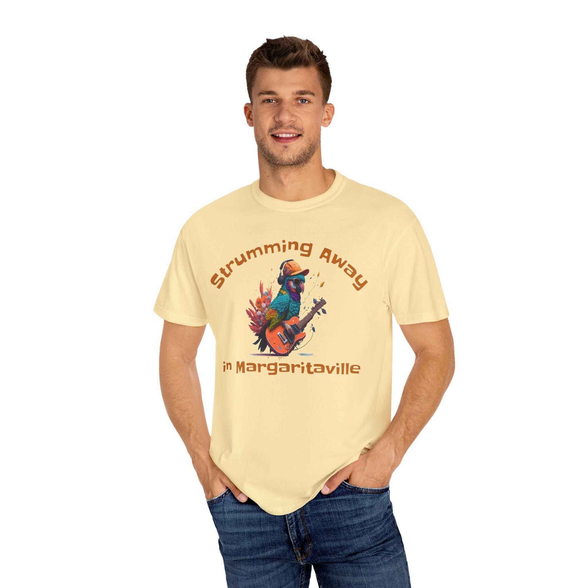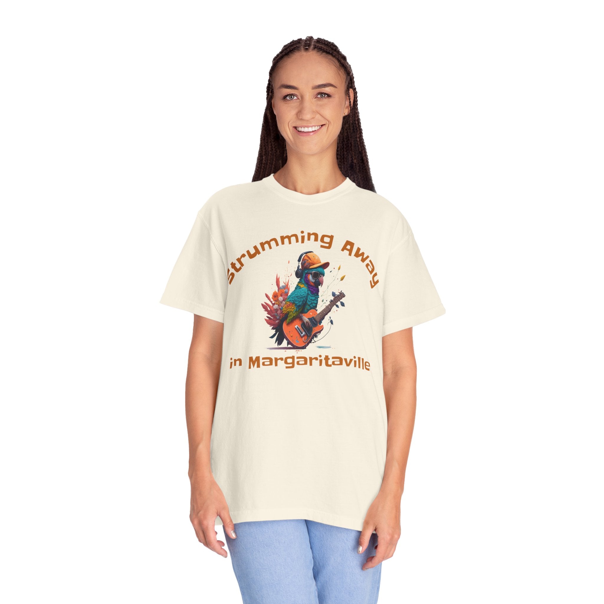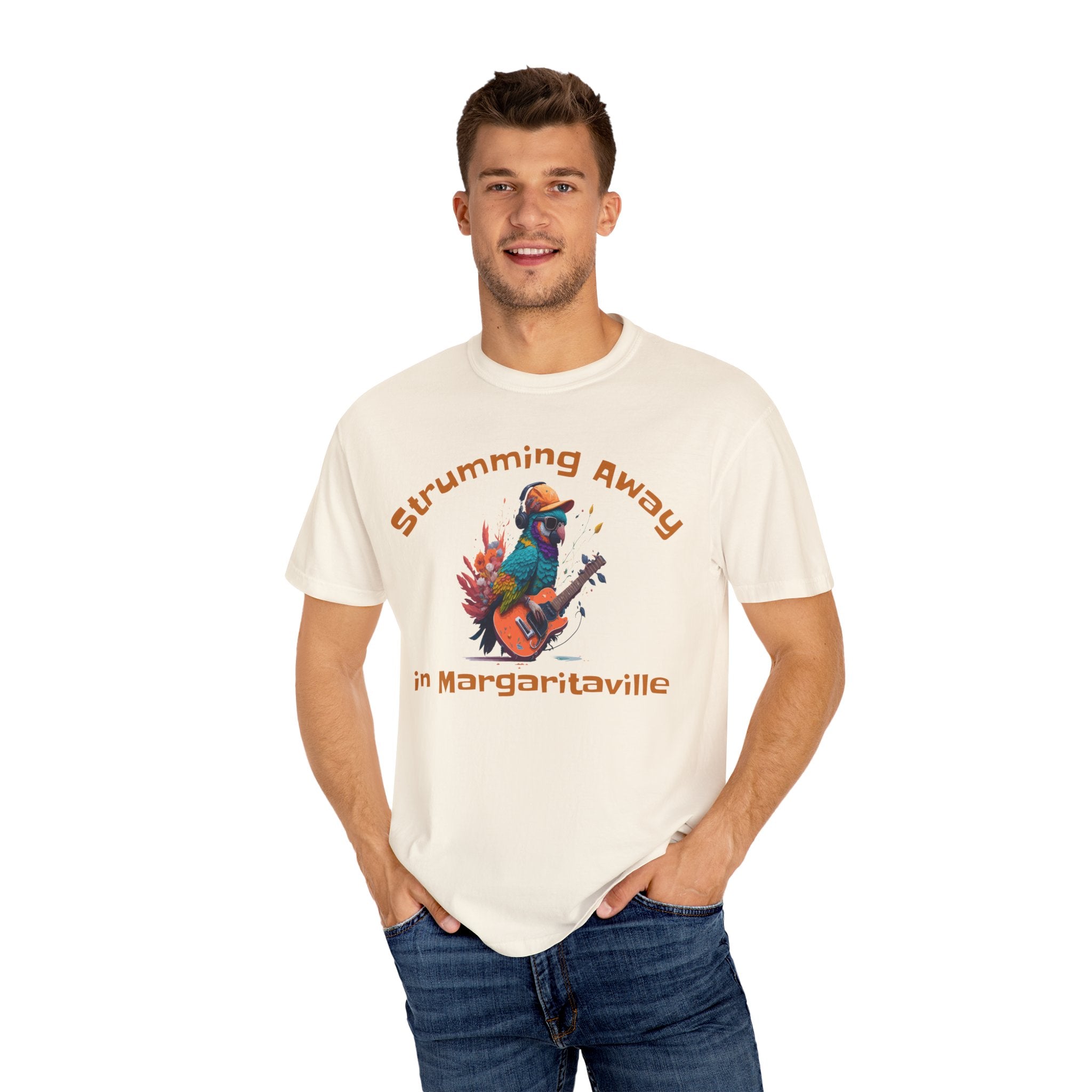 Parrot Strummin Away In Margaritaville - Unisex Garment-Dyed T-shirt