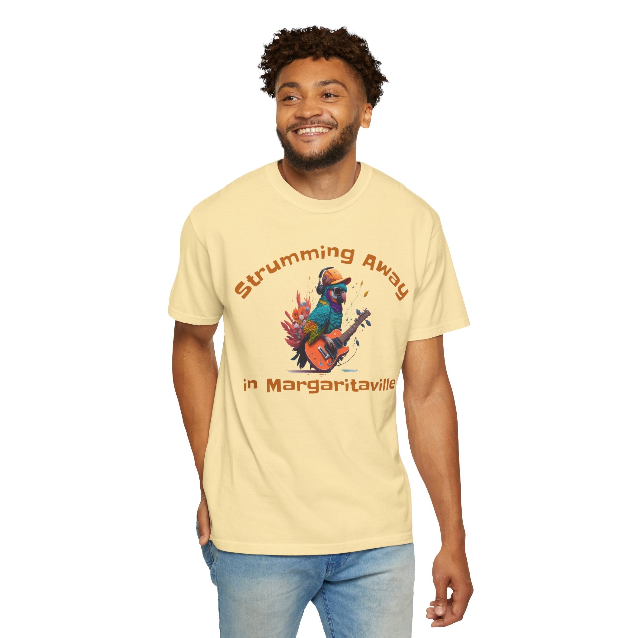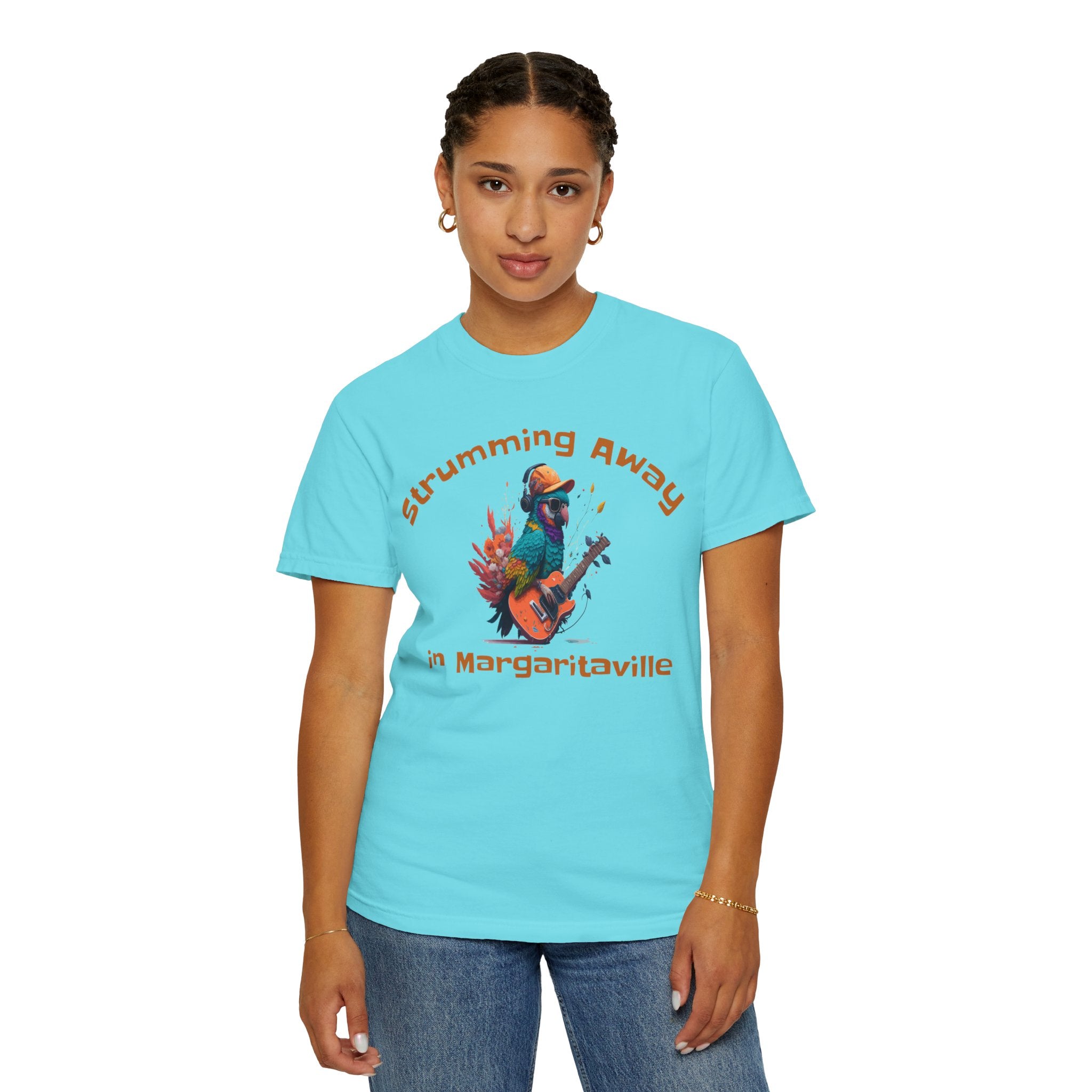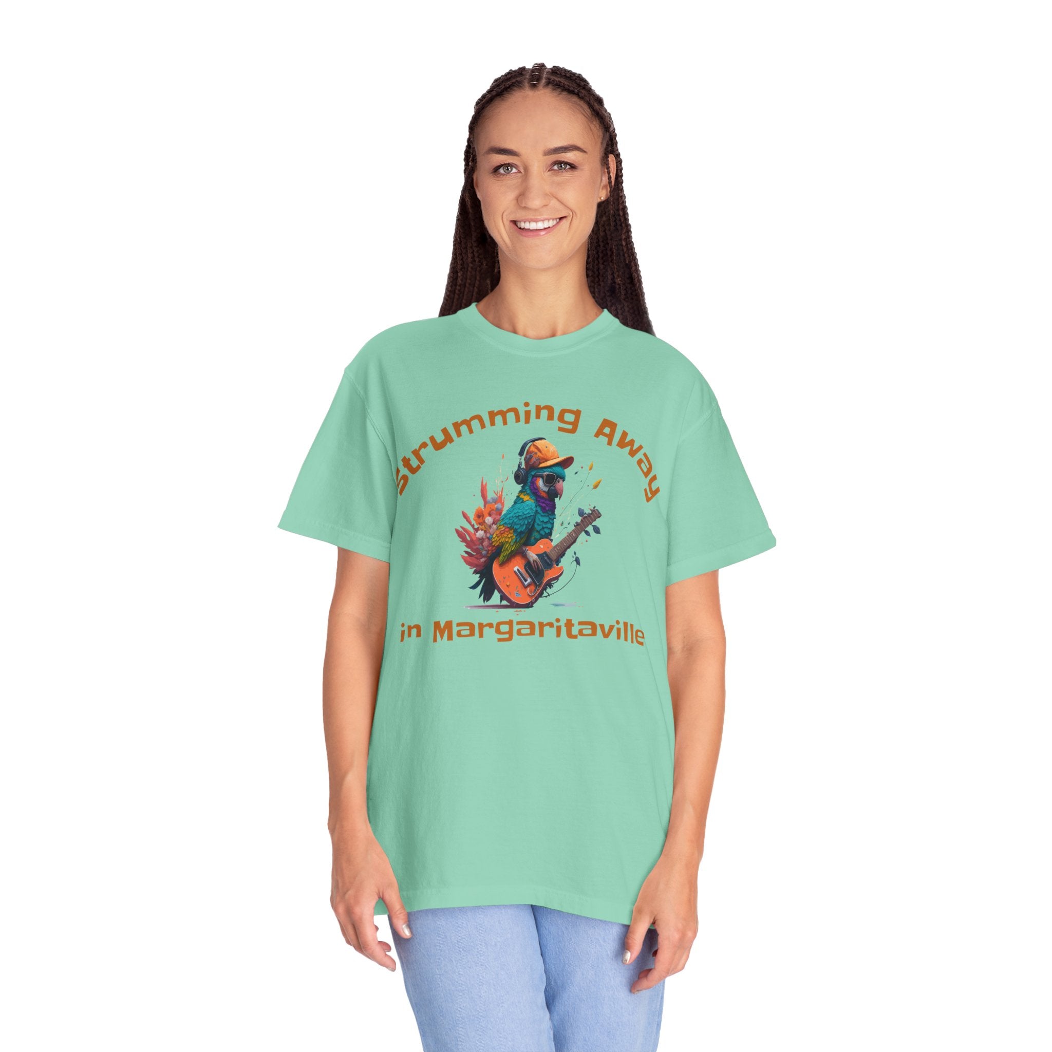 Parrot Strummin Away In Margaritaville - Unisex Garment-Dyed T-shirt