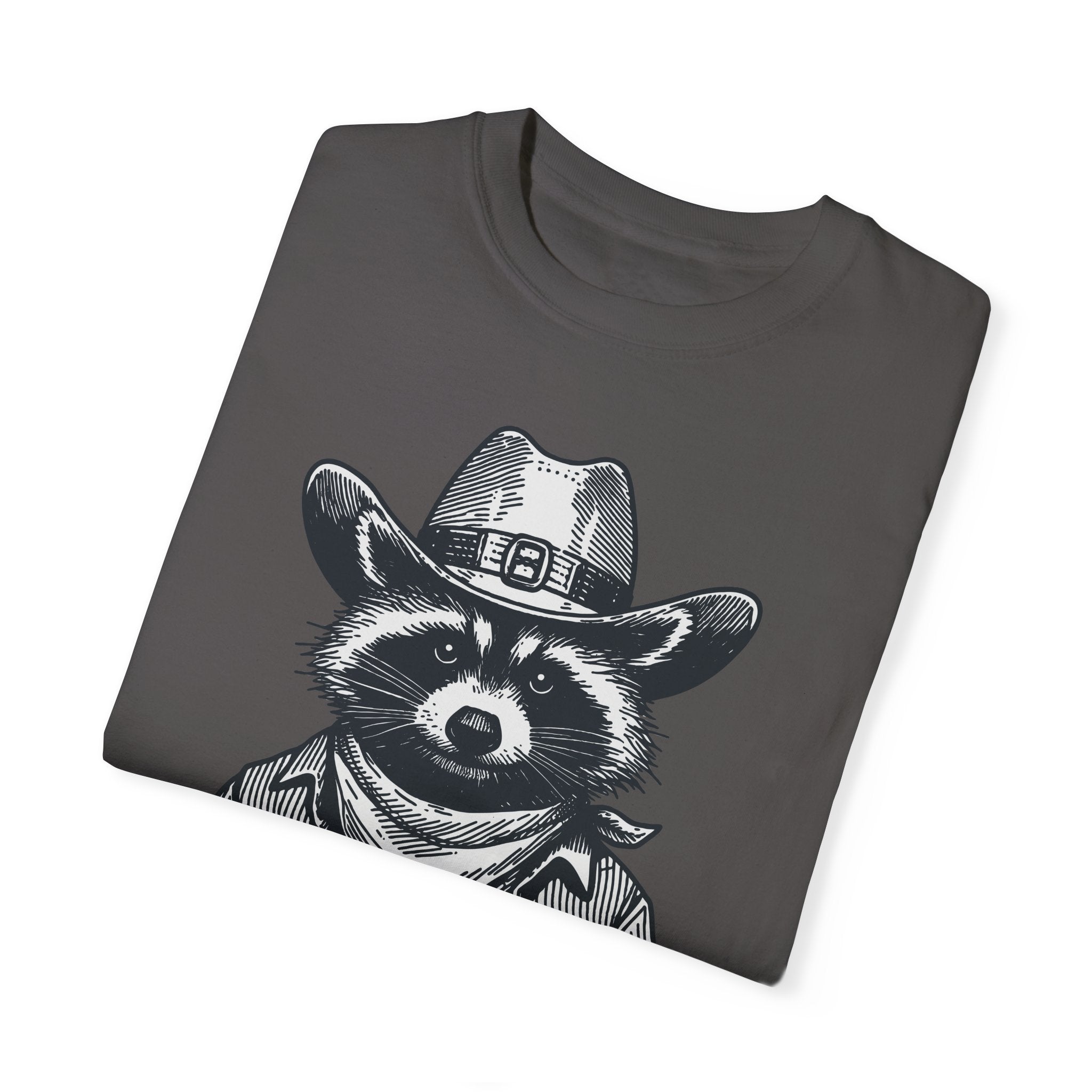 Raccoon Cowboy Funny Graphic T-Shirt, Vintage Style Raccoon Shirt, Relaxed Fit Cotton Shirt, Nature Tee, Raccoon Lover, Comfort Colors Shirt