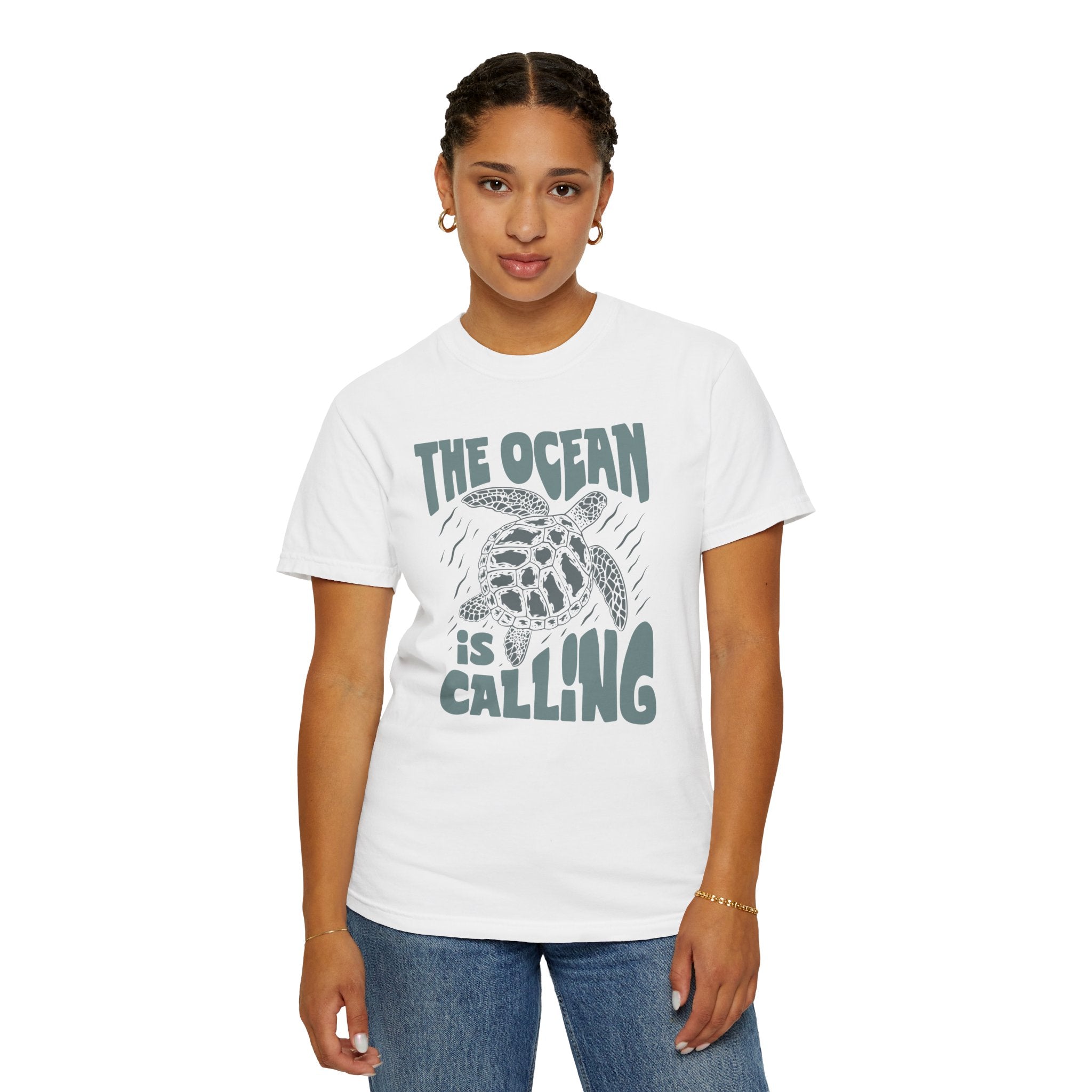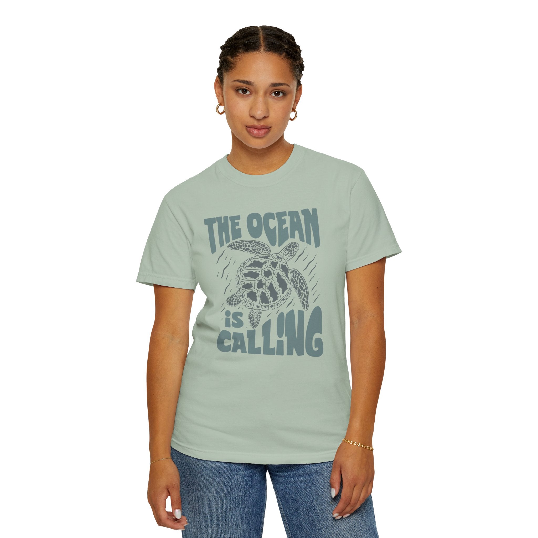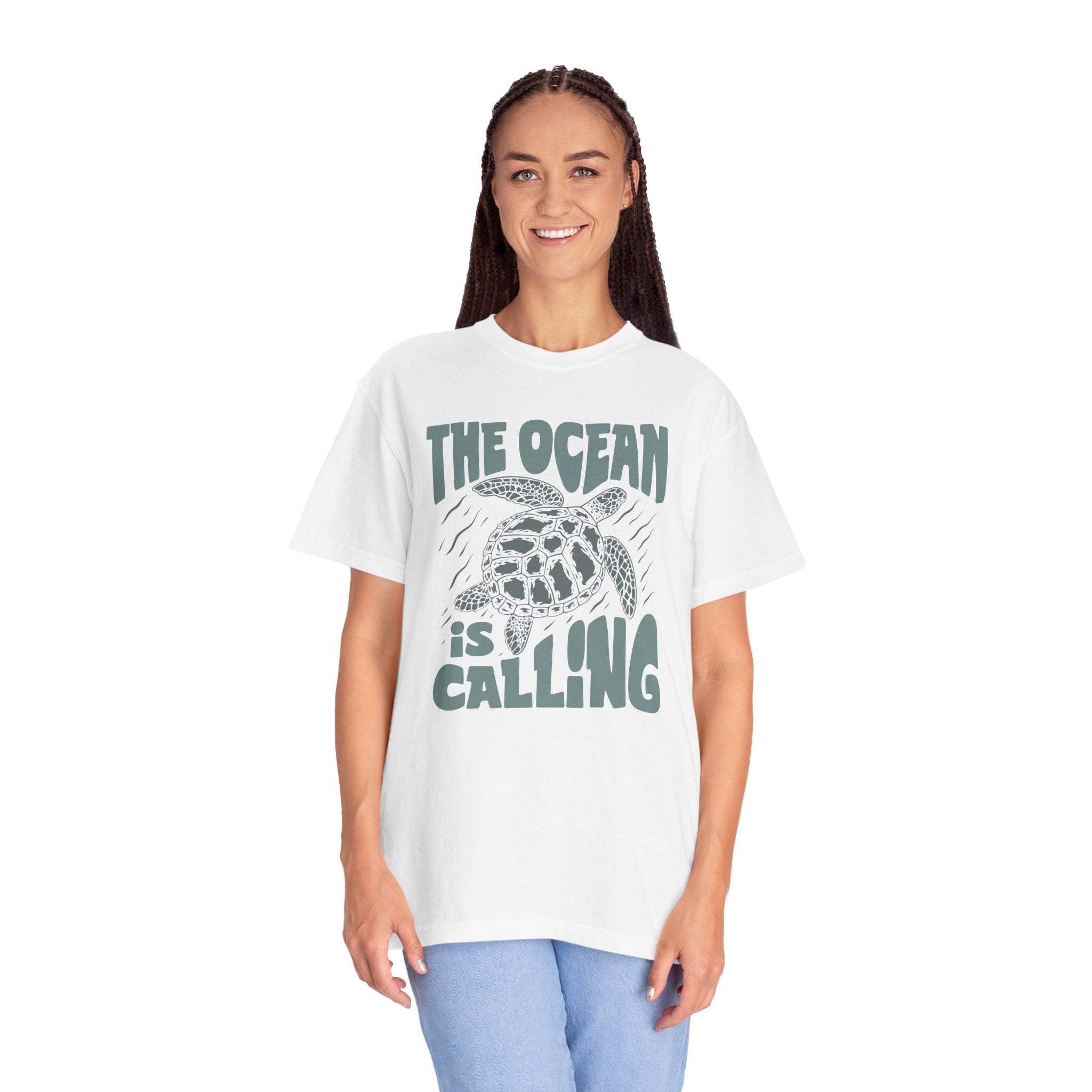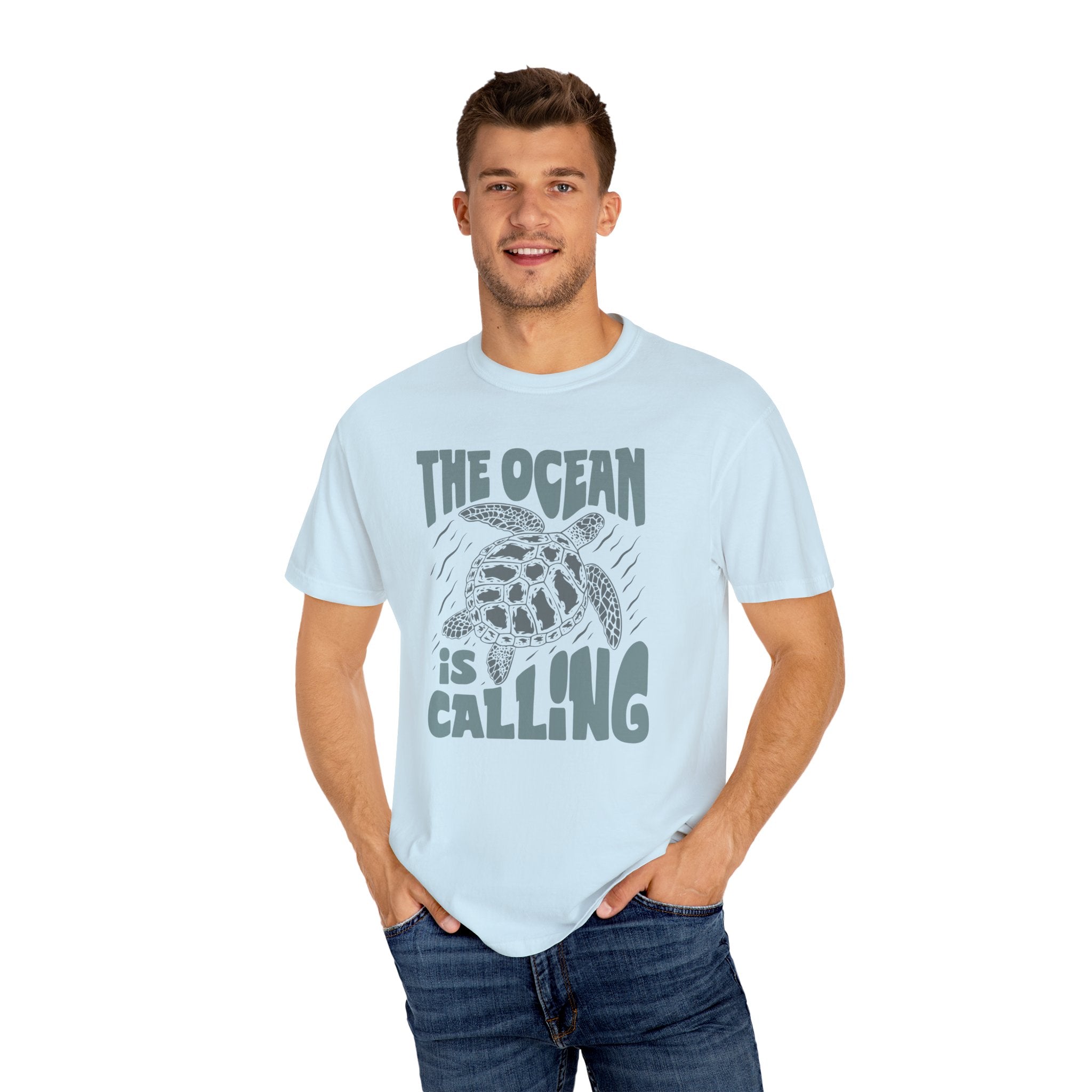 Sea Turtle, The Ocean Is Calling -  Graphic Unisex Garment-Dyed T-shirt