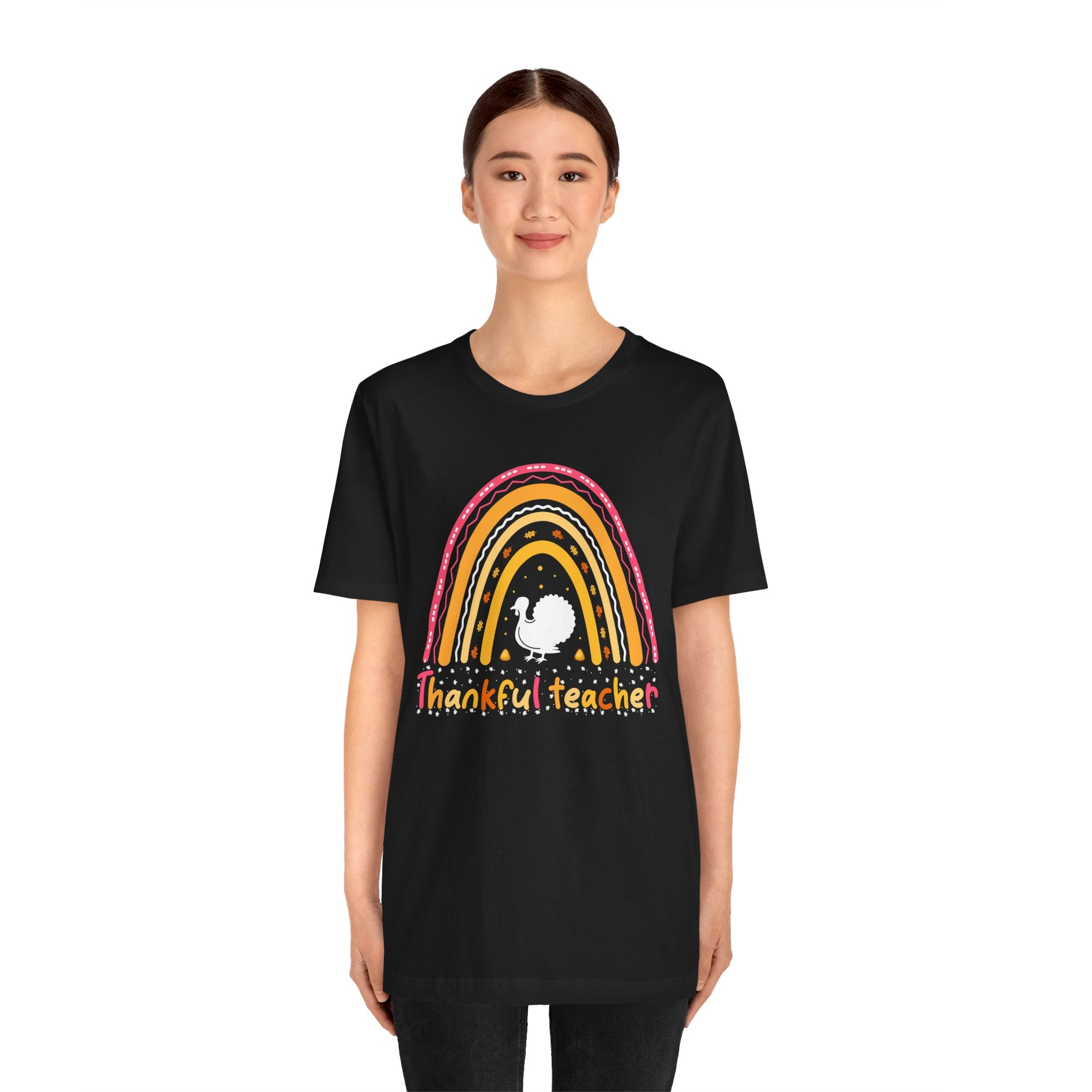 Thankful Teacher T‑Shirt – Retro Rainbow Turkey Teacher Appreciation Tee