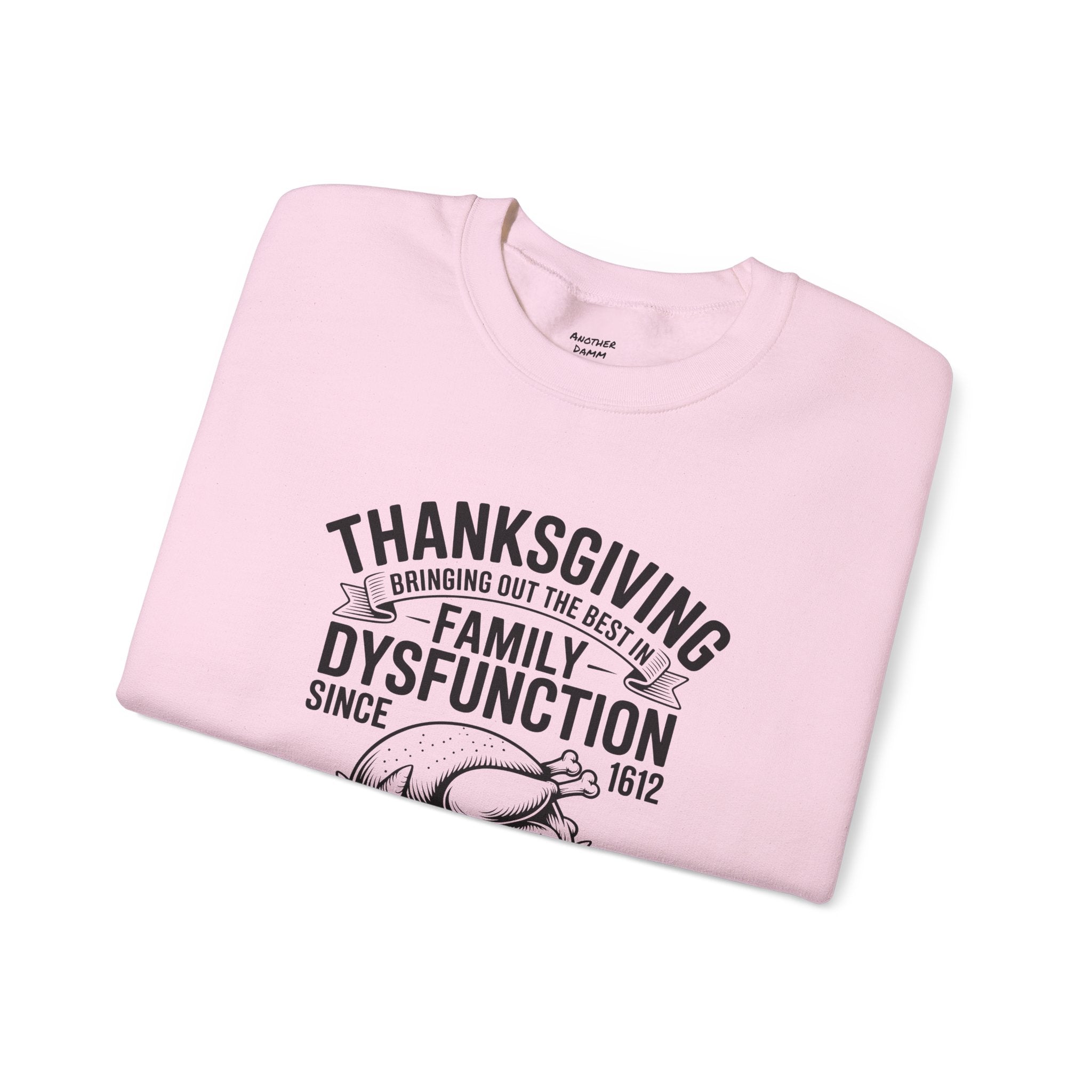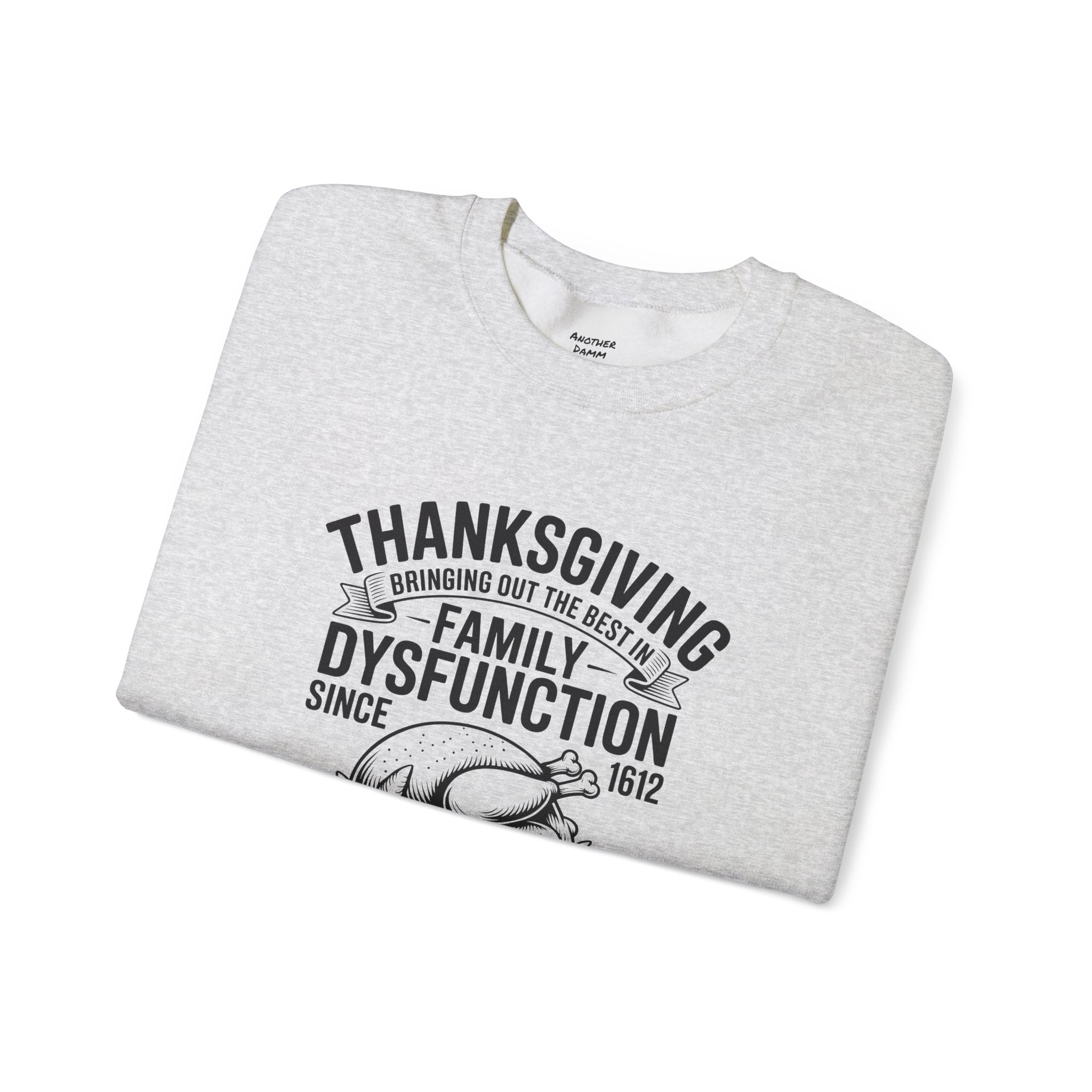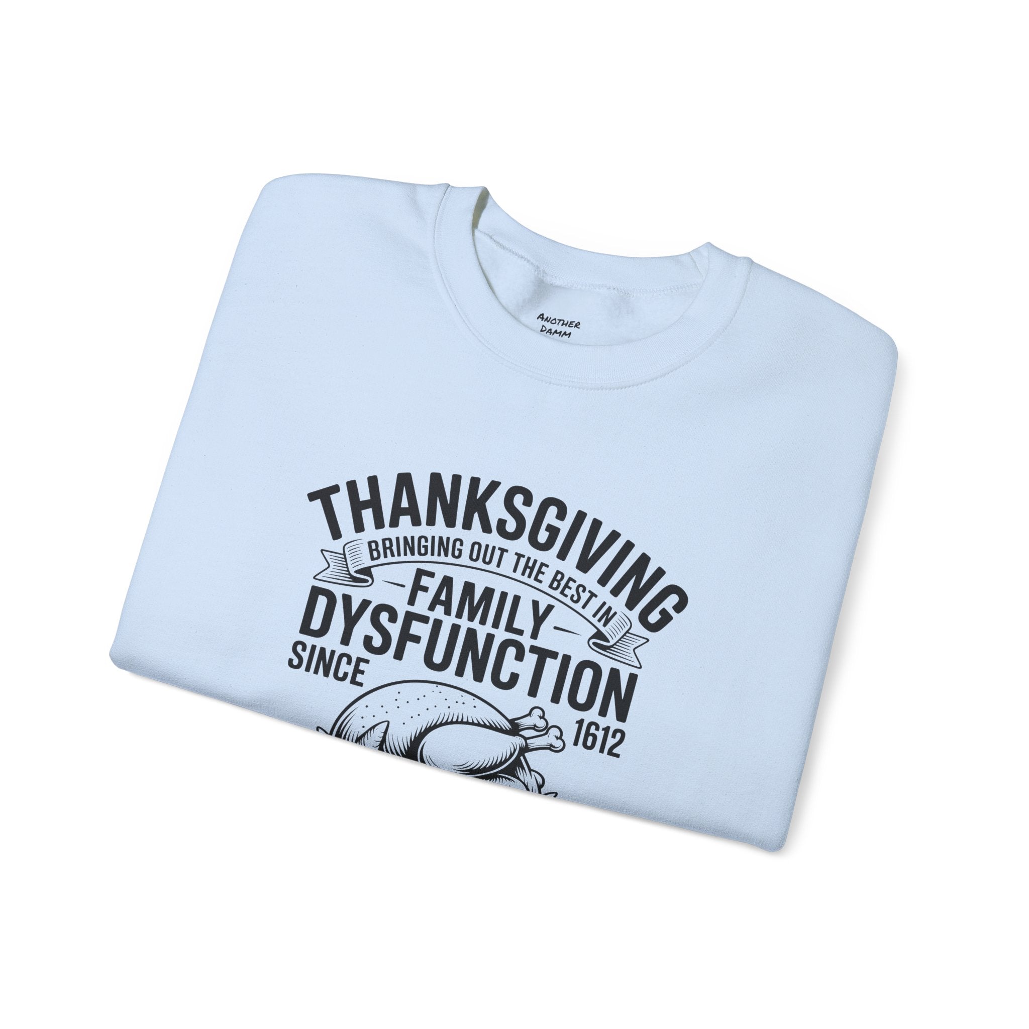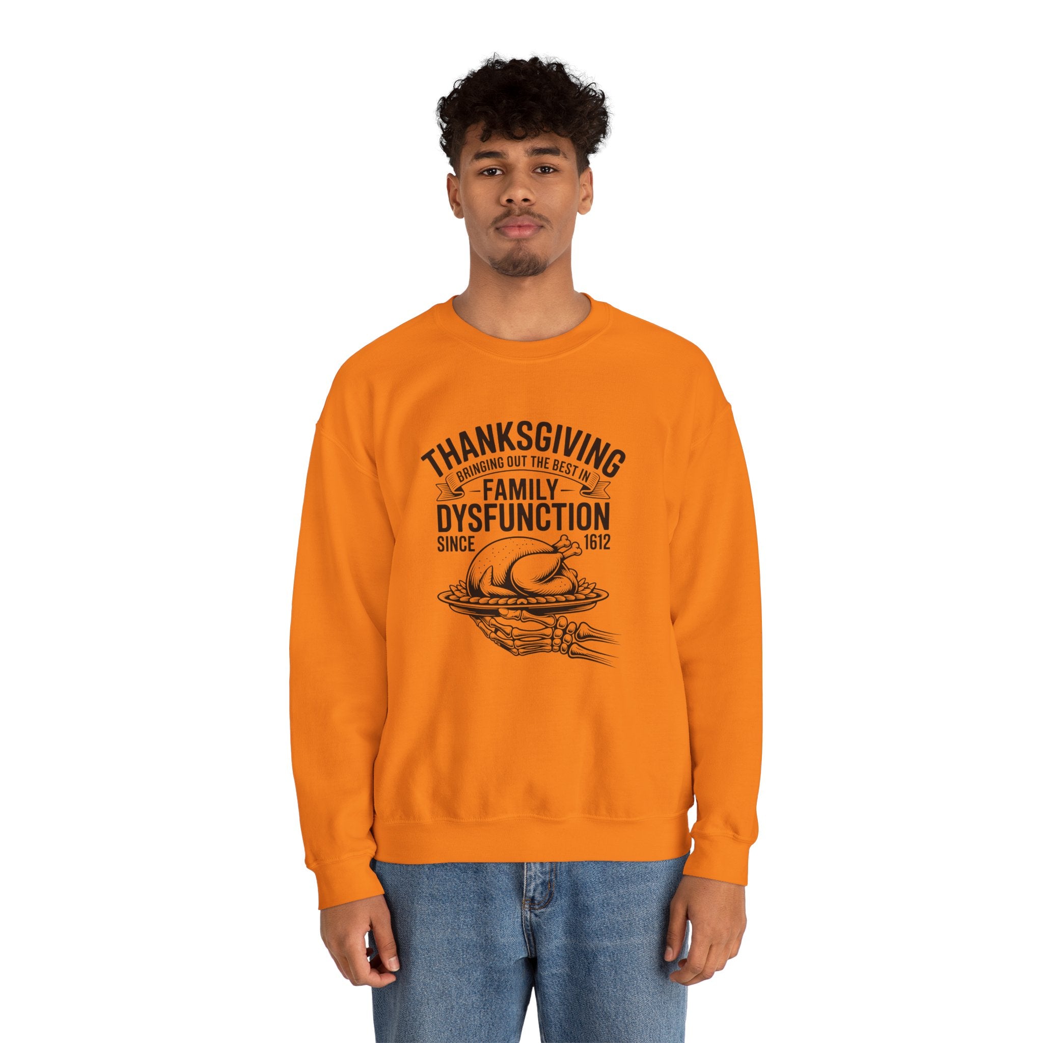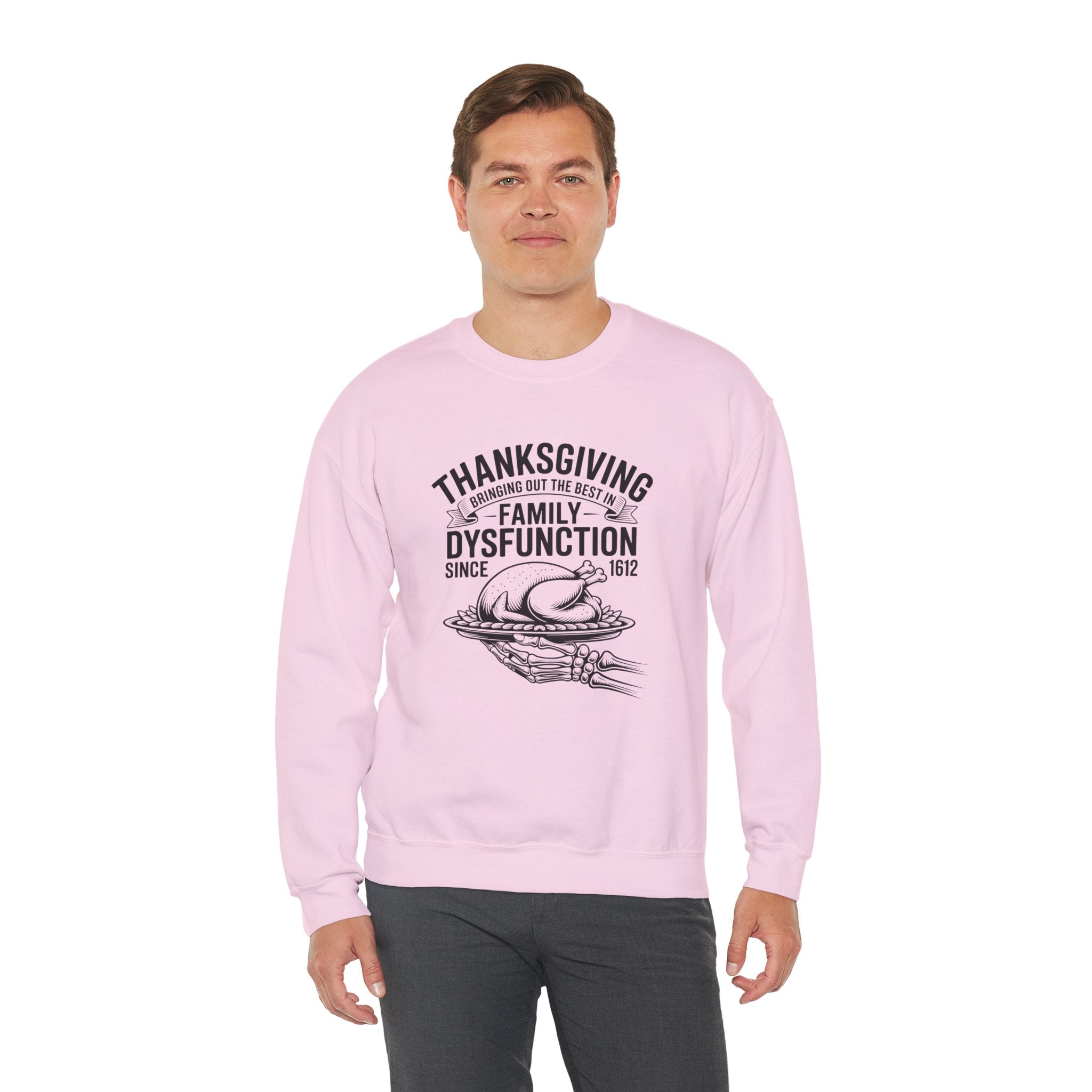 Introducing a cozy and humorous Unisex Heavy Blend™ Crewneck Sweatshirt that perfectly embodies the amusing complexities of family gatherings. Made for those who appreciate a lighthearted spin on traditional holidays, this sweatshirt brings a sense of warmth and laughter to your Thanksgiving celebrations. Its classic fit and soft fabric offer comfort for all-day wear, making it the ideal choice for family feasts, cozy nights in, or casual outings with friends.