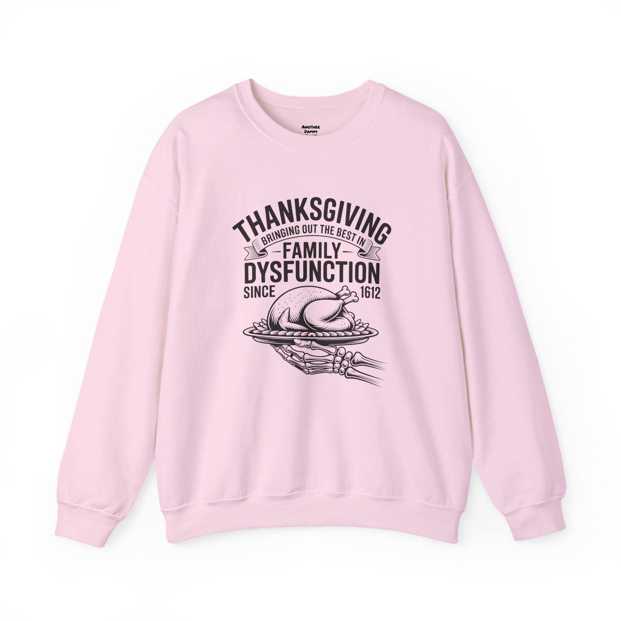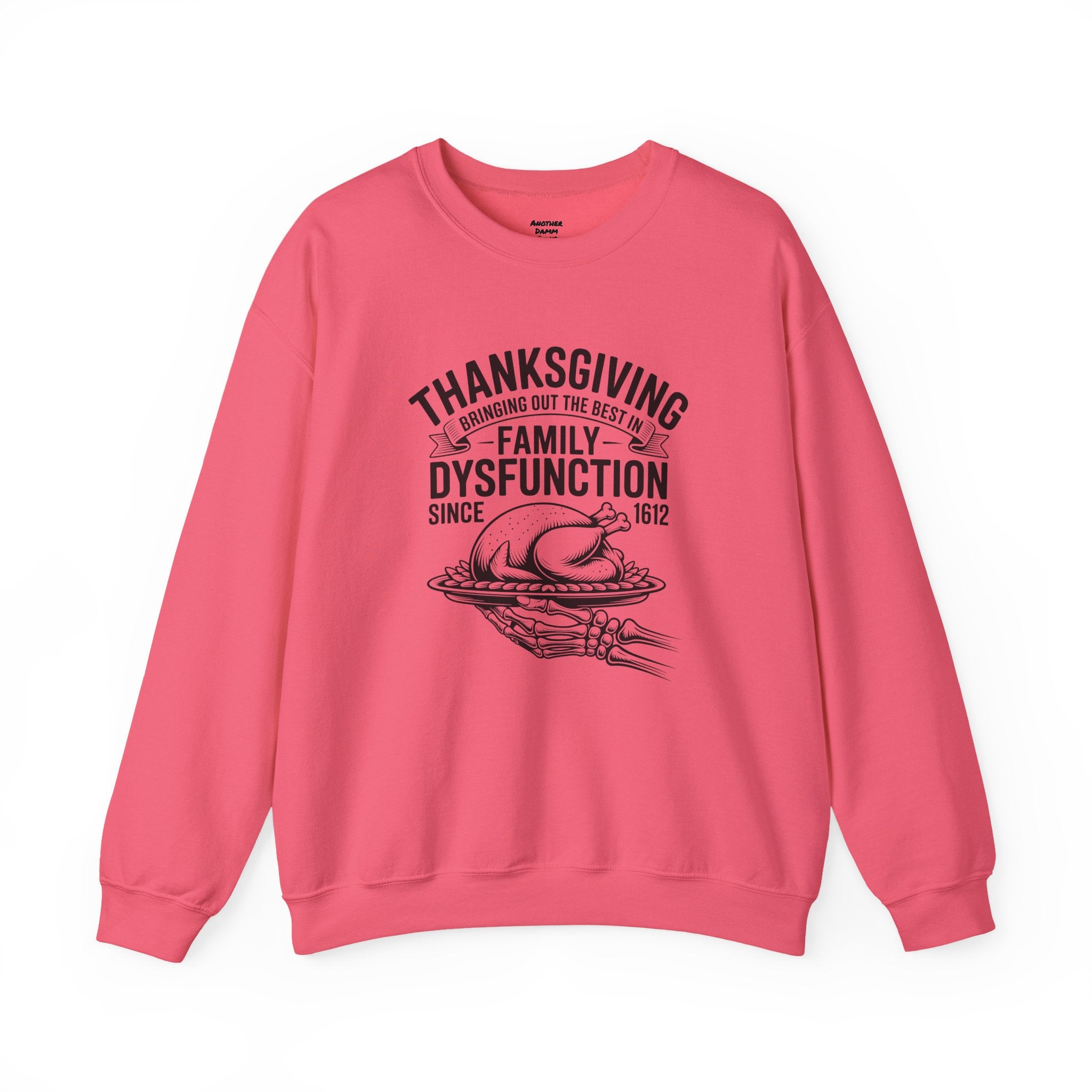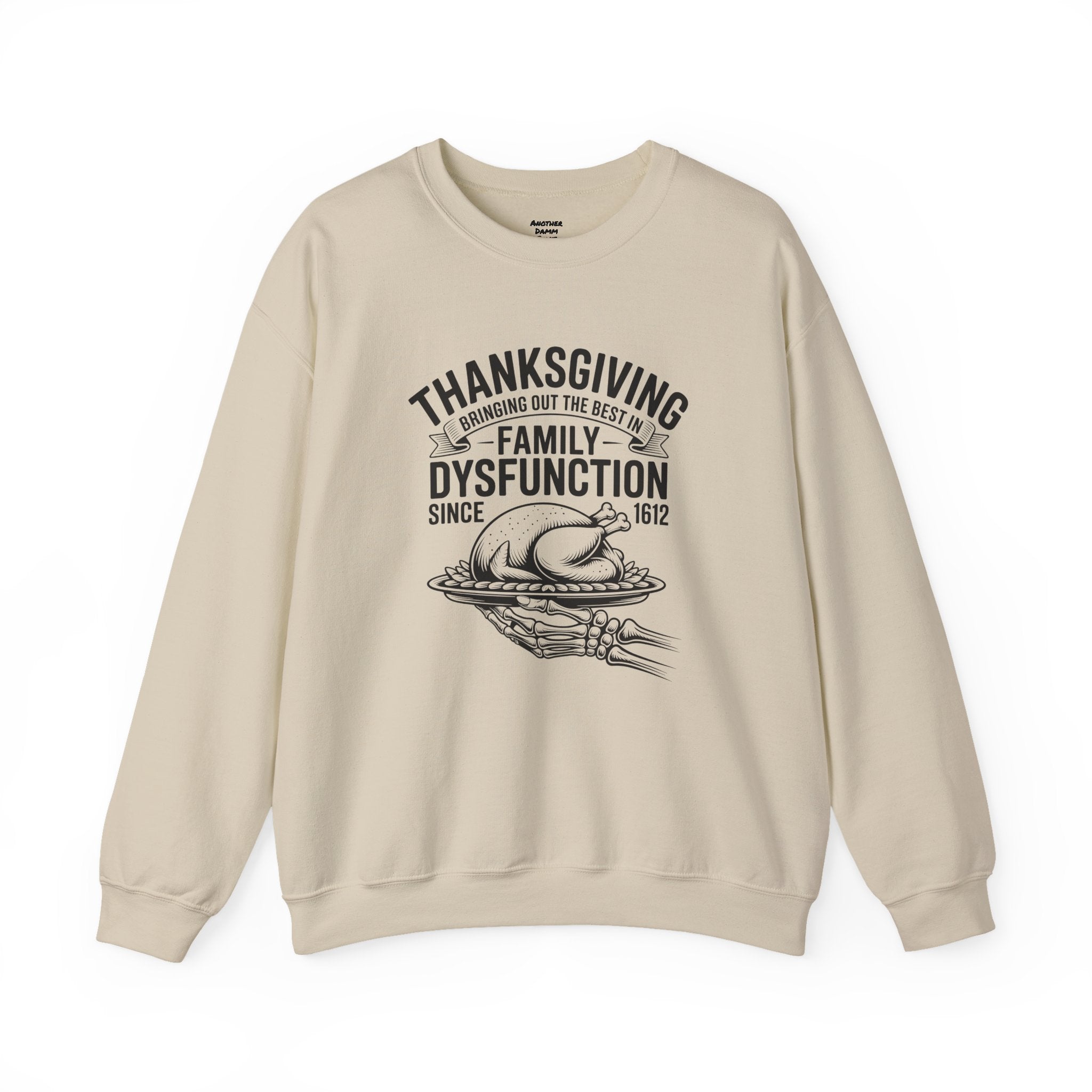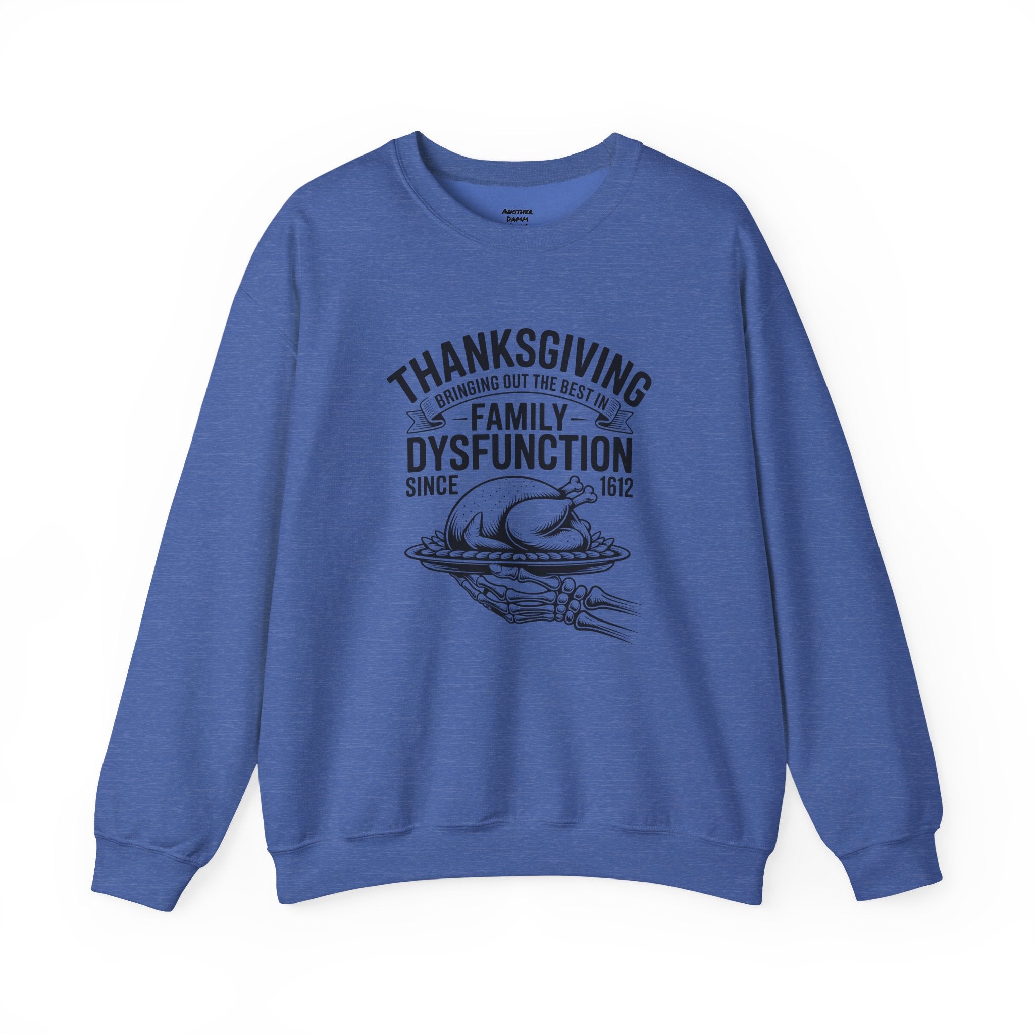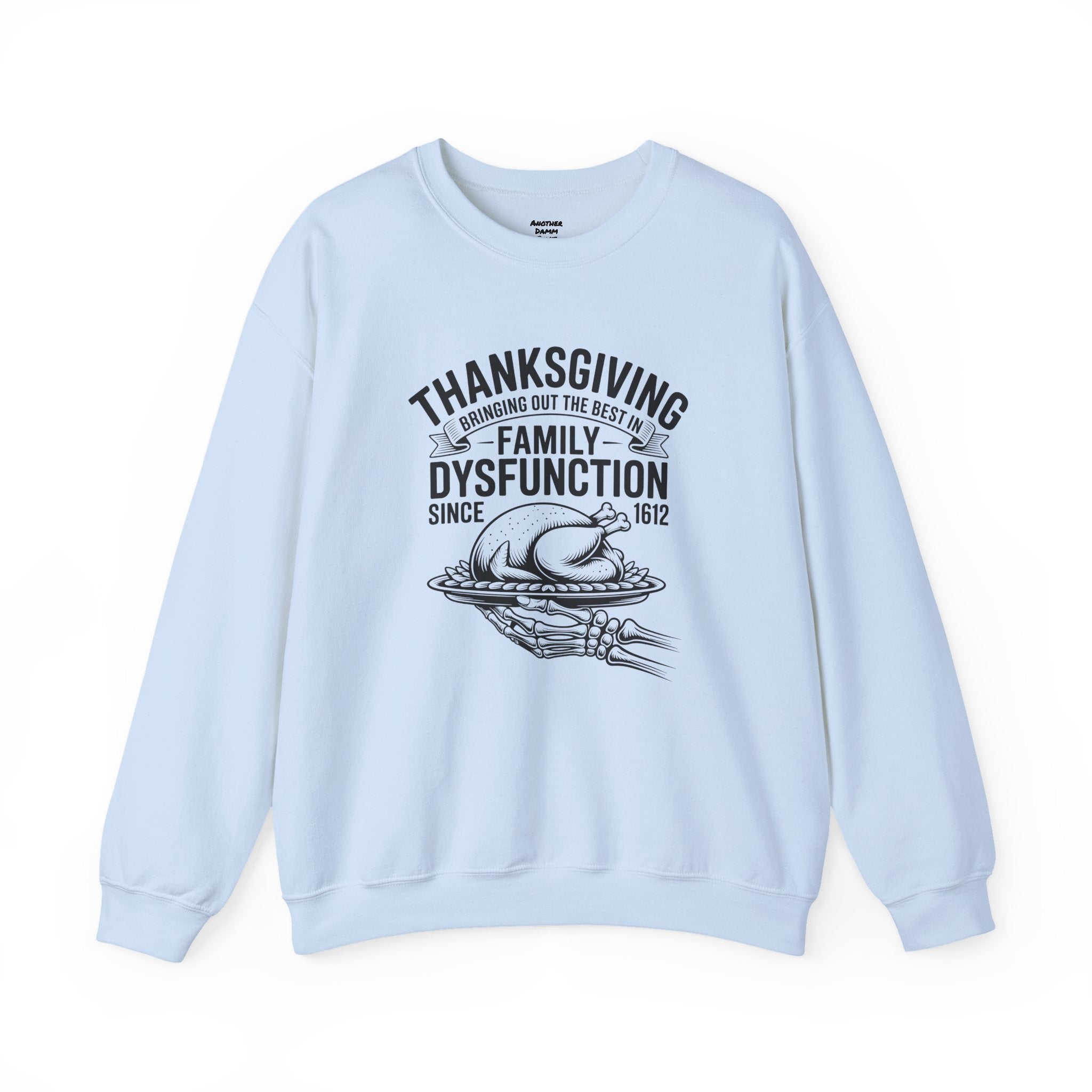 Introducing a cozy and humorous Unisex Heavy Blend™ Crewneck Sweatshirt that perfectly embodies the amusing complexities of family gatherings. Made for those who appreciate a lighthearted spin on traditional holidays, this sweatshirt brings a sense of warmth and laughter to your Thanksgiving celebrations. Its classic fit and soft fabric offer comfort for all-day wear, making it the ideal choice for family feasts, cozy nights in, or casual outings with friends.