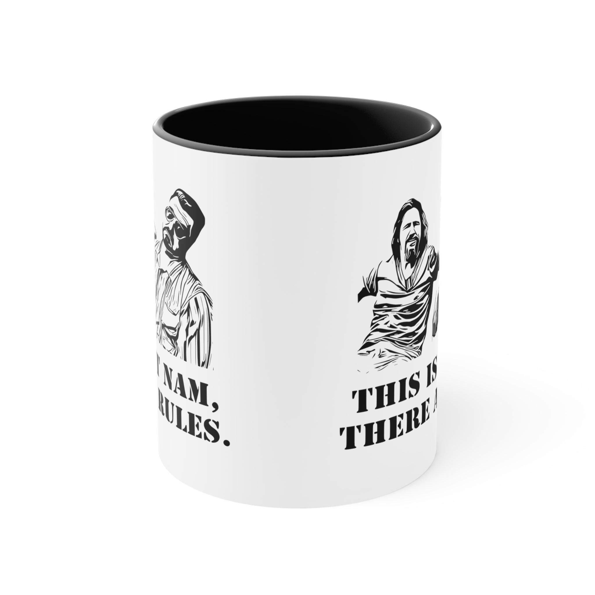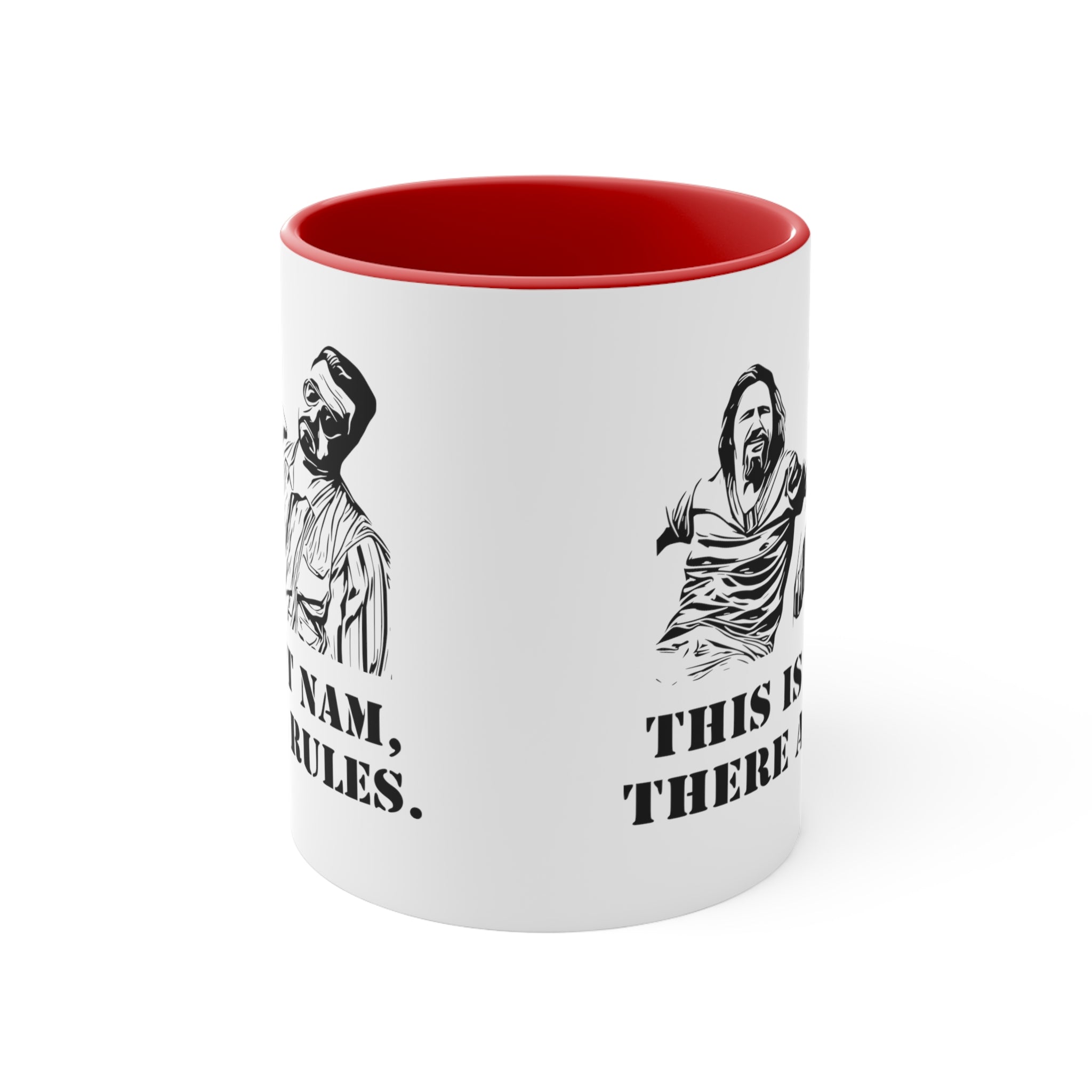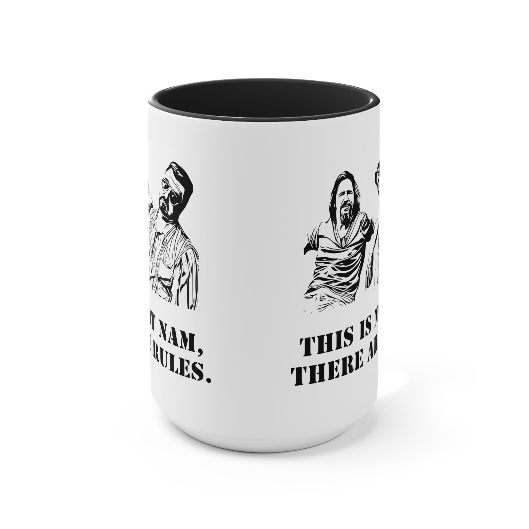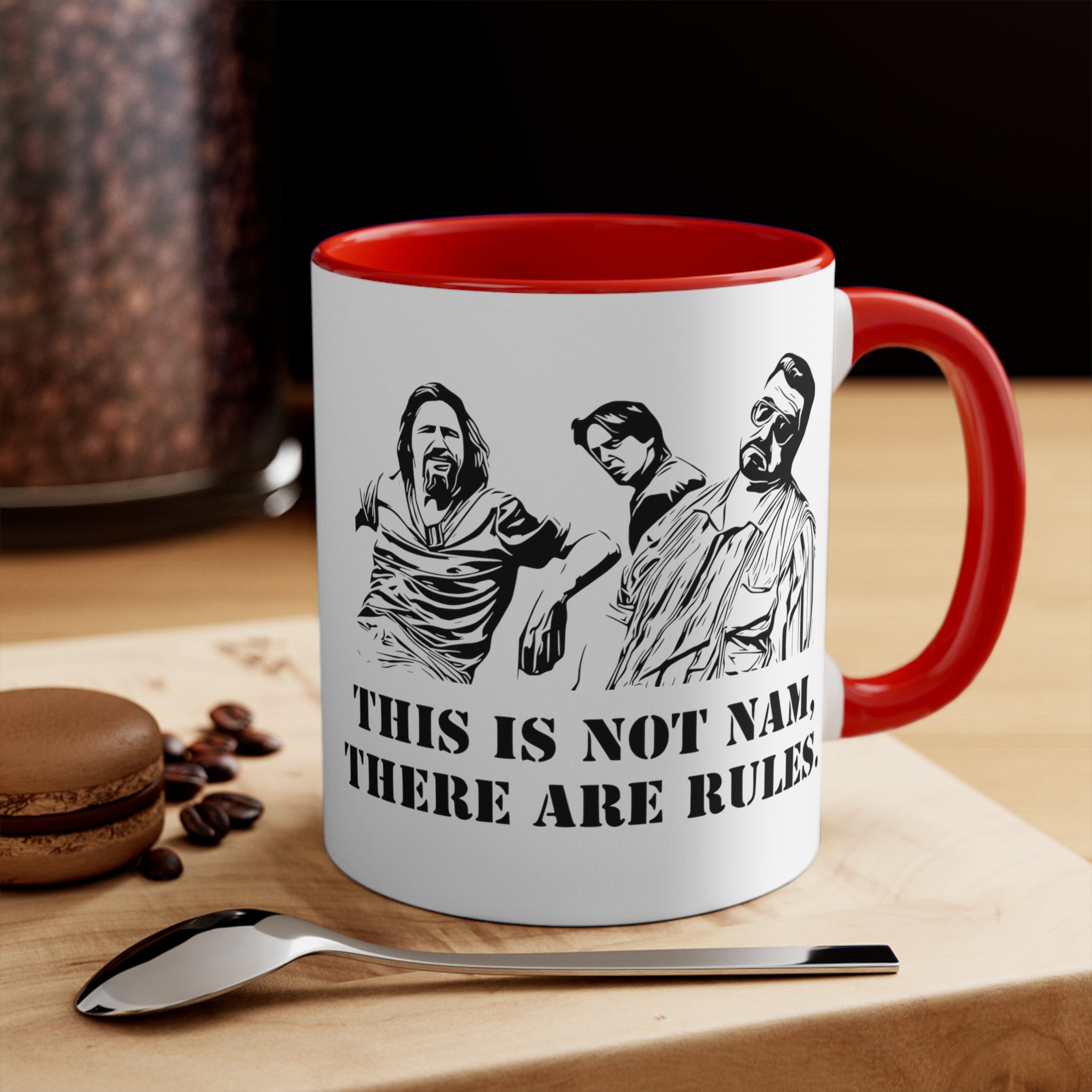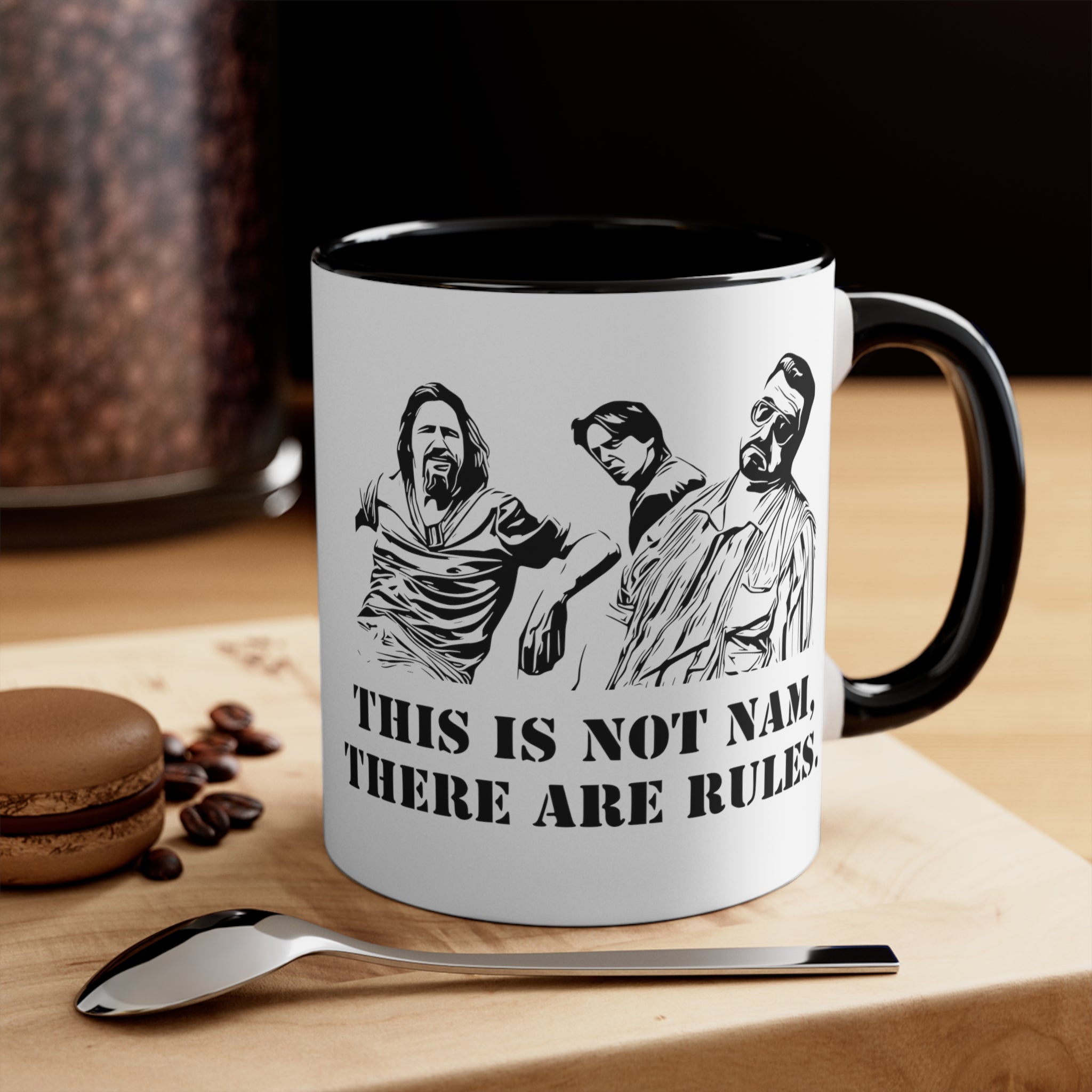 This custom two-tone mug is here to accommodate all your favorite pick-me-up elixirs in style. Its durable ceramic build is microwave & dishwasher-safe, as is the Lebowski image and quote on these mugs. These custom dual-color mugs are available in 2x sizes: 11oz and 15oz, as well as in 3x different color schemes: white with red inside, white with pink inside, and white with black inside.