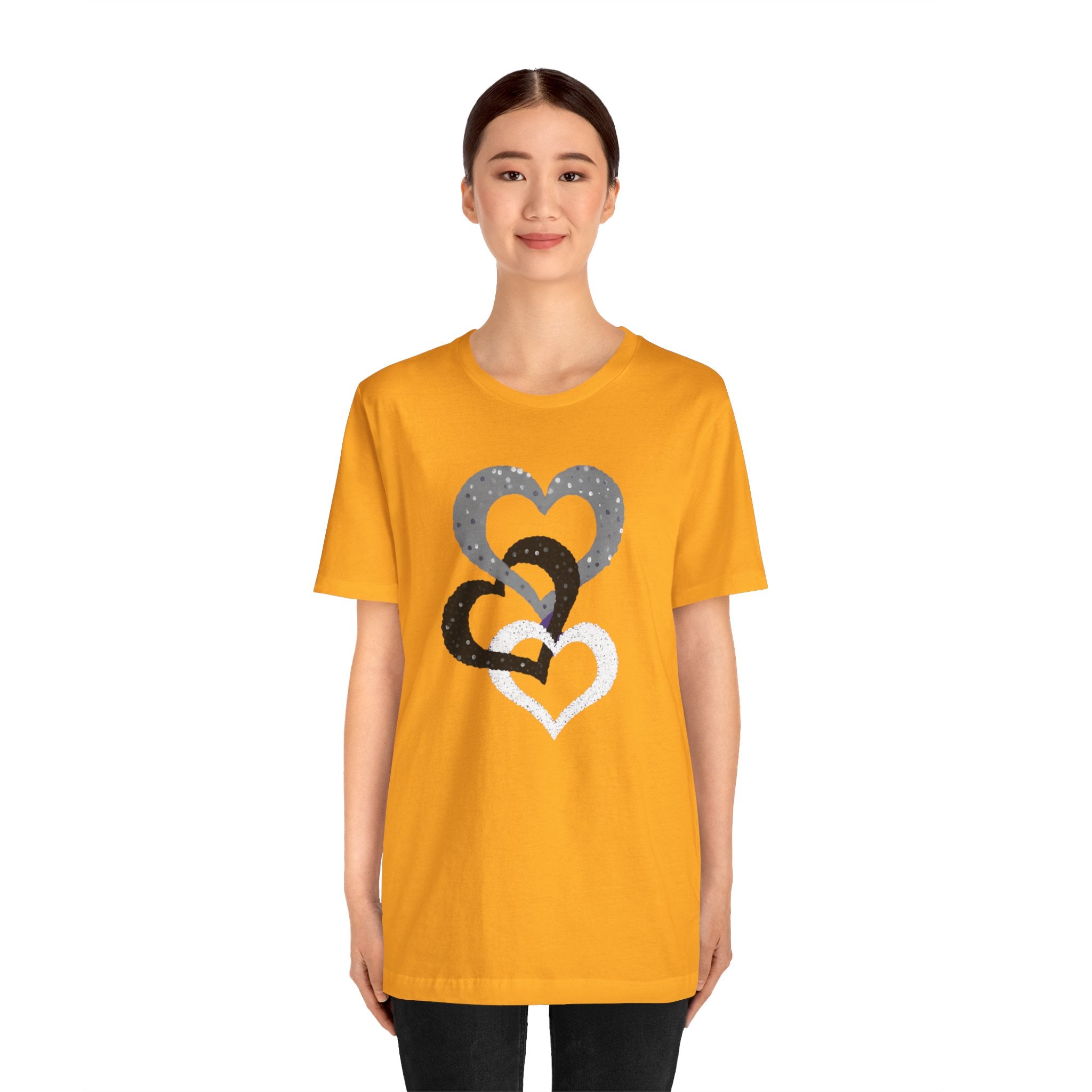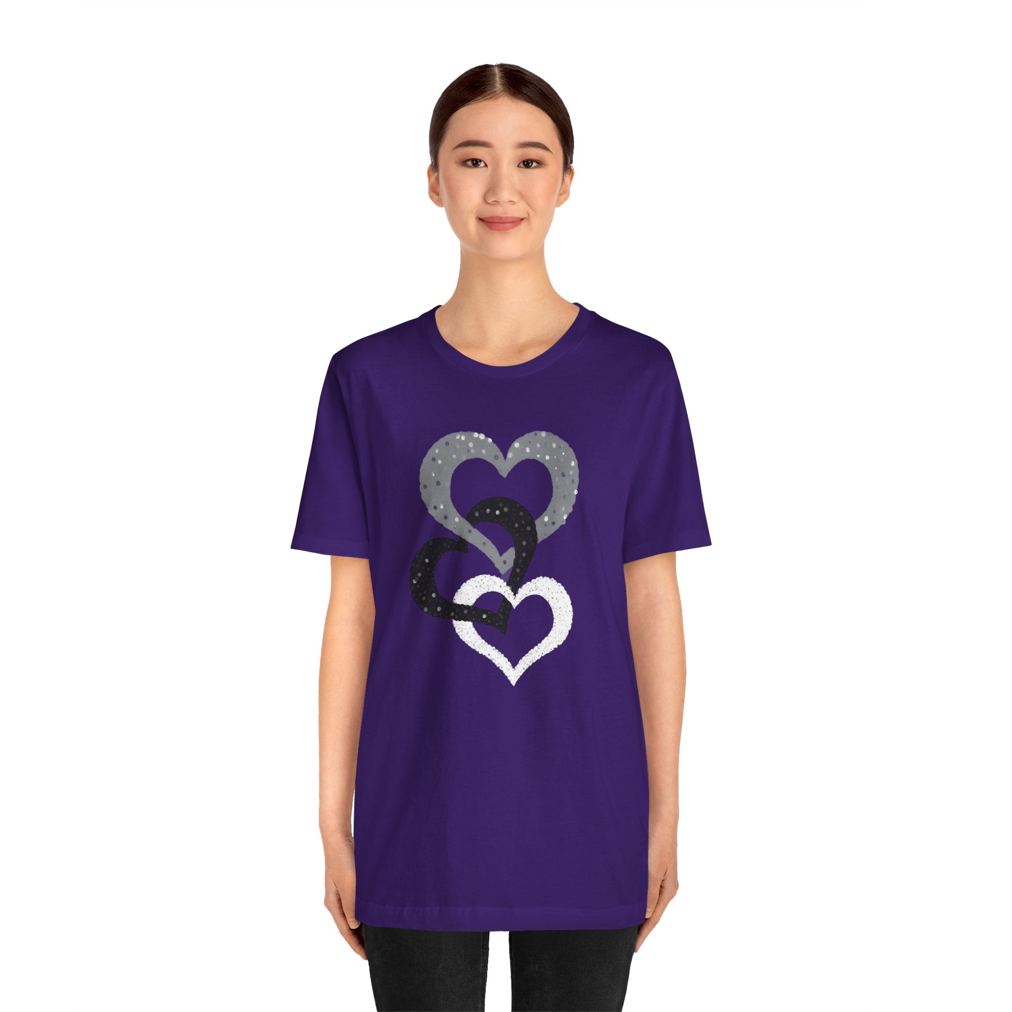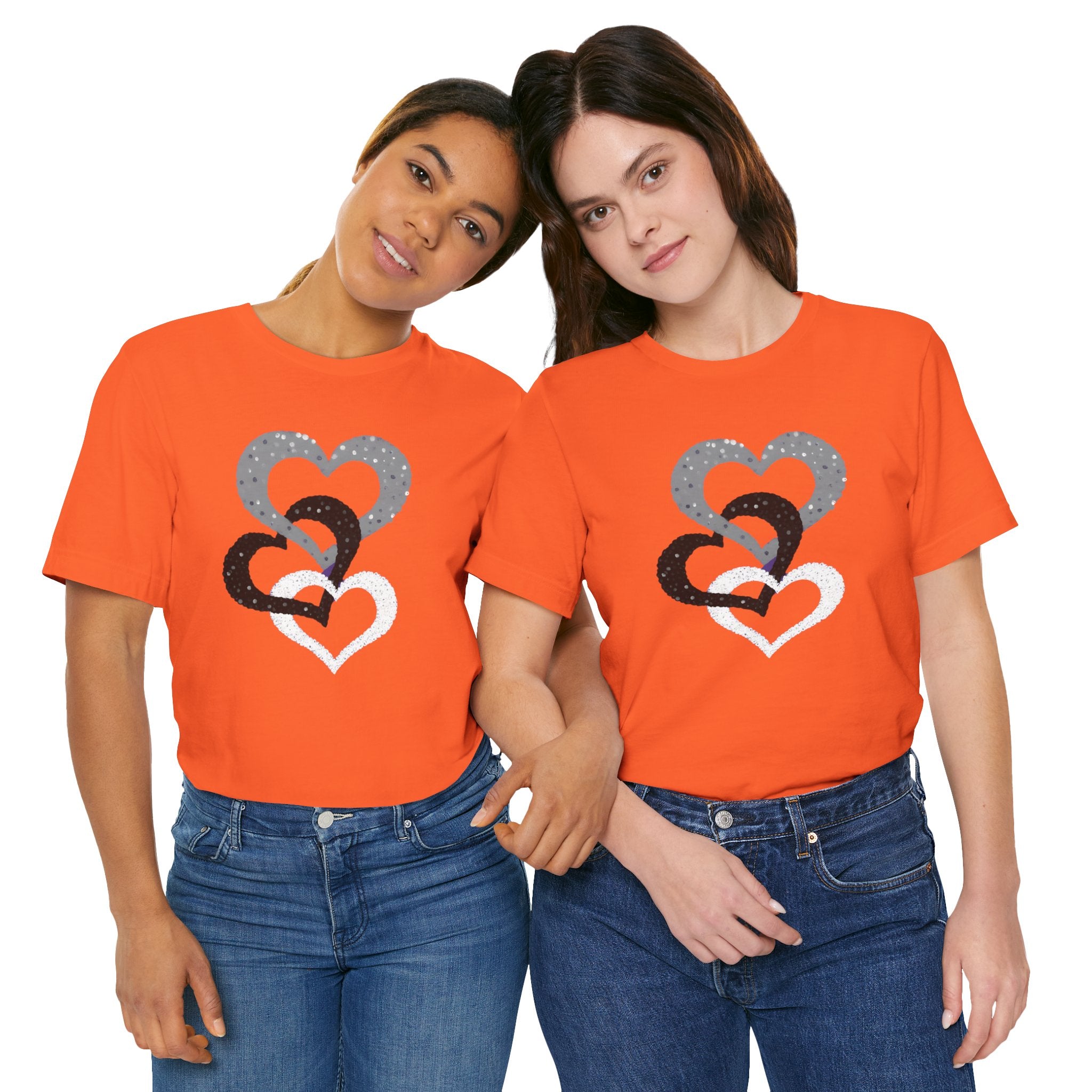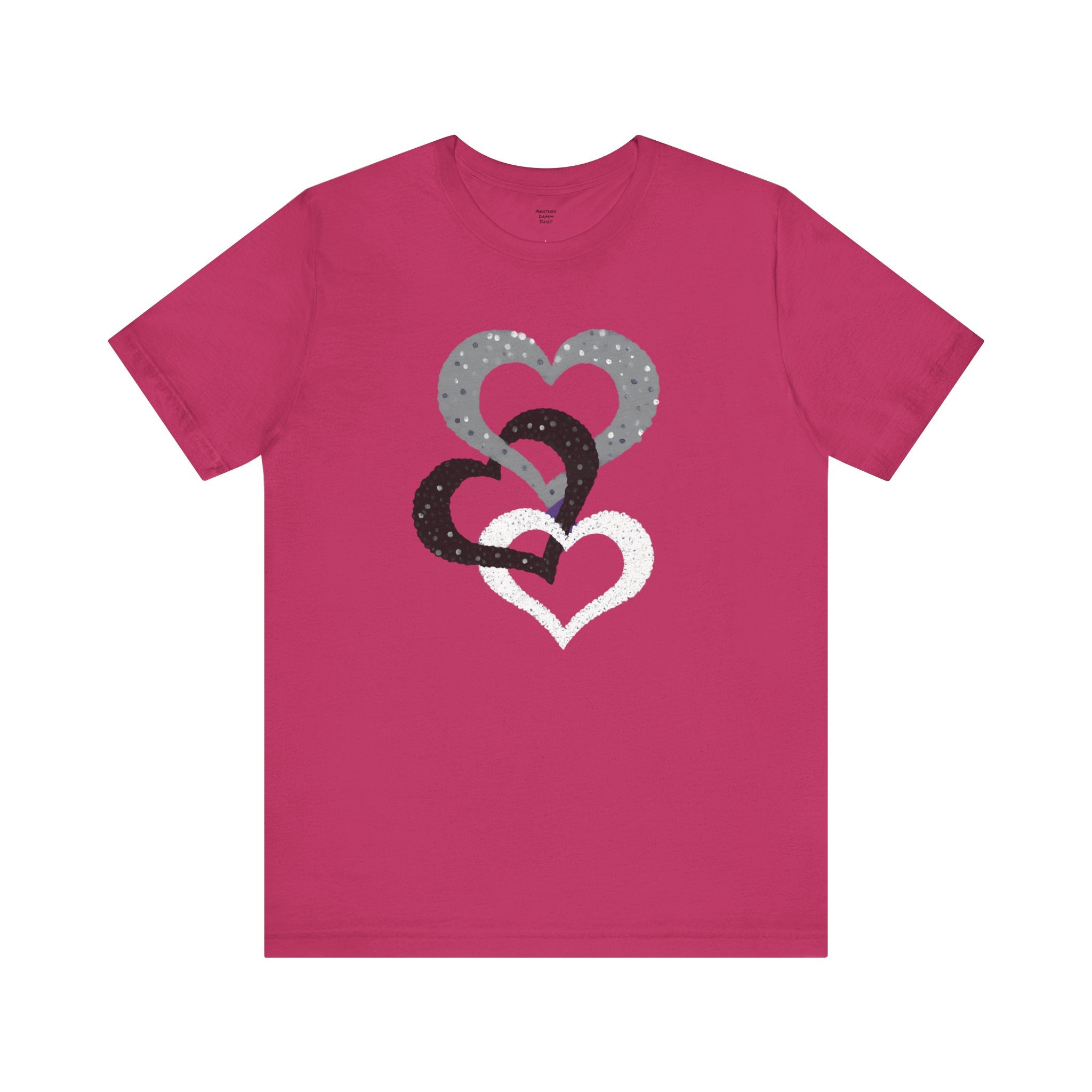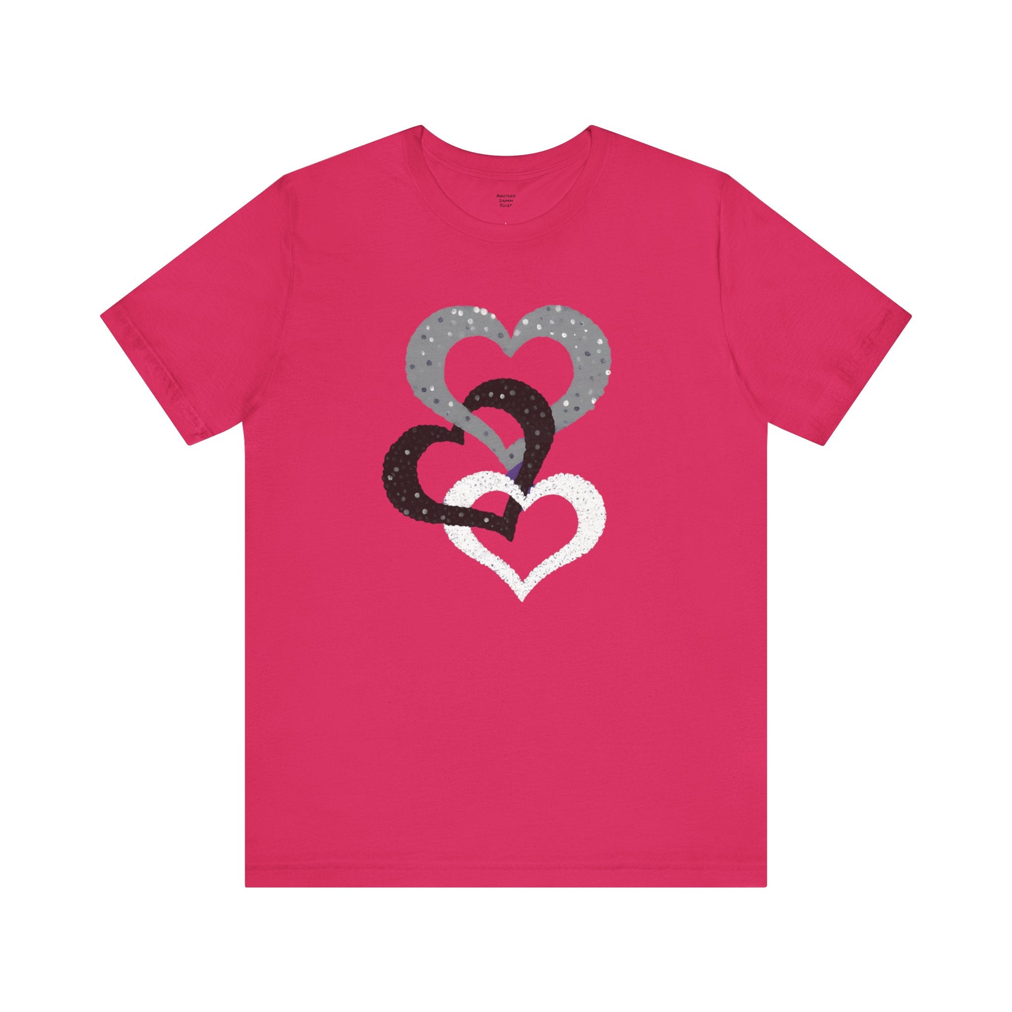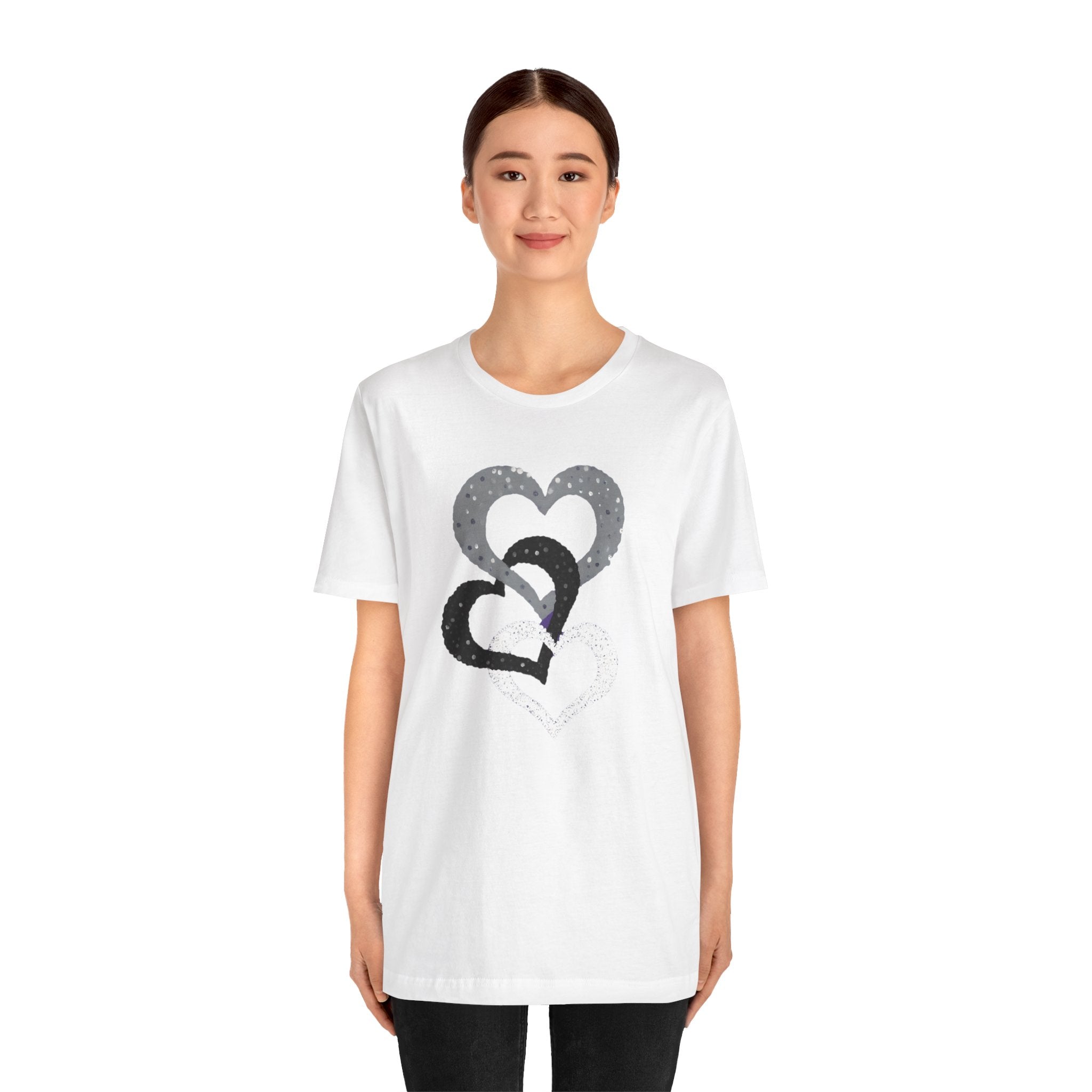 Love in Layers: Unisex Heart Design T-Shirt, perfect for casual wear and a great gift for her. This tee is ideal for Valentine's Day or everyday wear, giving off a casual and loving vibe. Suitable for adults.