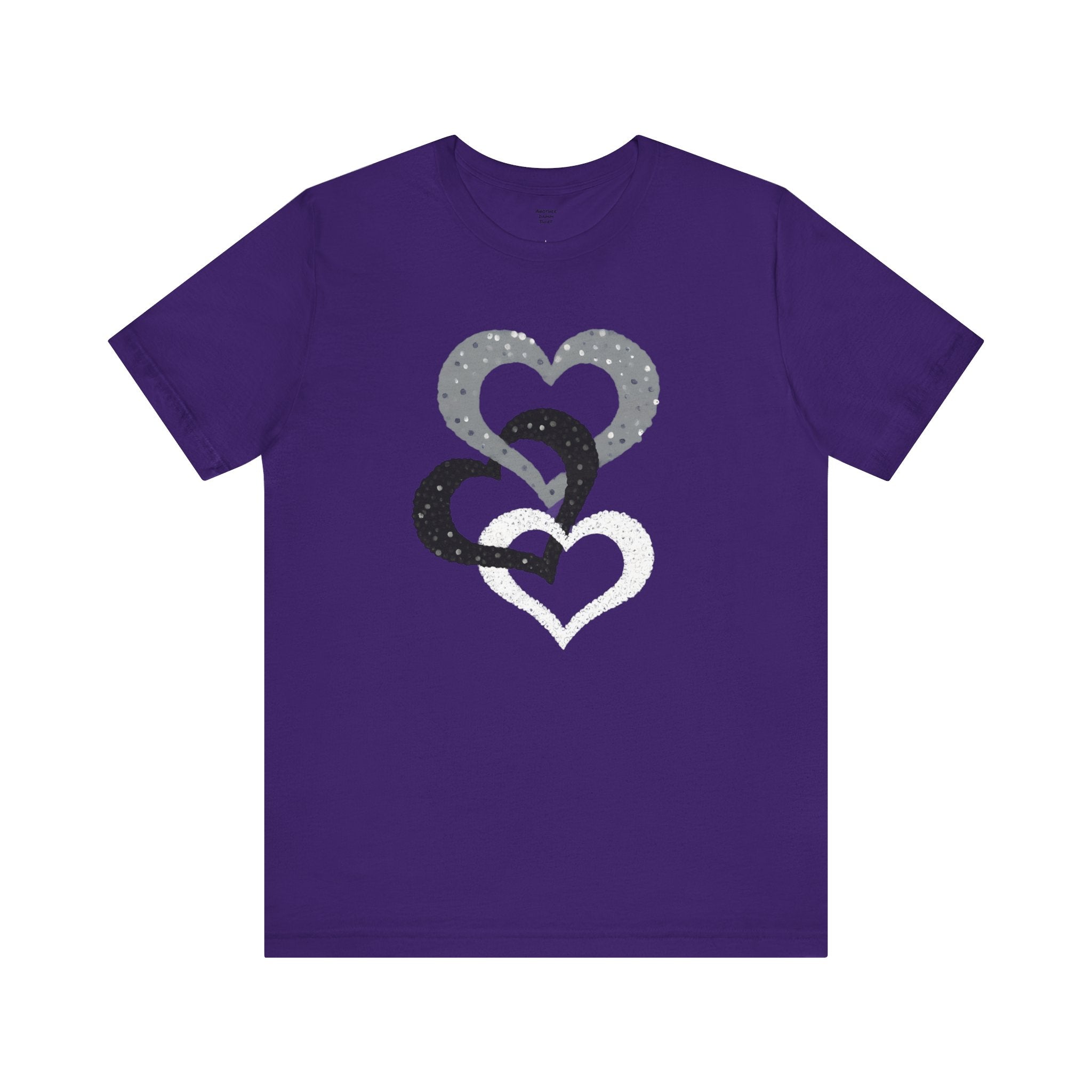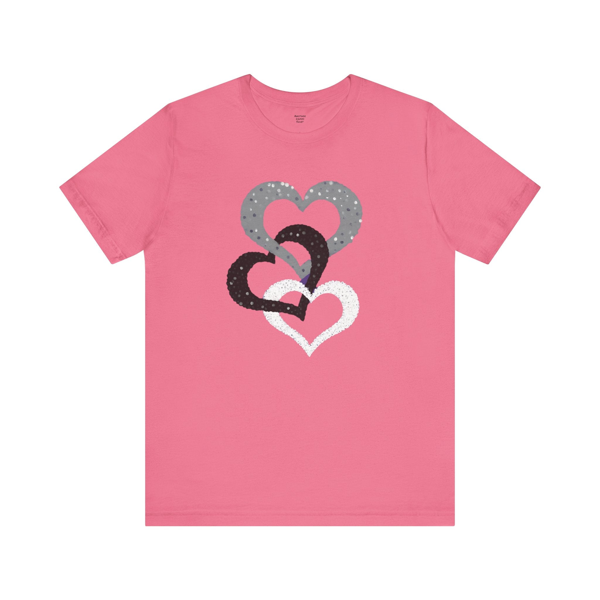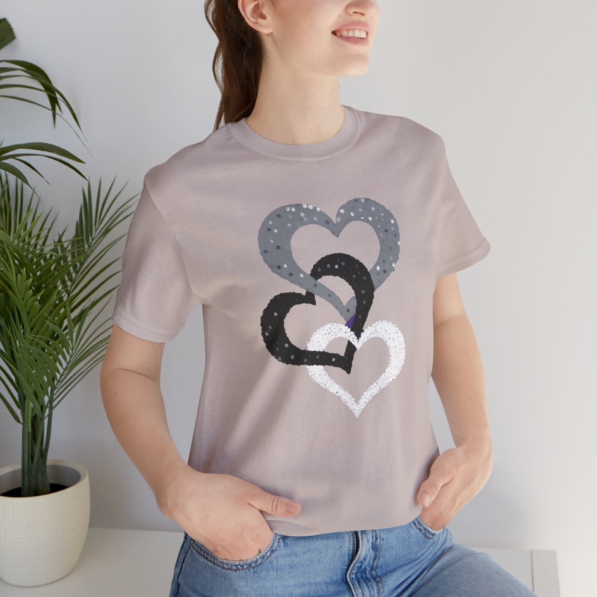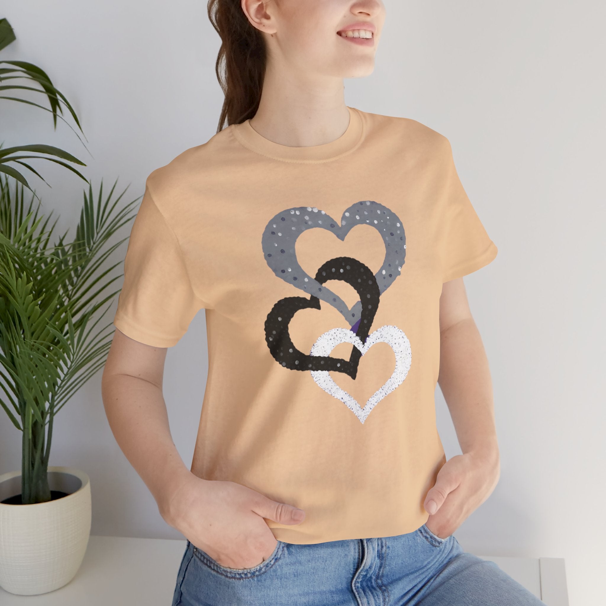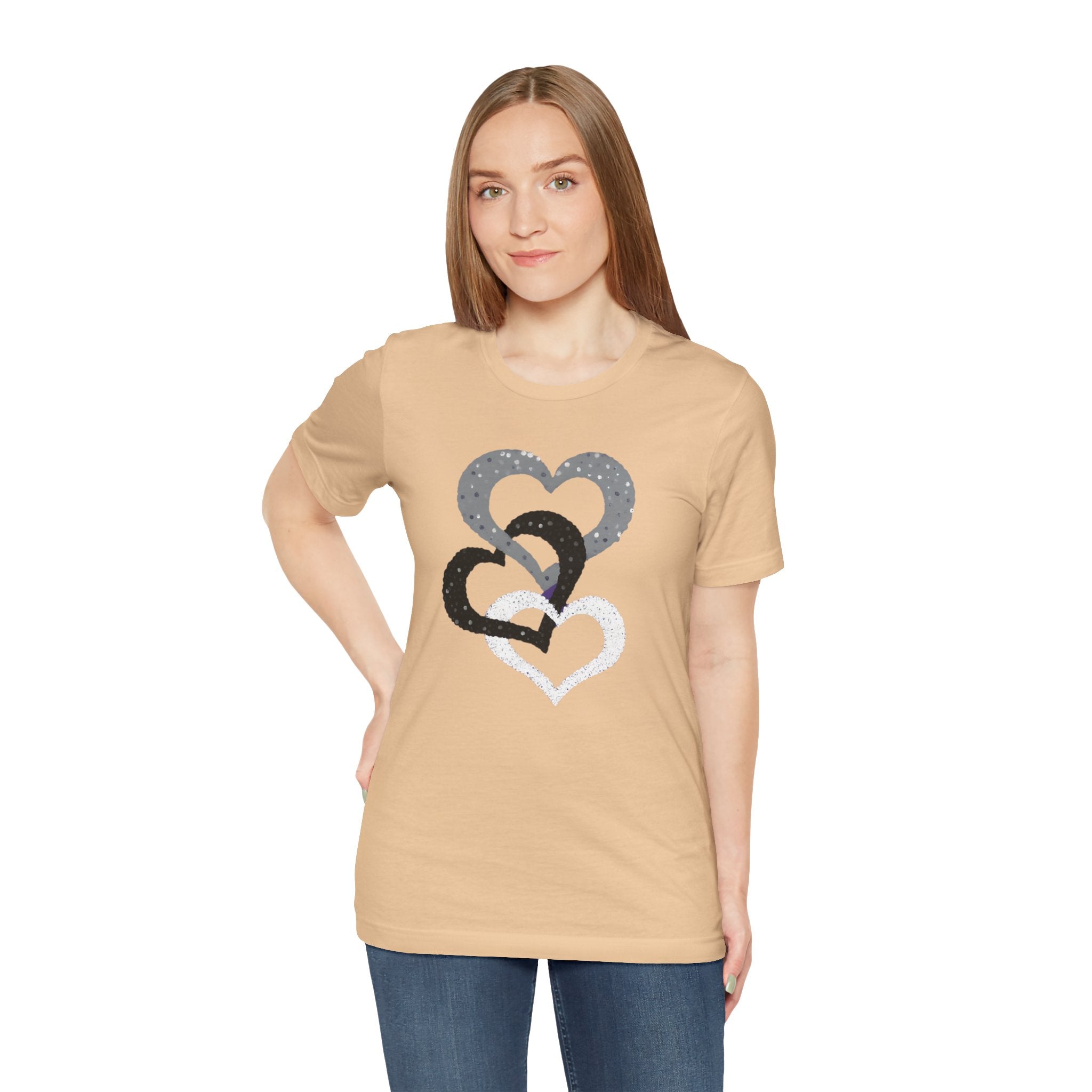 Love in Layers: Unisex Heart Design T-Shirt, perfect for casual wear and a great gift for her. This tee is ideal for Valentine's Day or everyday wear, giving off a casual and loving vibe. Suitable for adults.